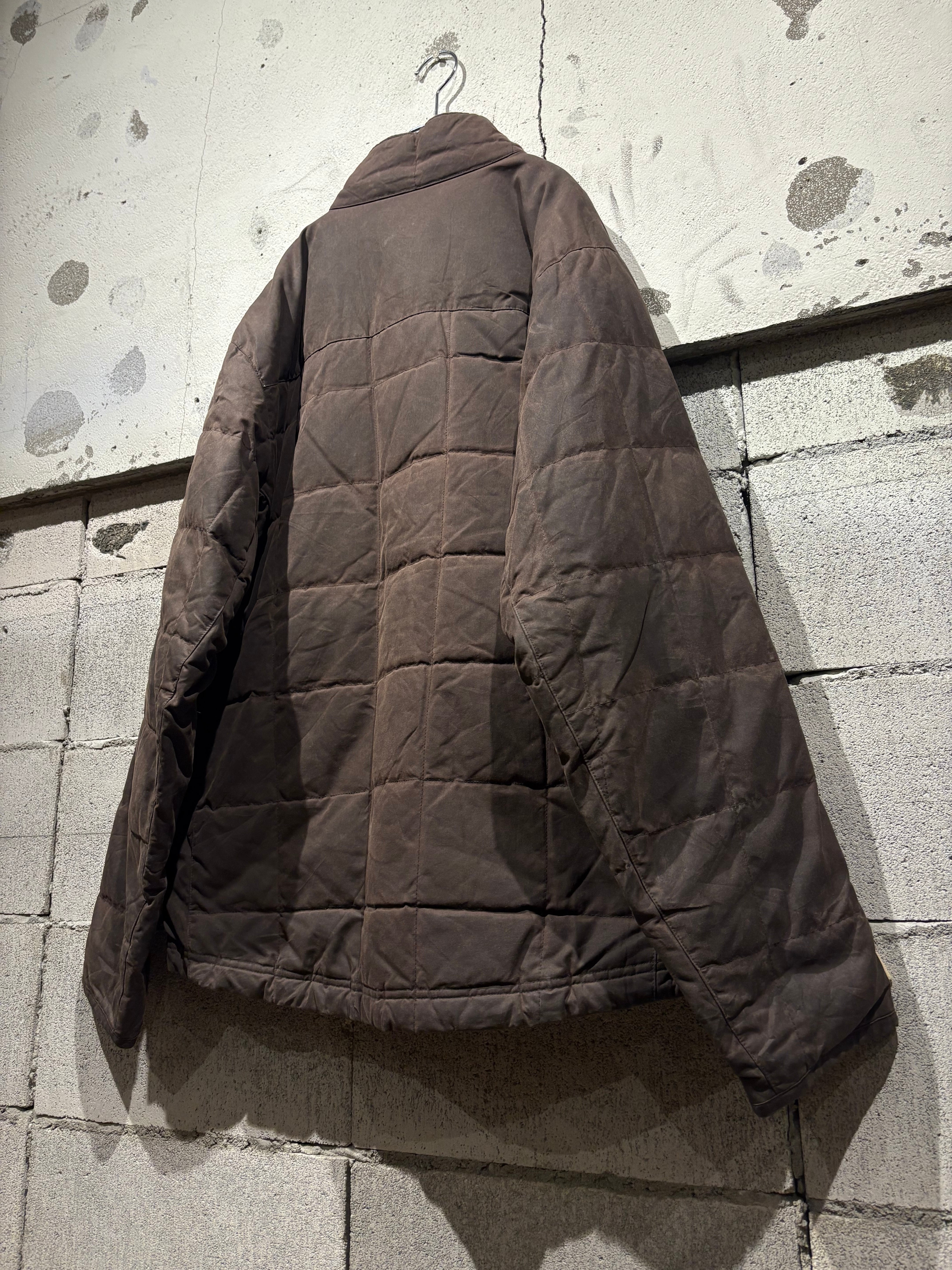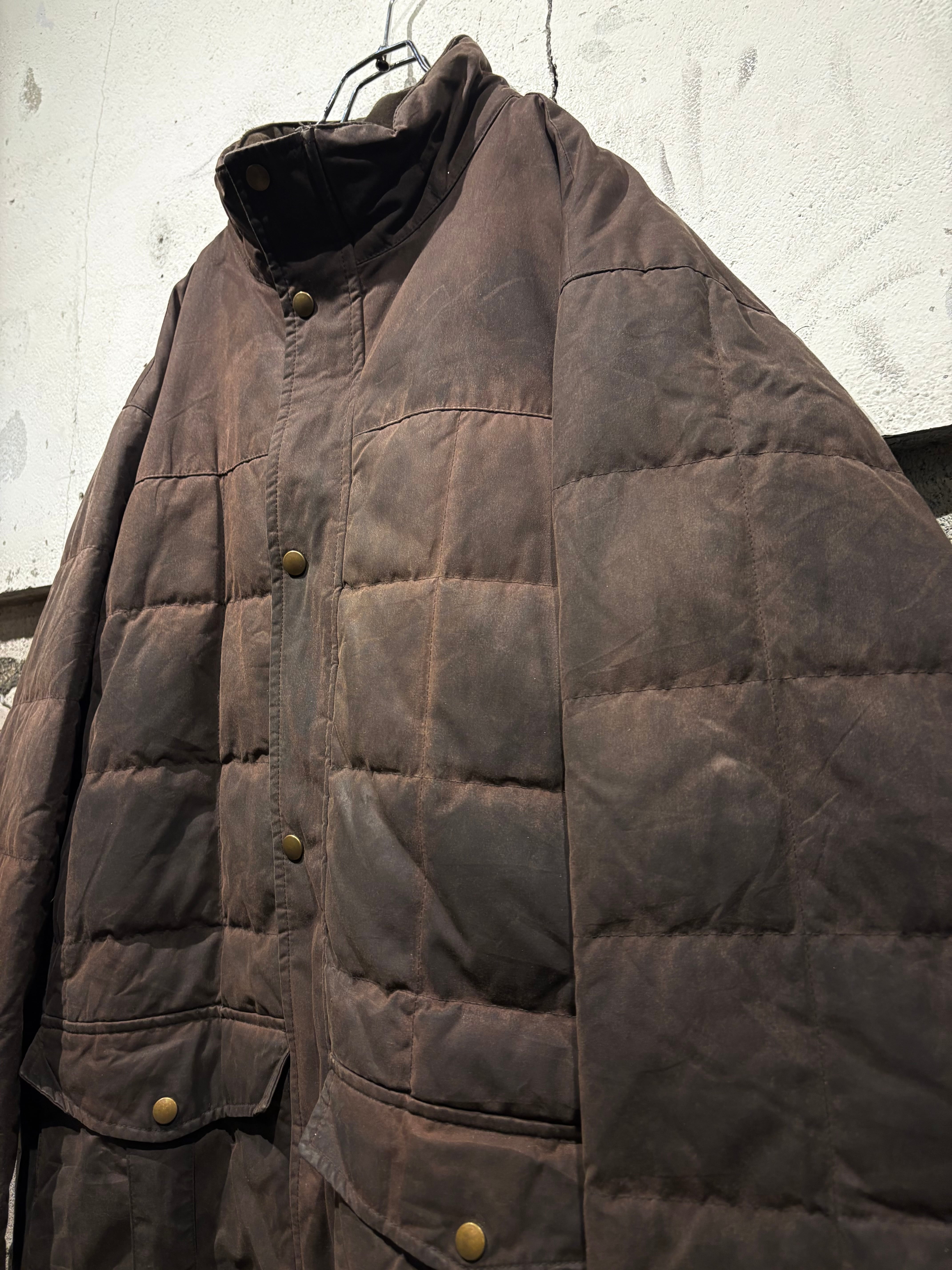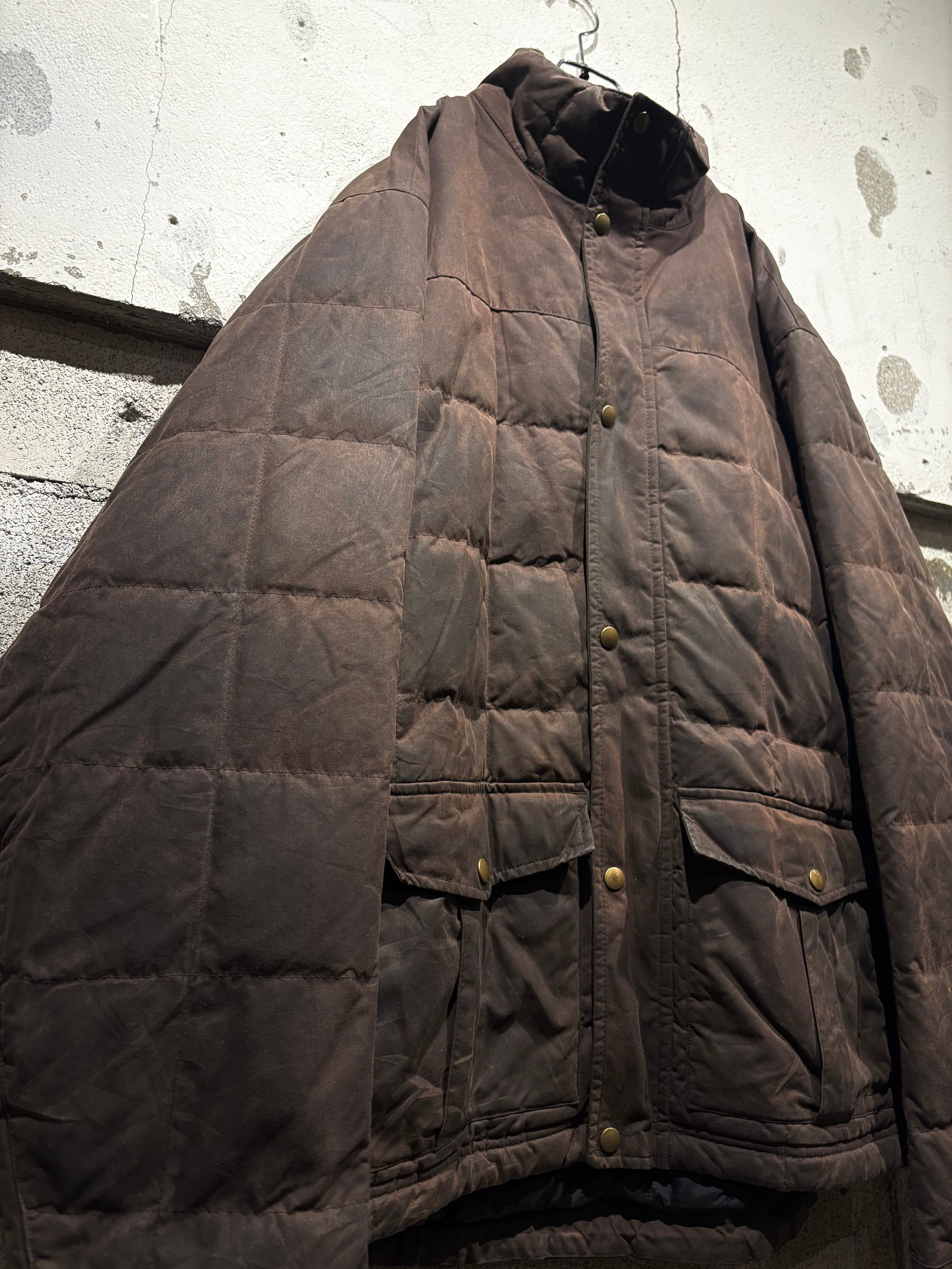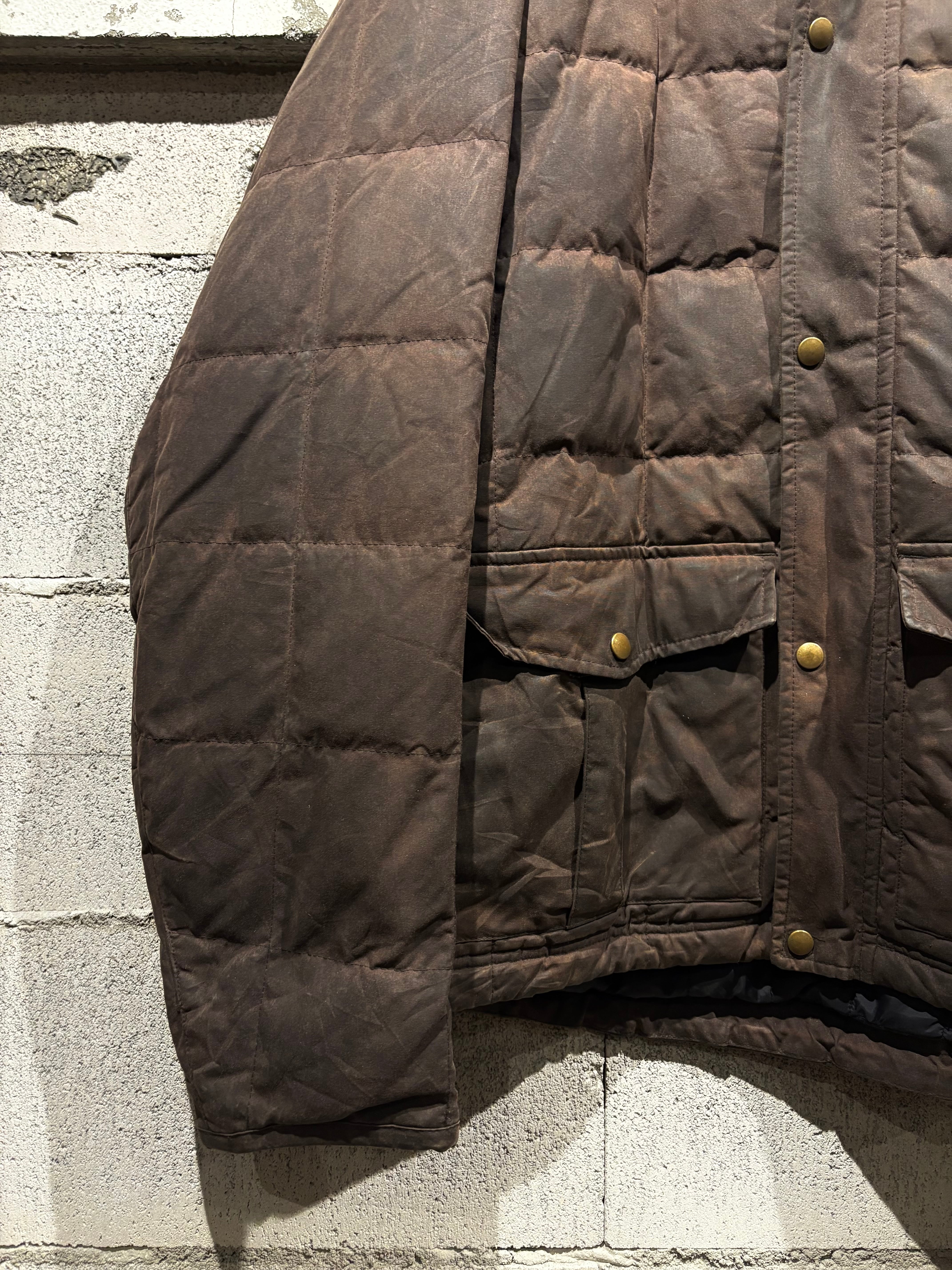 しっとりと柔らかなオイルドコットンをボディに採用したダウンジャケット。特有の光沢感を放ち、着込むほどに味わい深くなるのが魅力の一つのオイルドジャケットで、ヴィンテージでも定番アイテムですがダウンとなるとそうそうお目にかかれません。