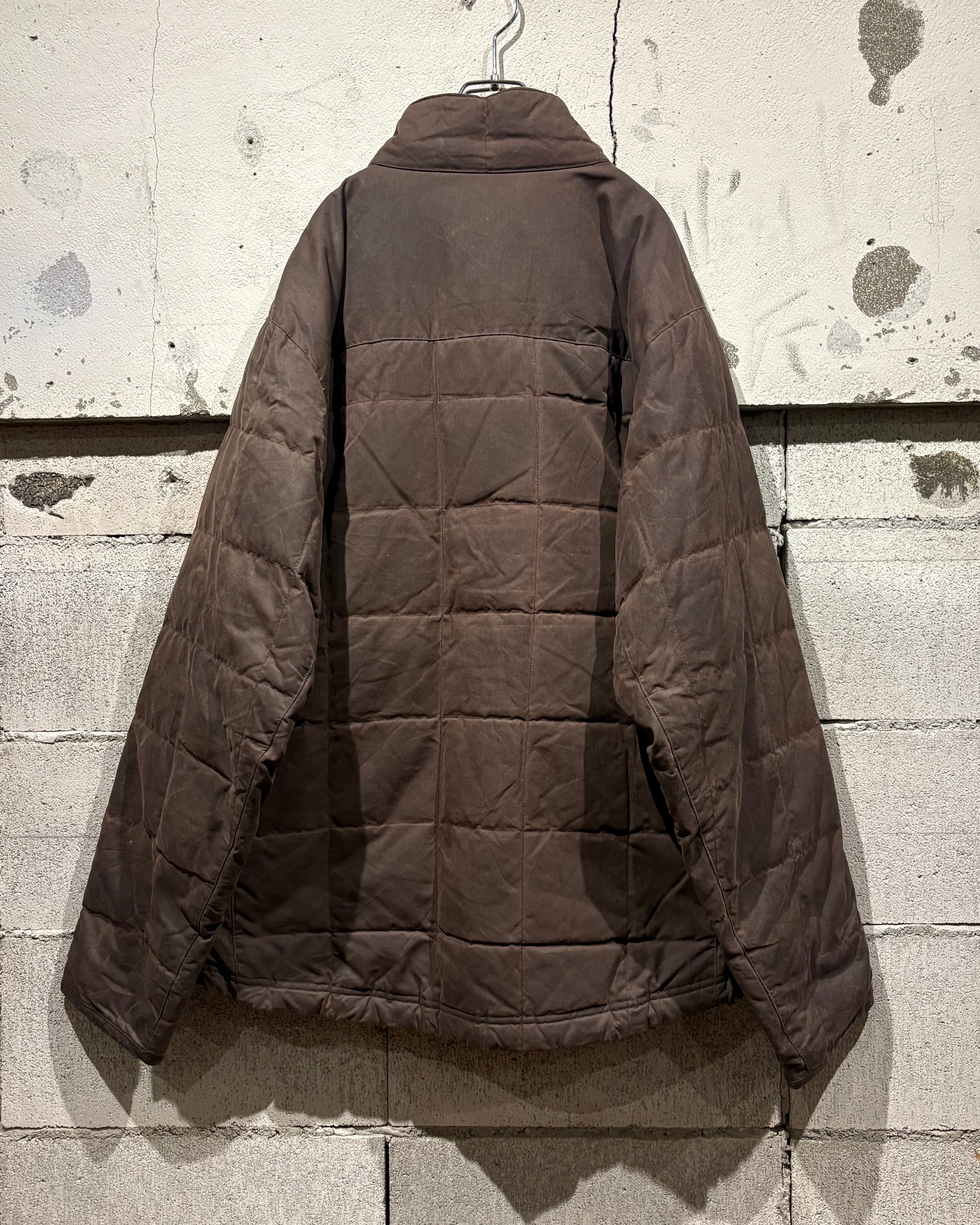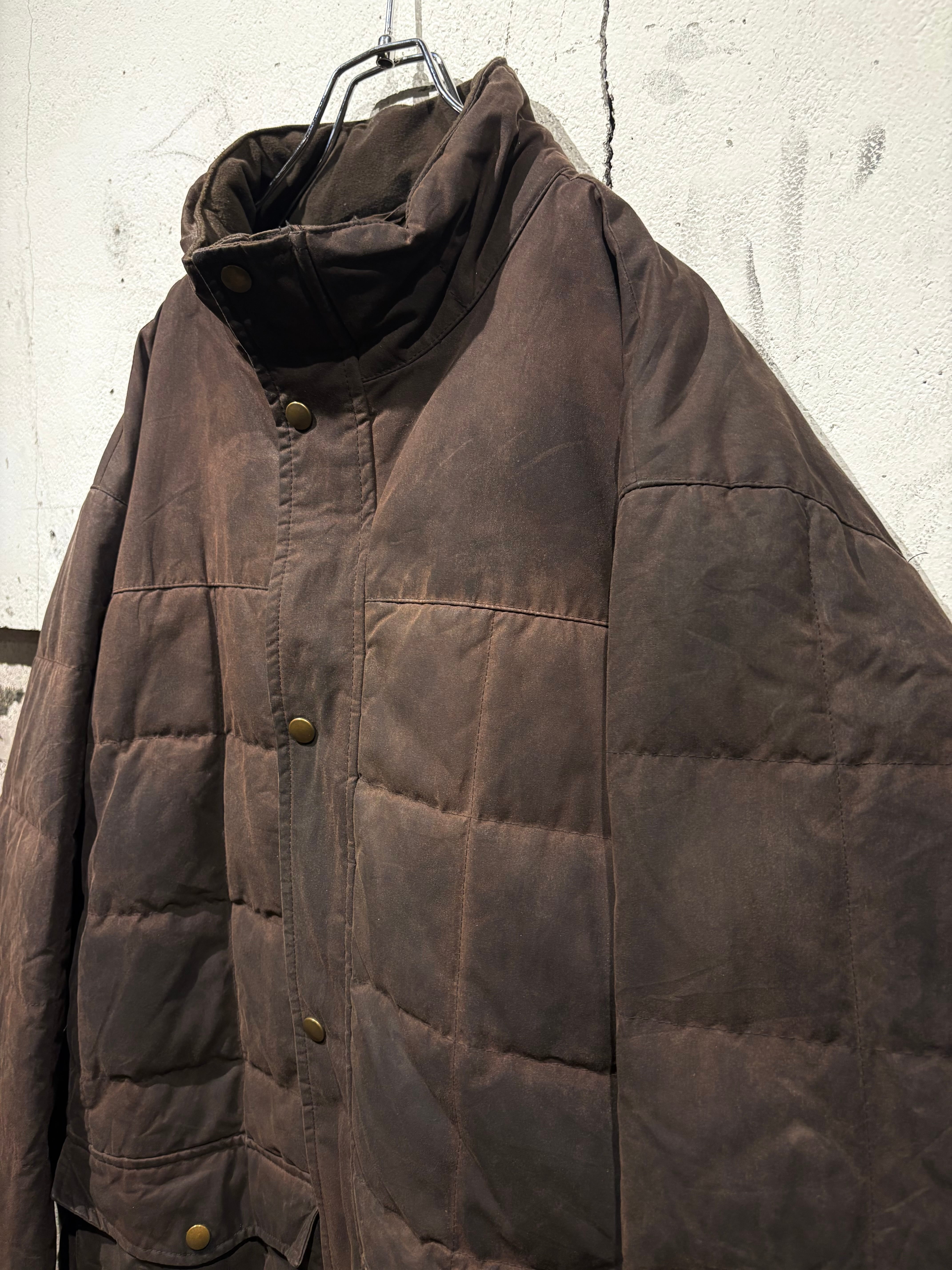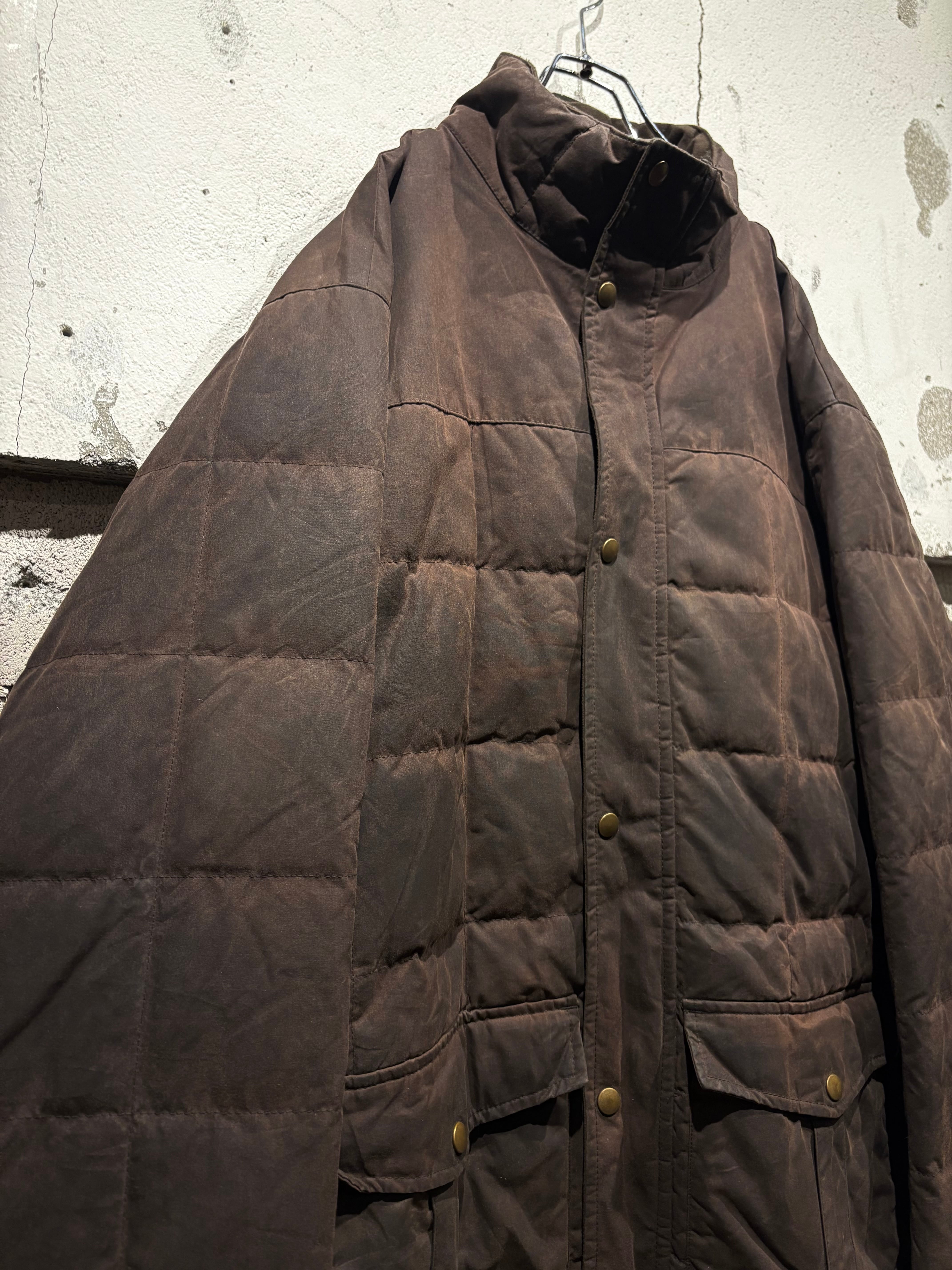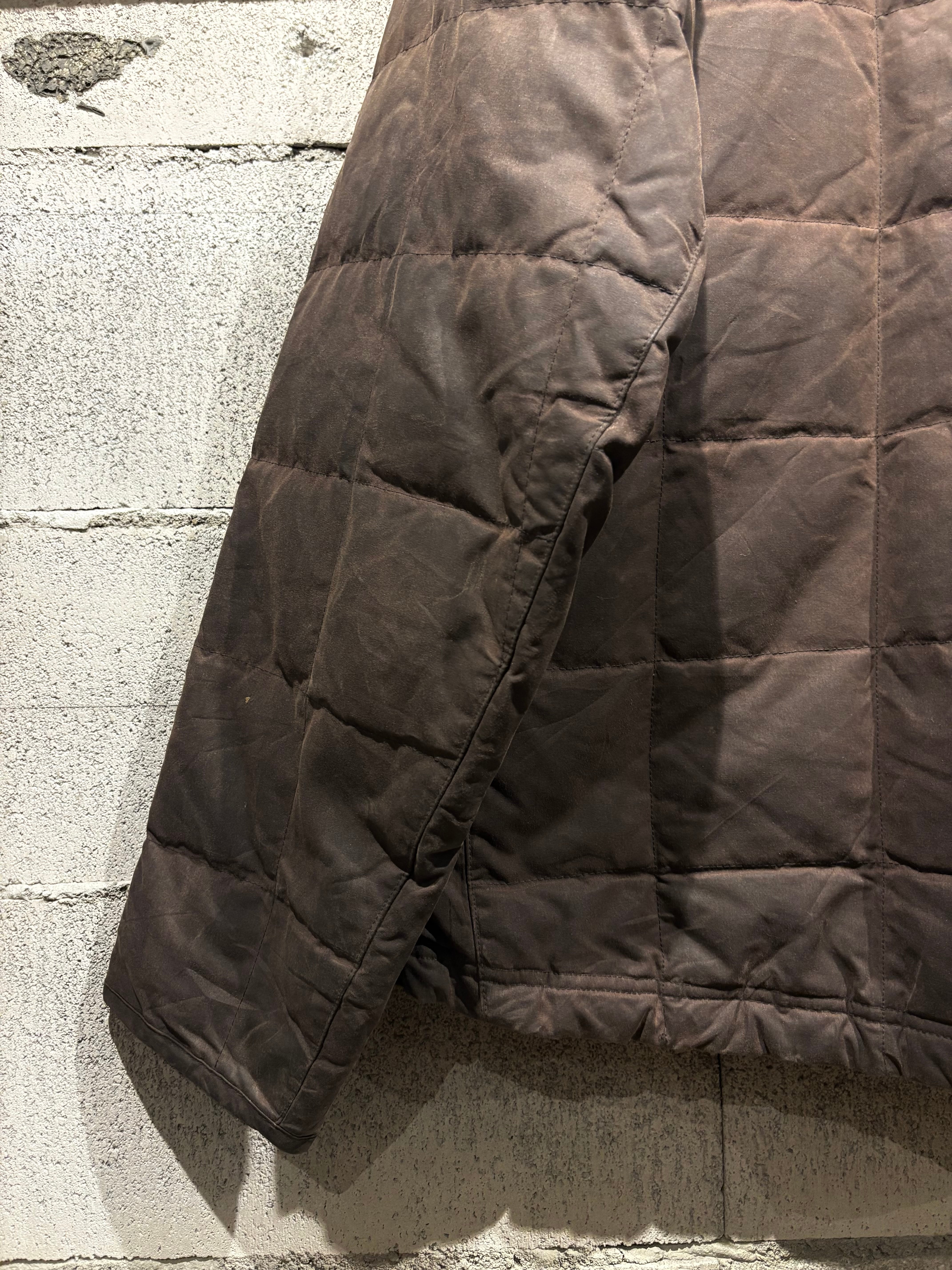 しっとりと柔らかなオイルドコットンをボディに採用したダウンジャケット。特有の光沢感を放ち、着込むほどに味わい深くなるのが魅力の一つのオイルドジャケットで、ヴィンテージでも定番アイテムですがダウンとなるとそうそうお目にかかれません。