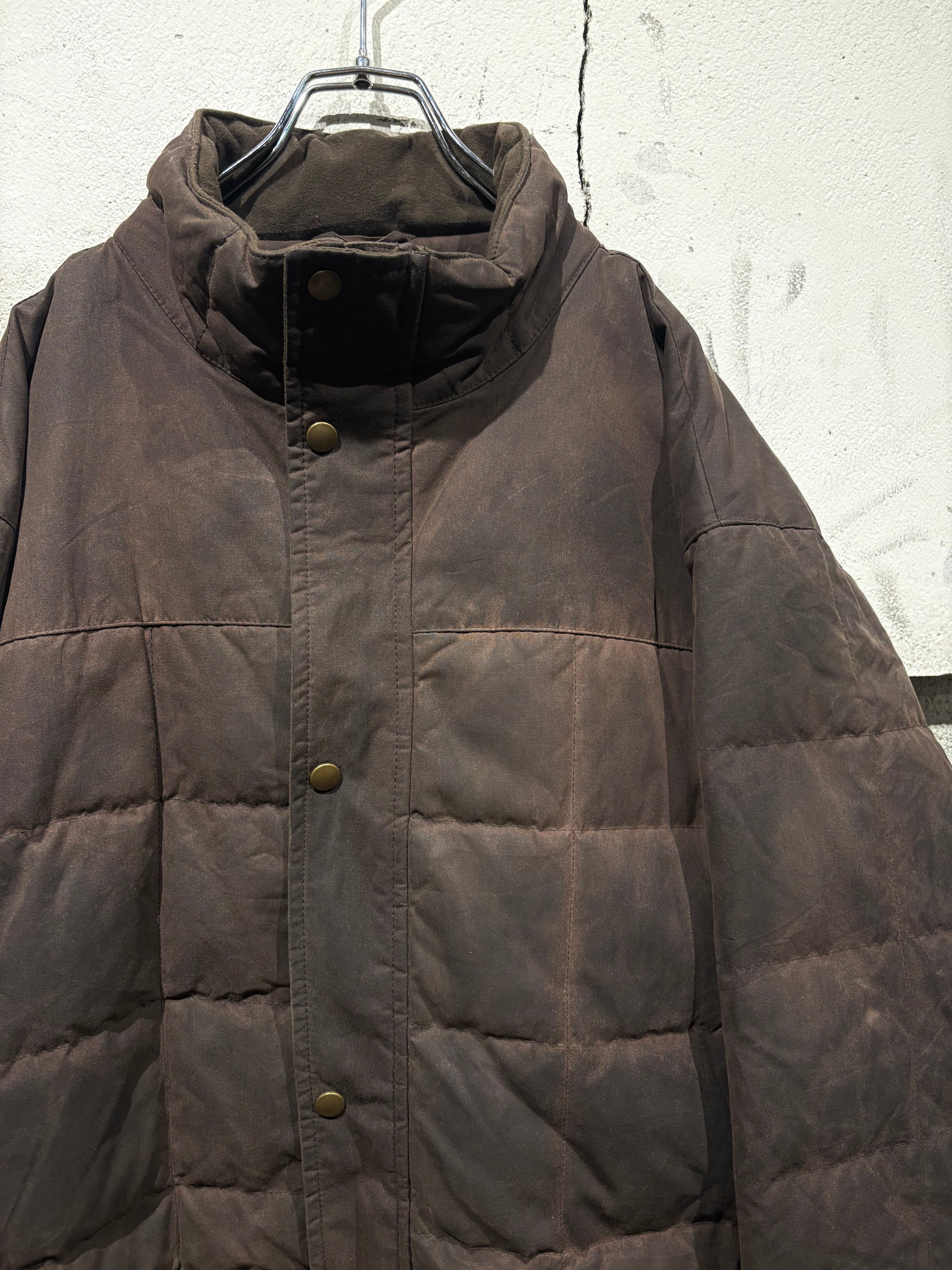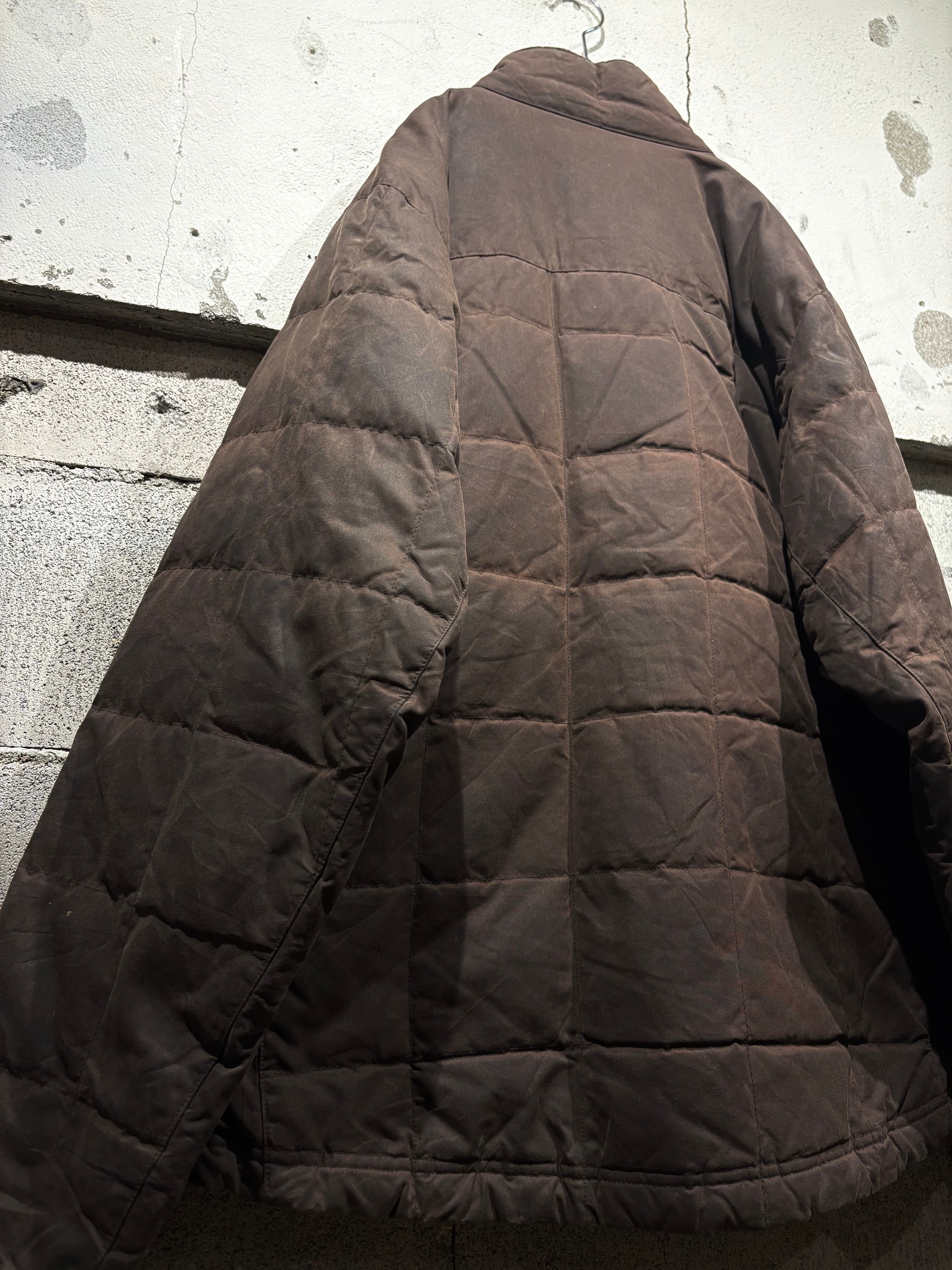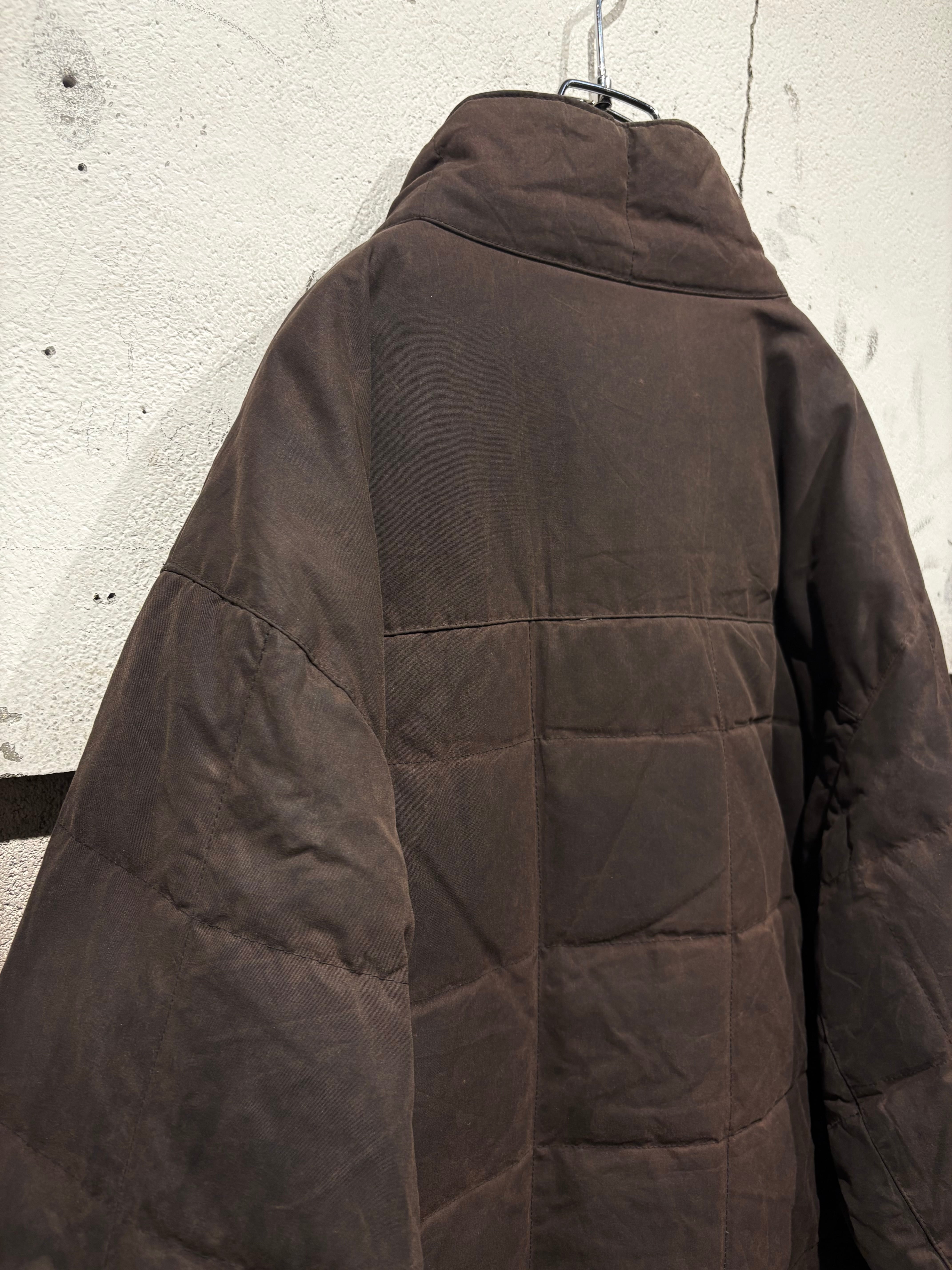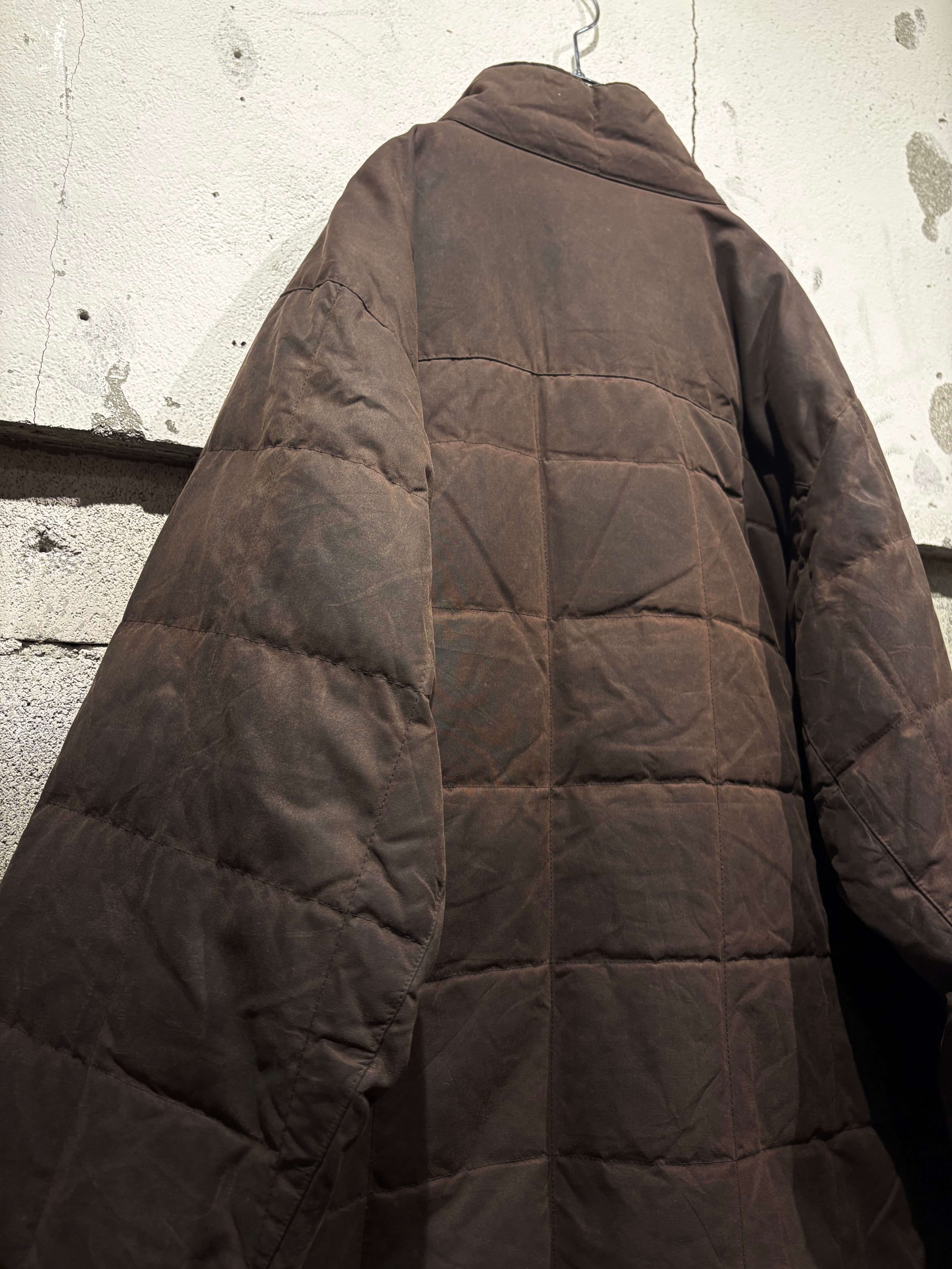 しっとりと柔らかなオイルドコットンをボディに採用したダウンジャケット。特有の光沢感を放ち、着込むほどに味わい深くなるのが魅力の一つのオイルドジャケットで、ヴィンテージでも定番アイテムですがダウンとなるとそうそうお目にかかれません。