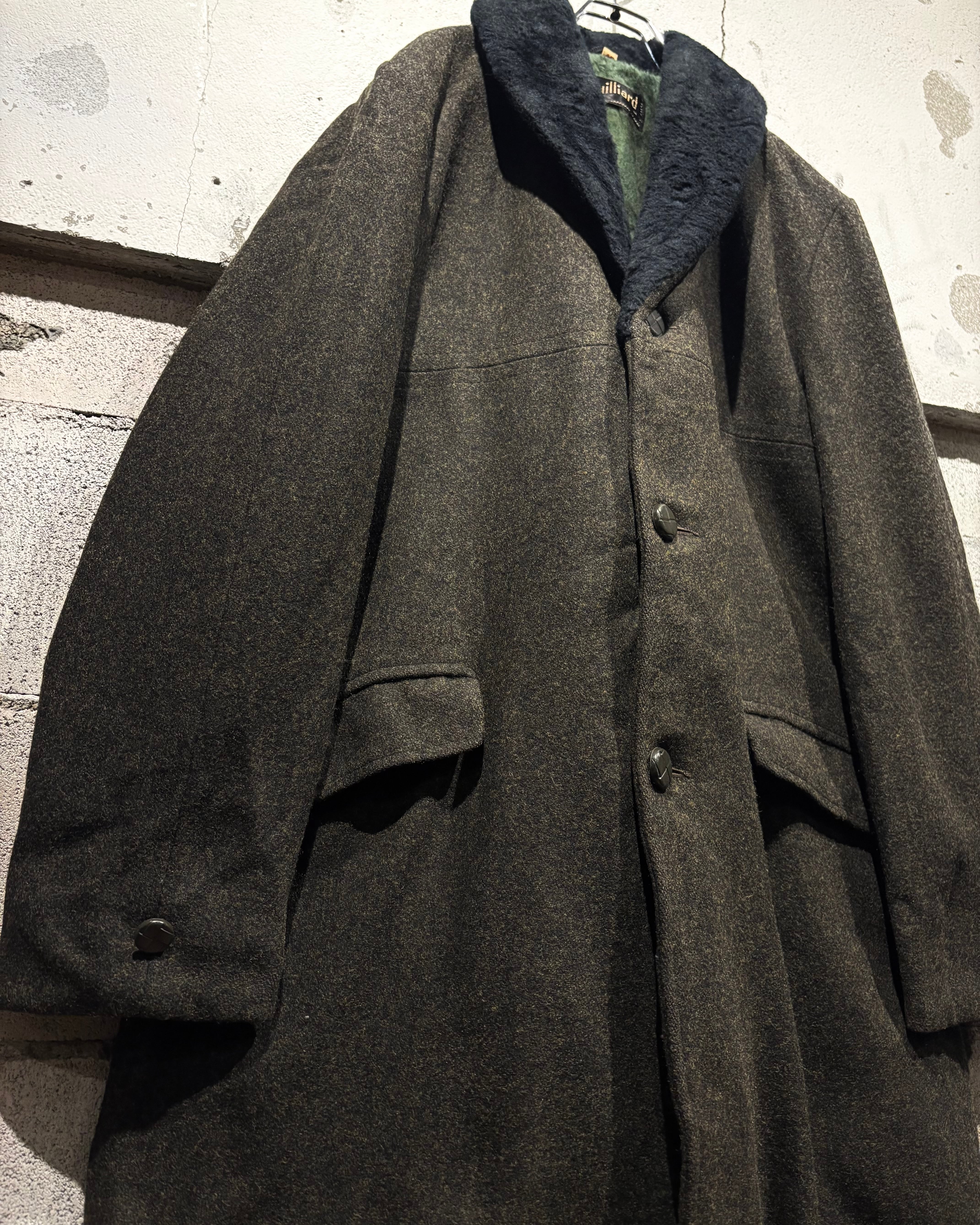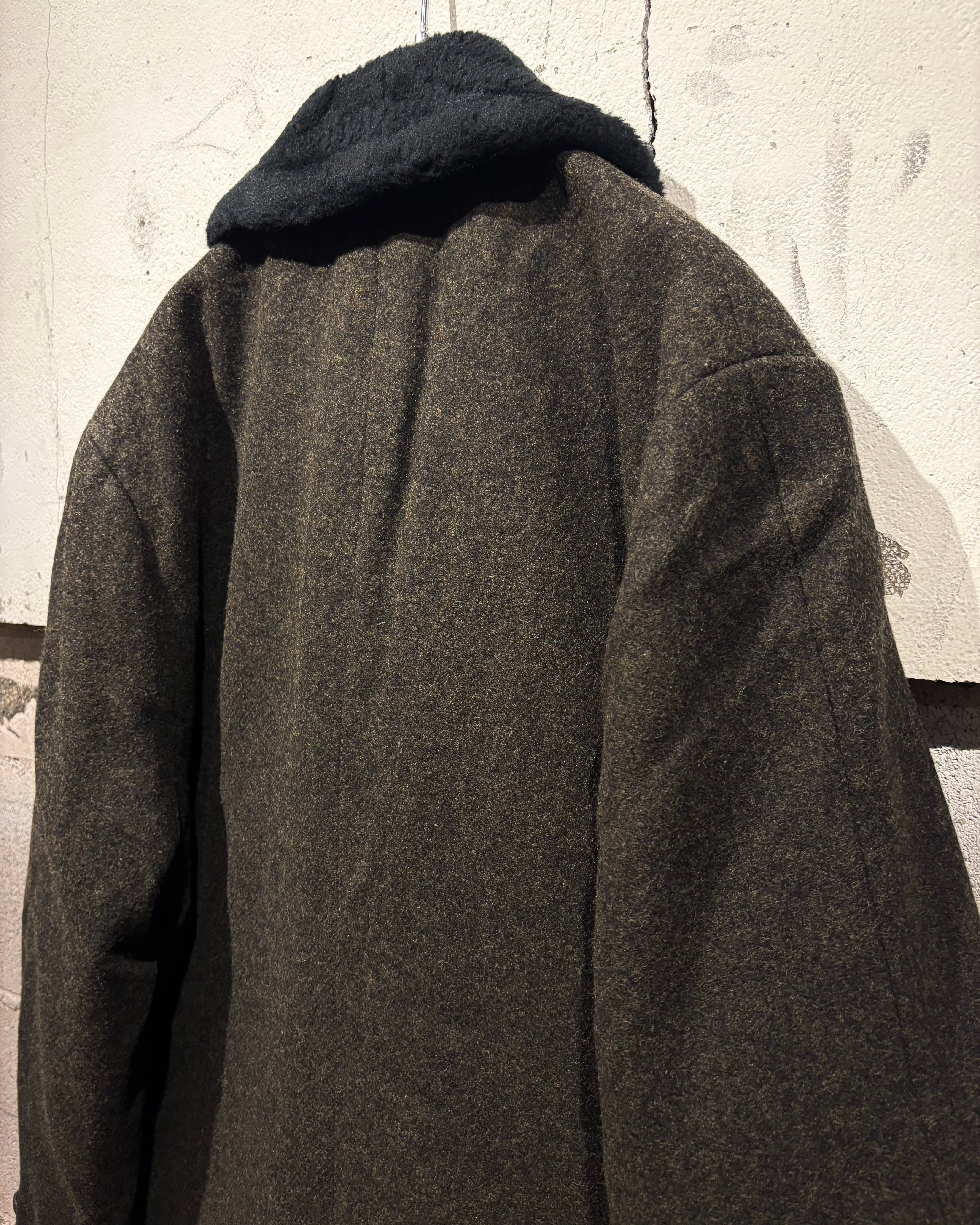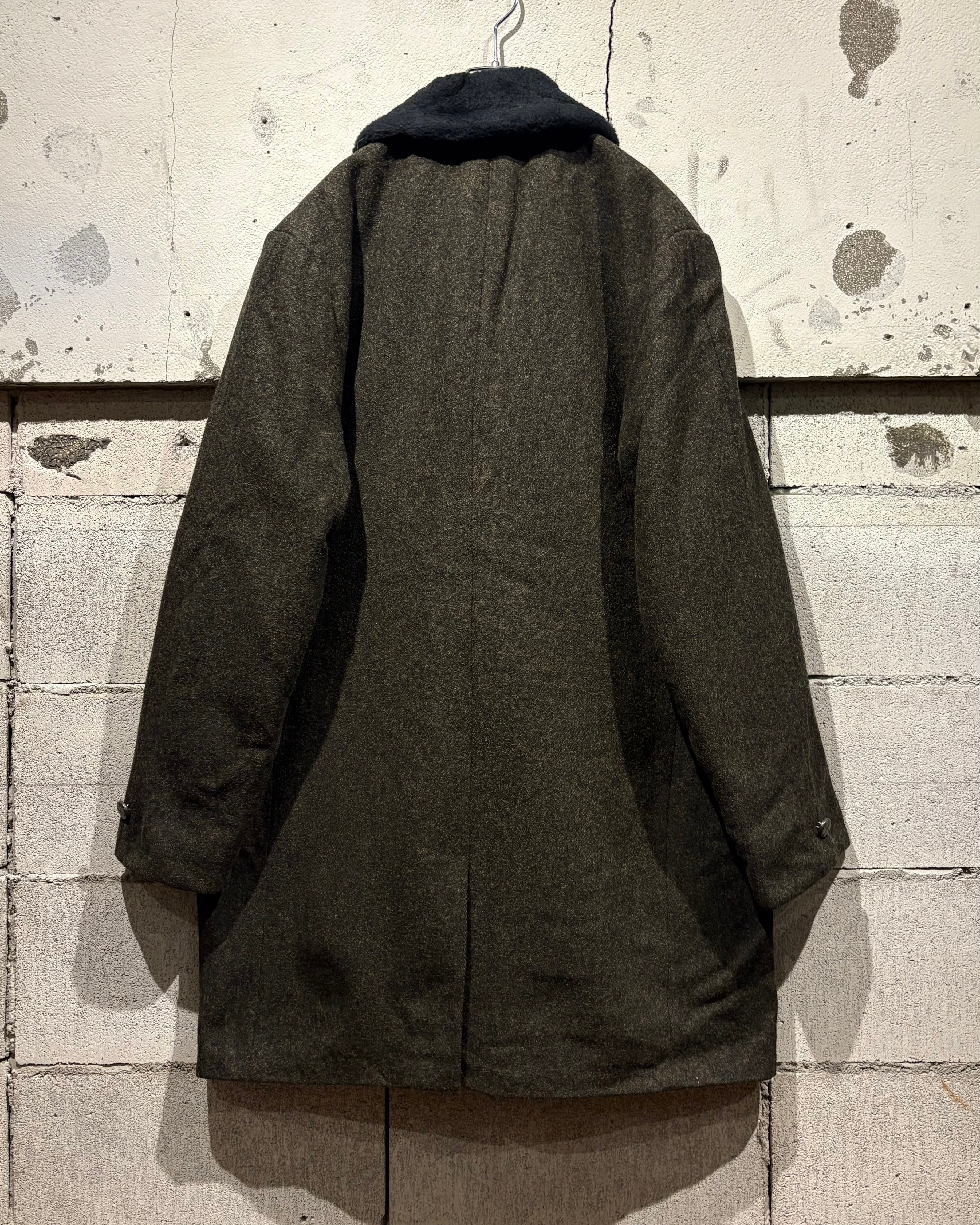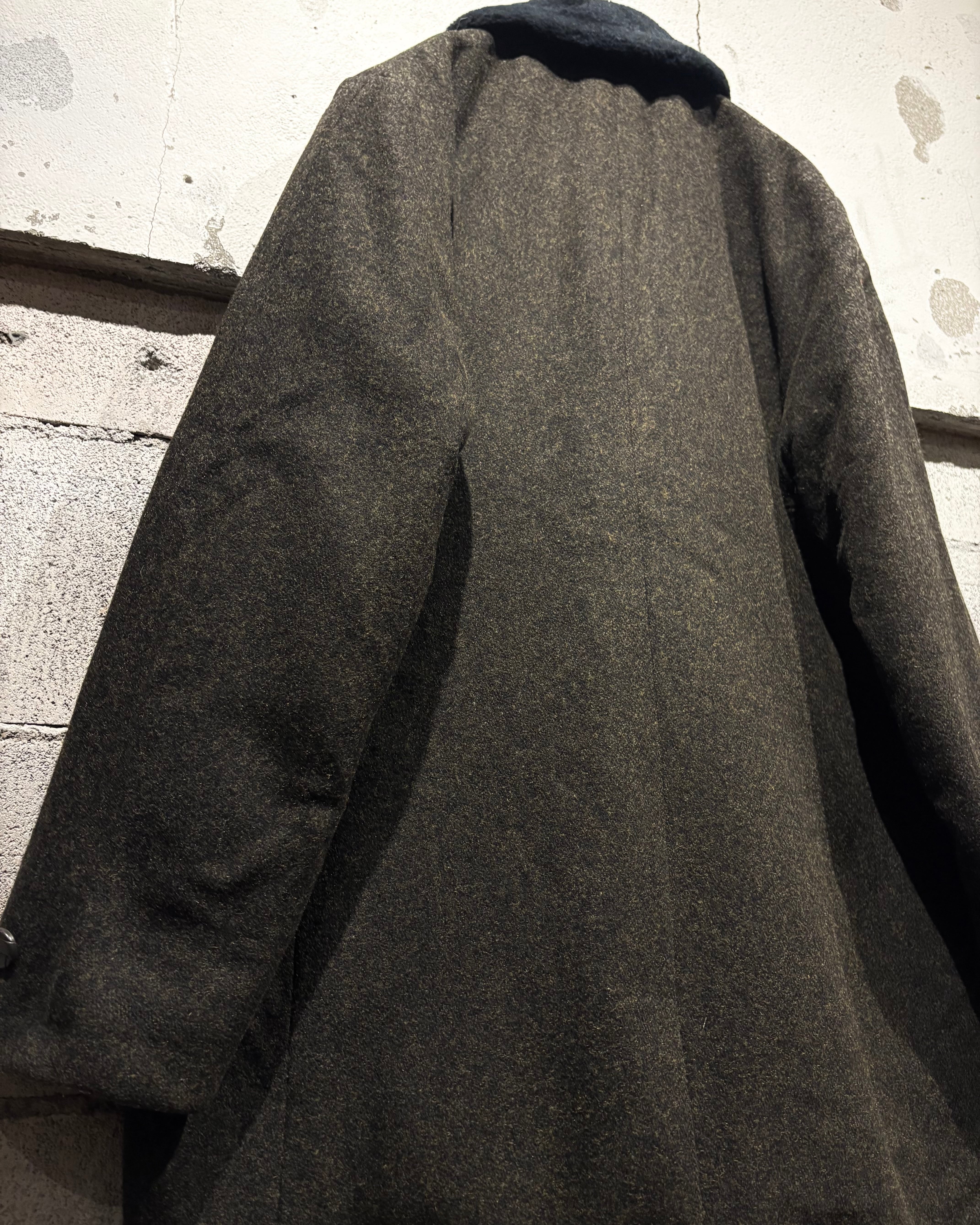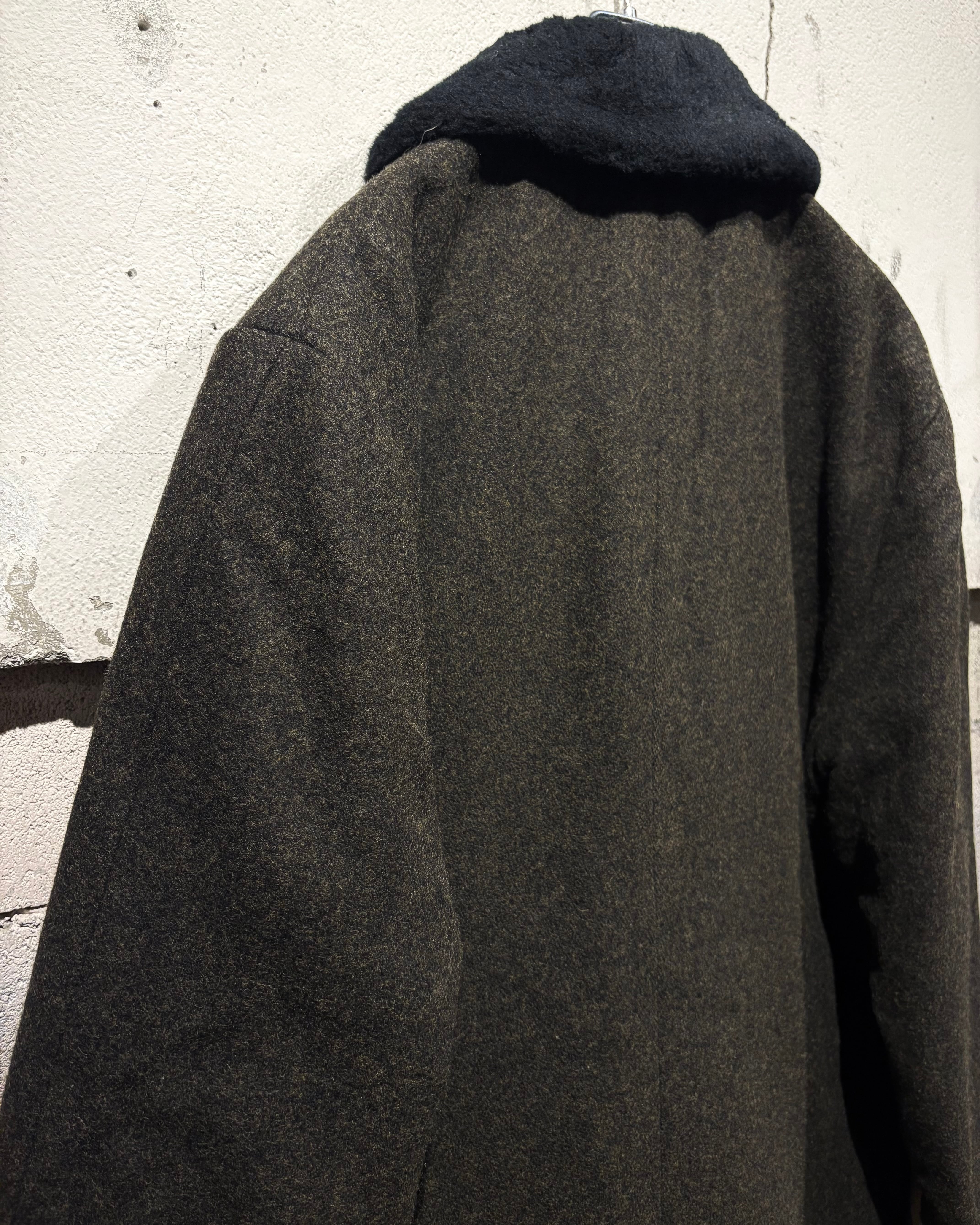 ハリを持ちつつも柔らかく、肉感のあるウールを用いたボディに、襟にはエコファーを切り替えた60'sヴィンテージのコート。