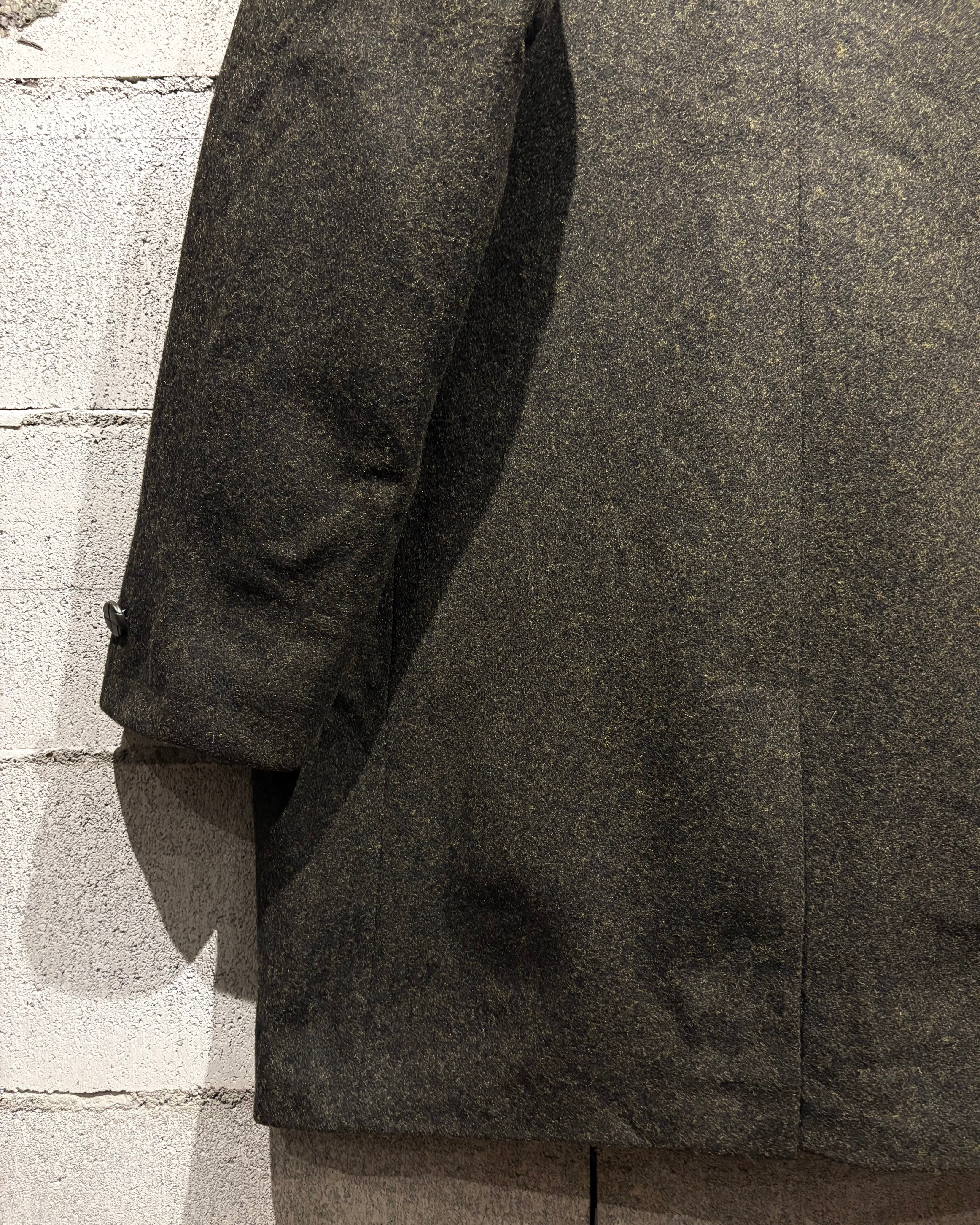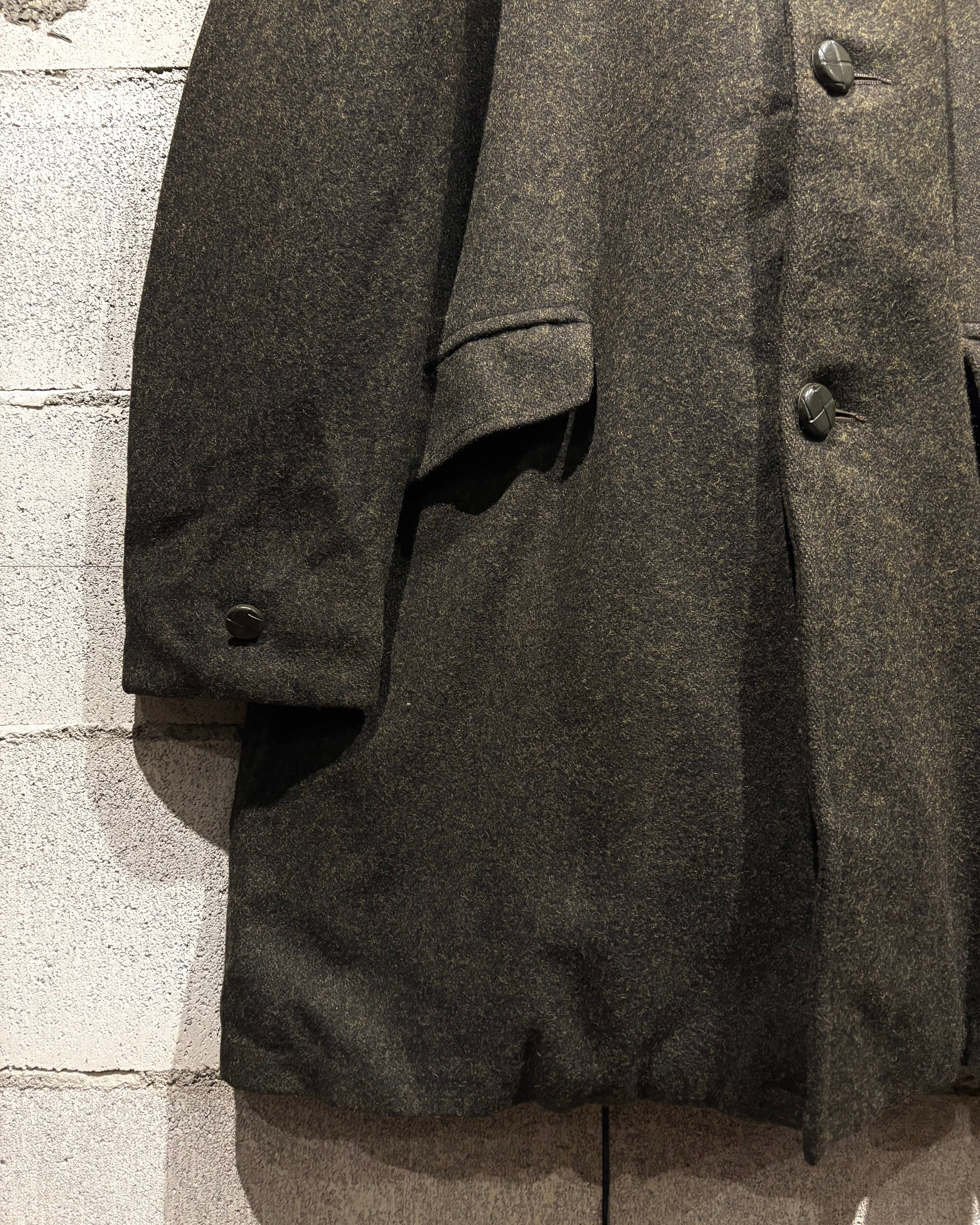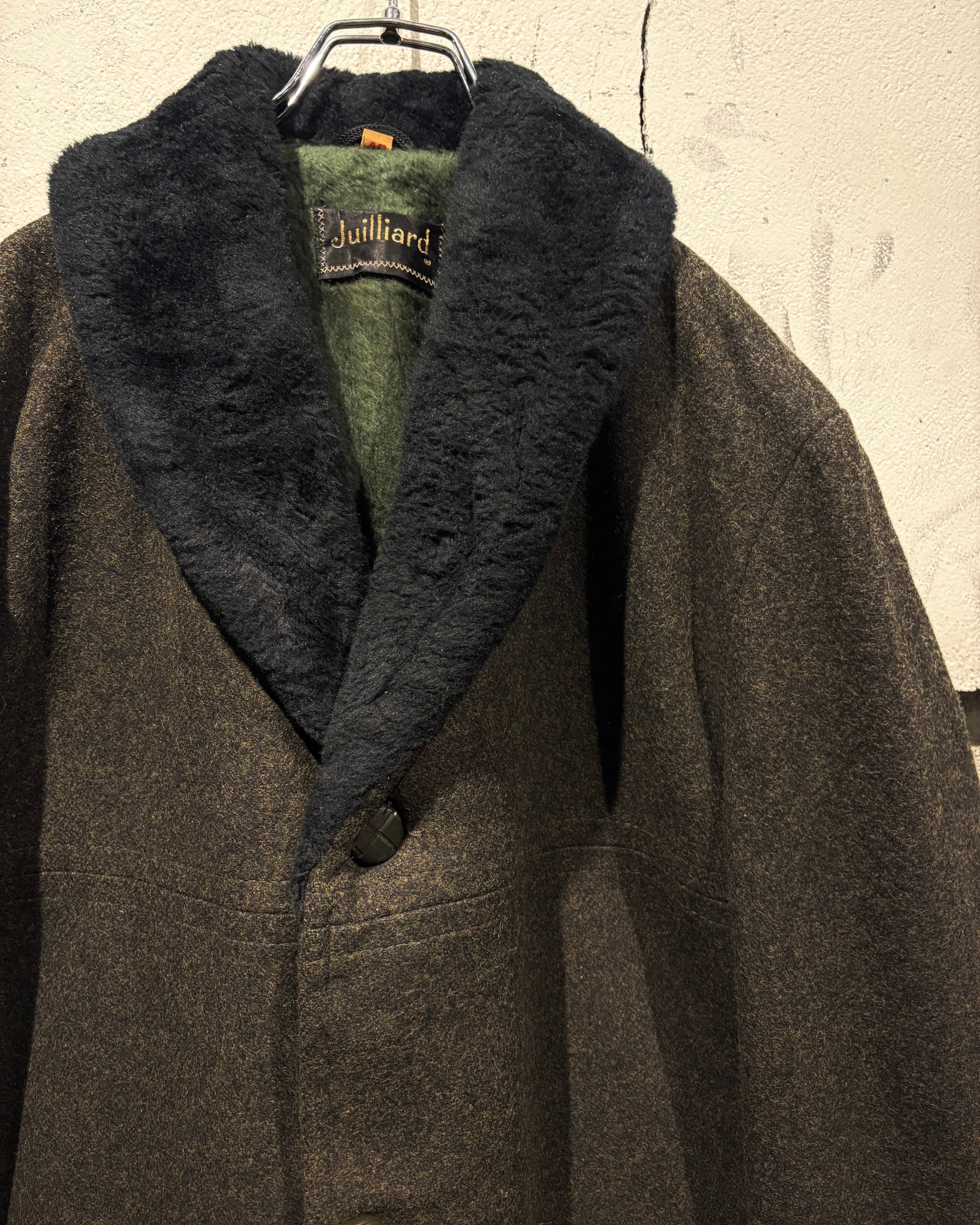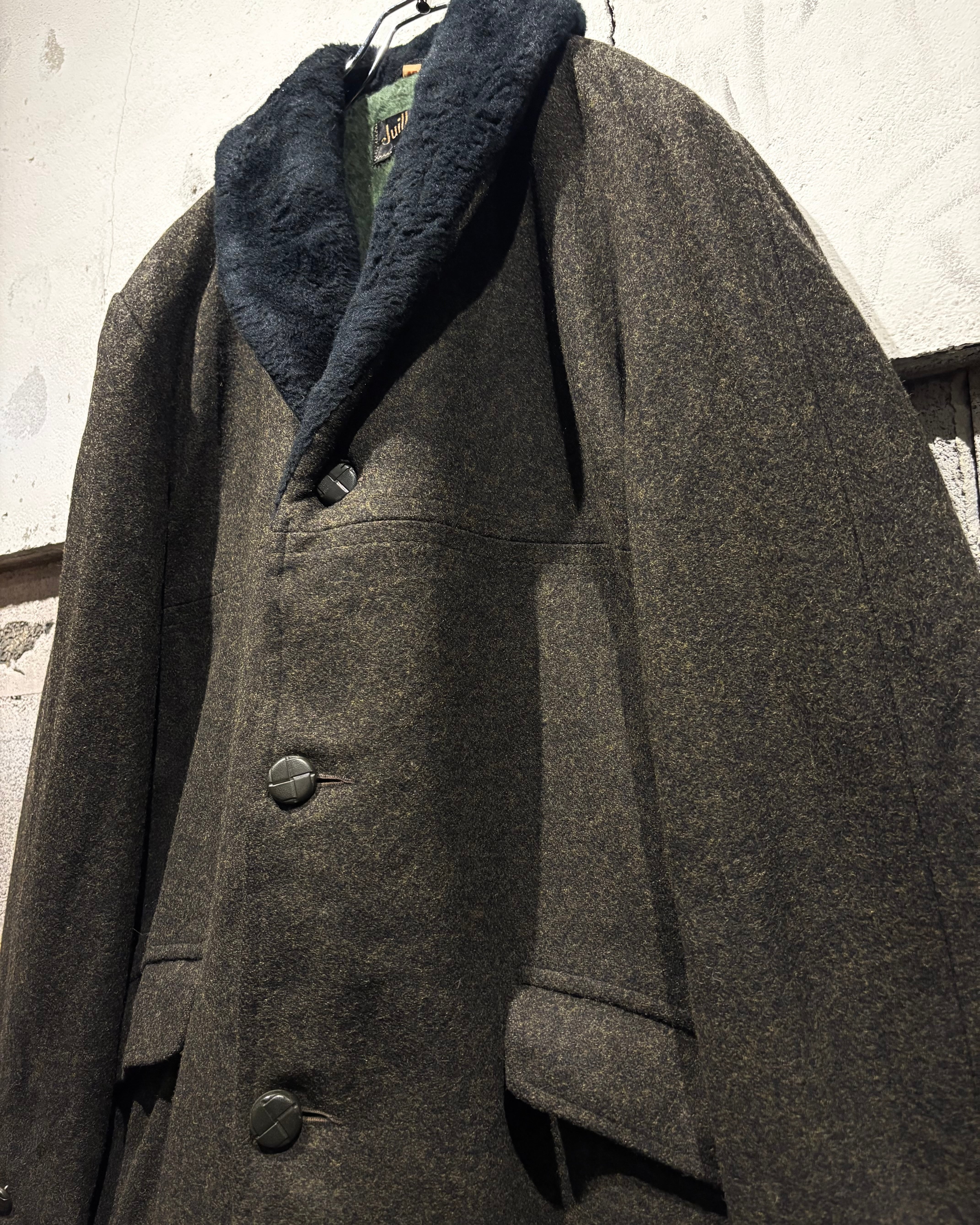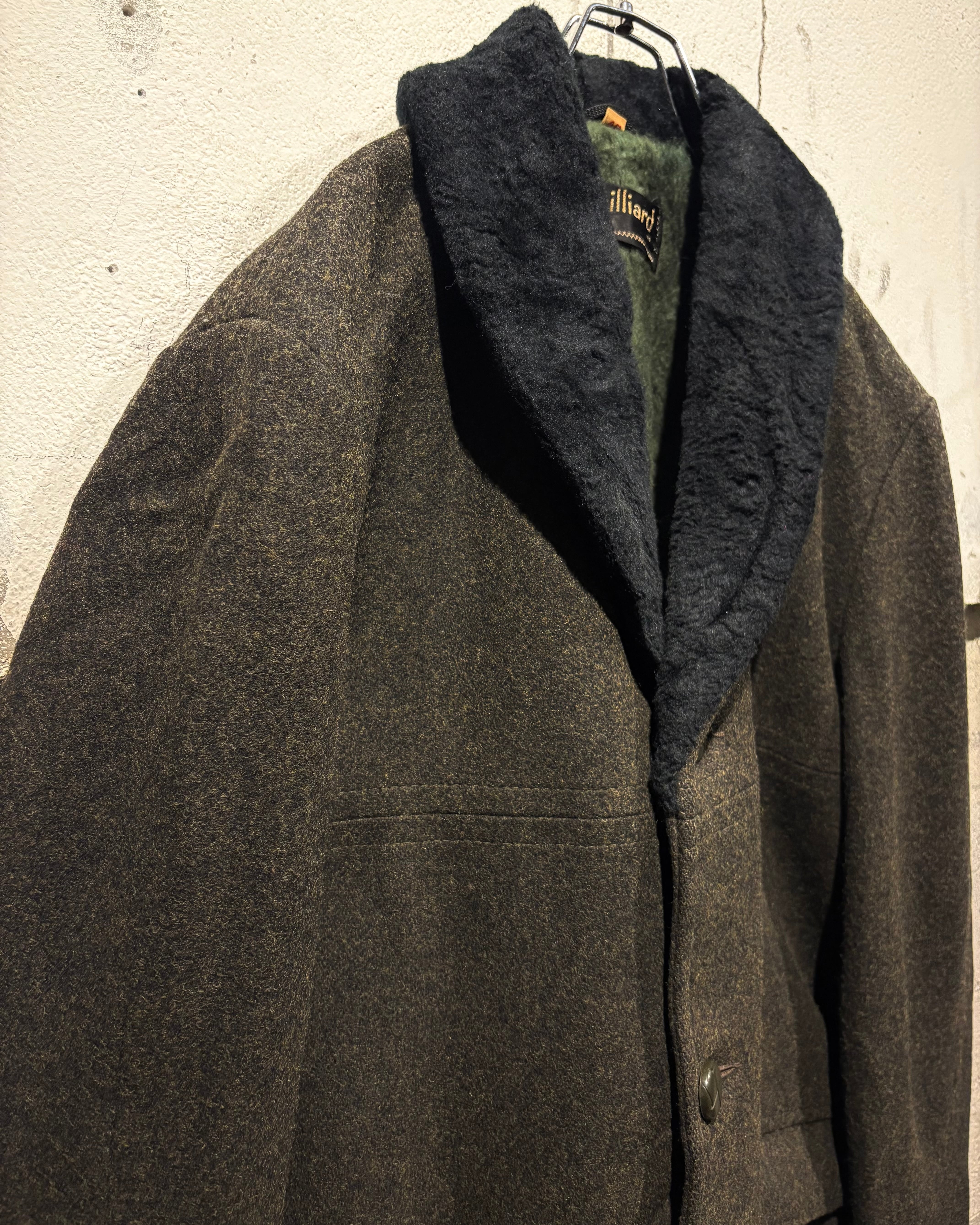 ハリを持ちつつも柔らかく、肉感のあるウールを用いたボディに、襟にはエコファーを切り替えた60'sヴィンテージのコート。