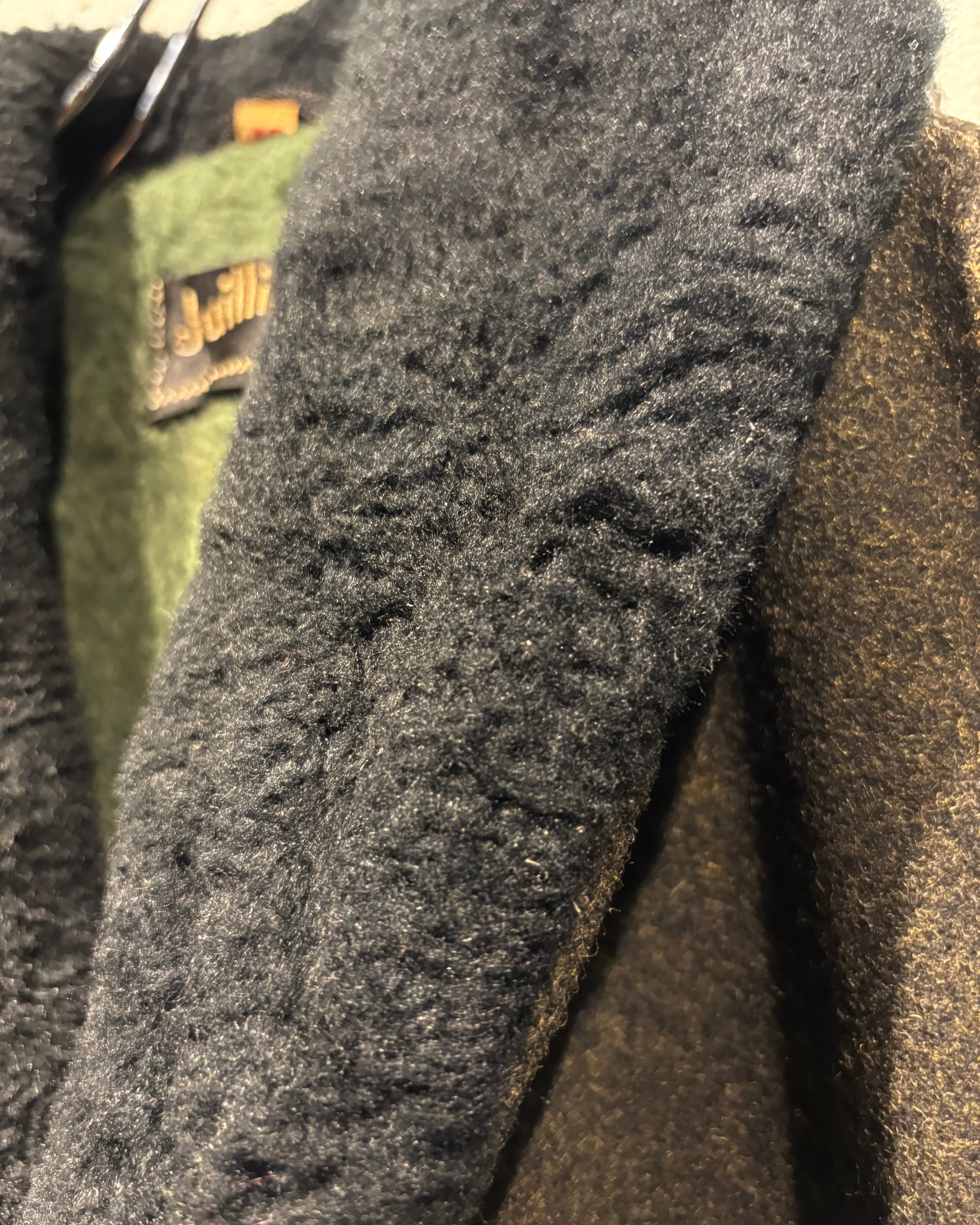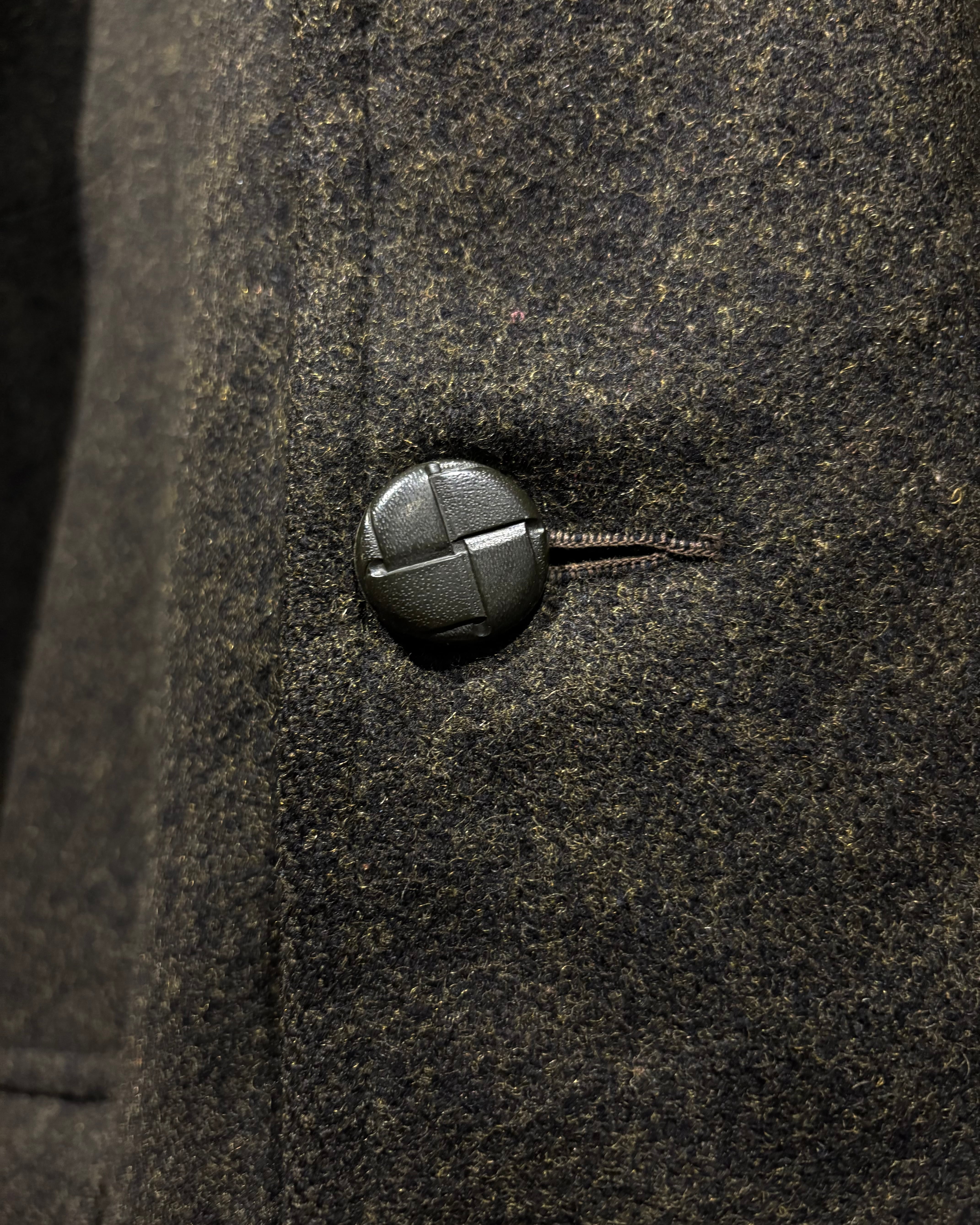 前立てはシングルブレストの仕立て。襟元から内側にかけてファー素材の裏地が付いているため保温性も非常に高く、今時期のアウターとして素晴らしい活躍を見せてくれるかと。