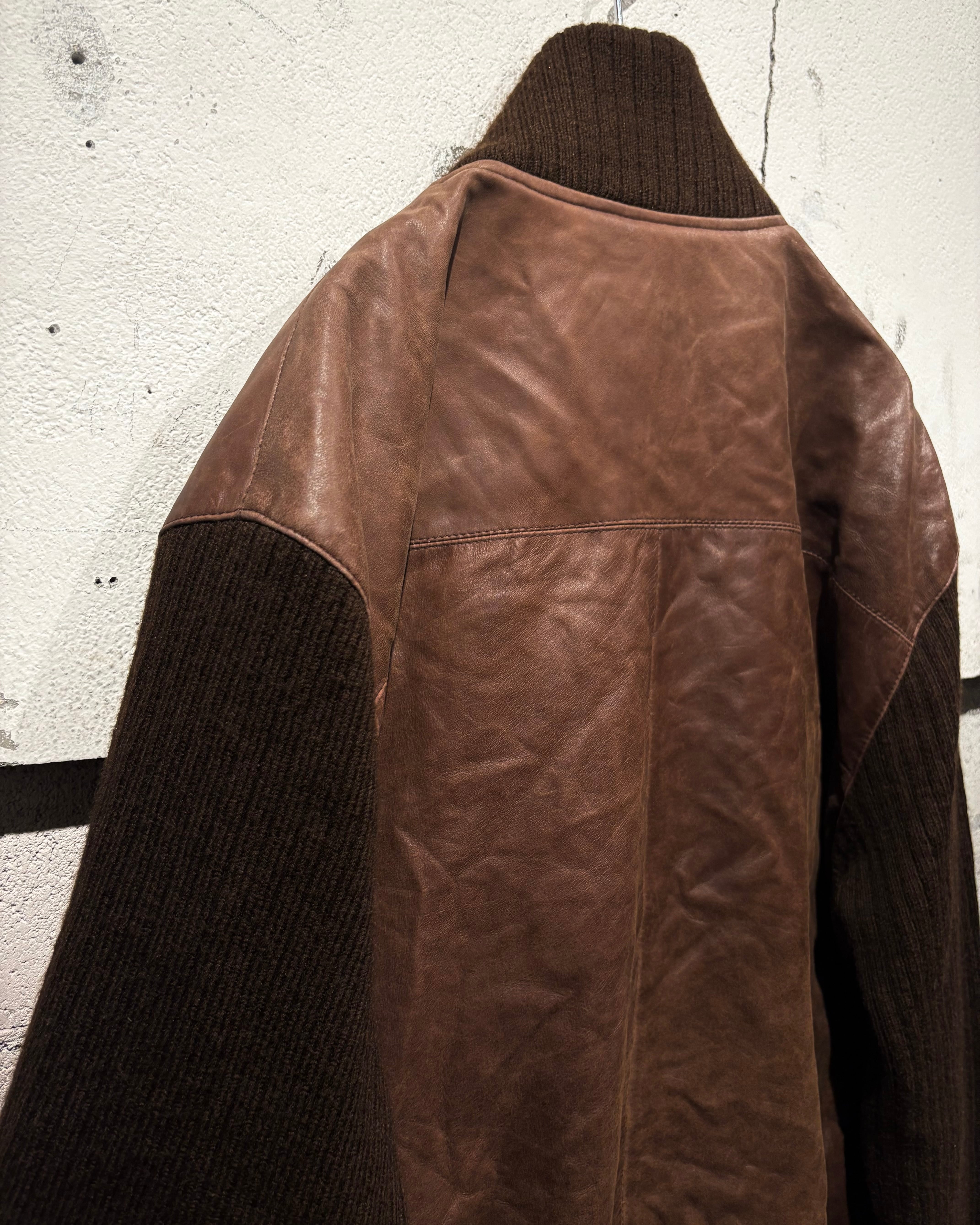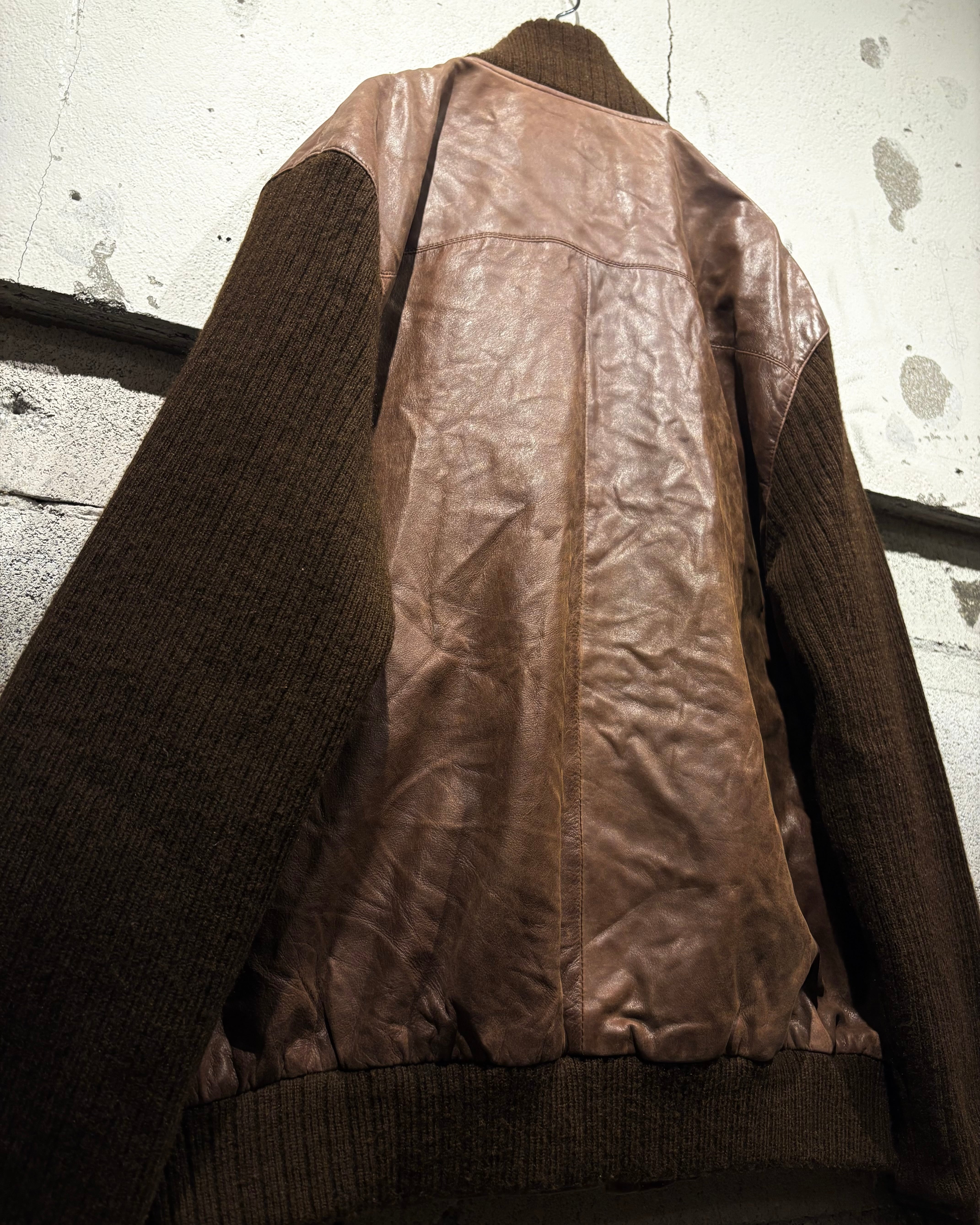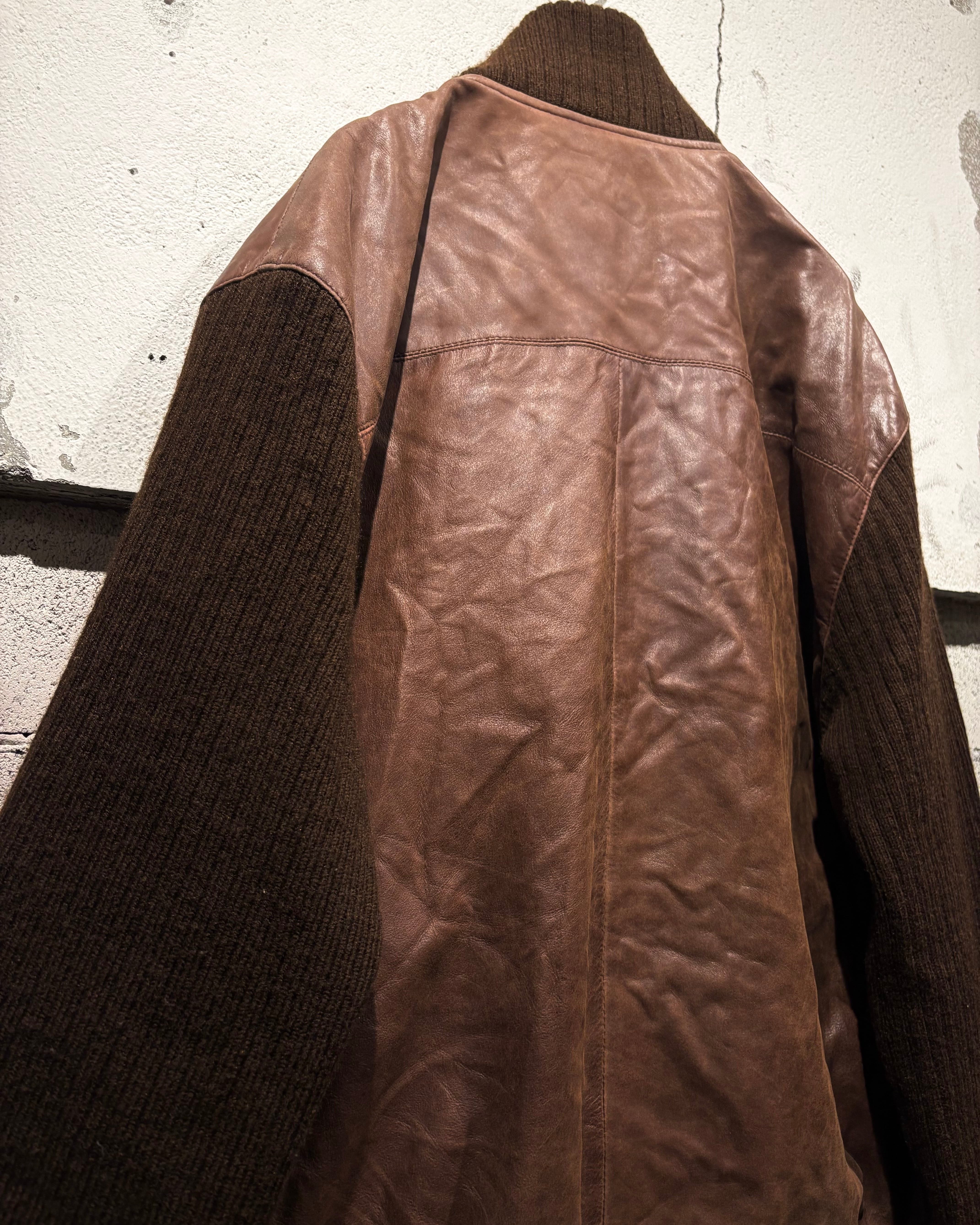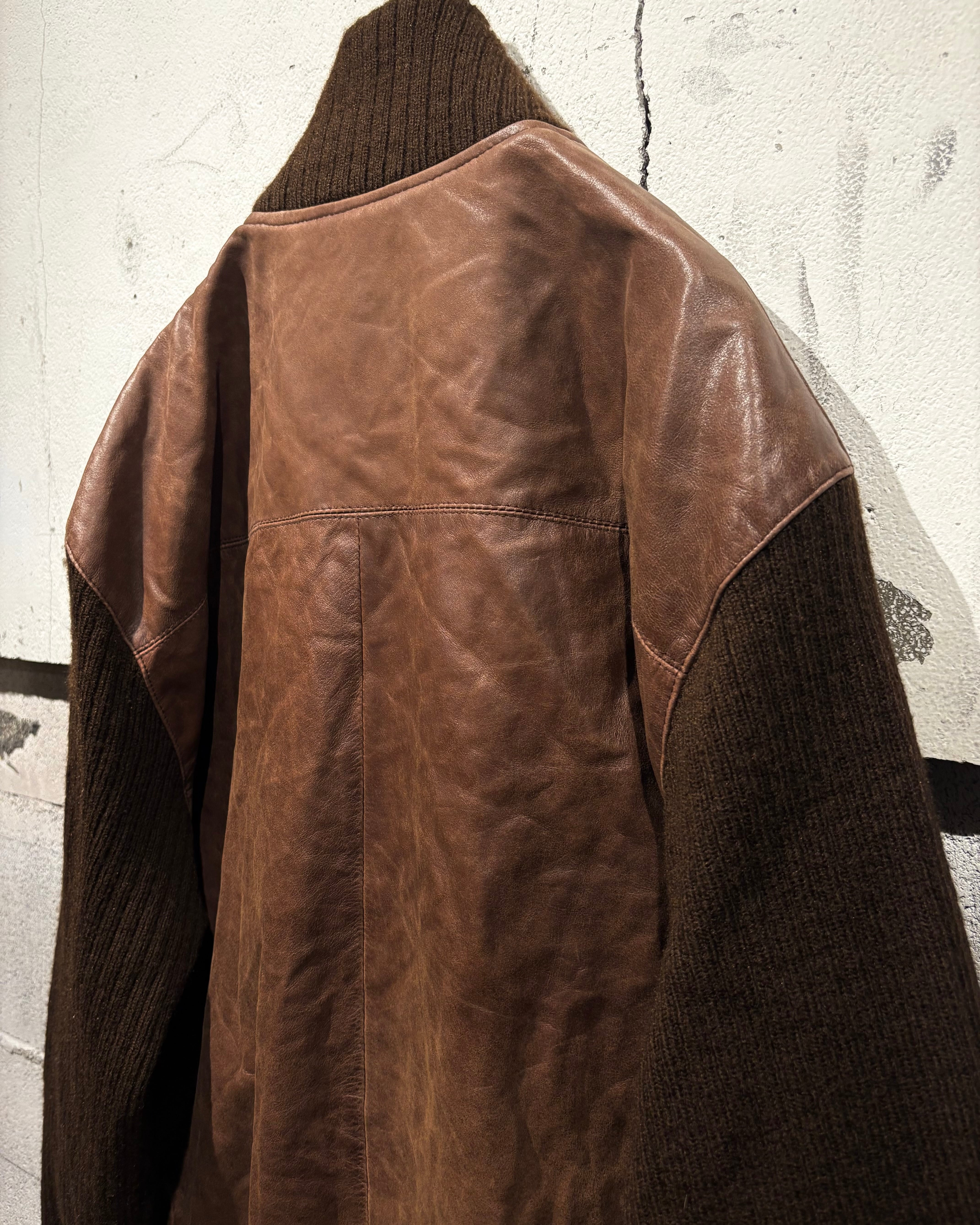 身頃にはブラウンレザー、袖には肉厚なニット素材を採用した異素材のコントラストがGOOD。レザー部分のエイジングも非常に良く、このアイテムの雰囲気をグッと引き立てています。