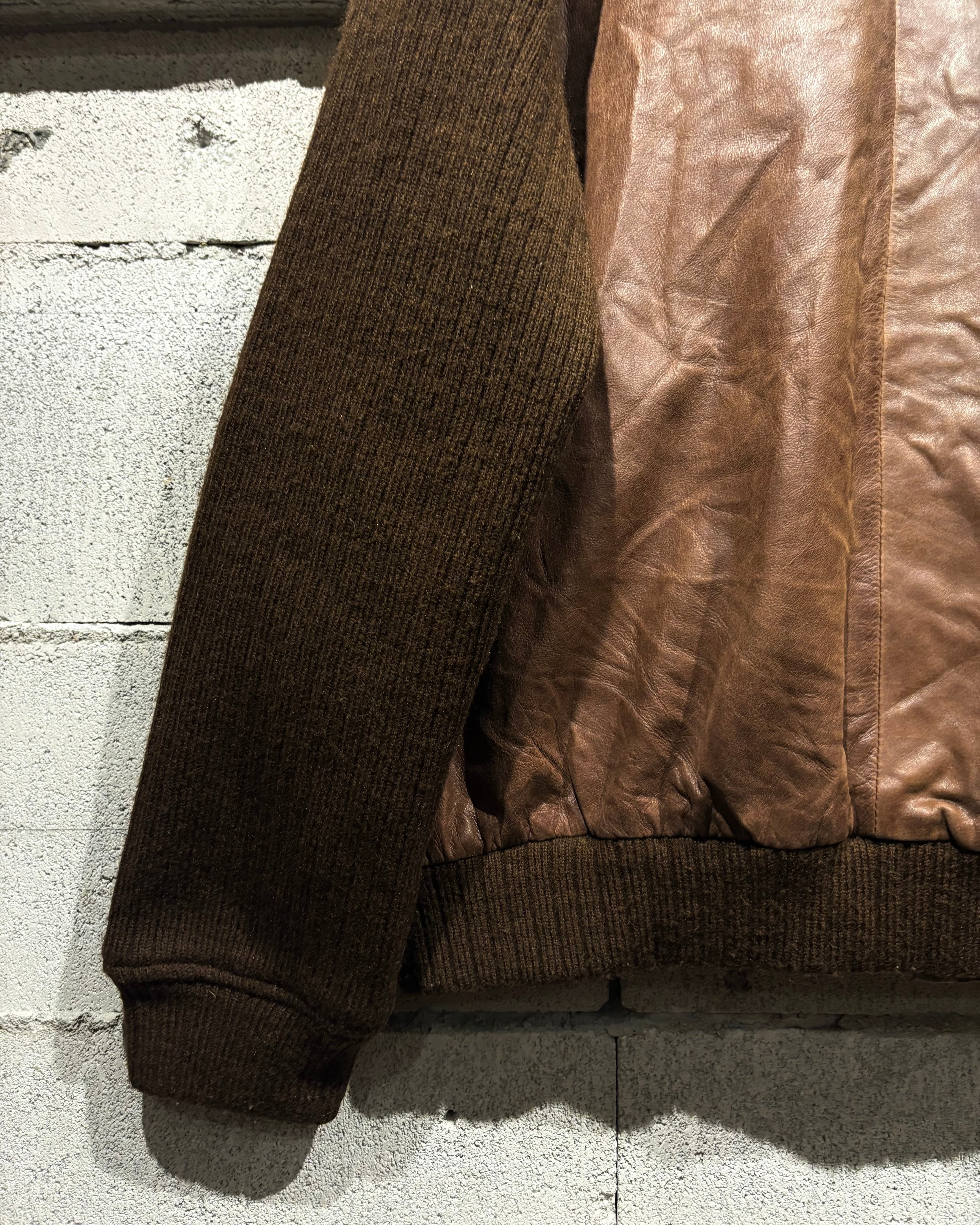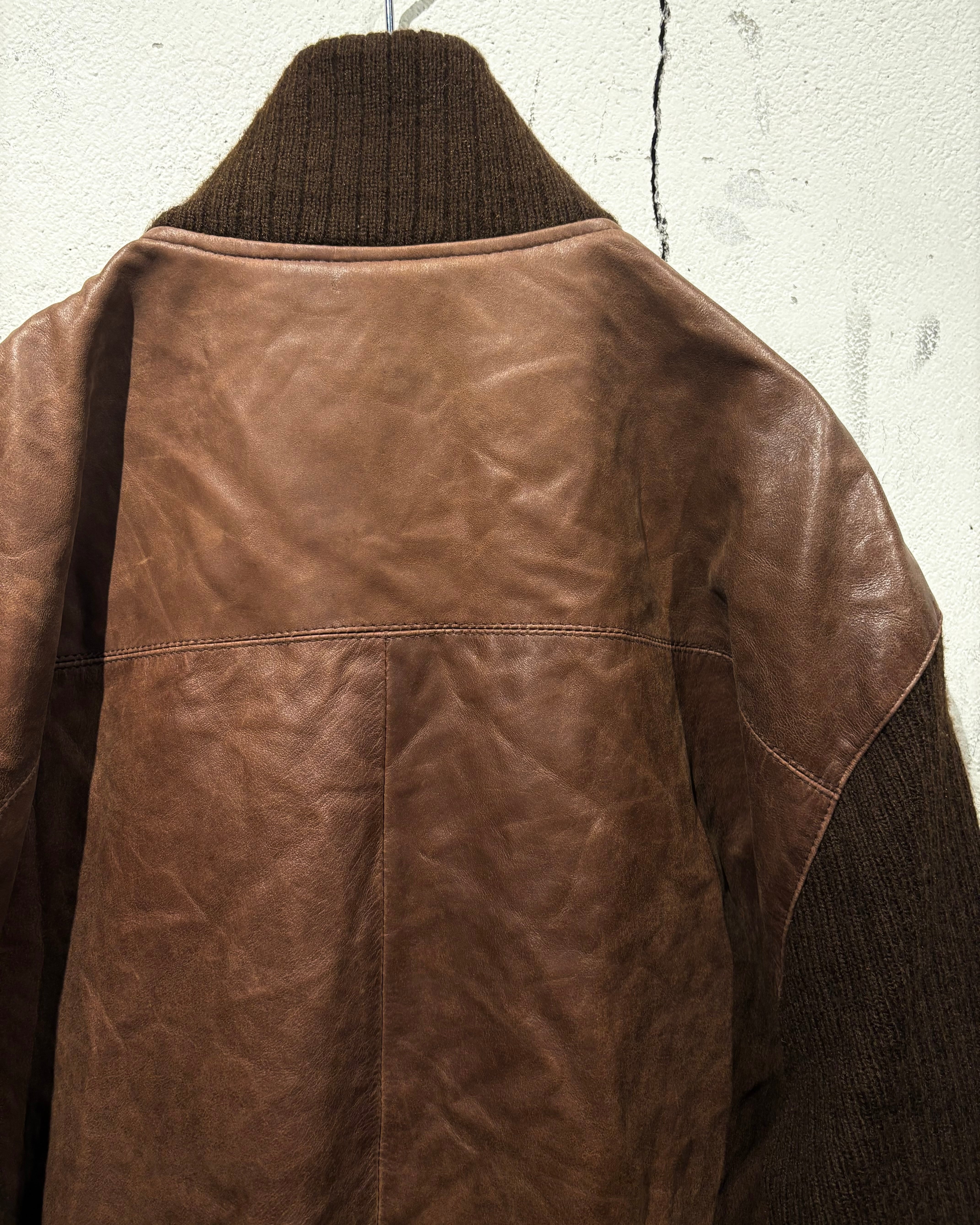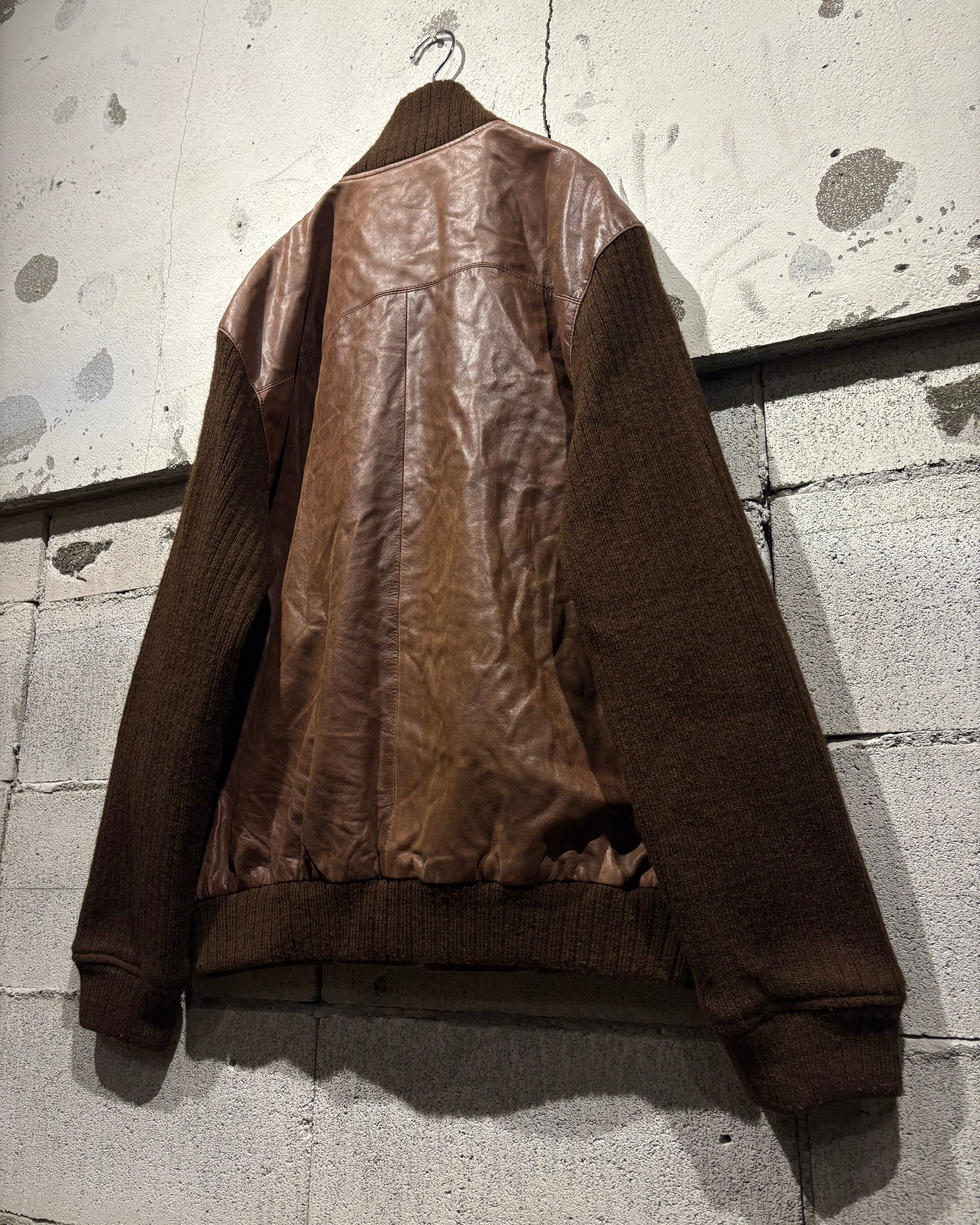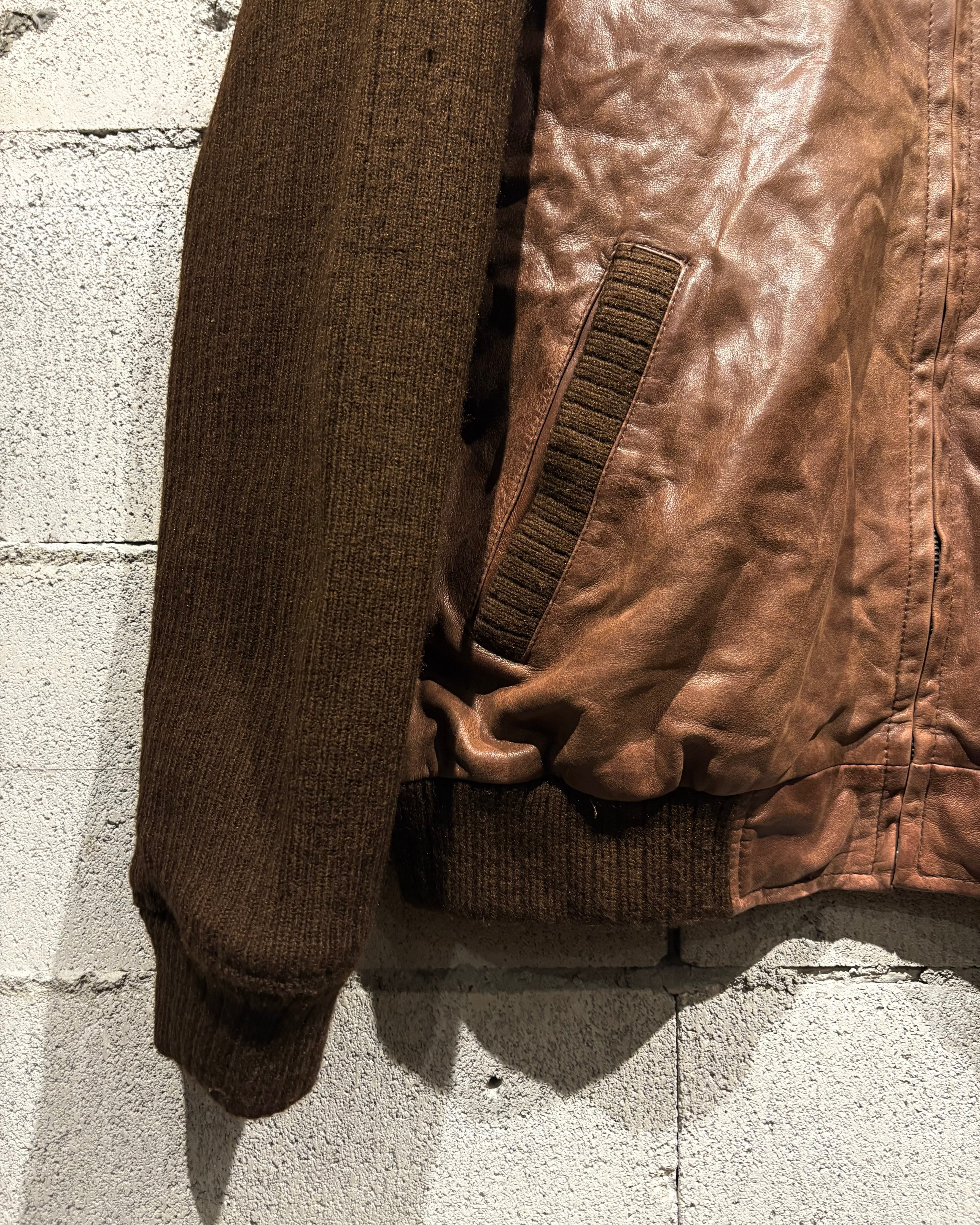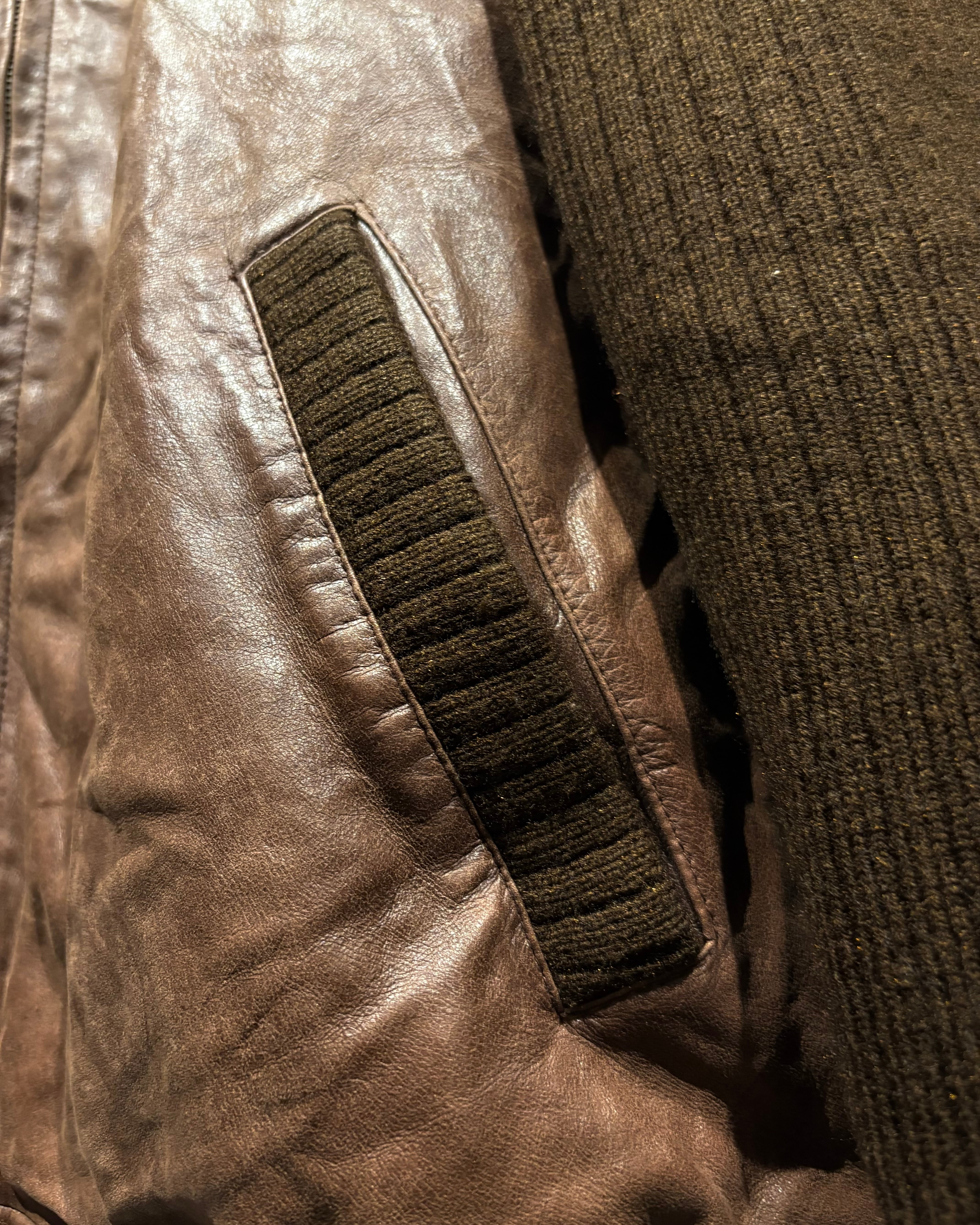 身頃にはブラウンレザー、袖には肉厚なニット素材を採用した異素材のコントラストがGOOD。レザー部分のエイジングも非常に良く、このアイテムの雰囲気をグッと引き立てています。