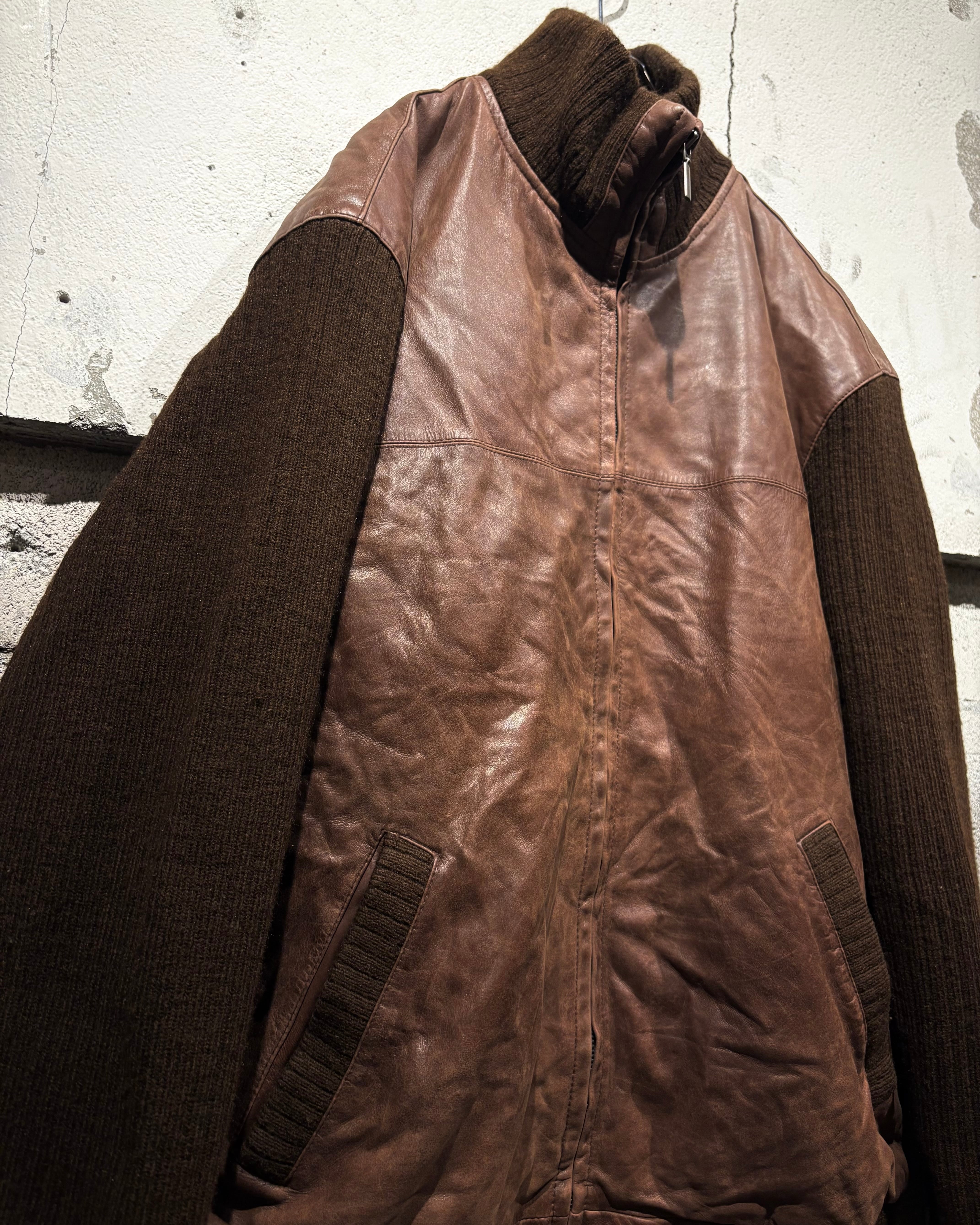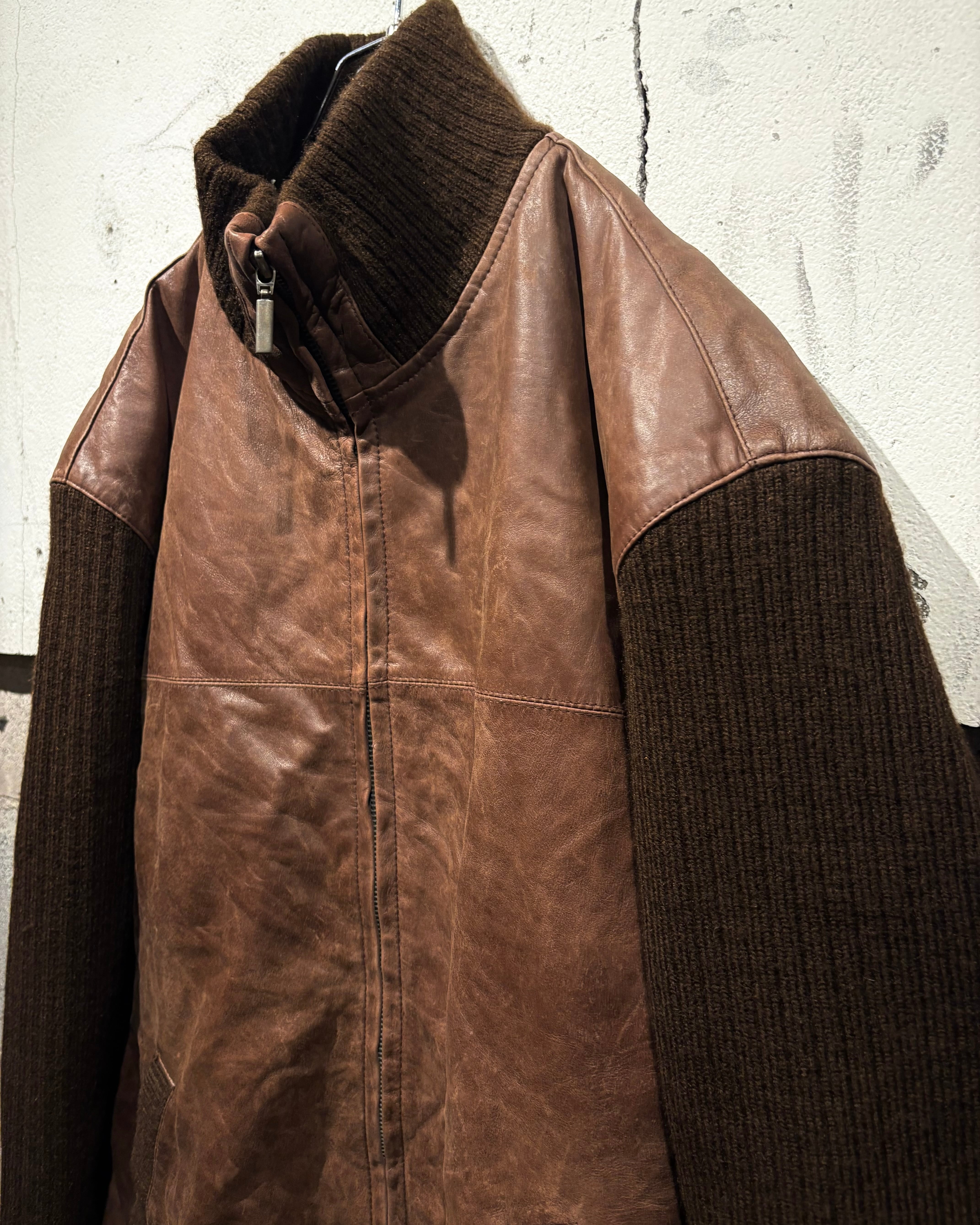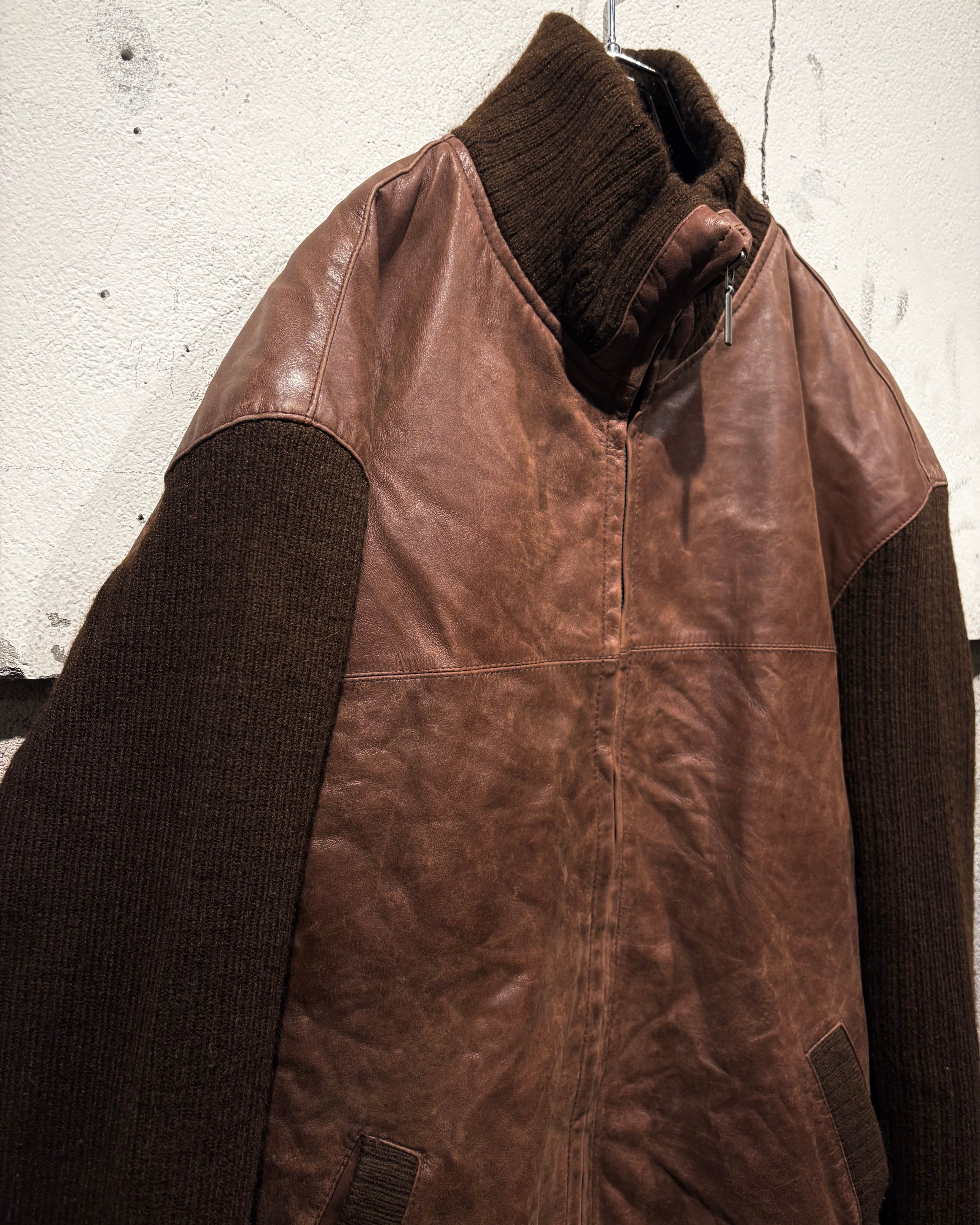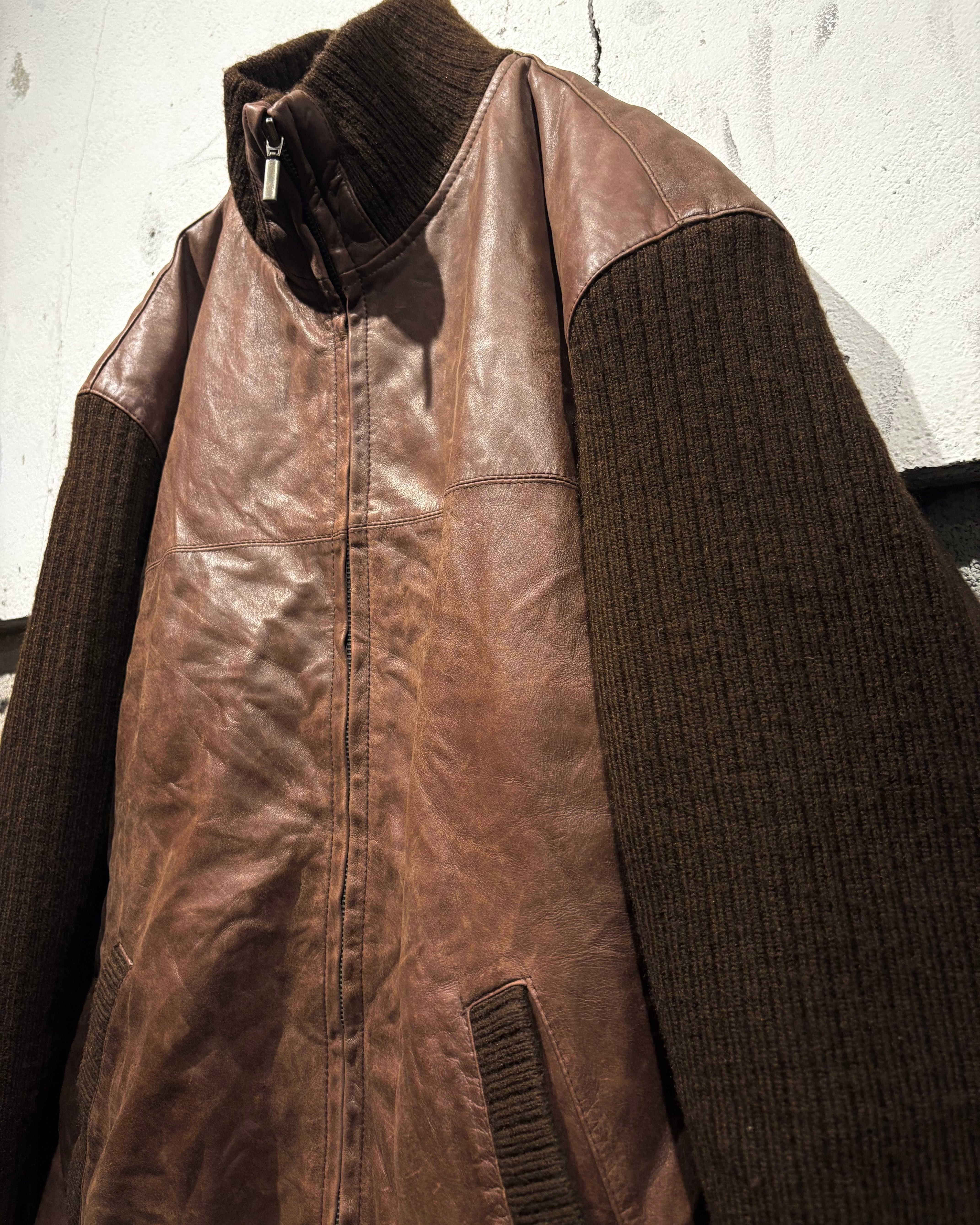 身頃にはブラウンレザー、袖には肉厚なニット素材を採用した異素材のコントラストがGOOD。レザー部分のエイジングも非常に良く、このアイテムの雰囲気をグッと引き立てています。