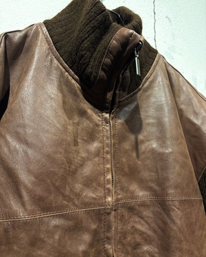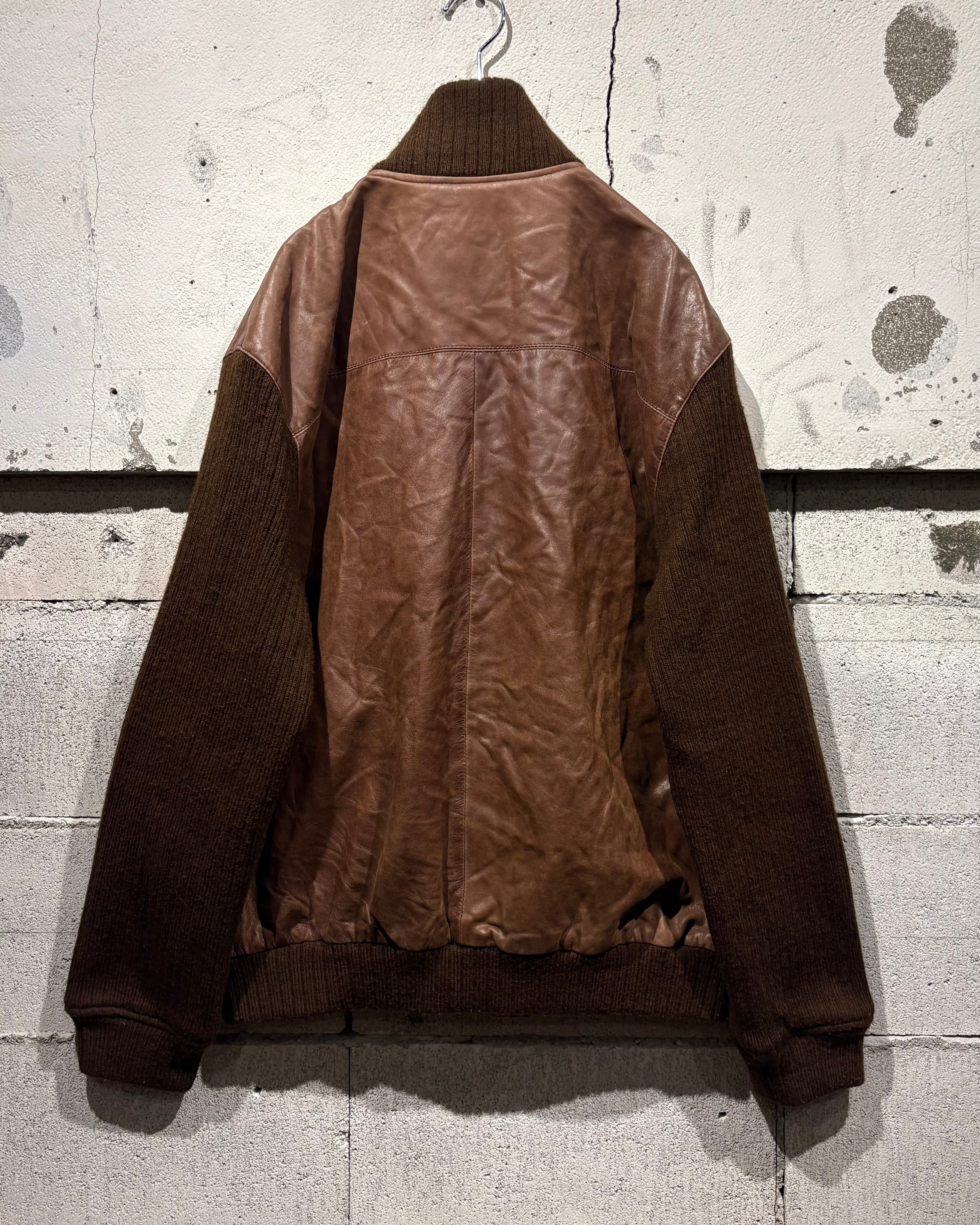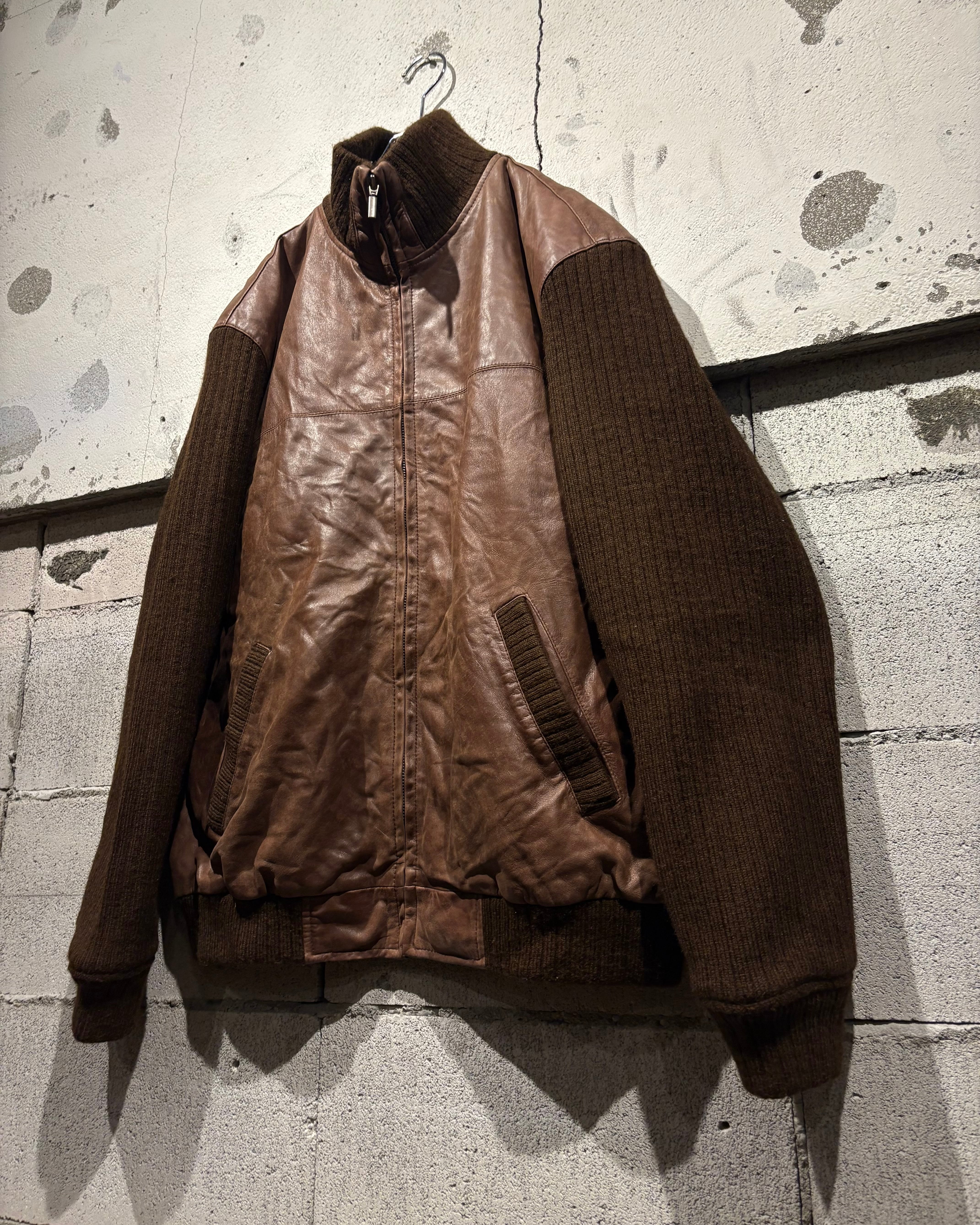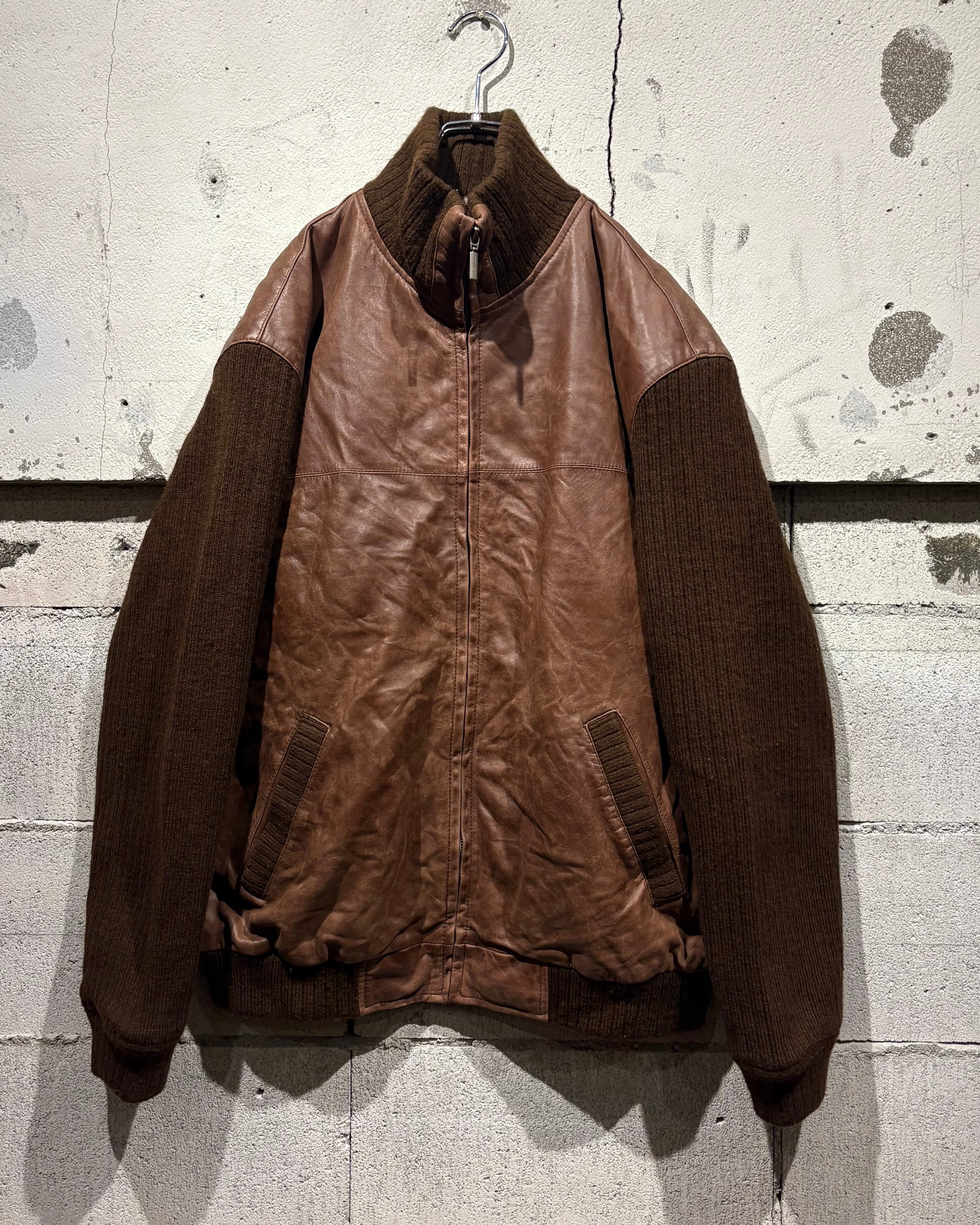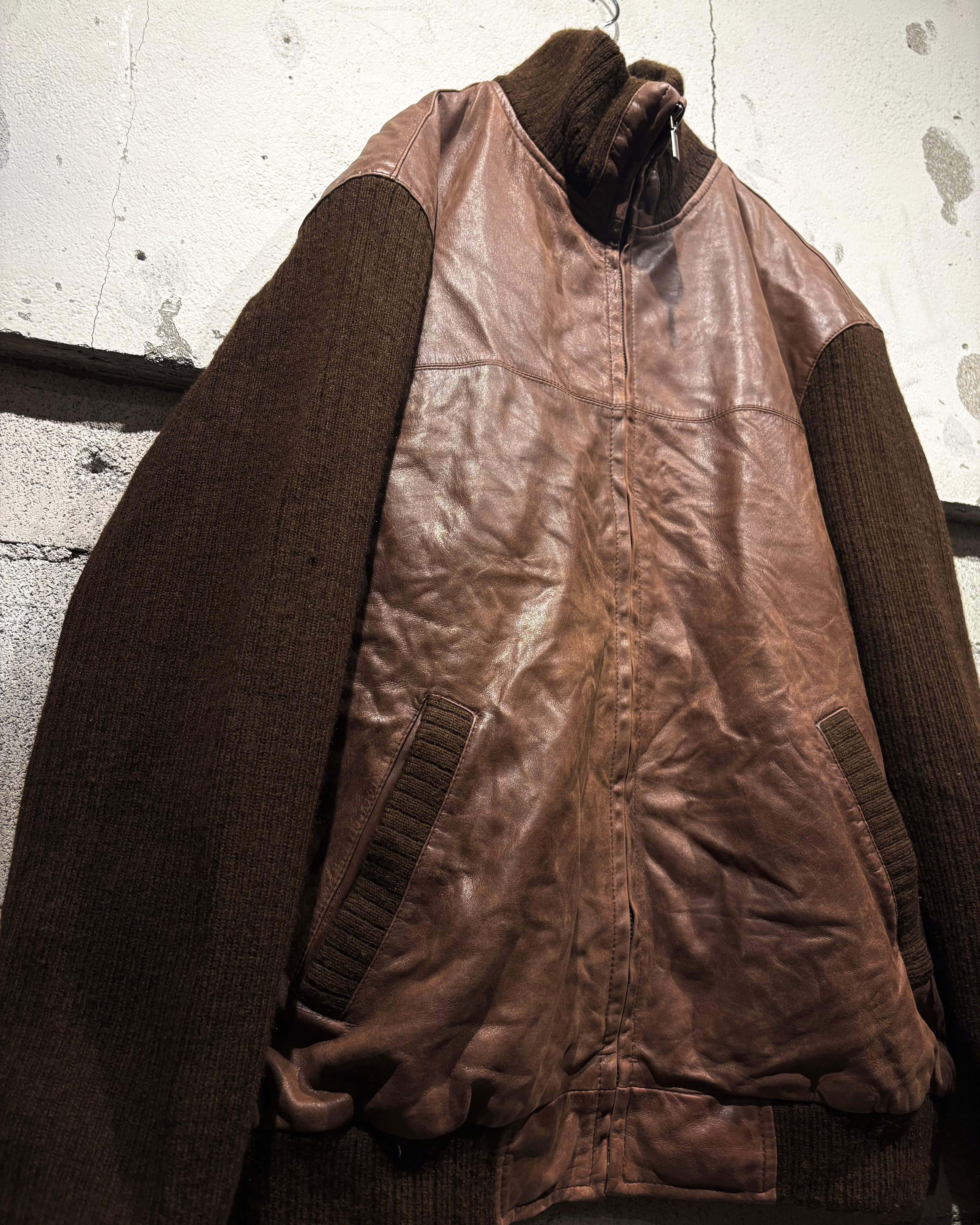 身頃にはブラウンレザー、袖には肉厚なニット素材を採用した異素材のコントラストがGOOD。レザー部分のエイジングも非常に良く、このアイテムの雰囲気をグッと引き立てています。