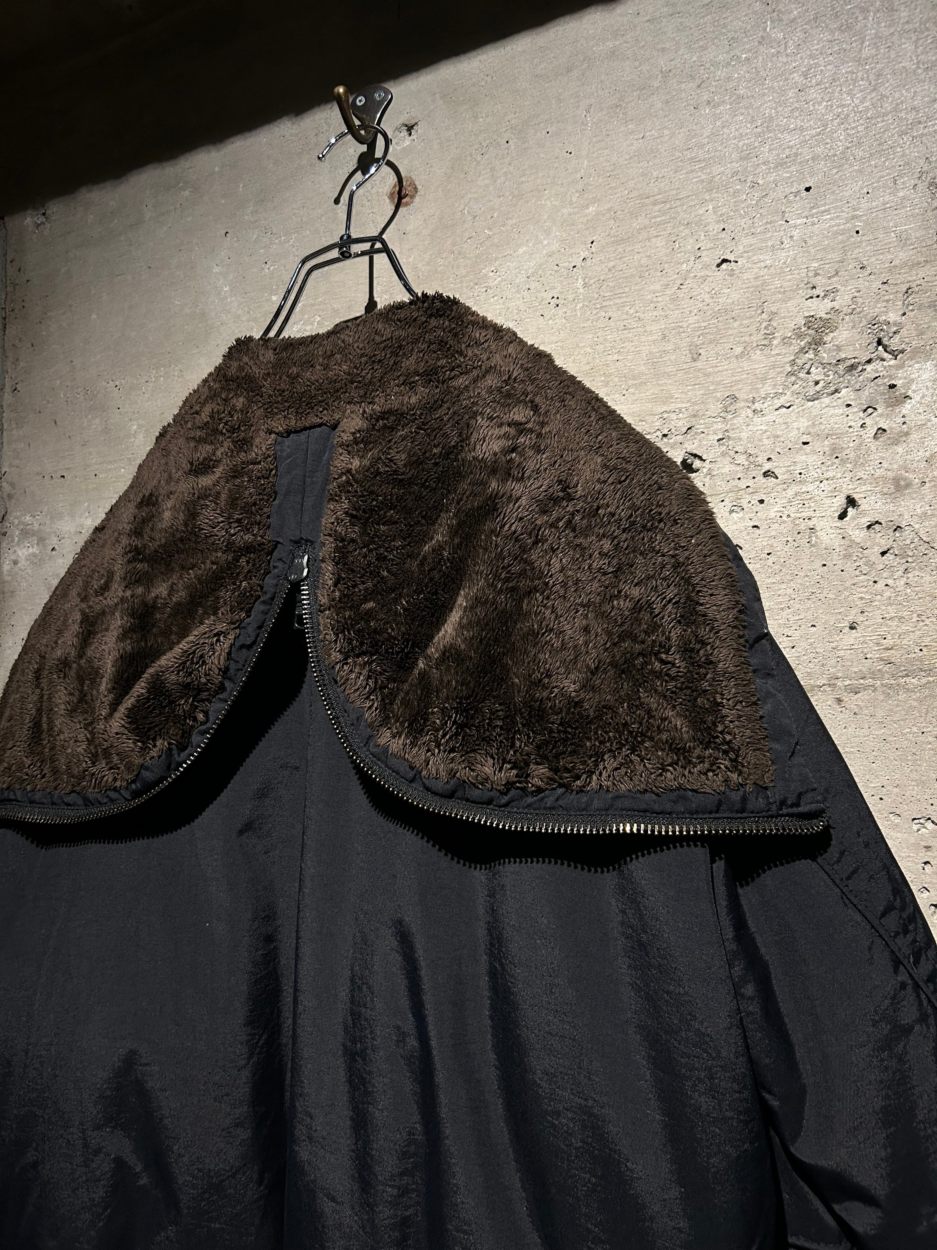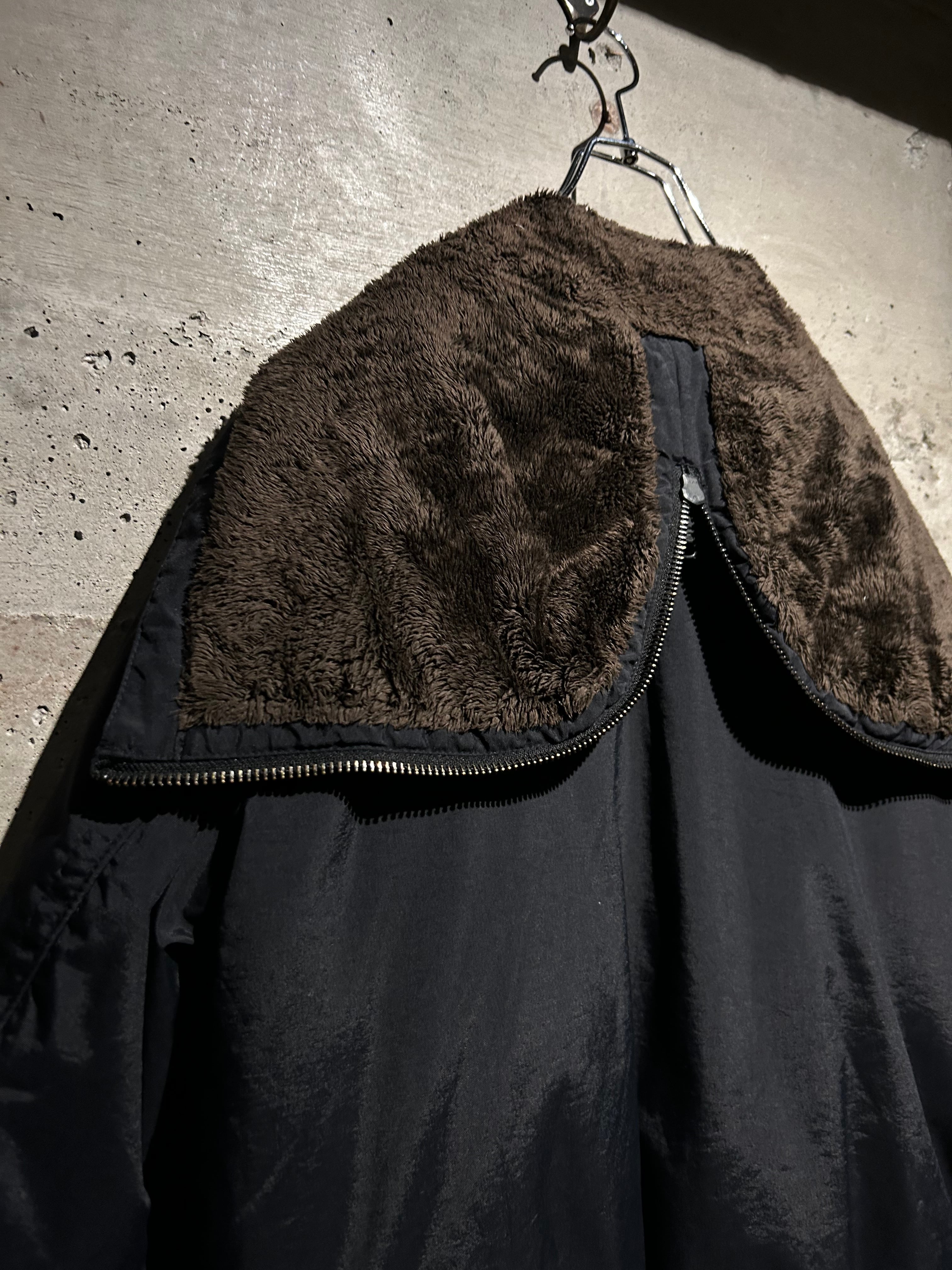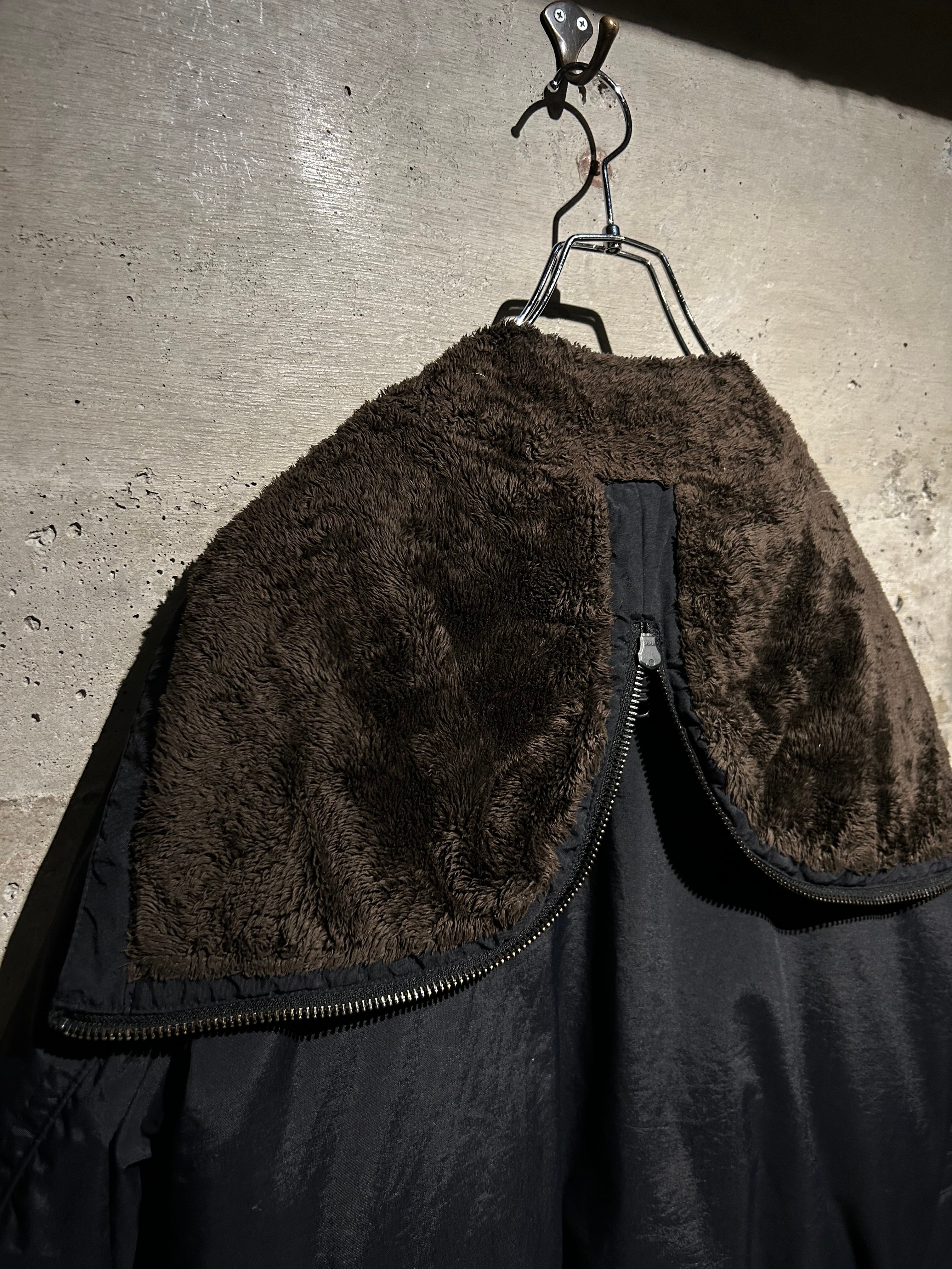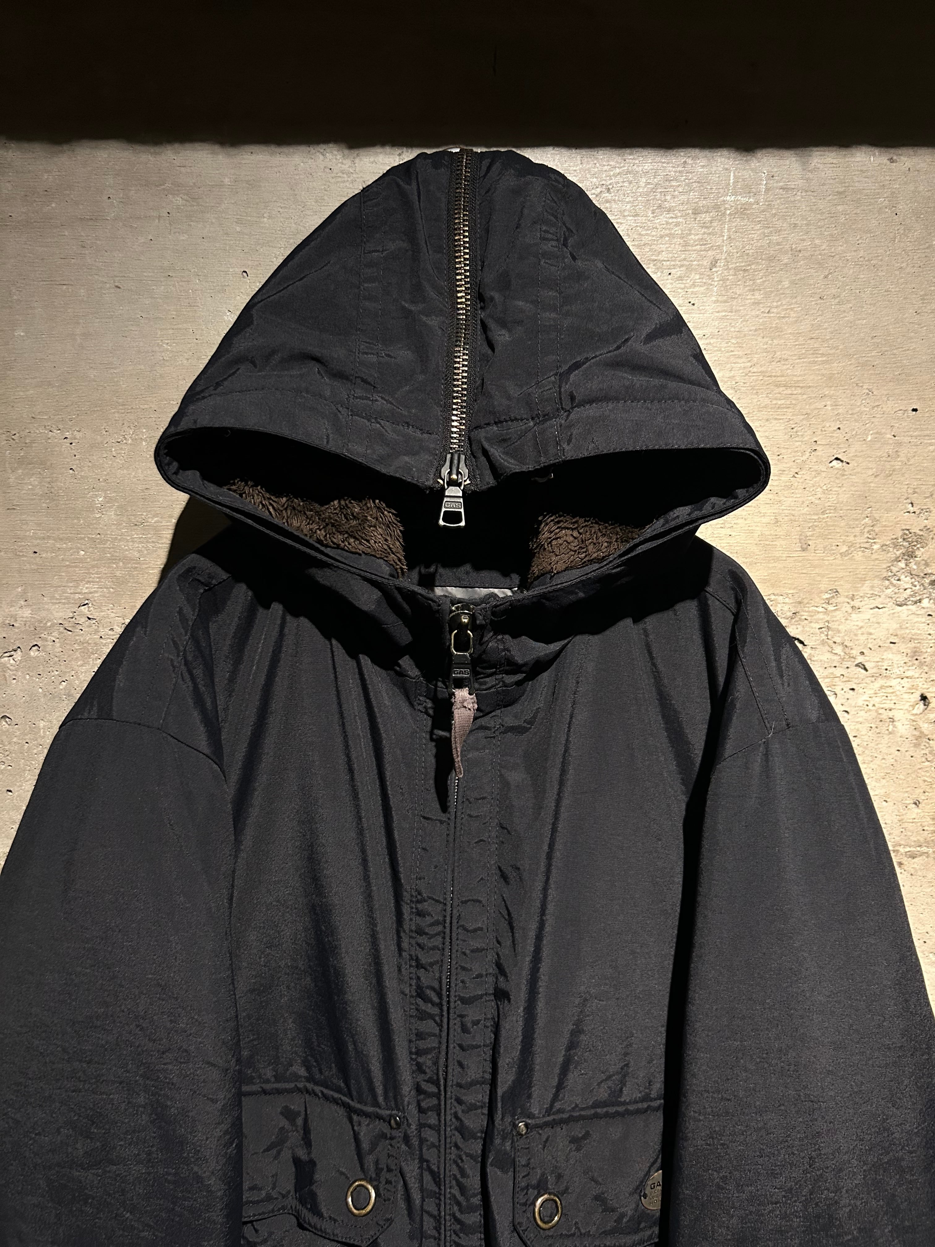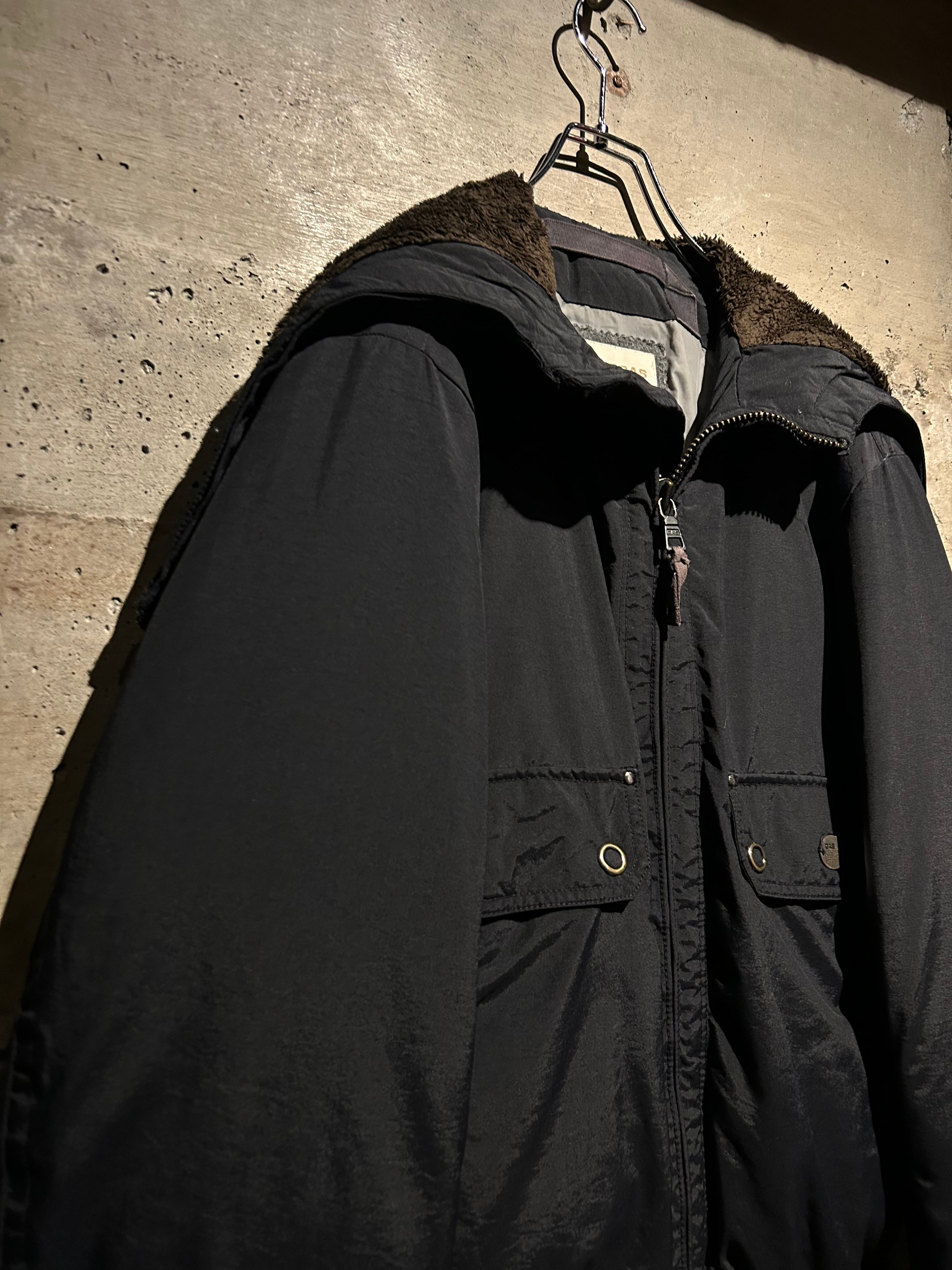 ジップで分割可能なフードもしっかりと作る込まれており、アイコニックなディテールですが、内側にブラウンのファーを切り替えることでモダンなルックスに。フラップポケットのネームプレートのアクセントも◎