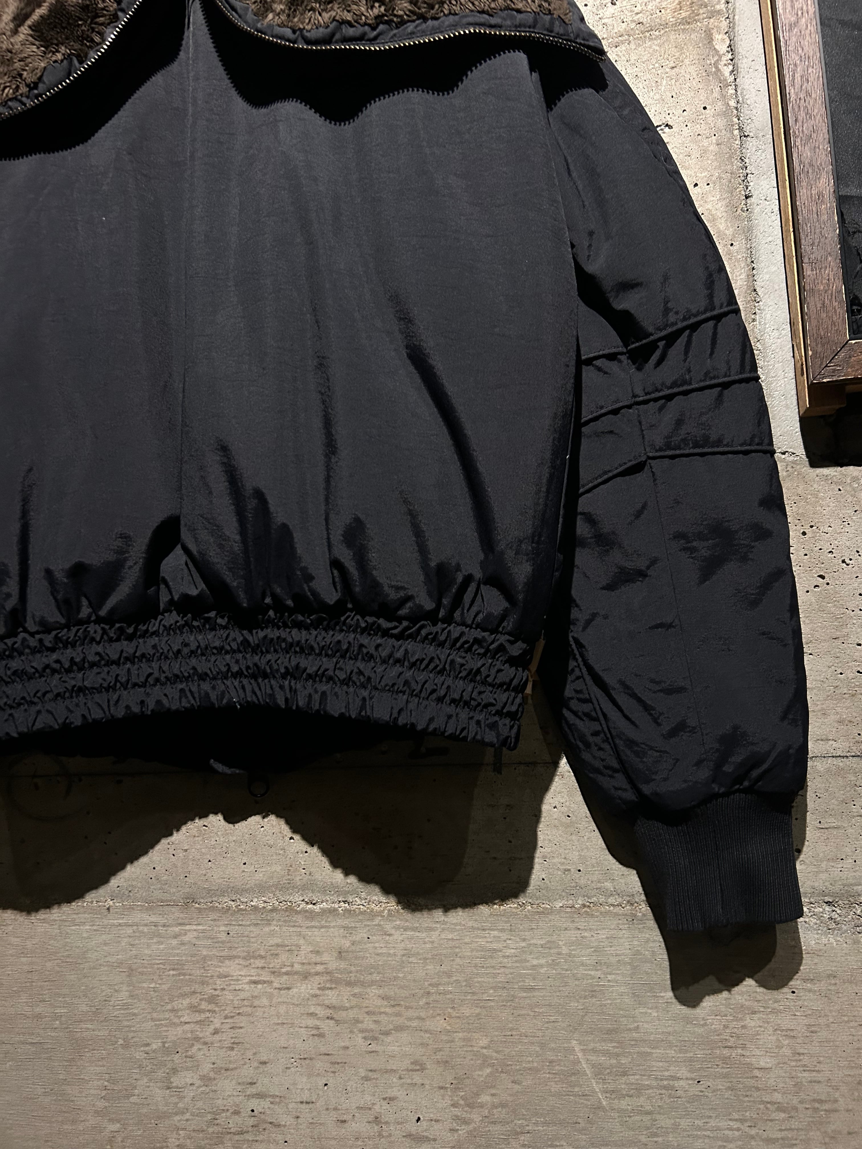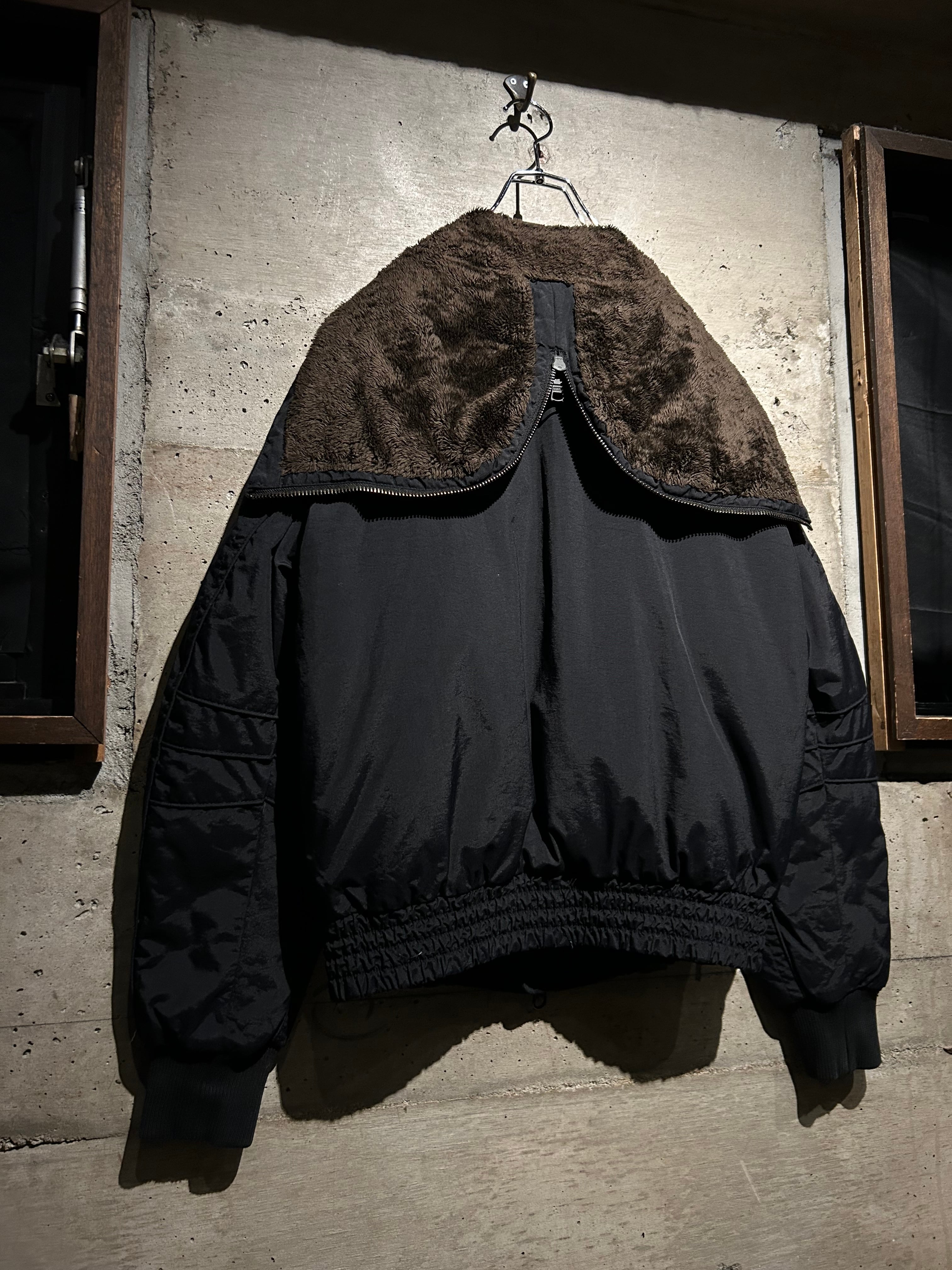 N-2Bを象徴するショート丈×ボリューム感のあるシルエットをベースに、光沢を抑えたブラックナイロンボディを採用。ミリタリー特有の無骨さを残しつつ、洗練された印象に仕上がっています。