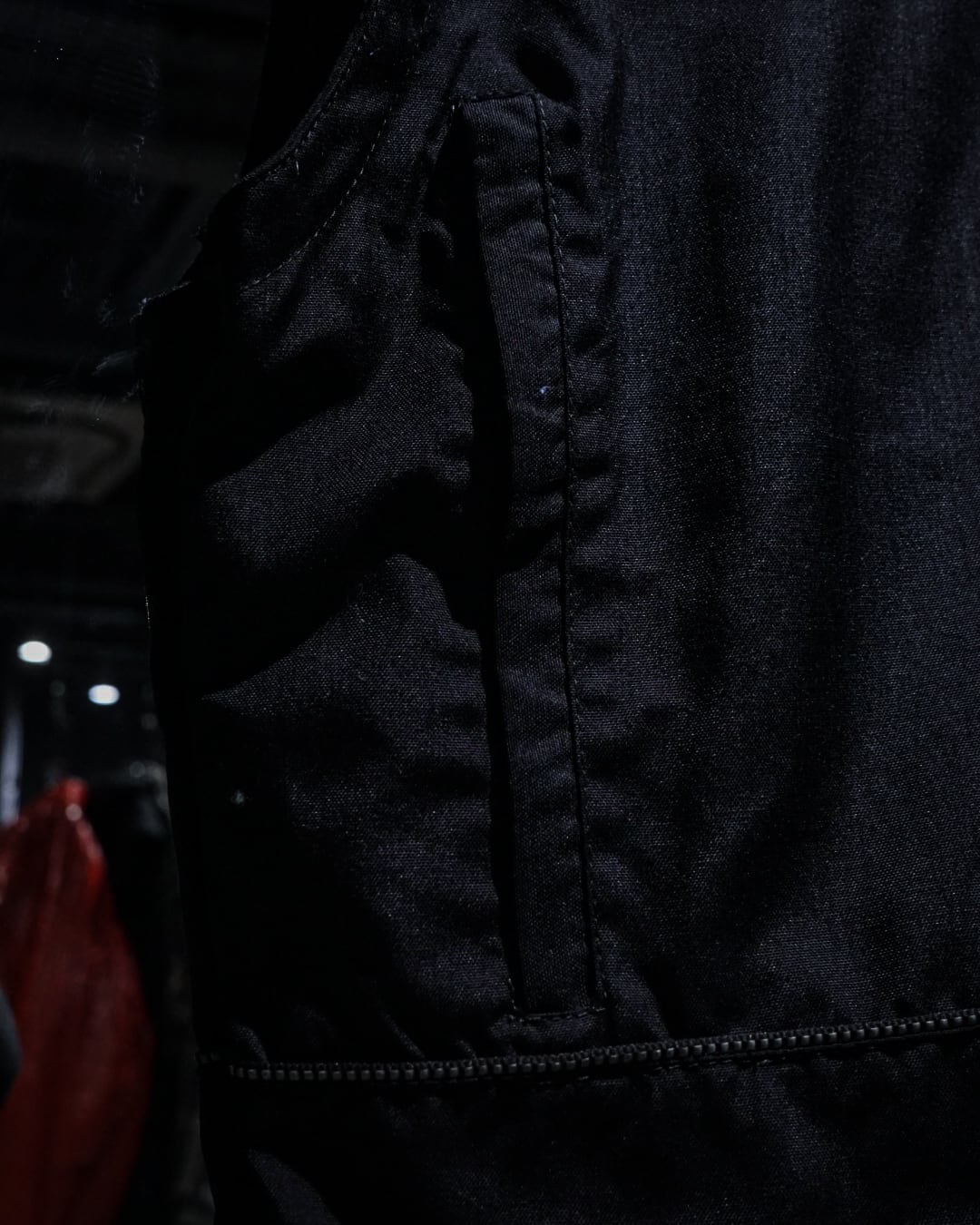 最大の特徴は、アーム部分をジップで着脱可能なコンバーチブル仕様。ロングスリーブジャケットとしてはもちろん、アームを外してベストとしても着用でき、シーズンやスタイリングに応じて表情を変えられる実用的なデザインです。