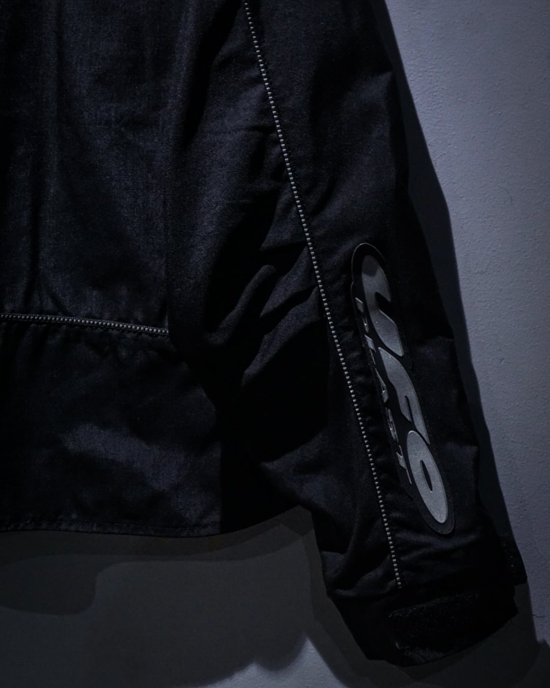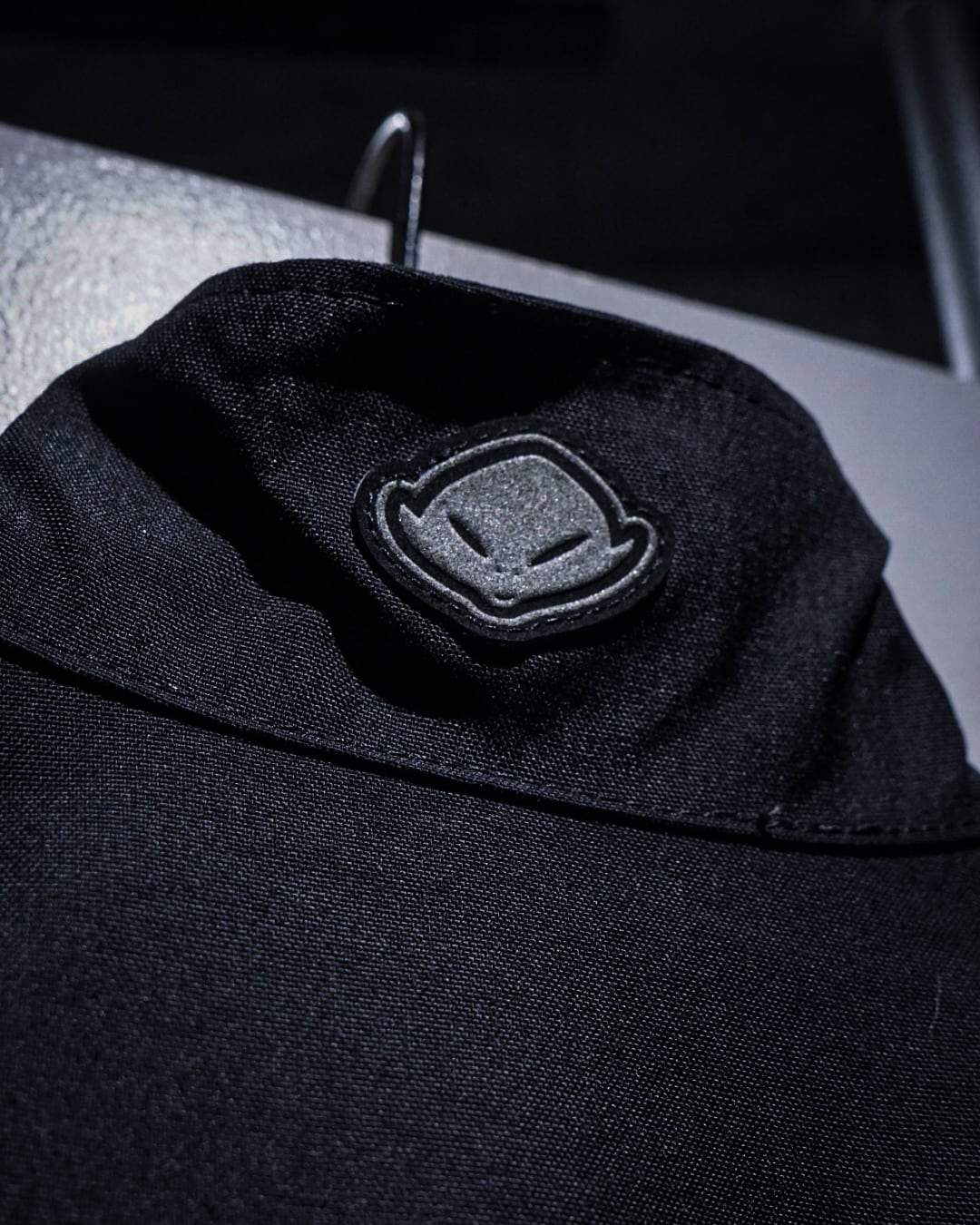 フロントには立体的なフラップポケットとジップポケットをバランス良く配置。随所にリフレクターパイピングを取り入れ、左胸にはロゴパッチ、アームには大胆なロゴプリント、背面首元にはエイリアンパッチを配置。無機質さの中にもしっかりと主張のある仕上がりとなっています。