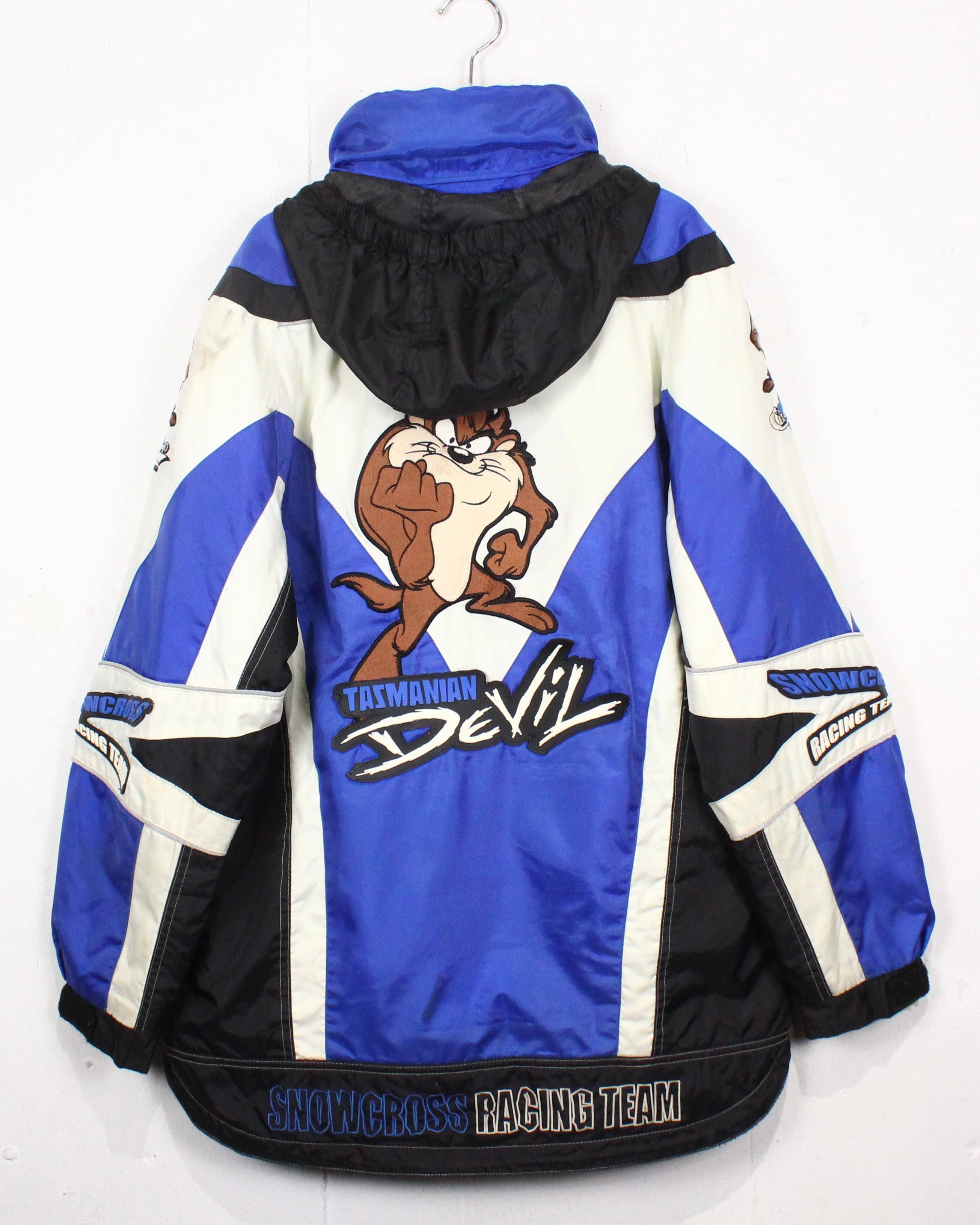 フロント、背面にはタズマニアンデビルを主役に据えたシリコンパッチや刺繍を配し、レーシングウェアらしいエネルギッシュなムードを全面に押し出しています。