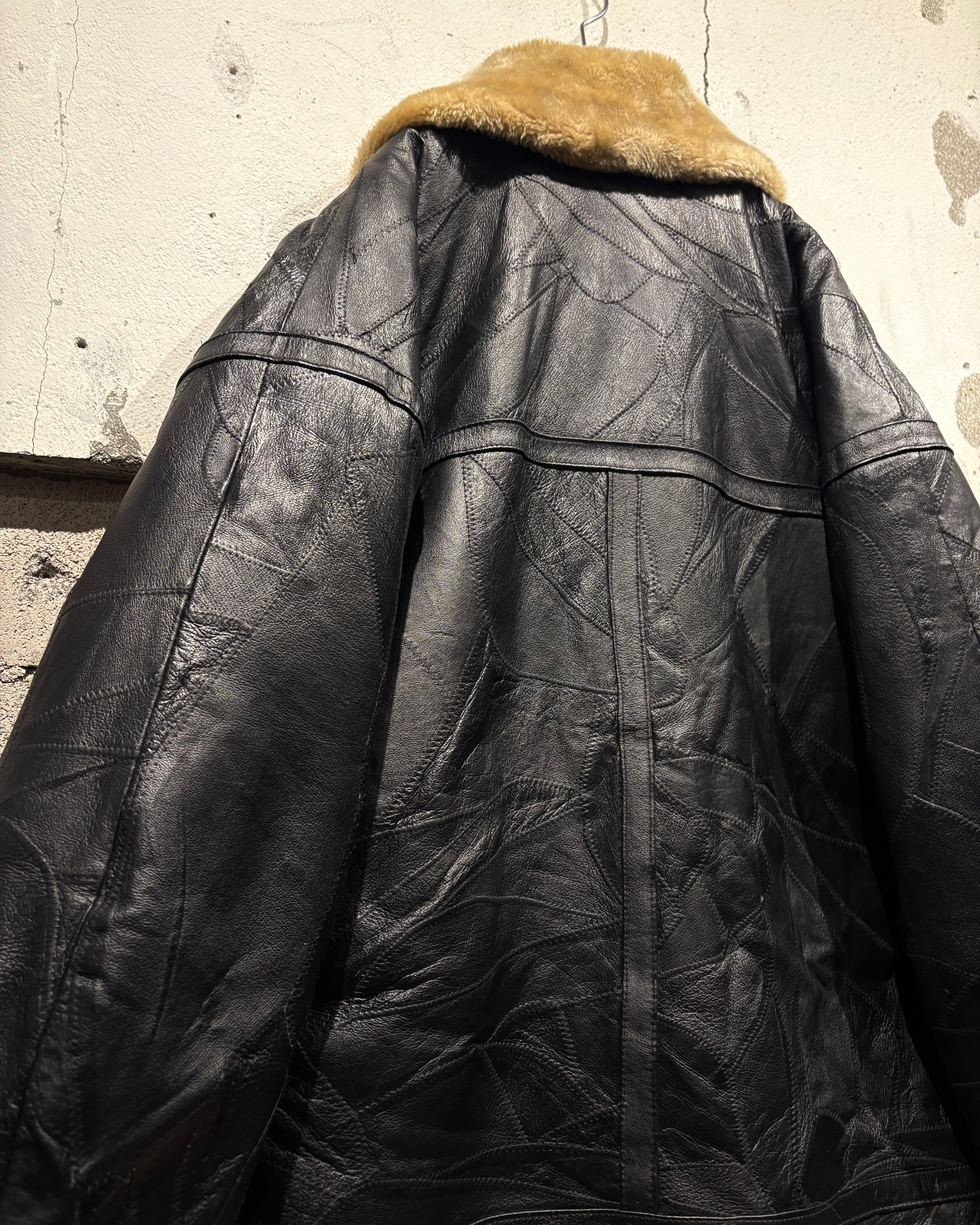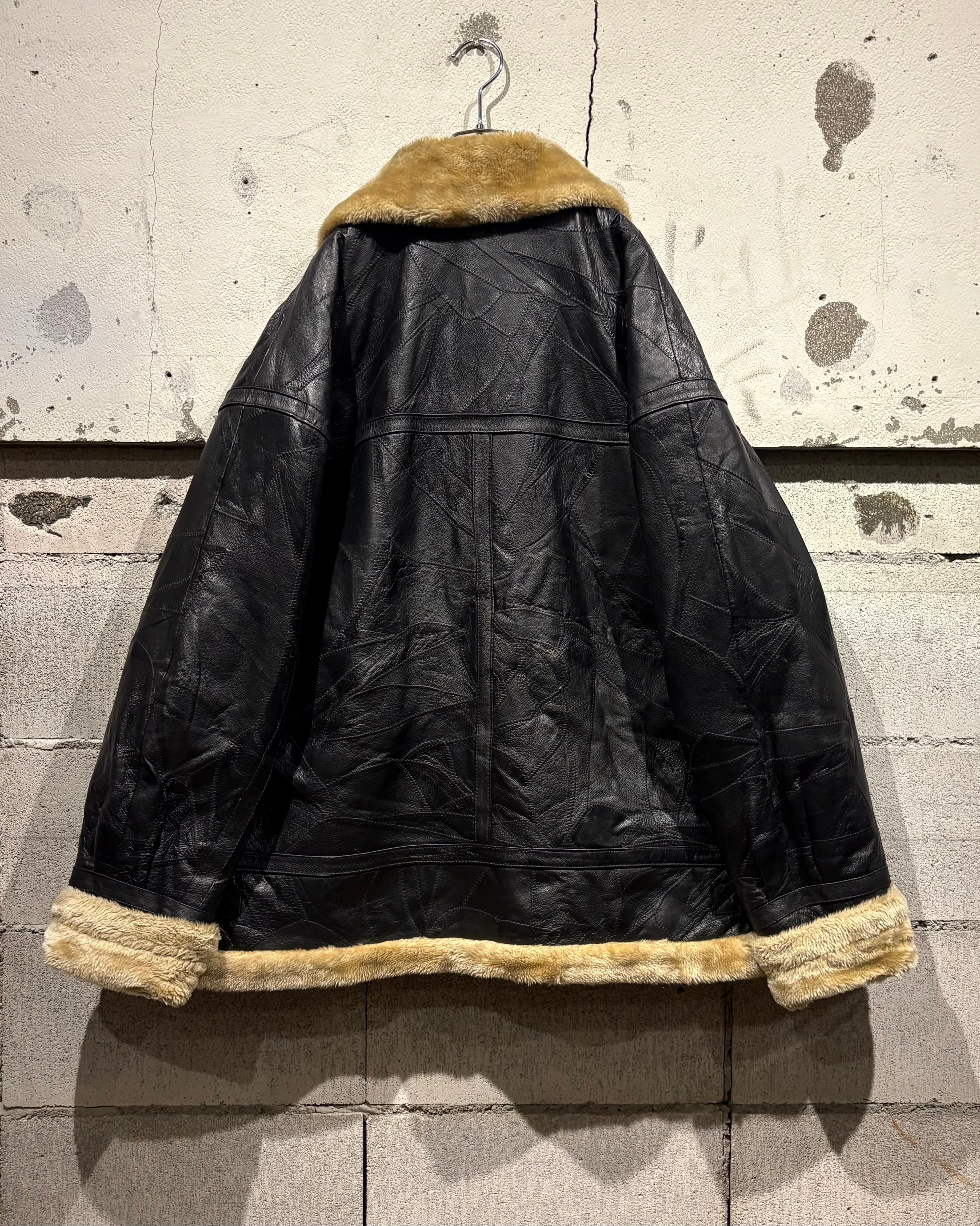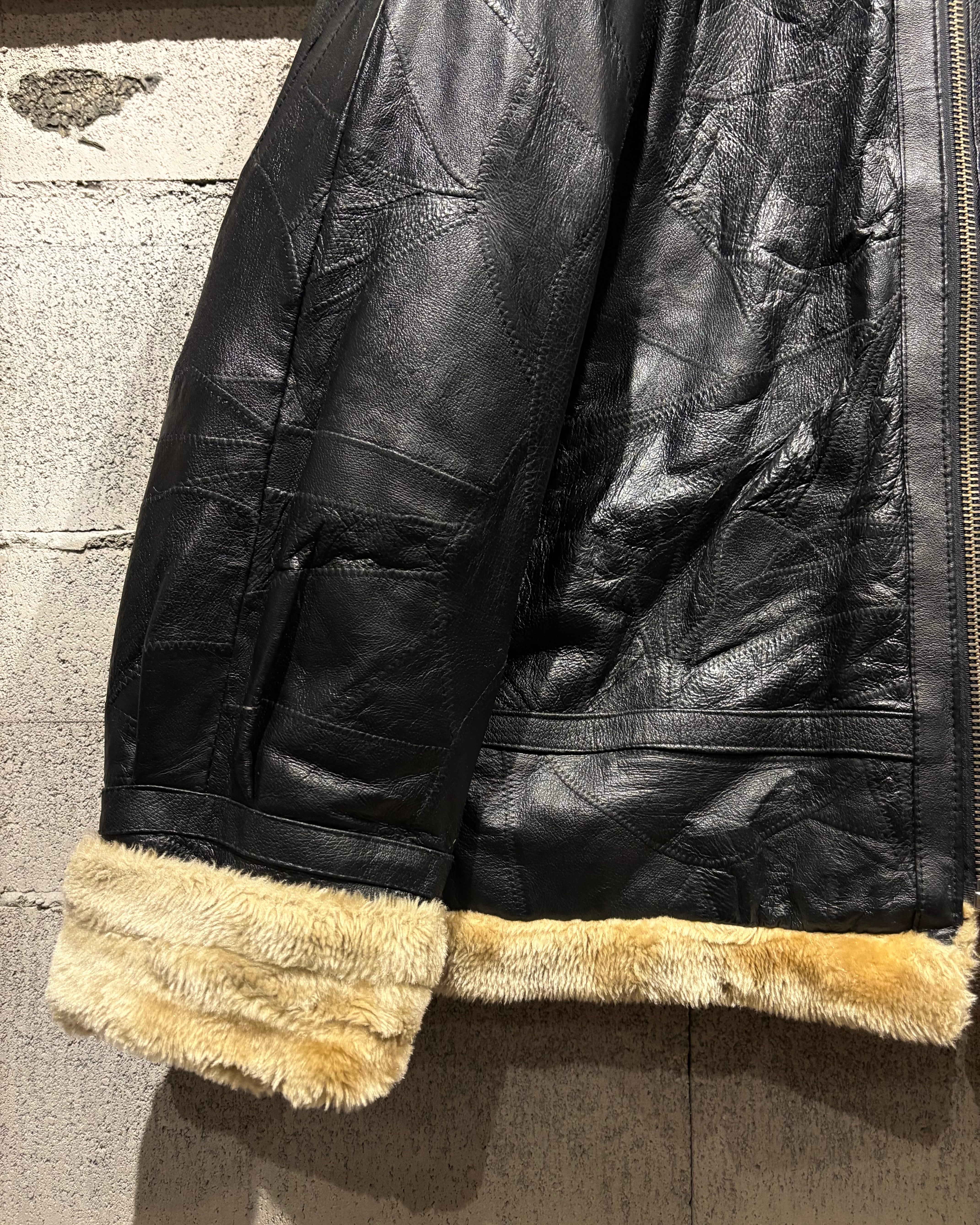 ハリ、ツヤのある上質なレザーを幾重にも繋ぎ合わせることで仕上げた、B-3タイプのムートンジャケット。