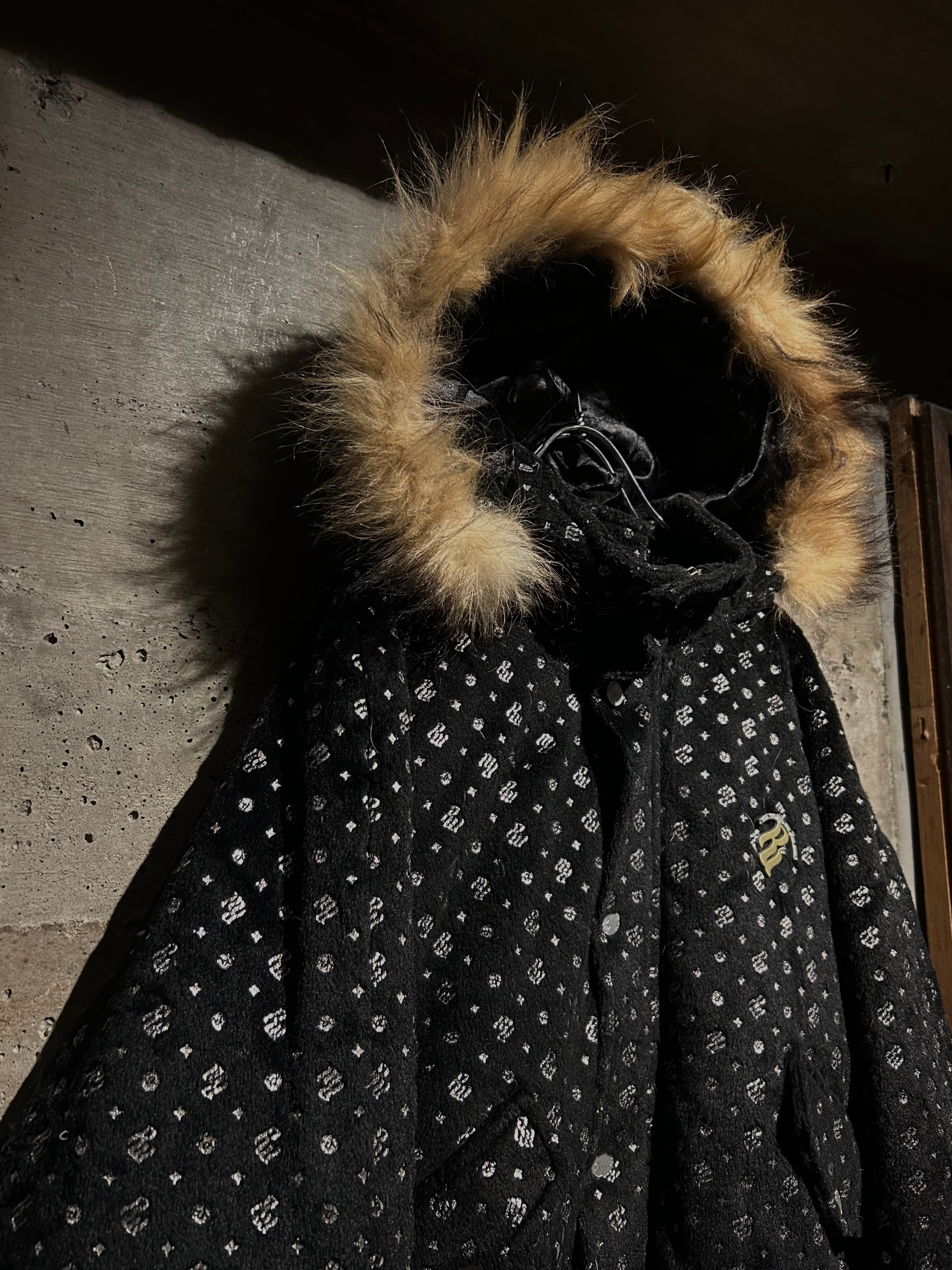 フード周りにはボリューム感のあるフェイクファーを配置し、視覚的なインパクトと防寒性を両立。胸元やジップトップにはブランドアイコンを用いたメタルパーツを配し、細部まで抜かりないデザインバランスに。