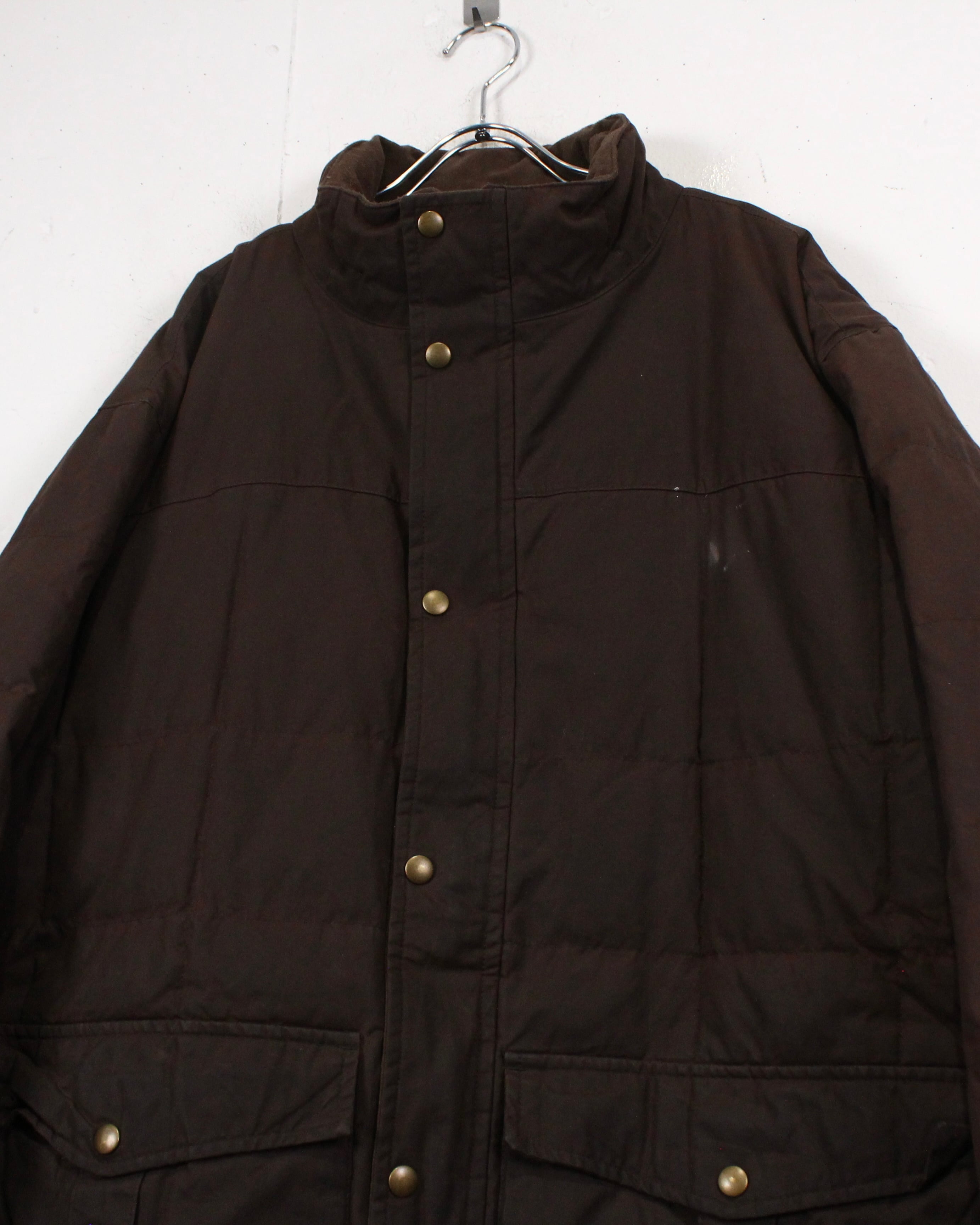 しっとりと柔らかなオイルドコットンをボディに採用したダウンジャケット。特有の光沢感を放ち、着込むほどに味わい深くなるのが魅力の一つであるオイルドジャケットで、ヴィンテージでも定番アイテムですがダウンとなるとそうそうお目にかかれません。