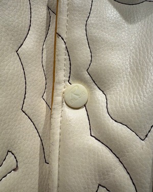 ボディ全体にはステッチワークでチェーンやエンブレムなどのモチーフを刻み込み、全体に奥行きのある表情を生み出しています。当時のストリート×ラグジュアリーな空気感を纏ったデザインが最高。