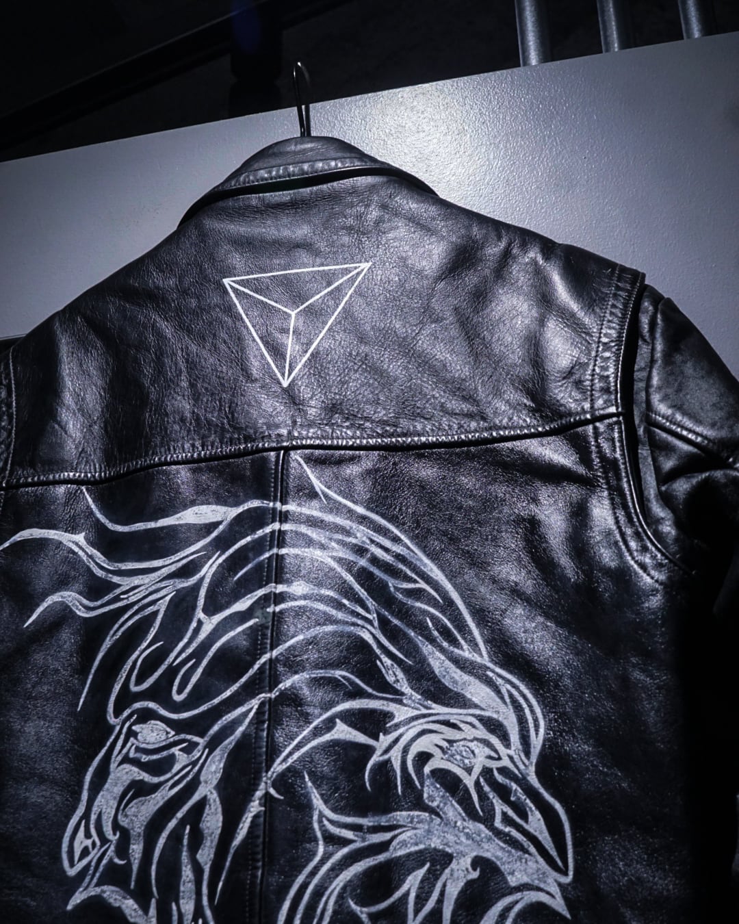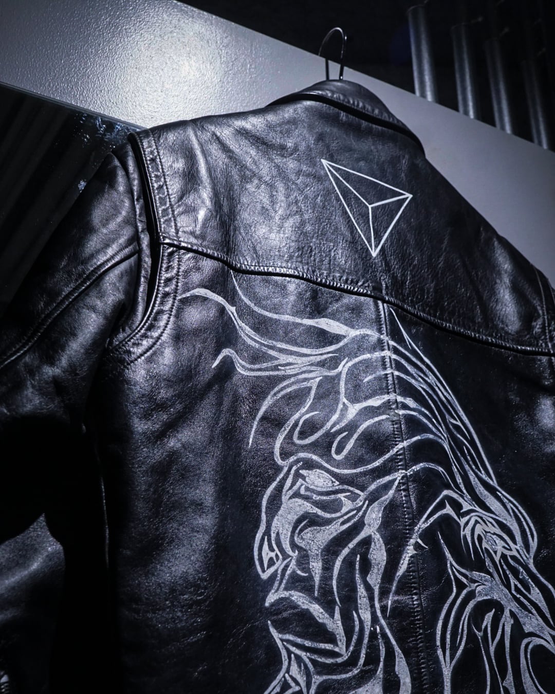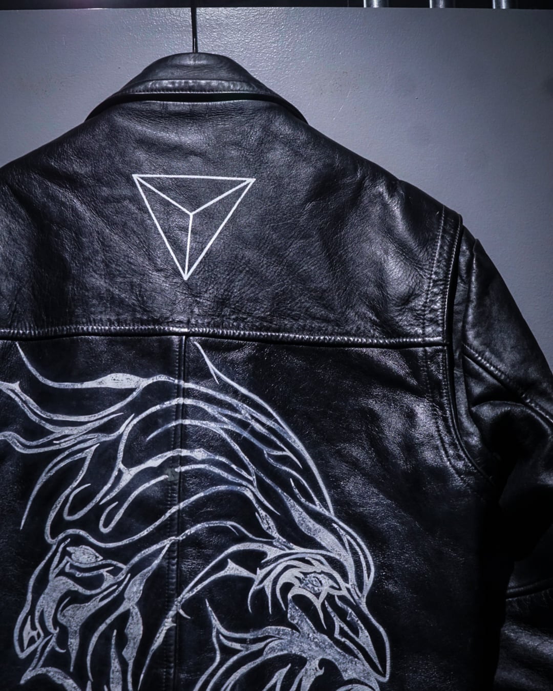 クラシックなライダースに、背面に大胆に施されたハンドペイントによって、完全に一点物として昇華されたスペシャルな1着。