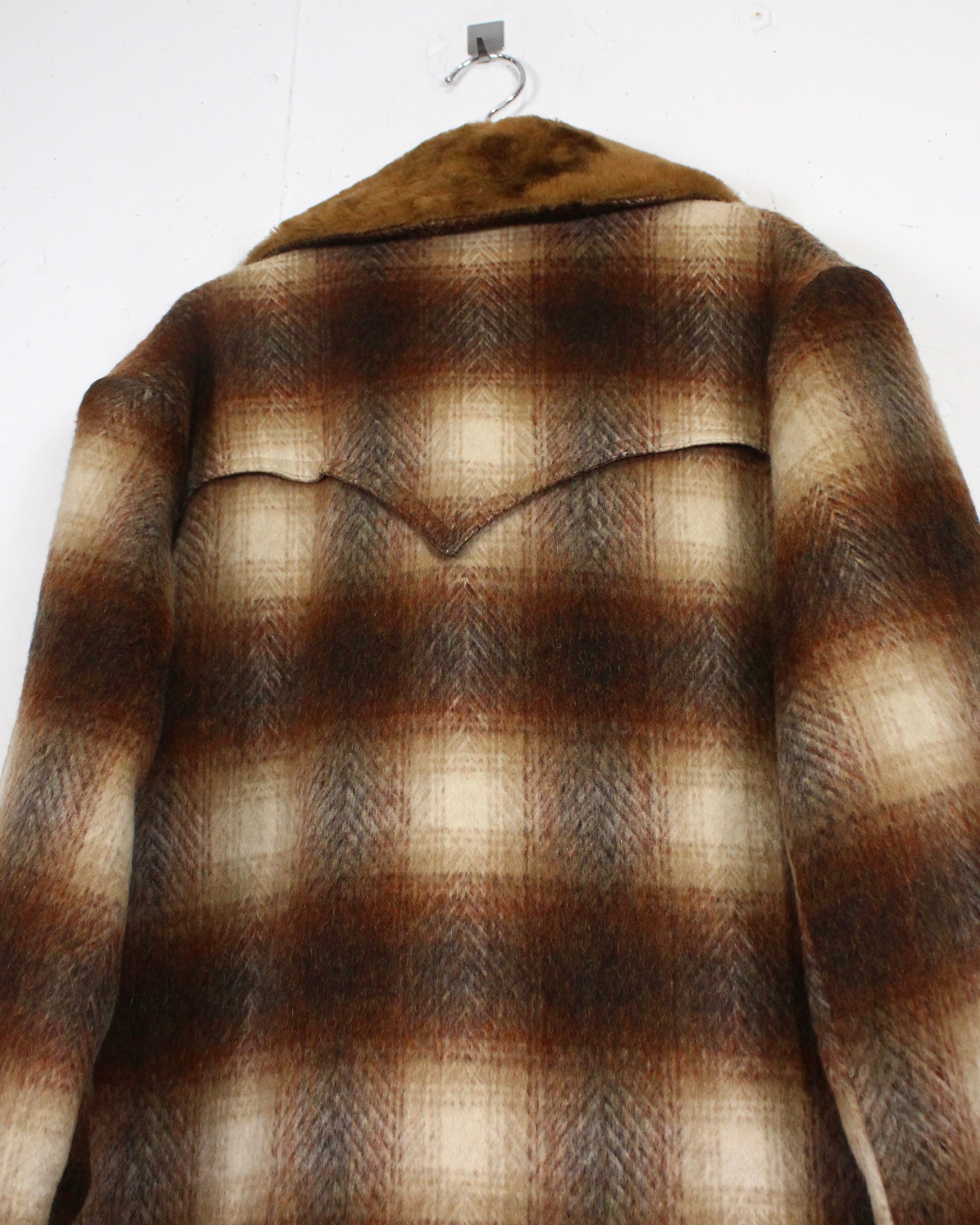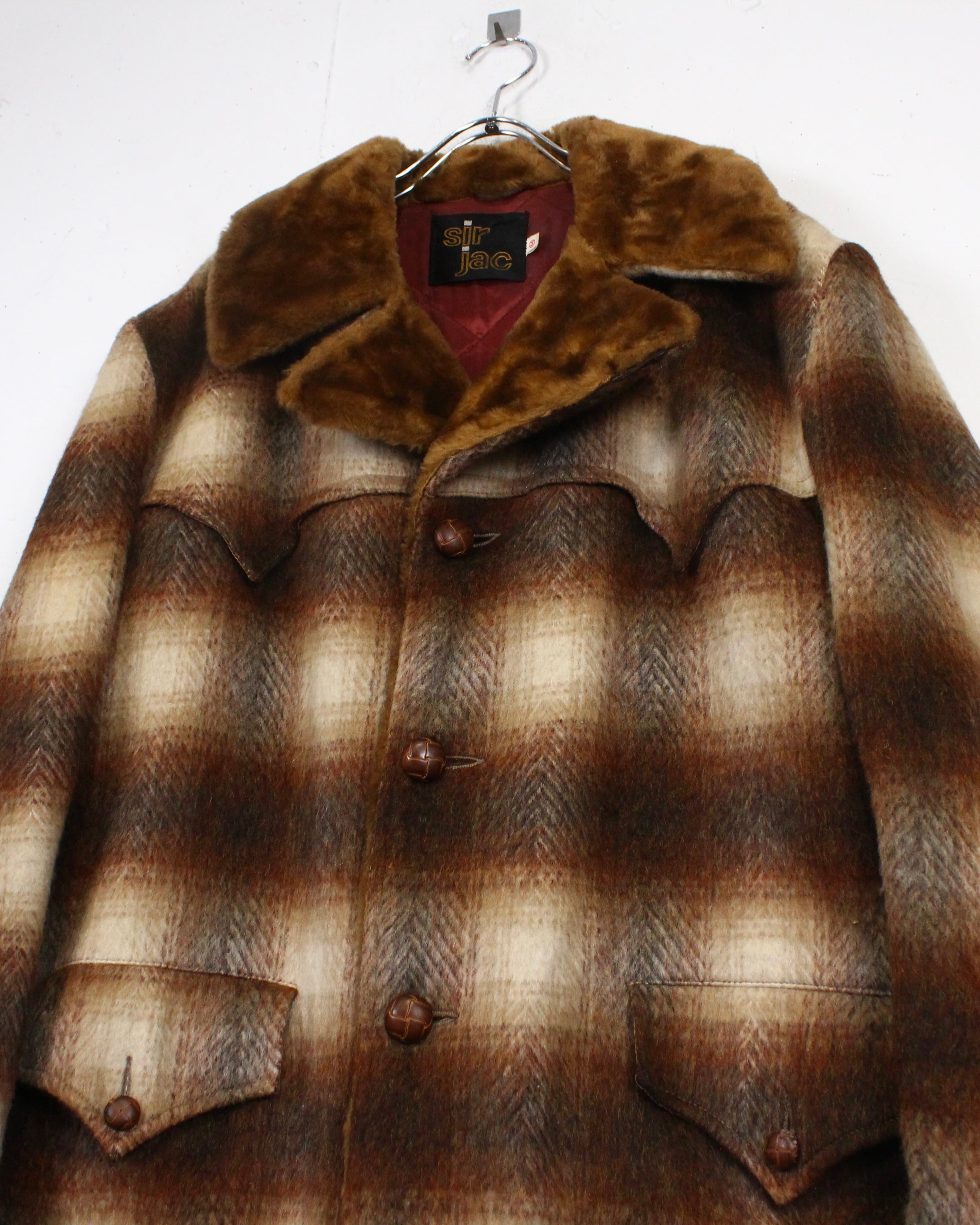 モヘア混オンブレチェック×ファーカラー、そしてsir jacという、ヴィンテージ好きには堪らない要素が揃った1着です。