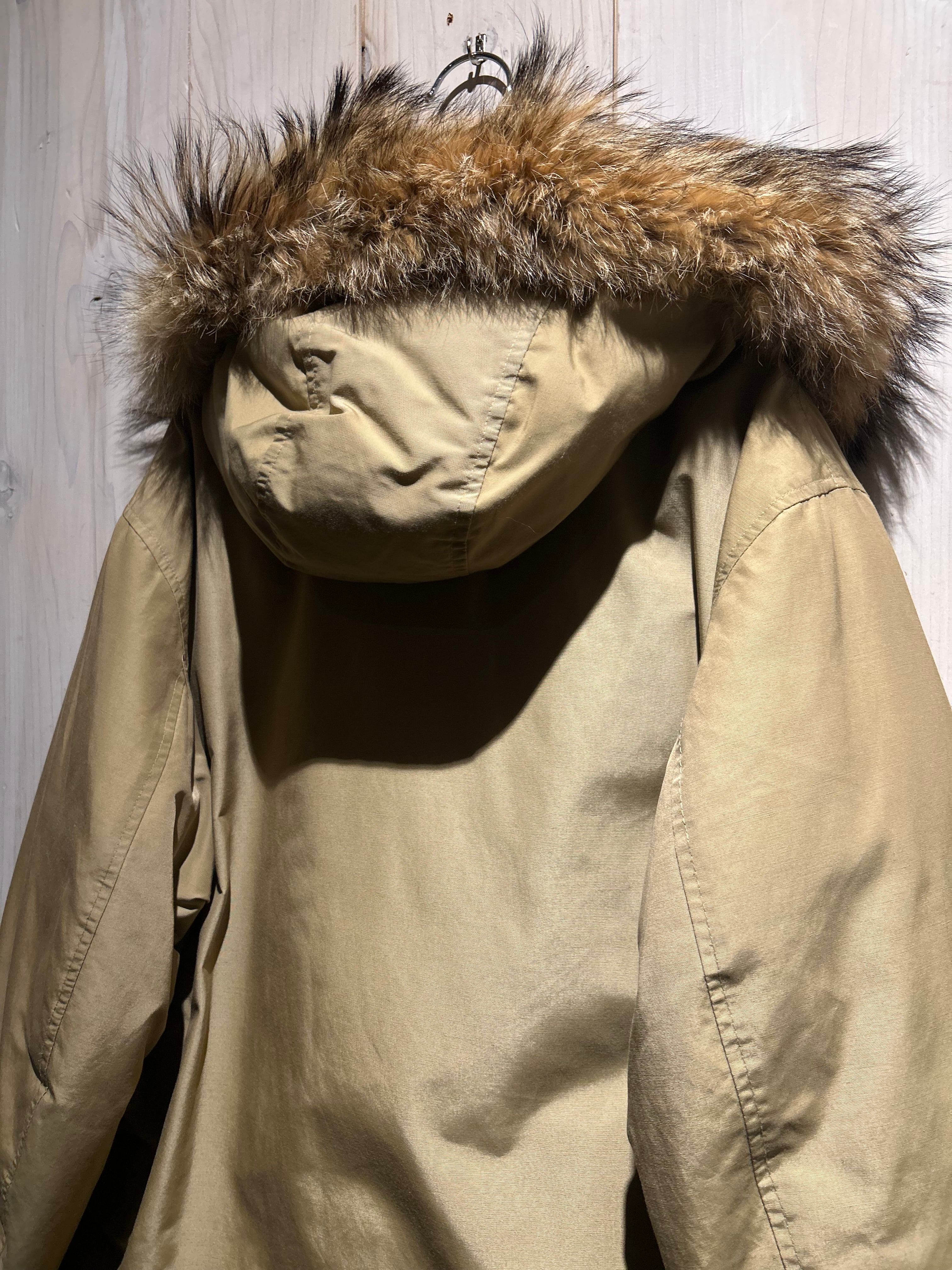 フード周りにはボリューム感のあるリアルファーを配し、防寒性とビジュアルの両立を実現。フロントはジップ×ボタン仕様で、ポケット配置や全体のバランスも非常に完成度が高く、デイリーに愛用できます。首元のロゴ入りストラップのアクセントも◎