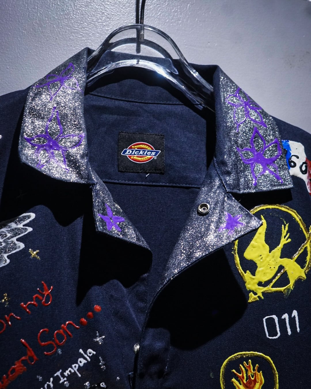 “Dikies”ジャンプスーツをベースに、ハンドペイントによる大胆なカスタムを施した、完全一点物のスペシャルピース。