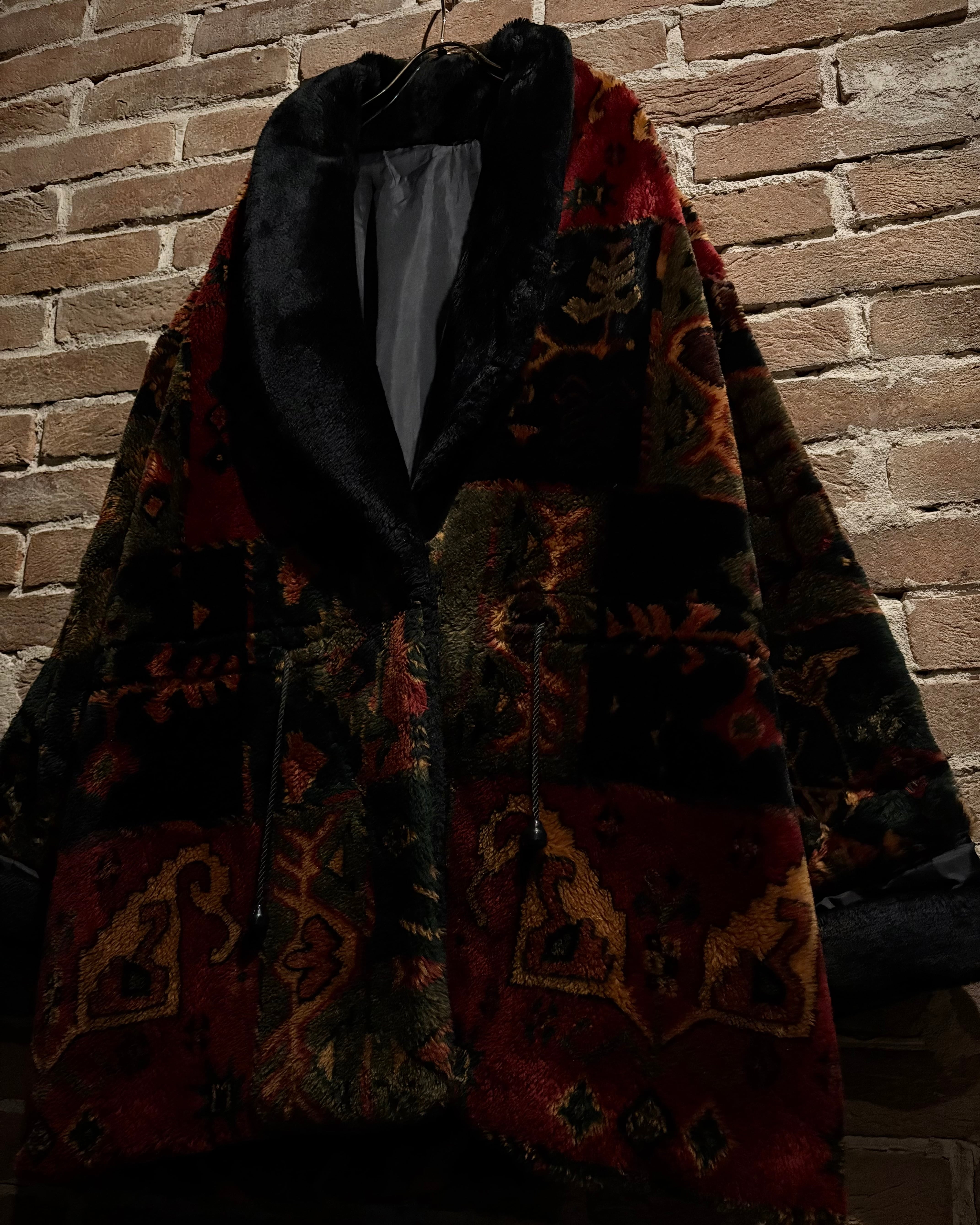 フワッと柔らかなフェイクファーを贅沢に用いたボディが目を引く、存在感抜群のファーコート。