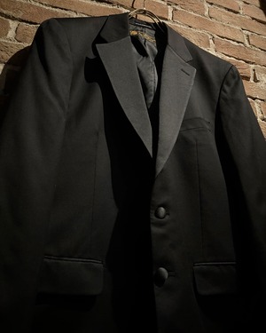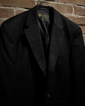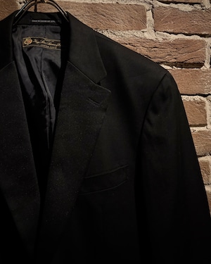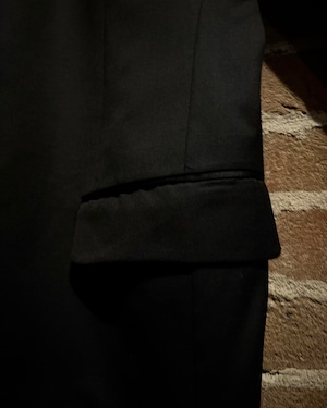 ラペル部分にはサテン素材を切り替えで配置。マットなウールとのコントラストが際立ち、エレガントな表情をプラス。