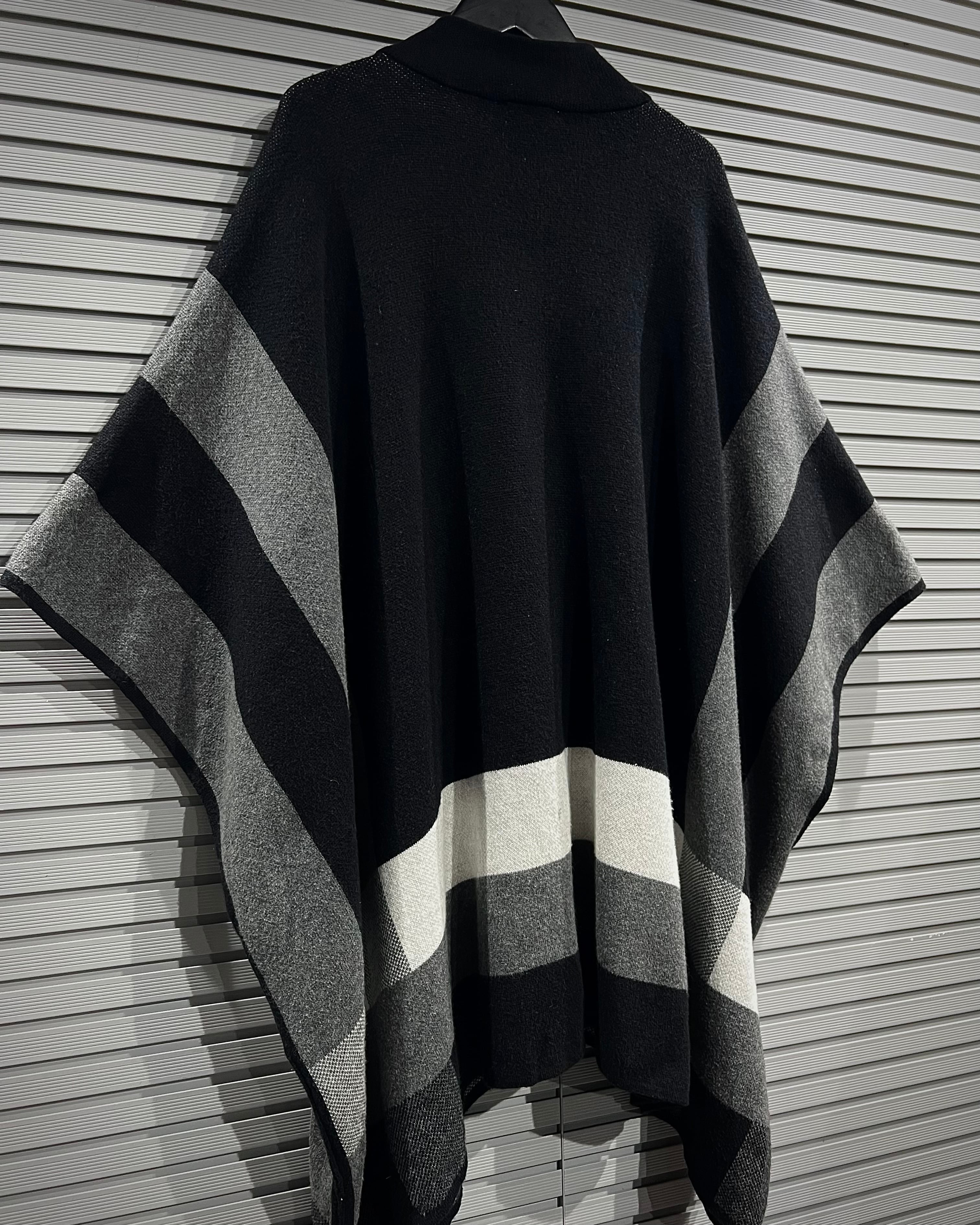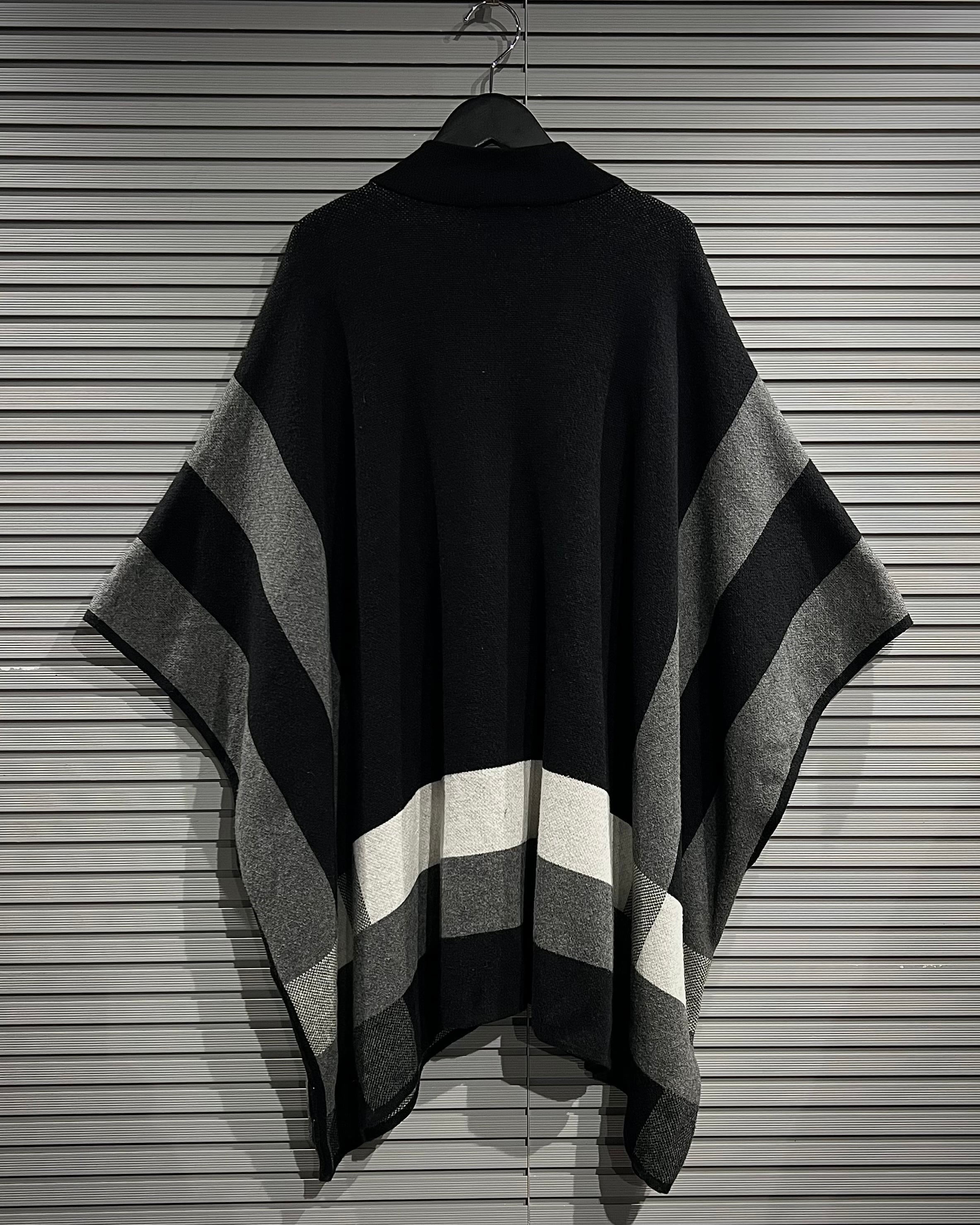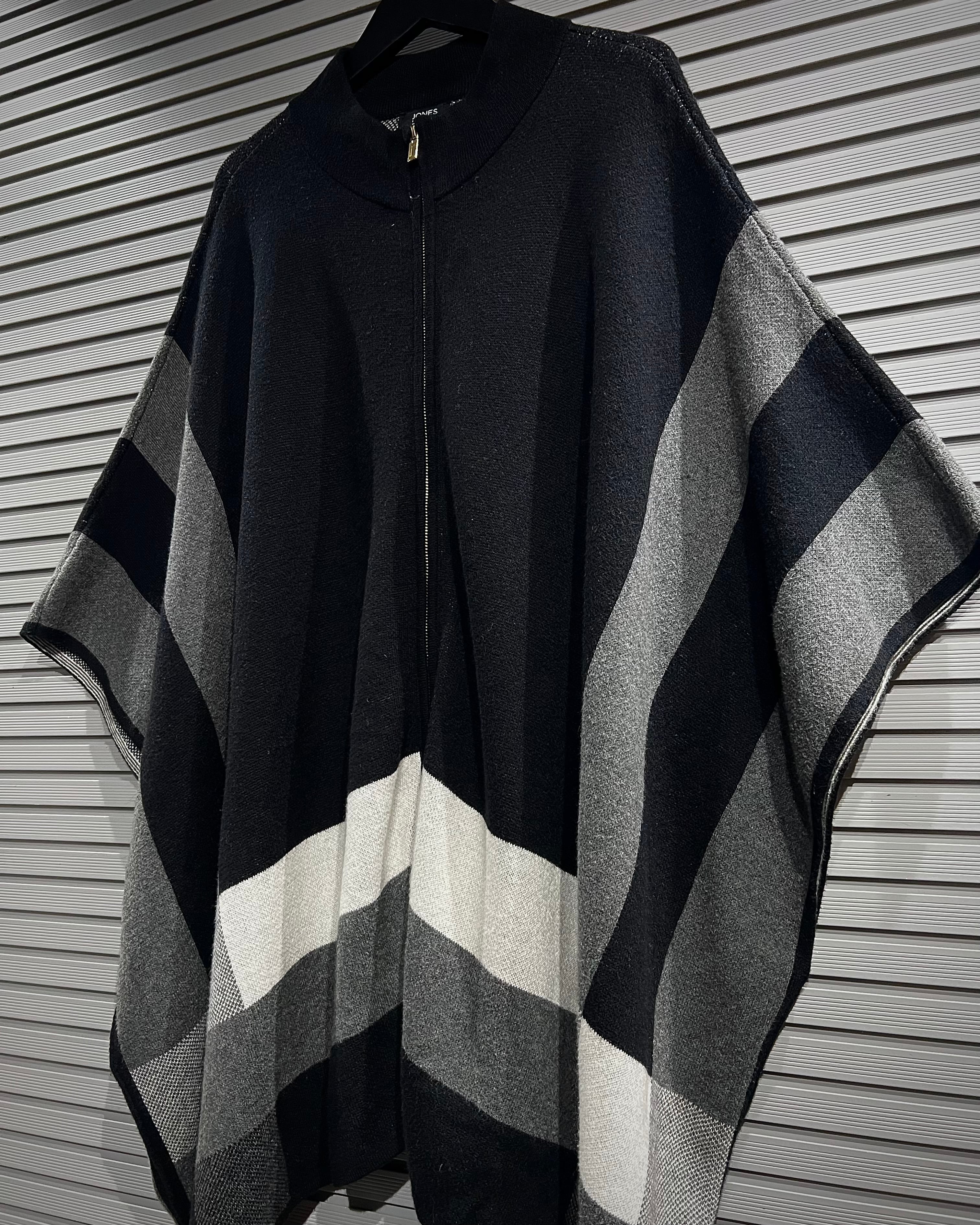 ミニマルで洗練された佇まいが印象的な、ジップアップ仕様のニットポンチョ。
