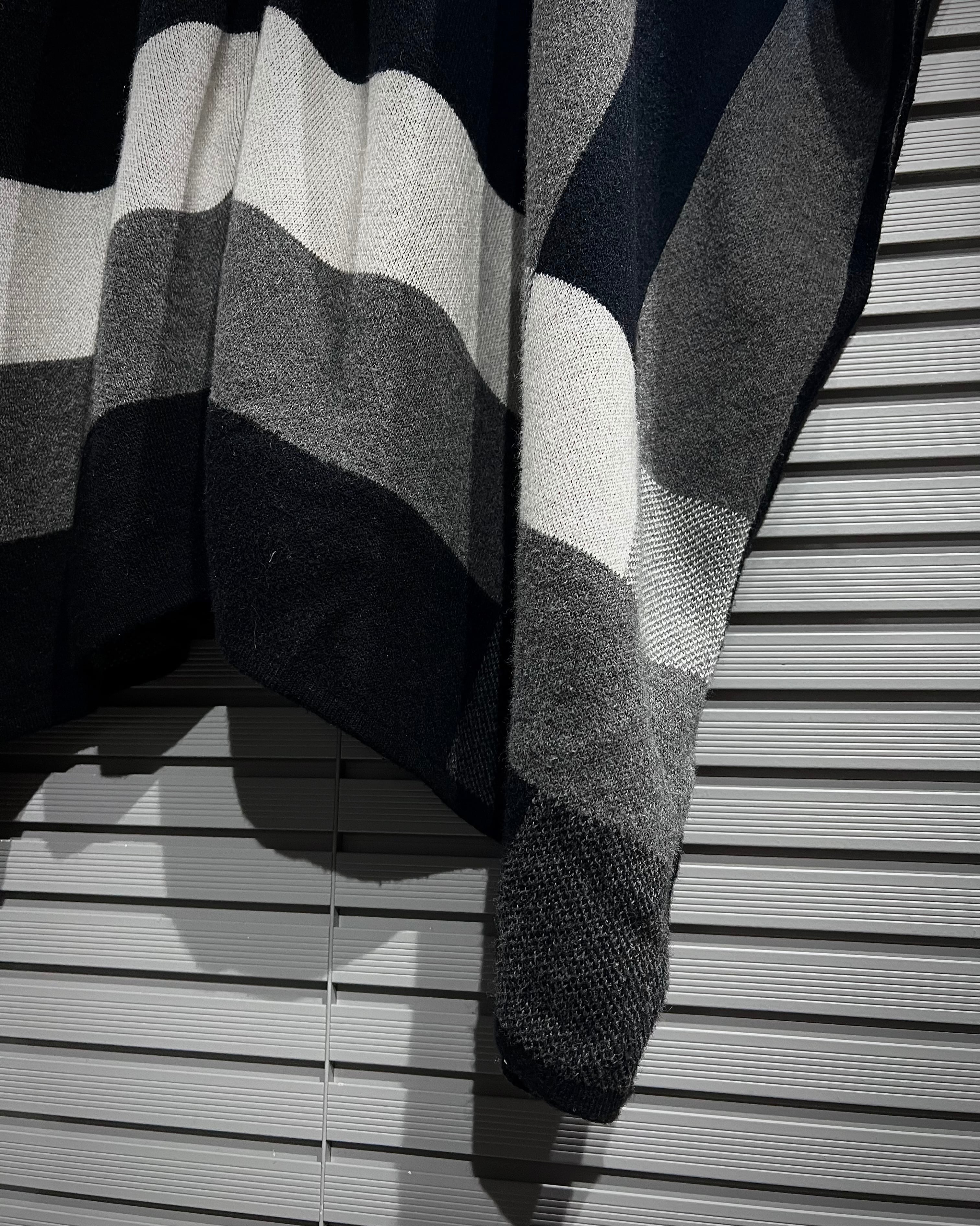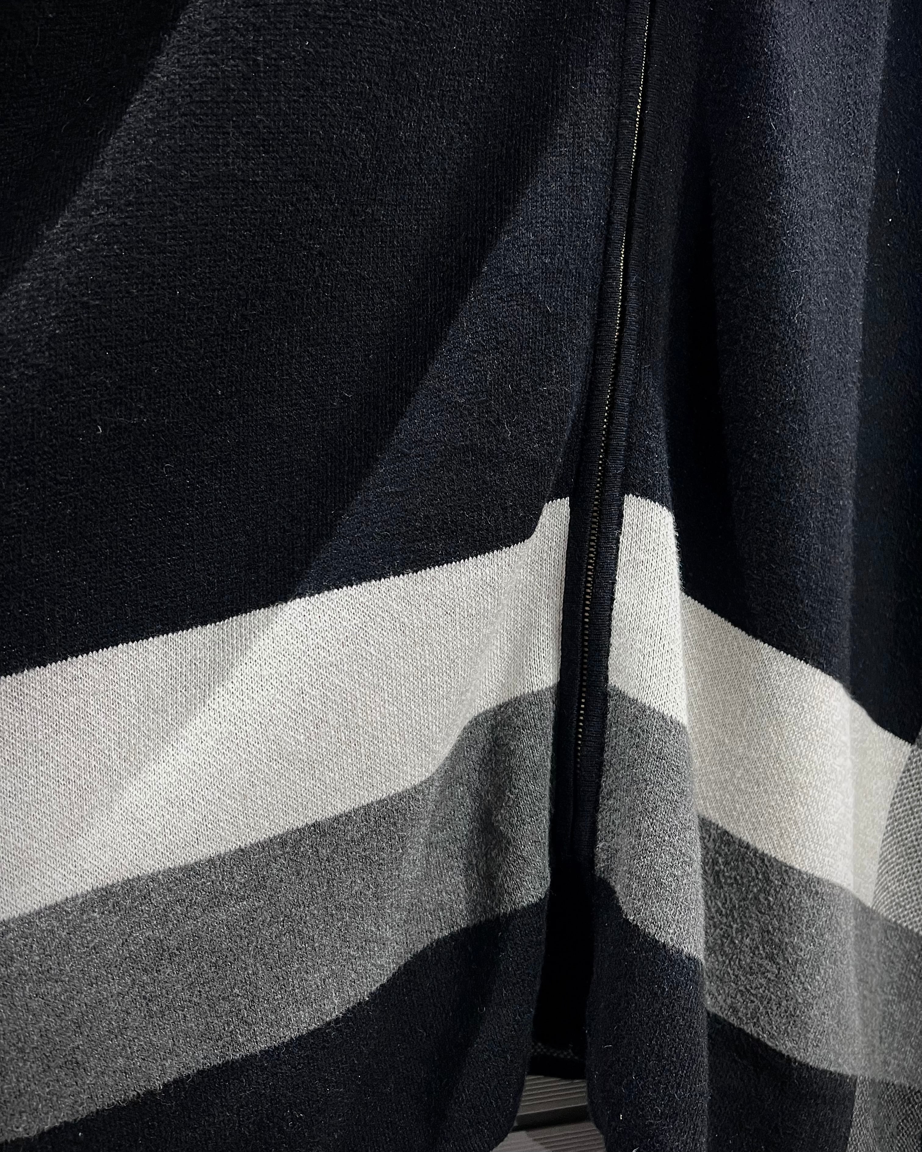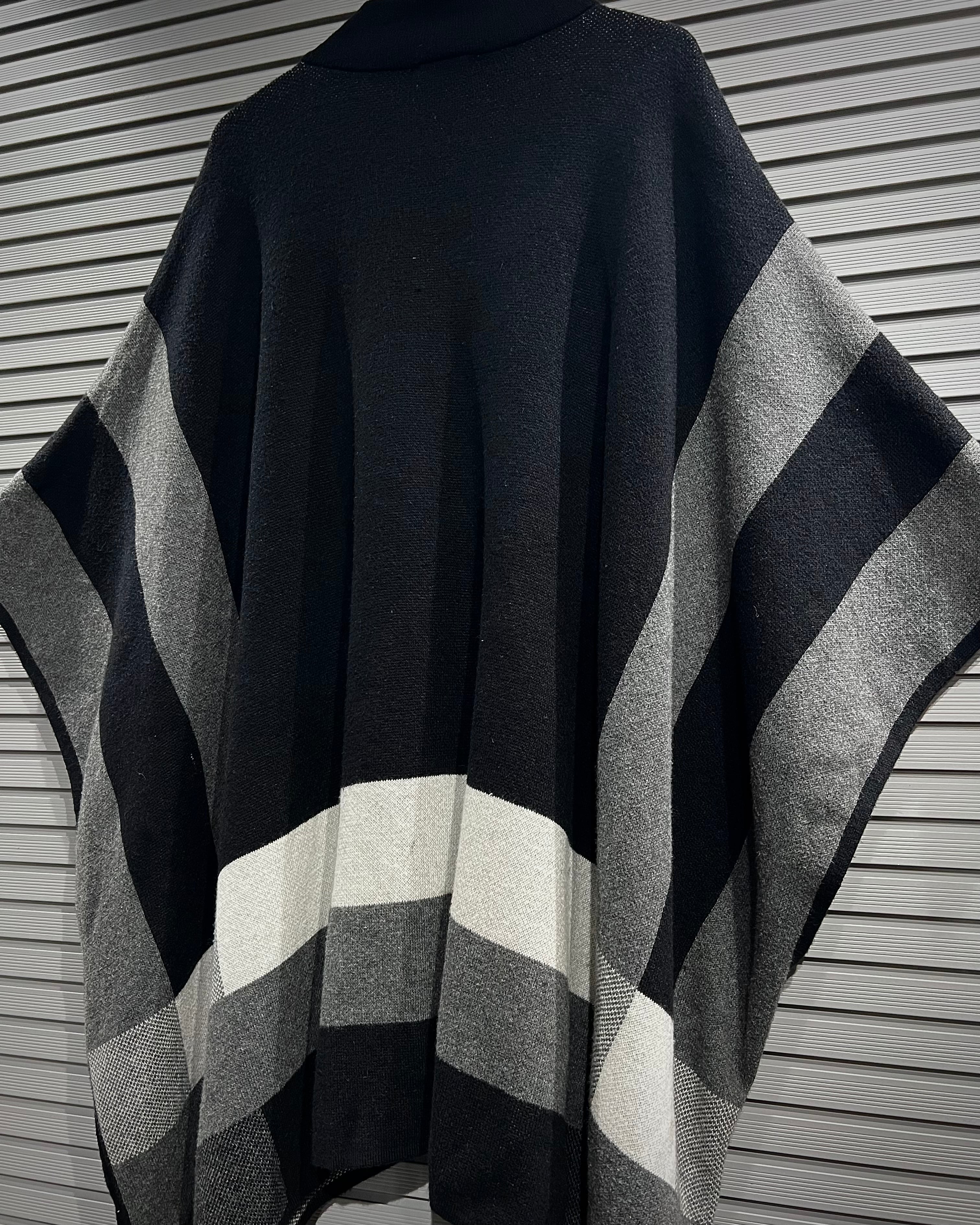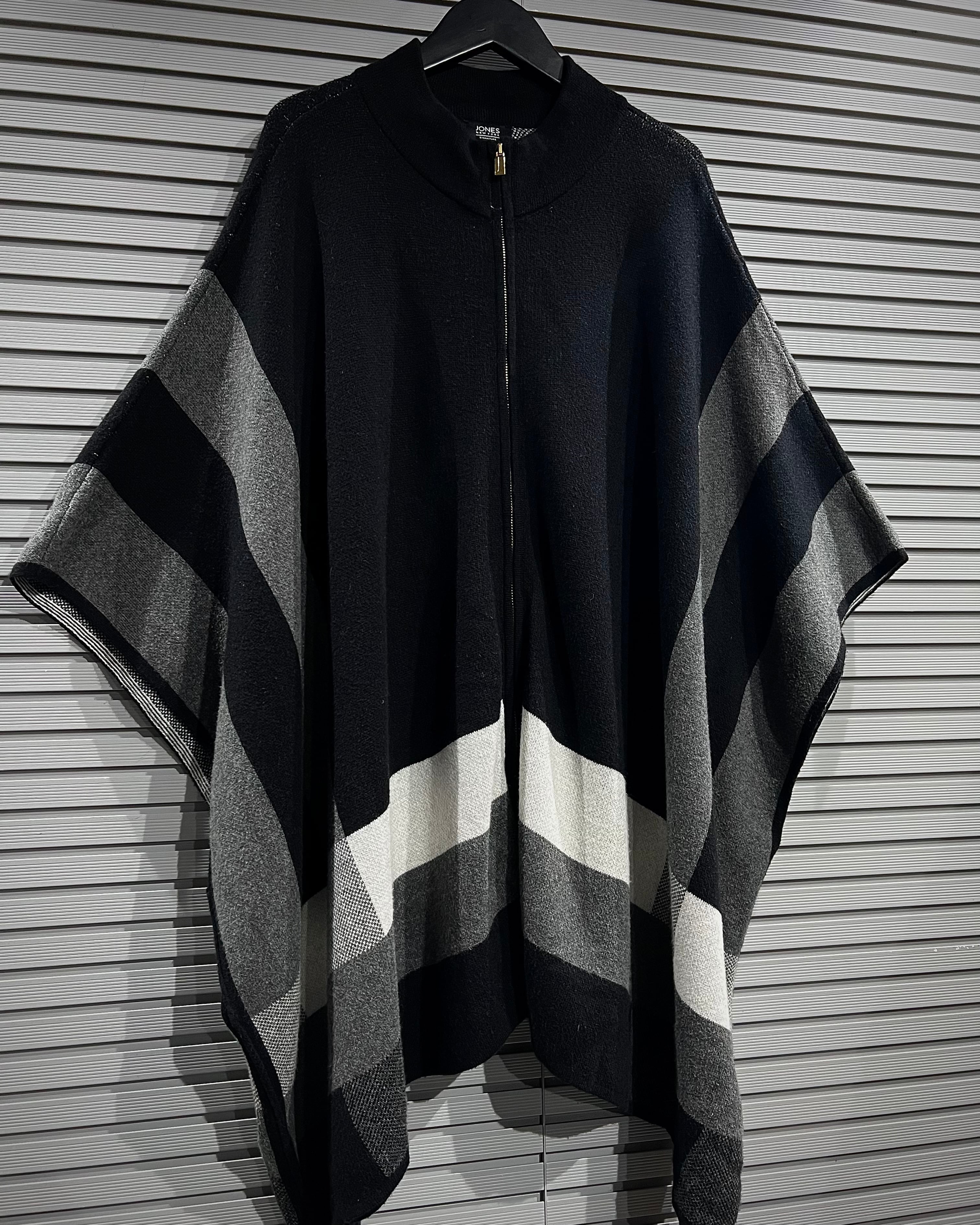 ミニマルで洗練された佇まいが印象的な、ジップアップ仕様のニットポンチョ。