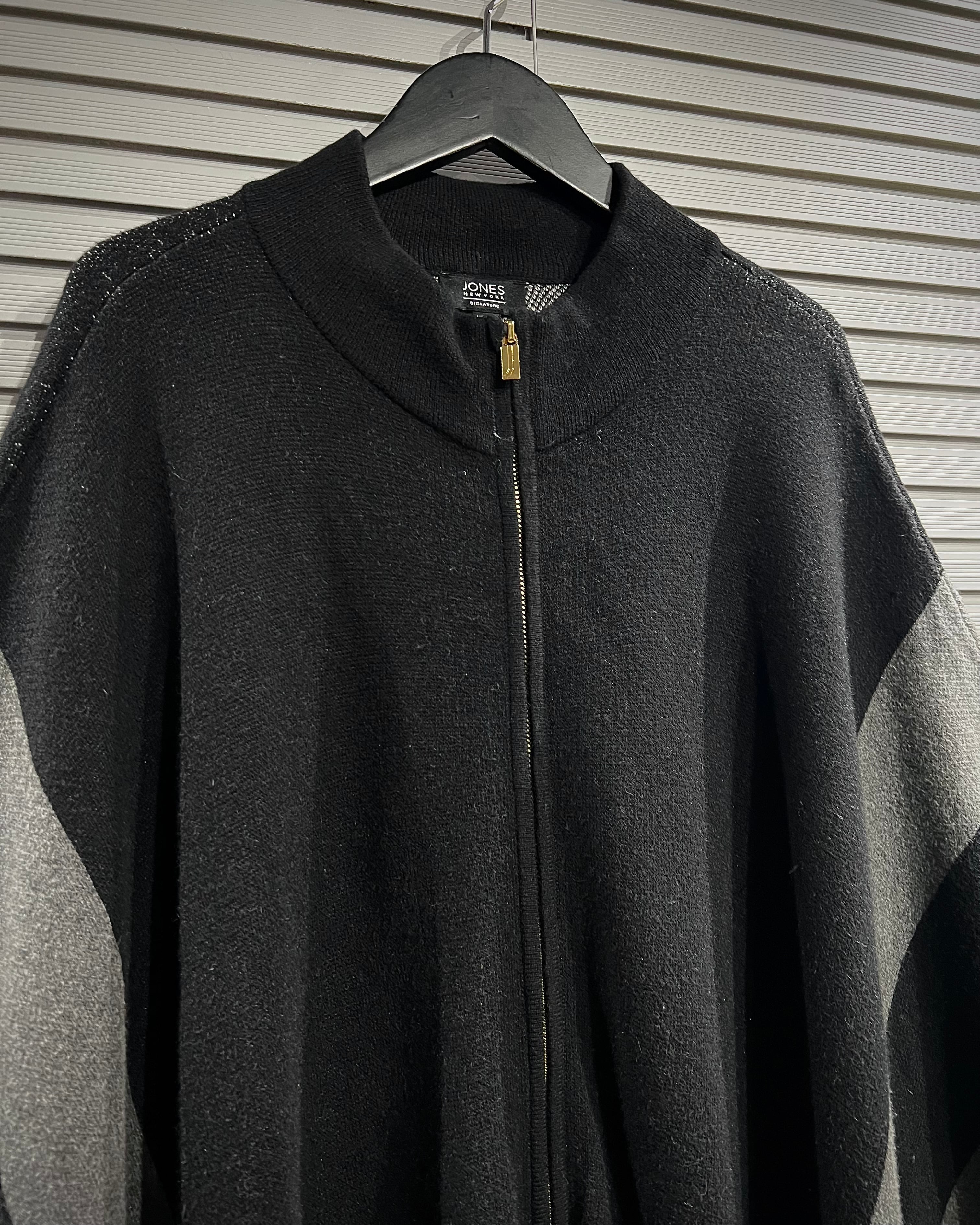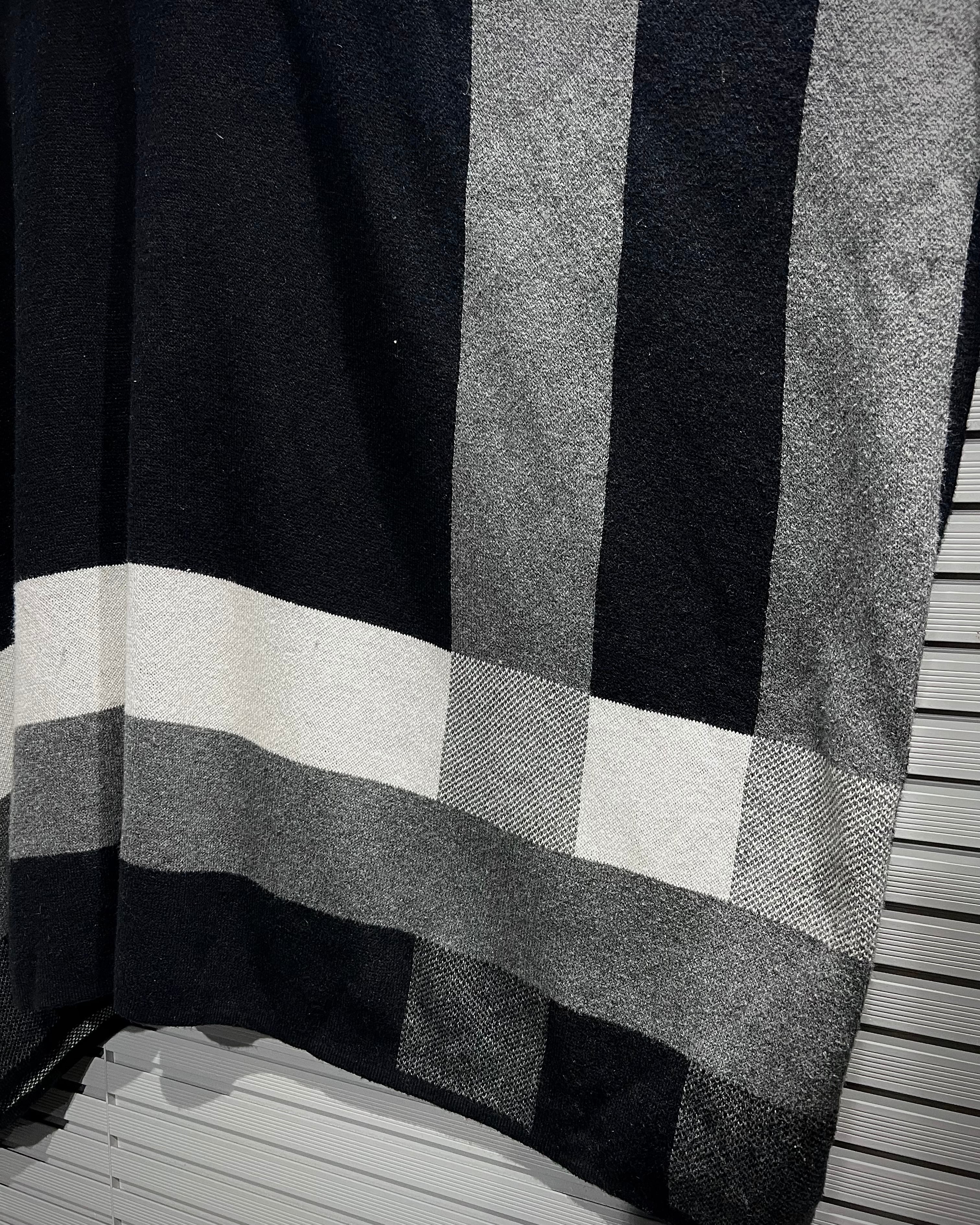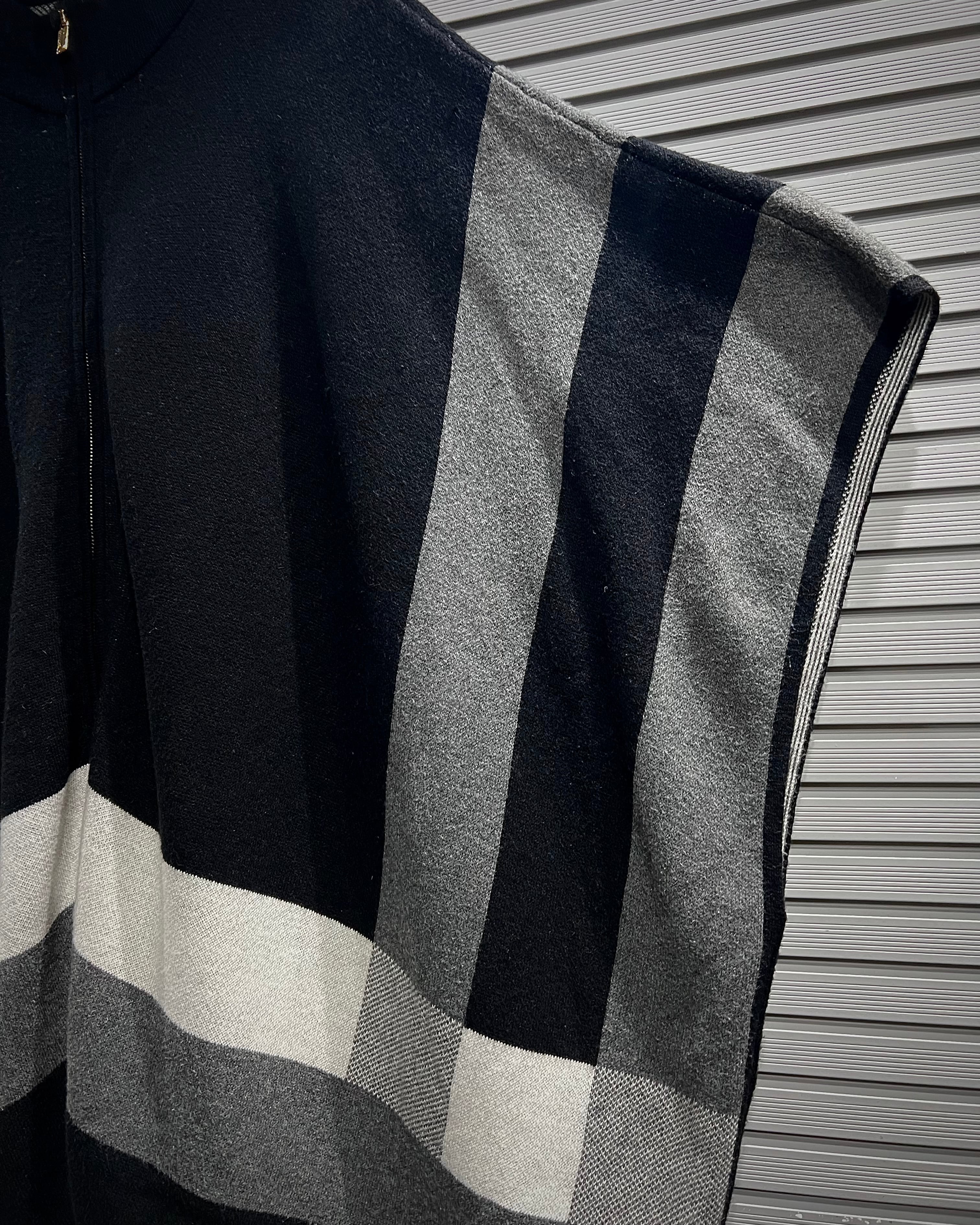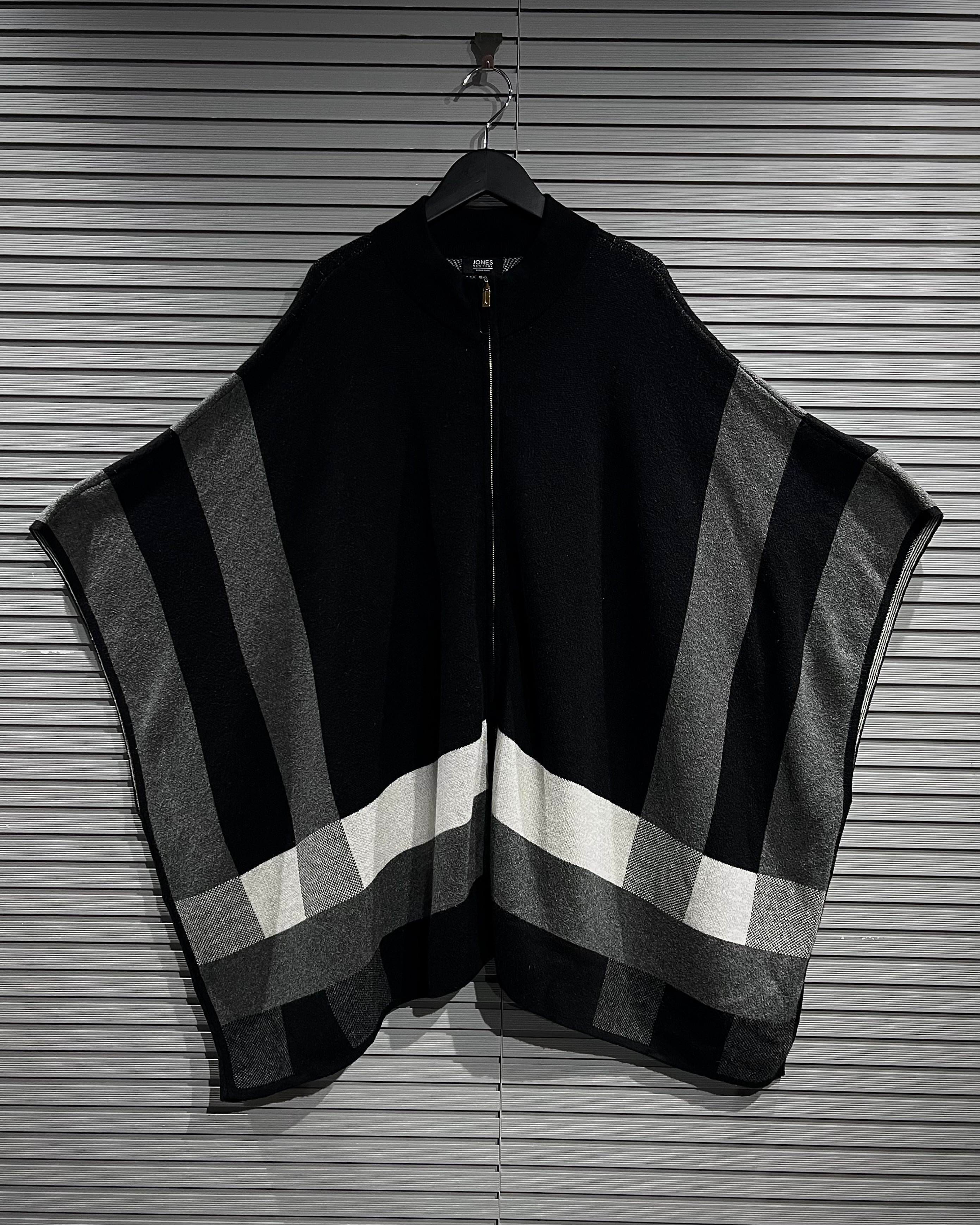 ブラックを基調に、グレー、ホワイトのラインが大胆に走るグラフィカルなチェック柄。フロントはフルジップ仕様で、羽織りとしてもスタンドカラーを立てた着こなしでも◎