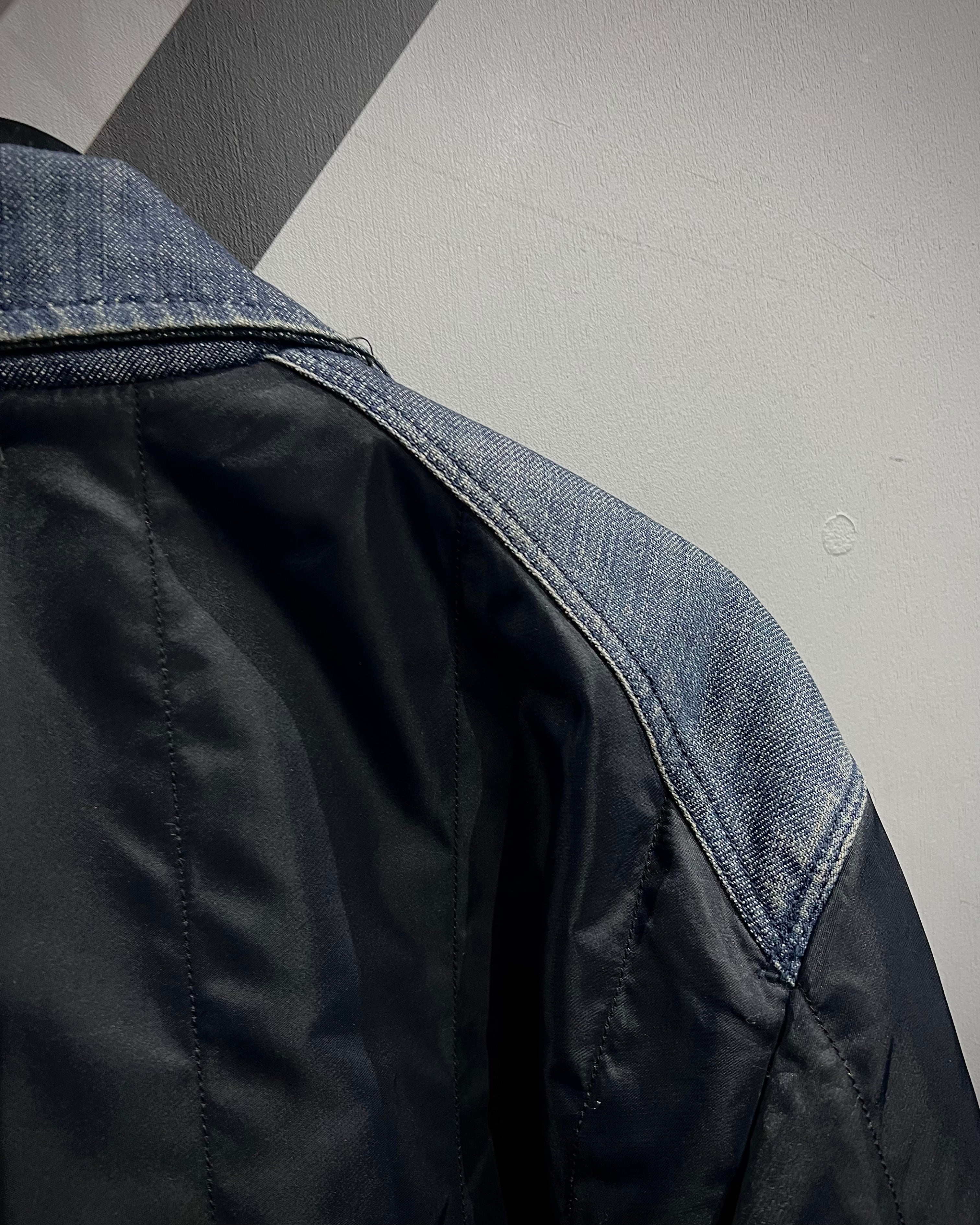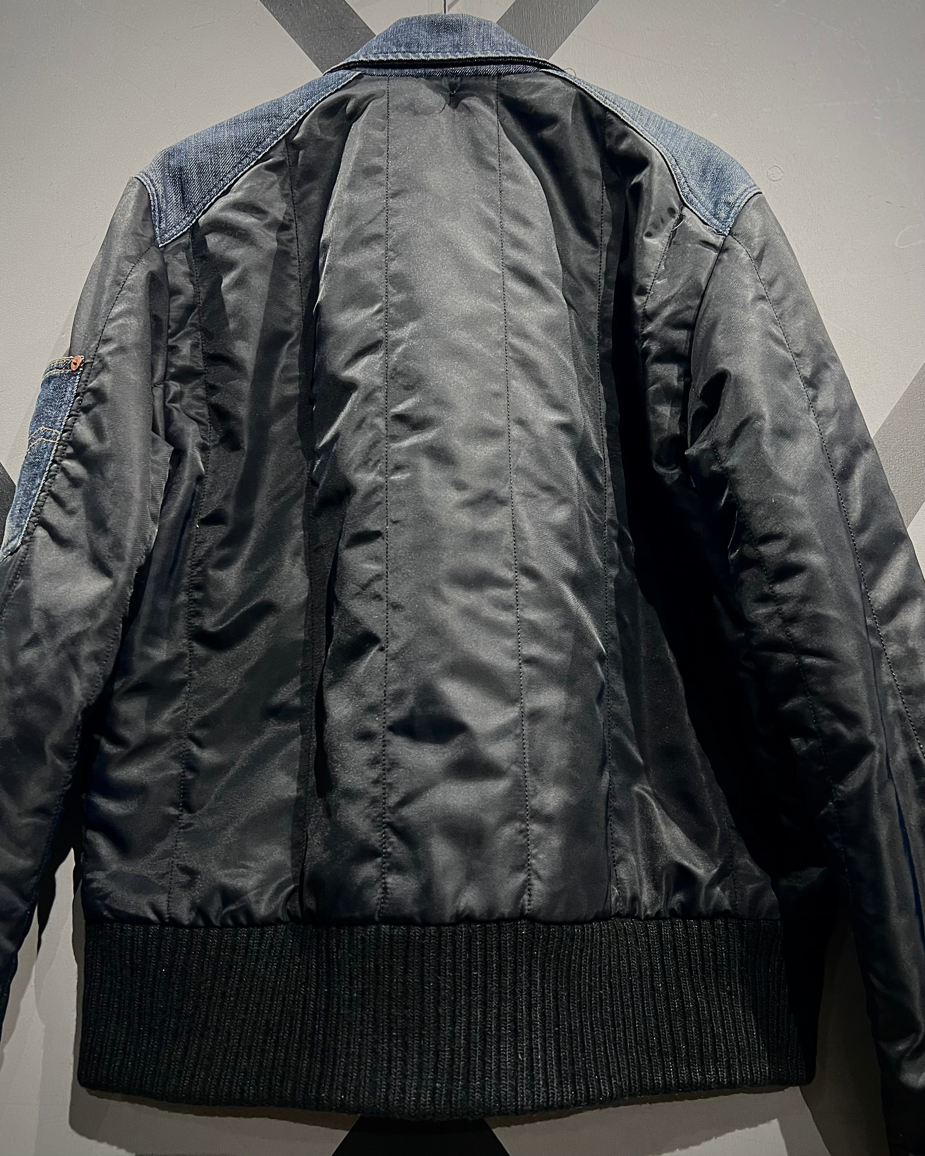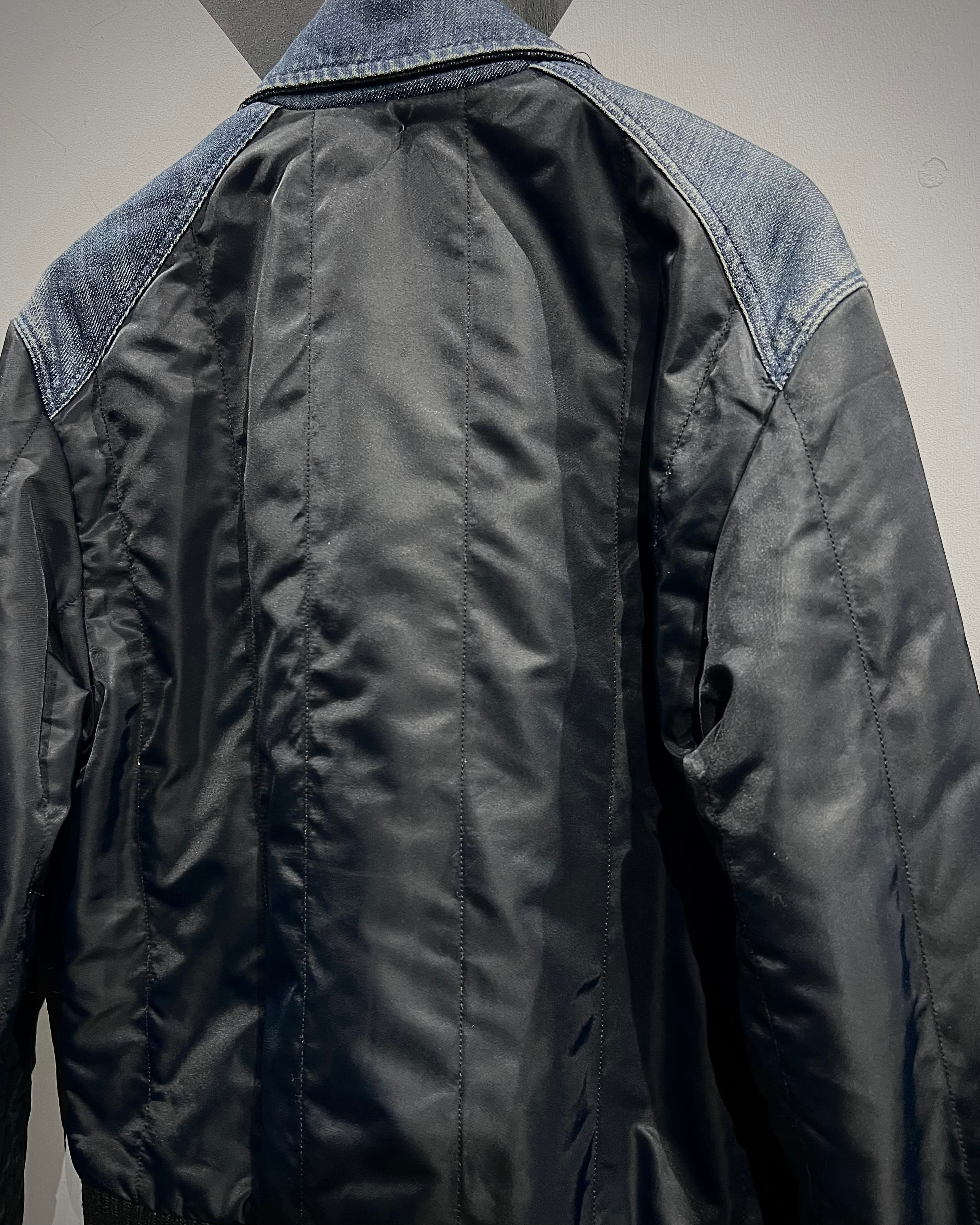ナイロンボディを軸にしながら、襟元、肩周り、スリーブのユーティリティポケットにデニムを切り替えた、異素材の掛け合わせが光ります。