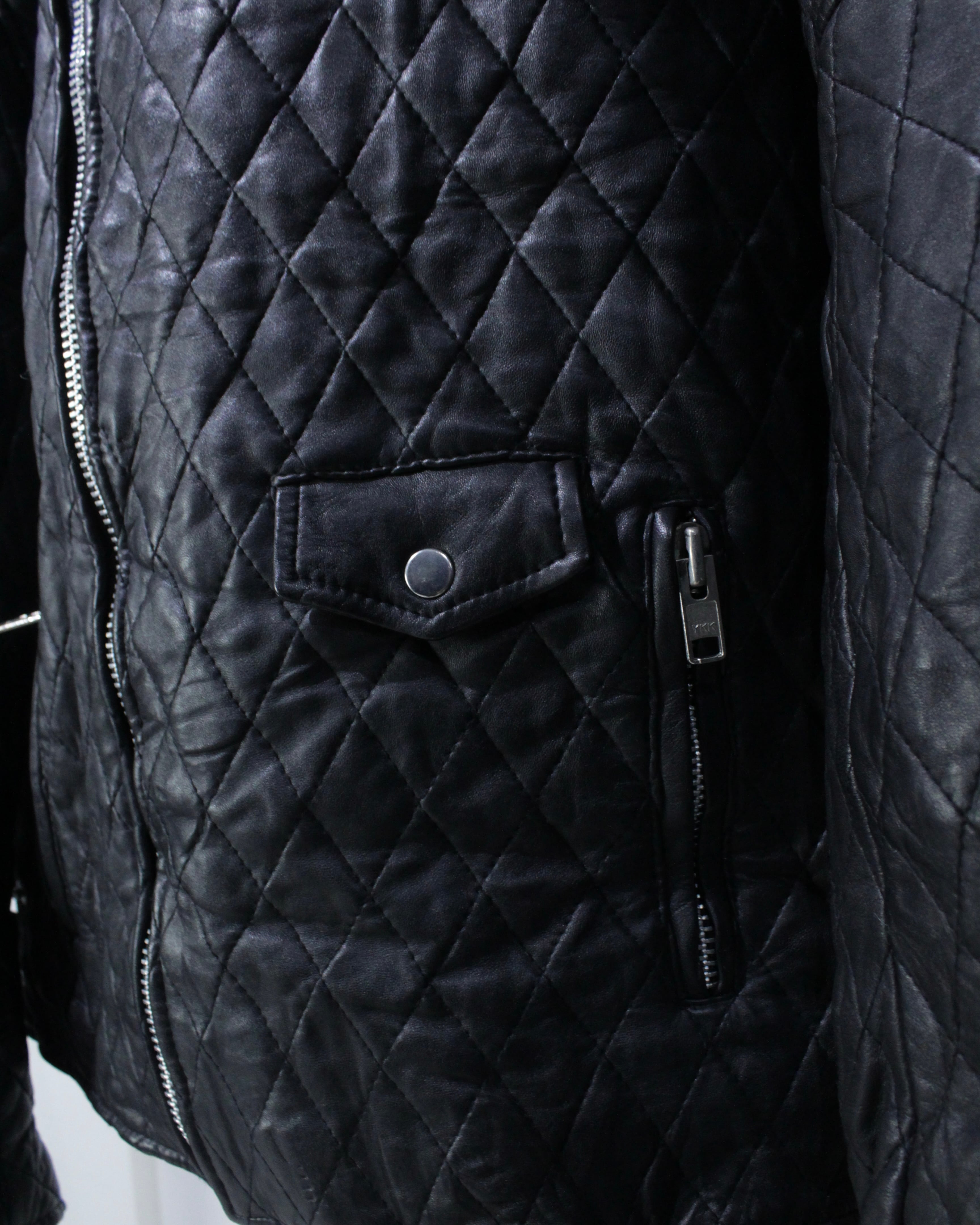 デザイン、素材、コンディション、どれを取っても申し分なし。キルティングレザーならではの存在感を存分に味わえる、ライダースジャケットの逸品です。
