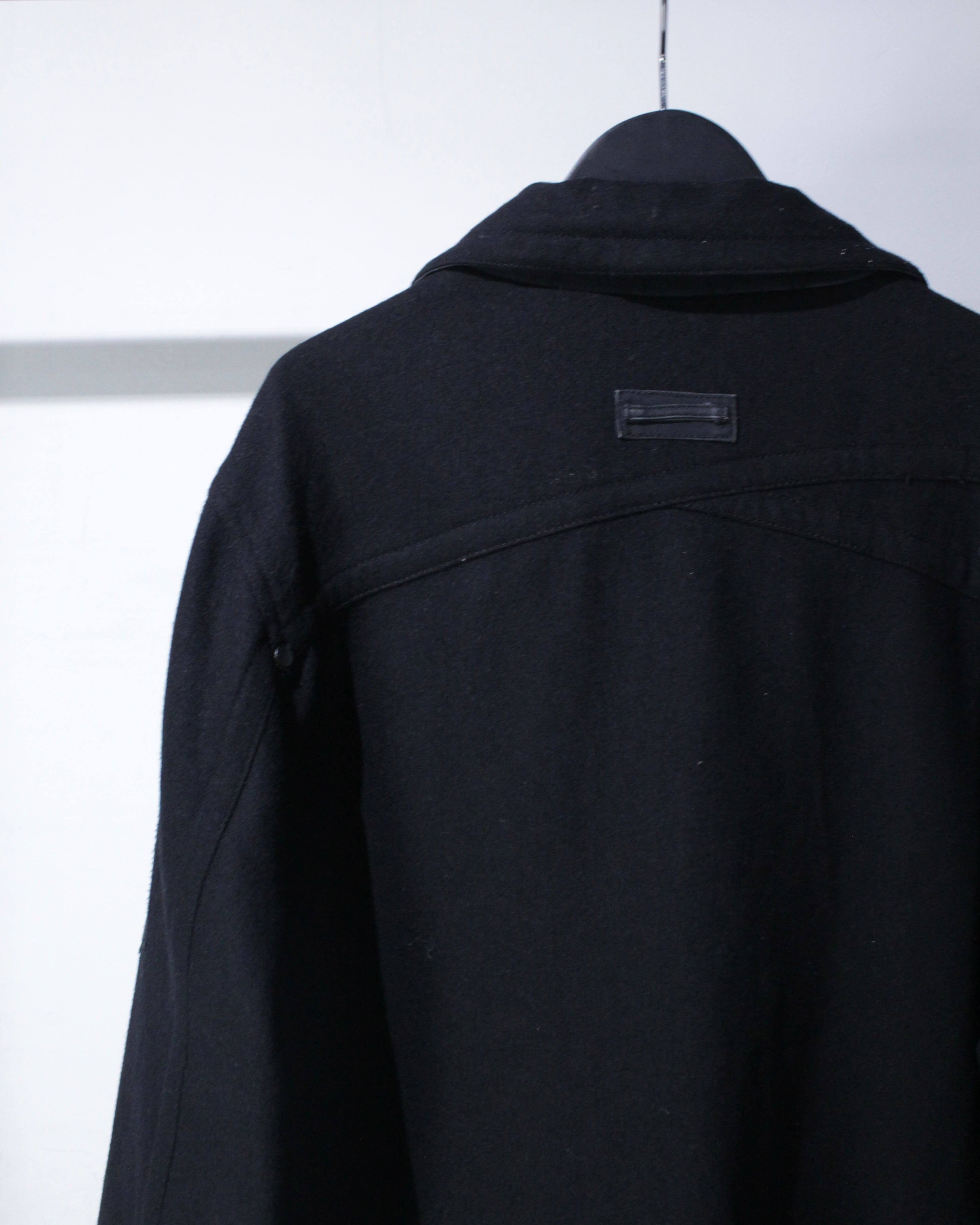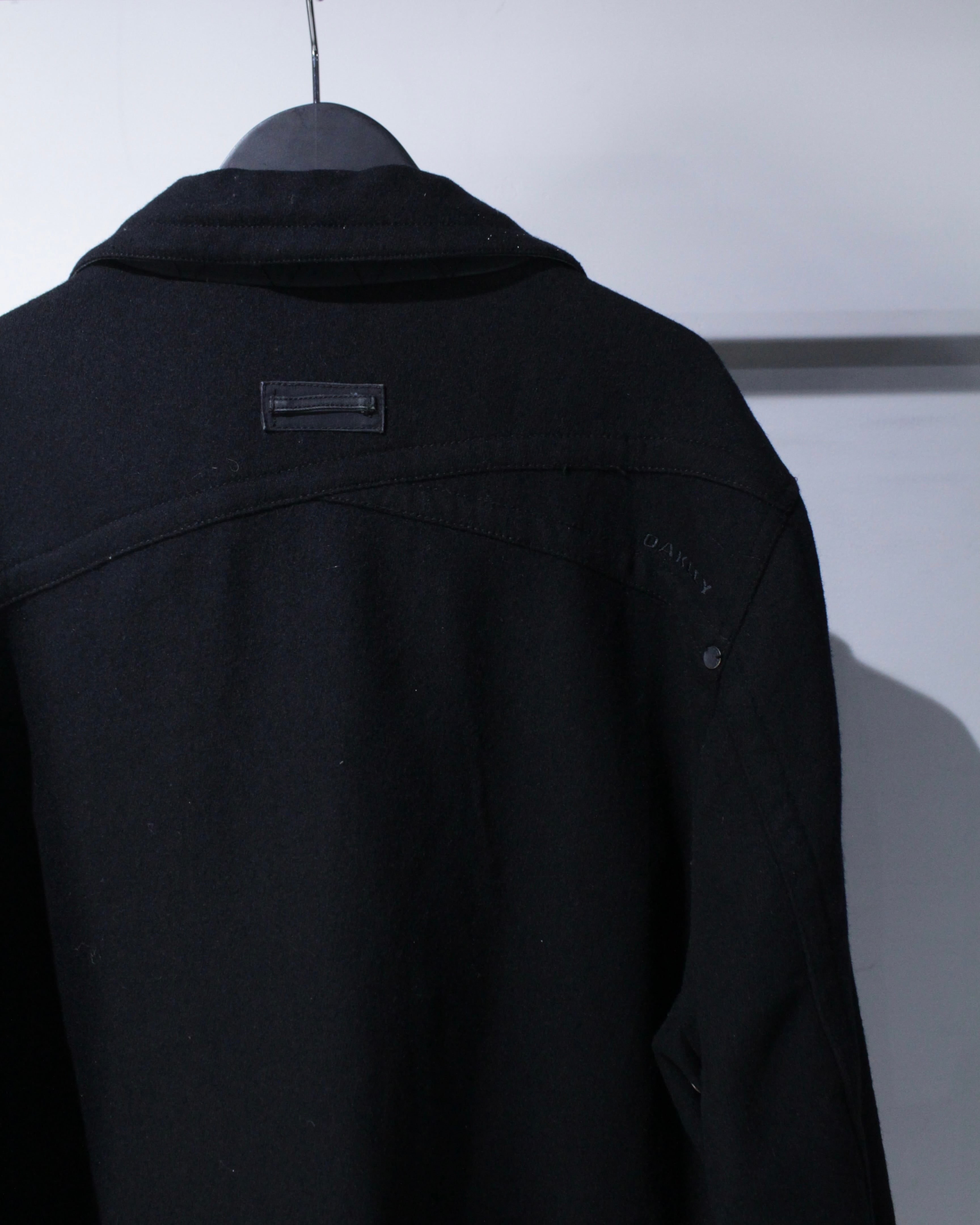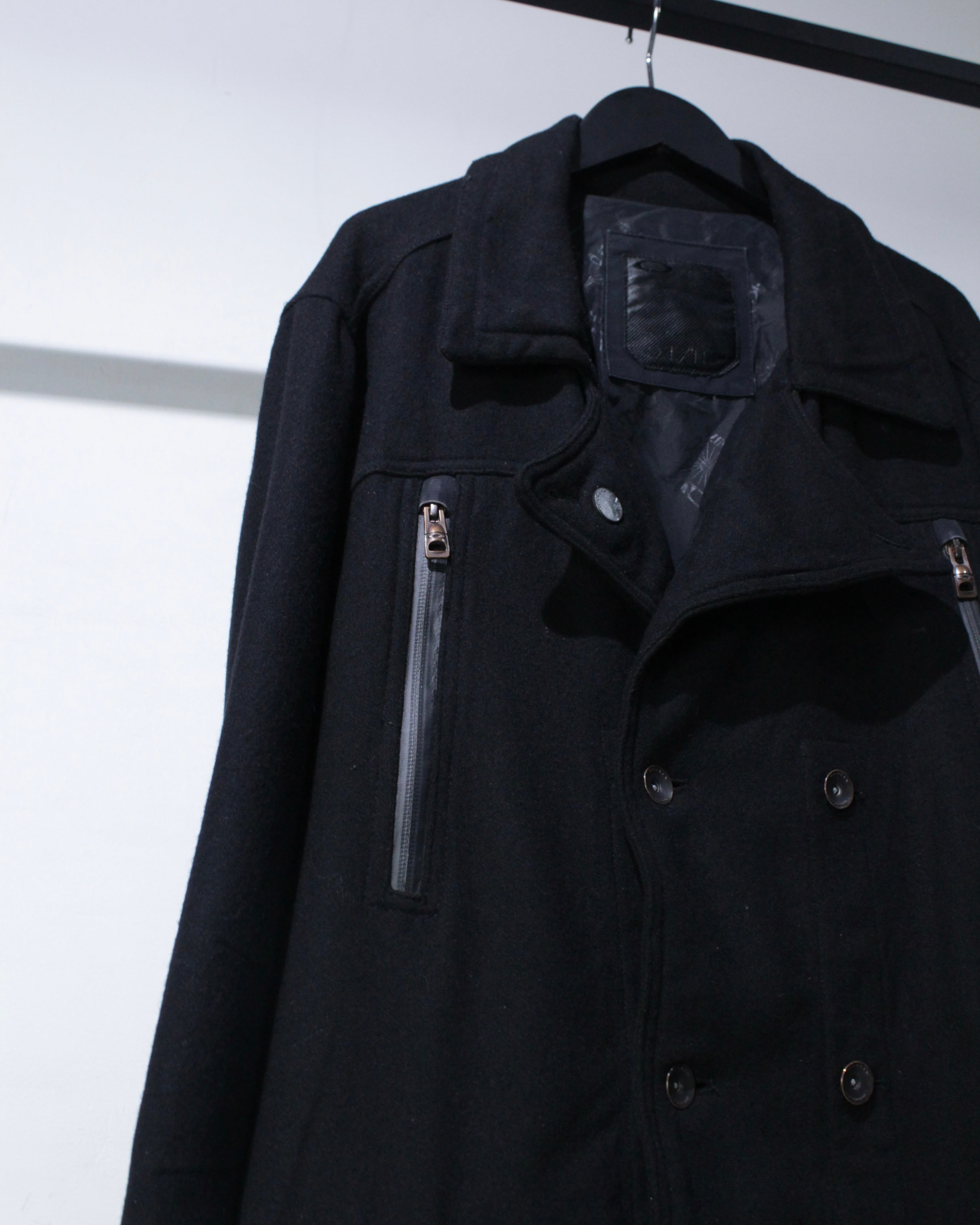 ボディには重厚感のあるウールを採用。ピーコートらしいダブルブレストをベースにしながらも、どこかテックウェアを思わせるシャープな空気感が漂う仕上がりです。