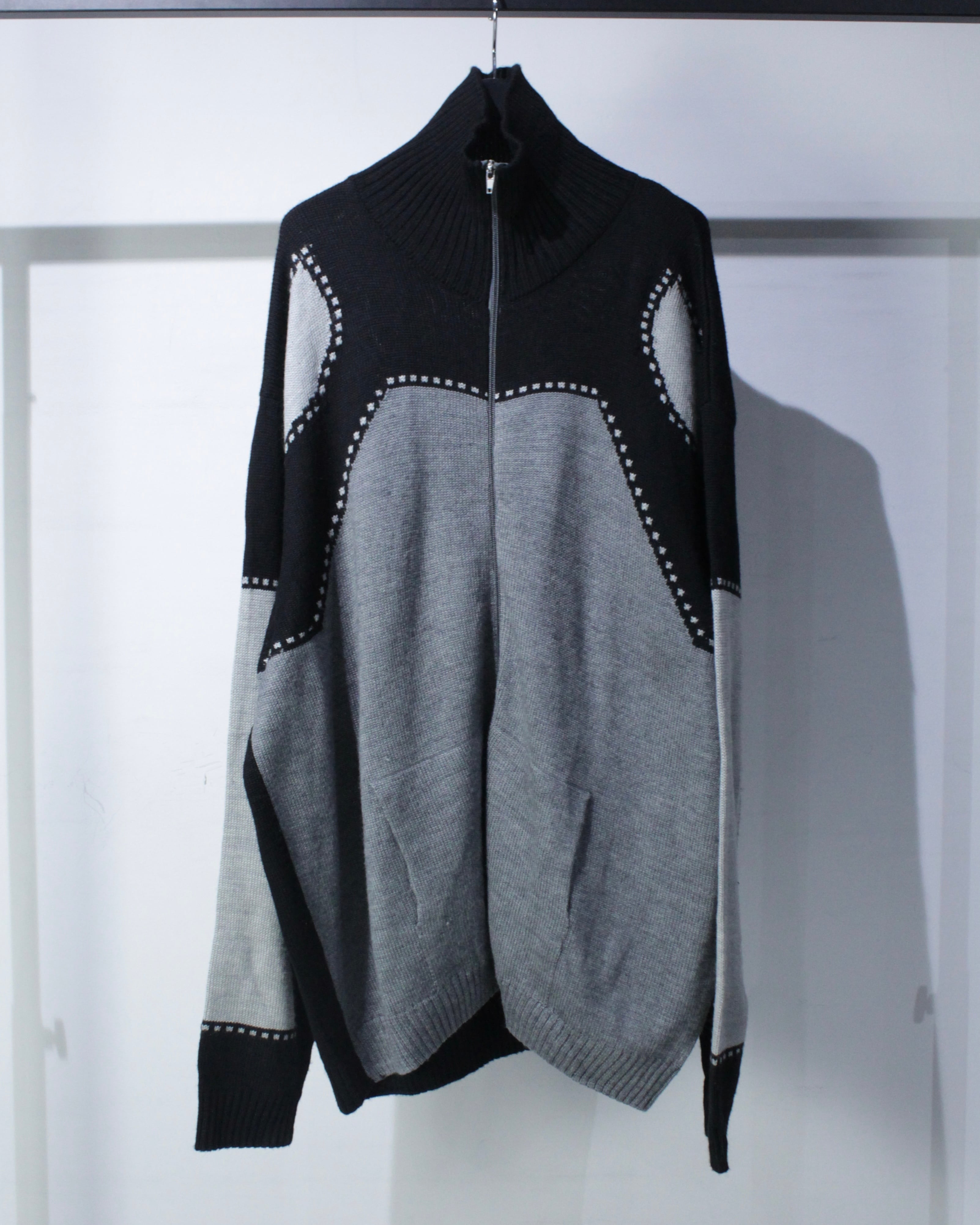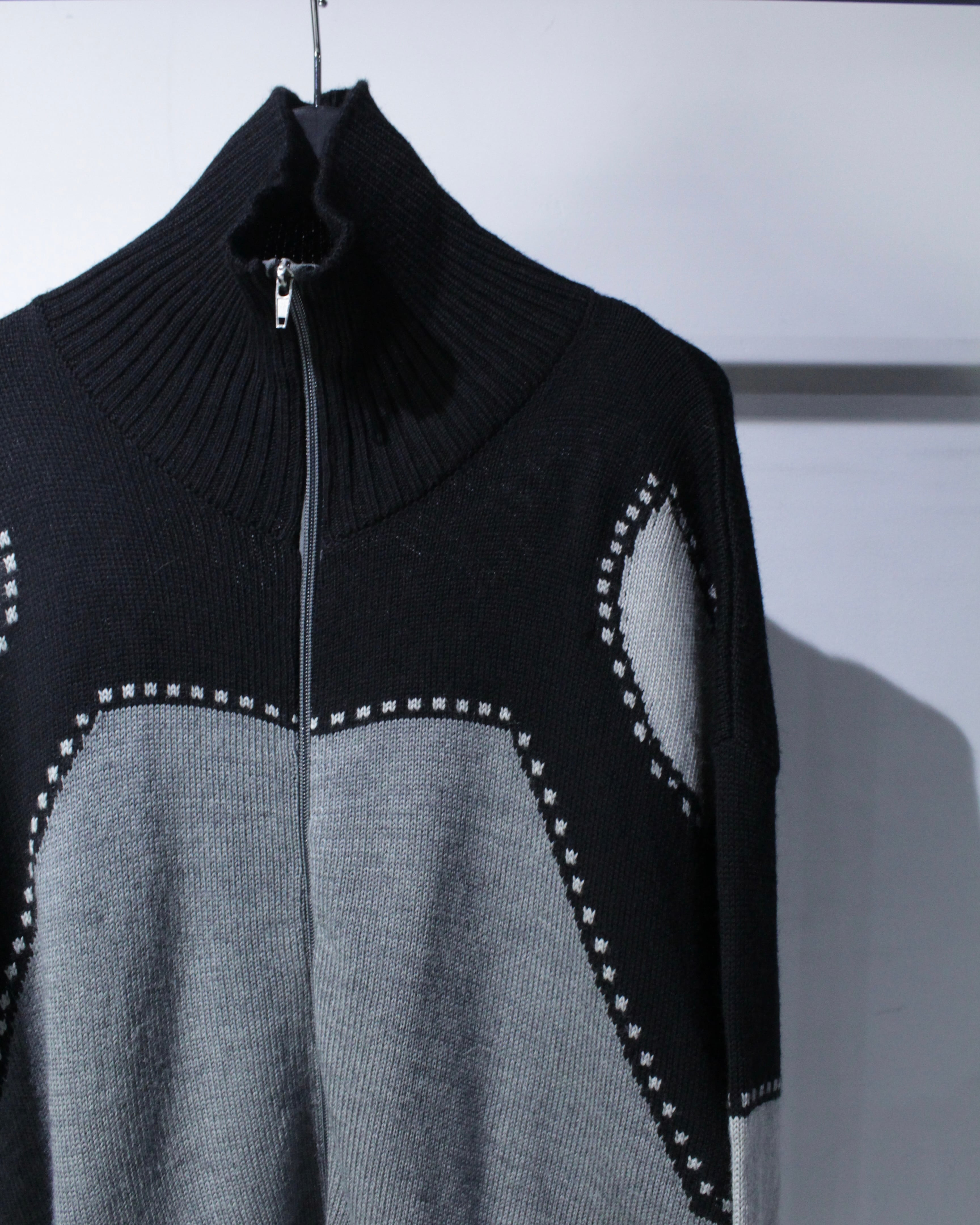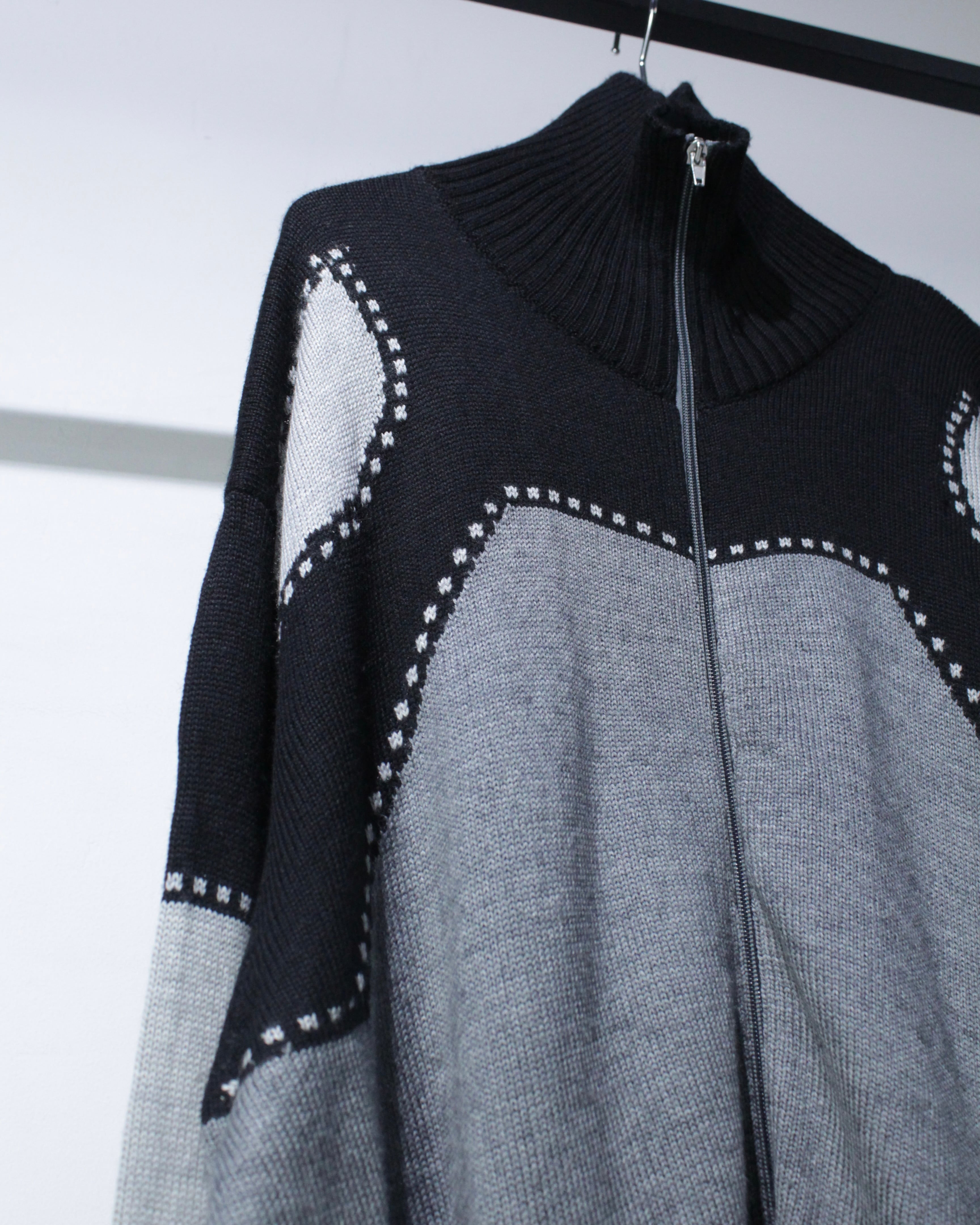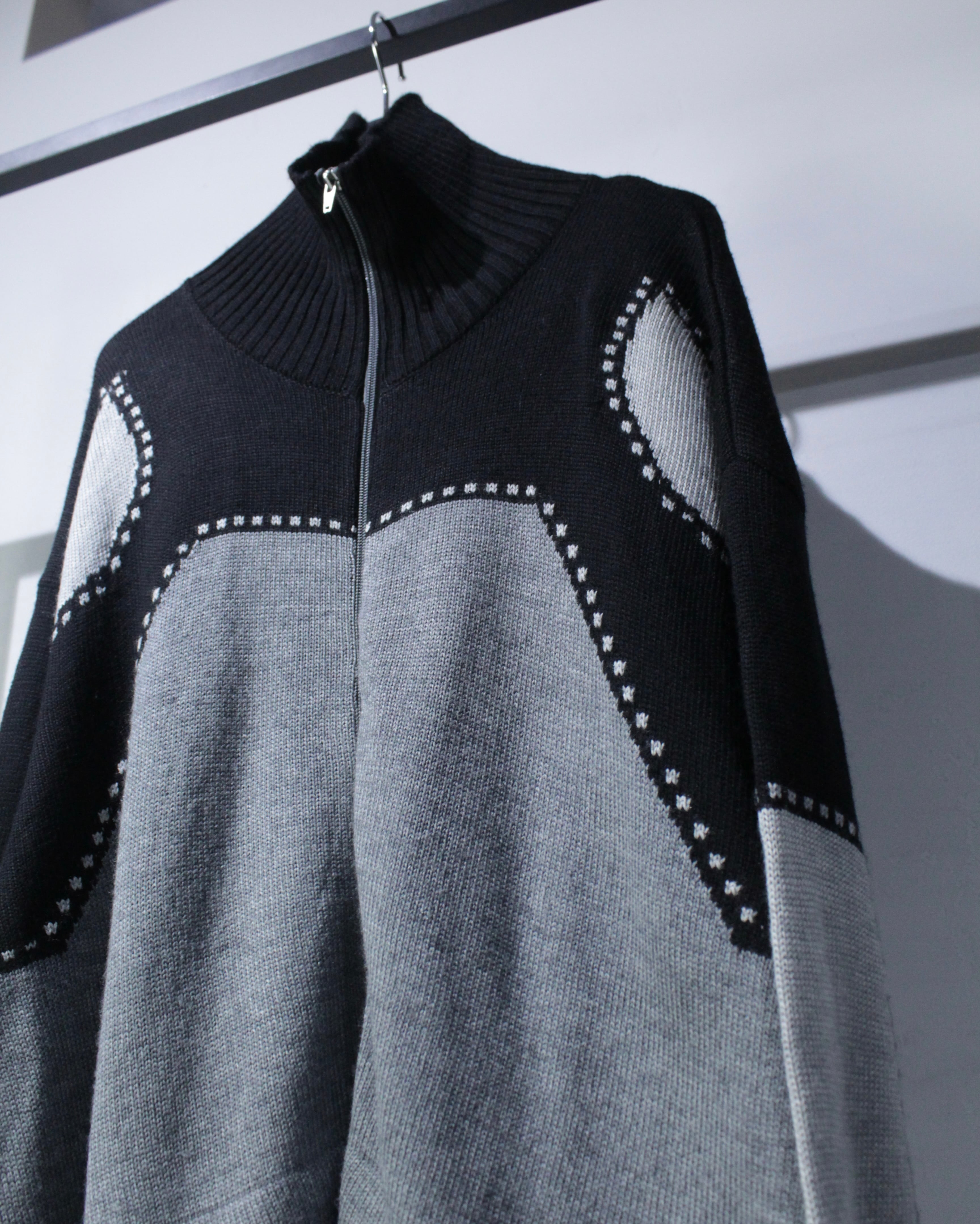素材には程よく肉感のあるニットを使用。しなやかさとコシを併せ持ち、軽いアウター感覚でも着用できる安心感のある仕上がり。フロントジップ仕様により、開け閉めでスタイリングの印象を自在に変えられる点もポイントです。