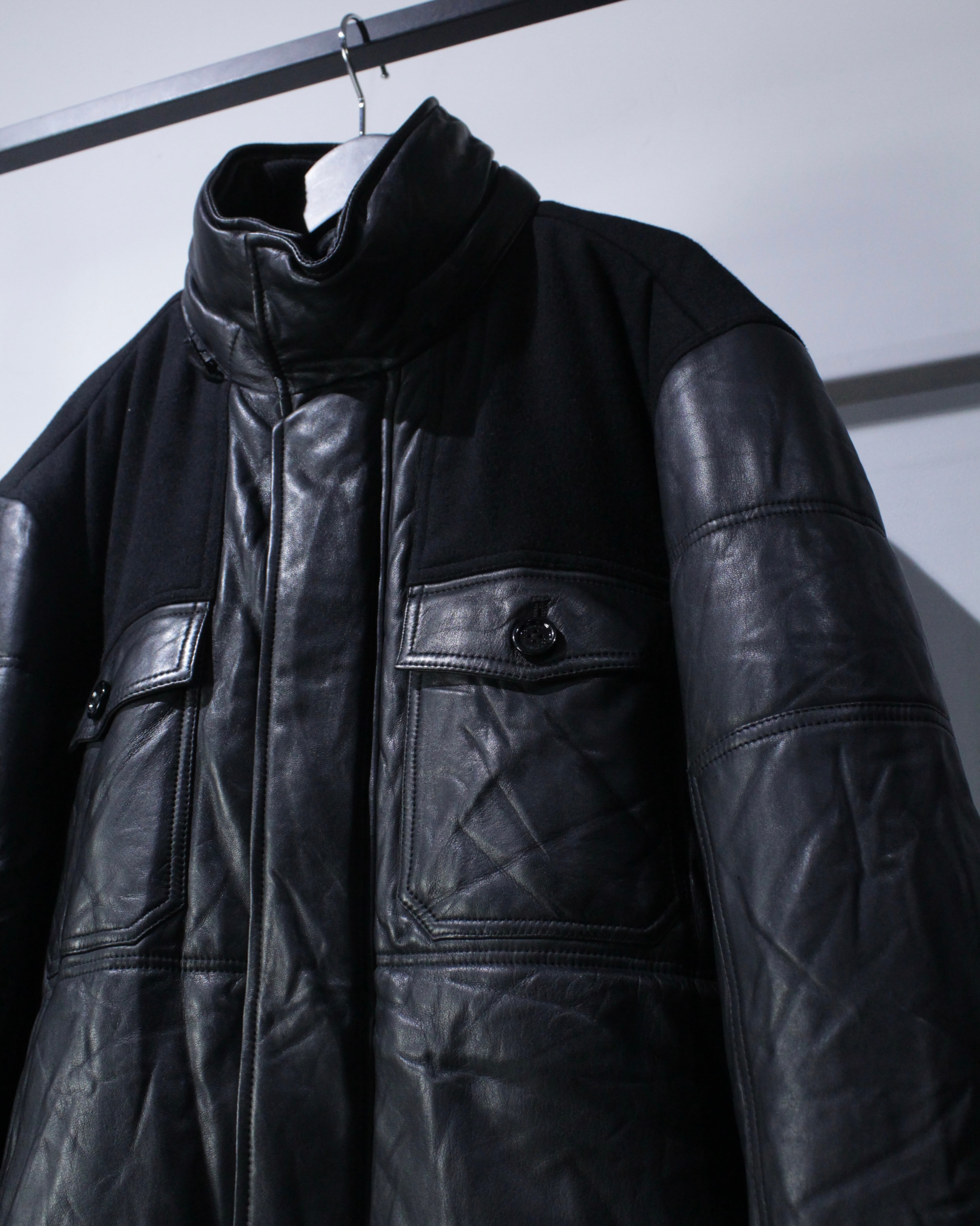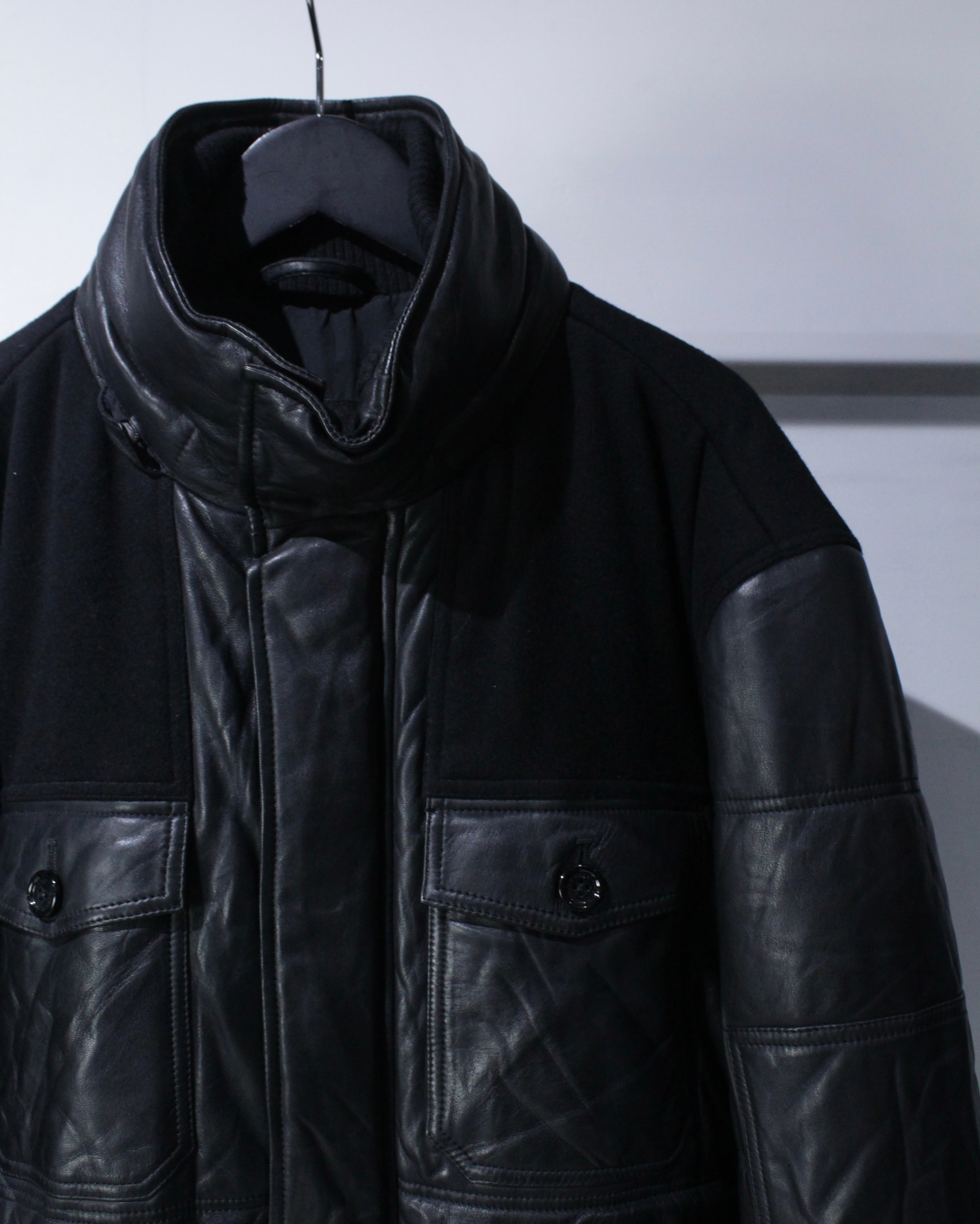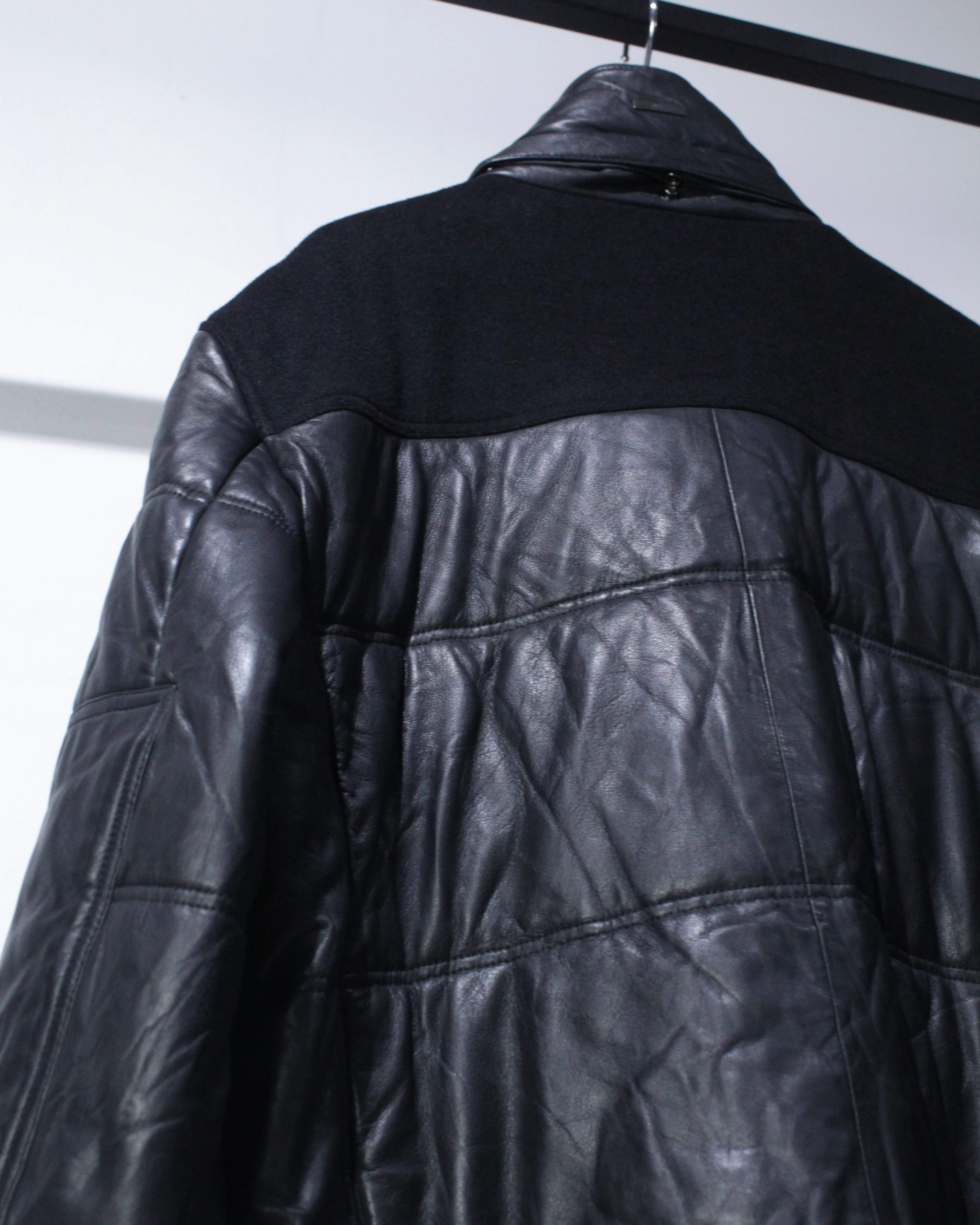 ヨークはウール素材を切り替えで配置。異素材によるコントラストが、オールレザーにはない柔らかさと奥行きをプラスし、着用時の可動域や快適性にも配慮された仕上がりに。