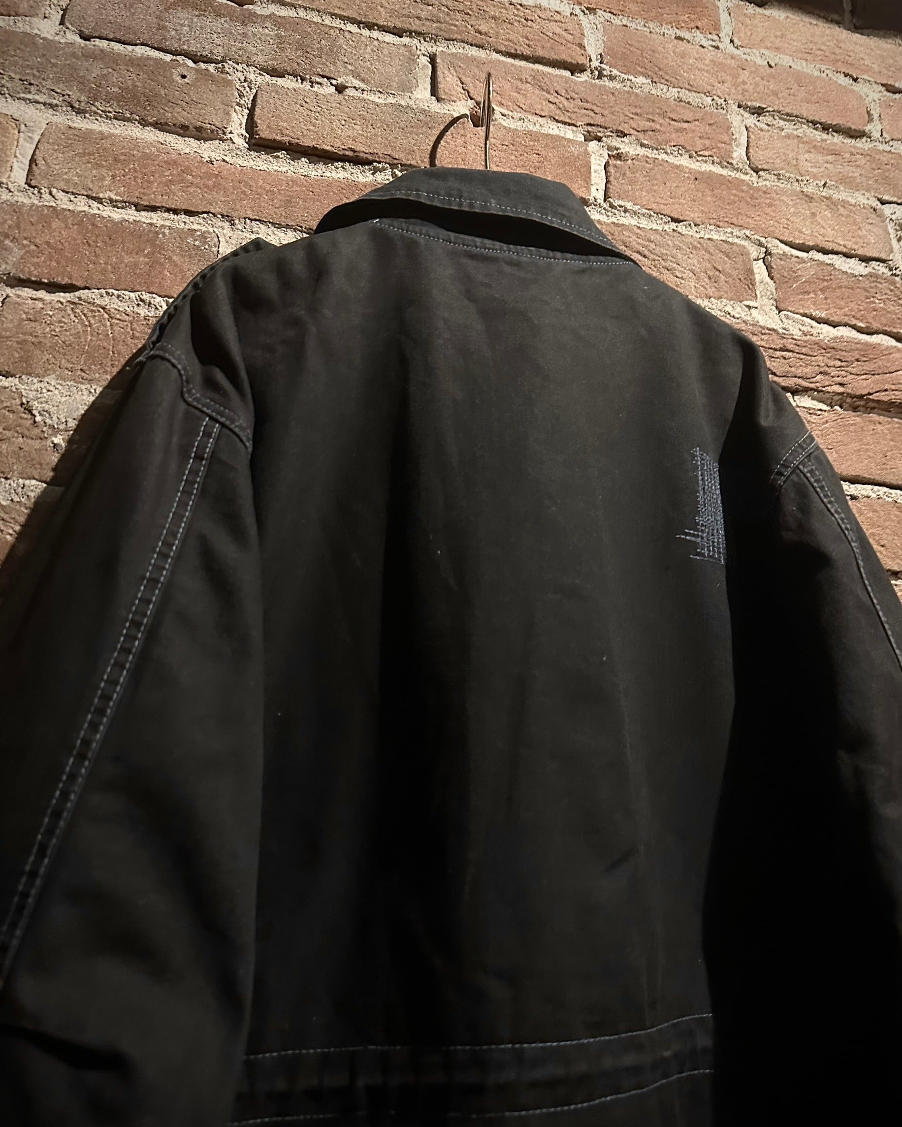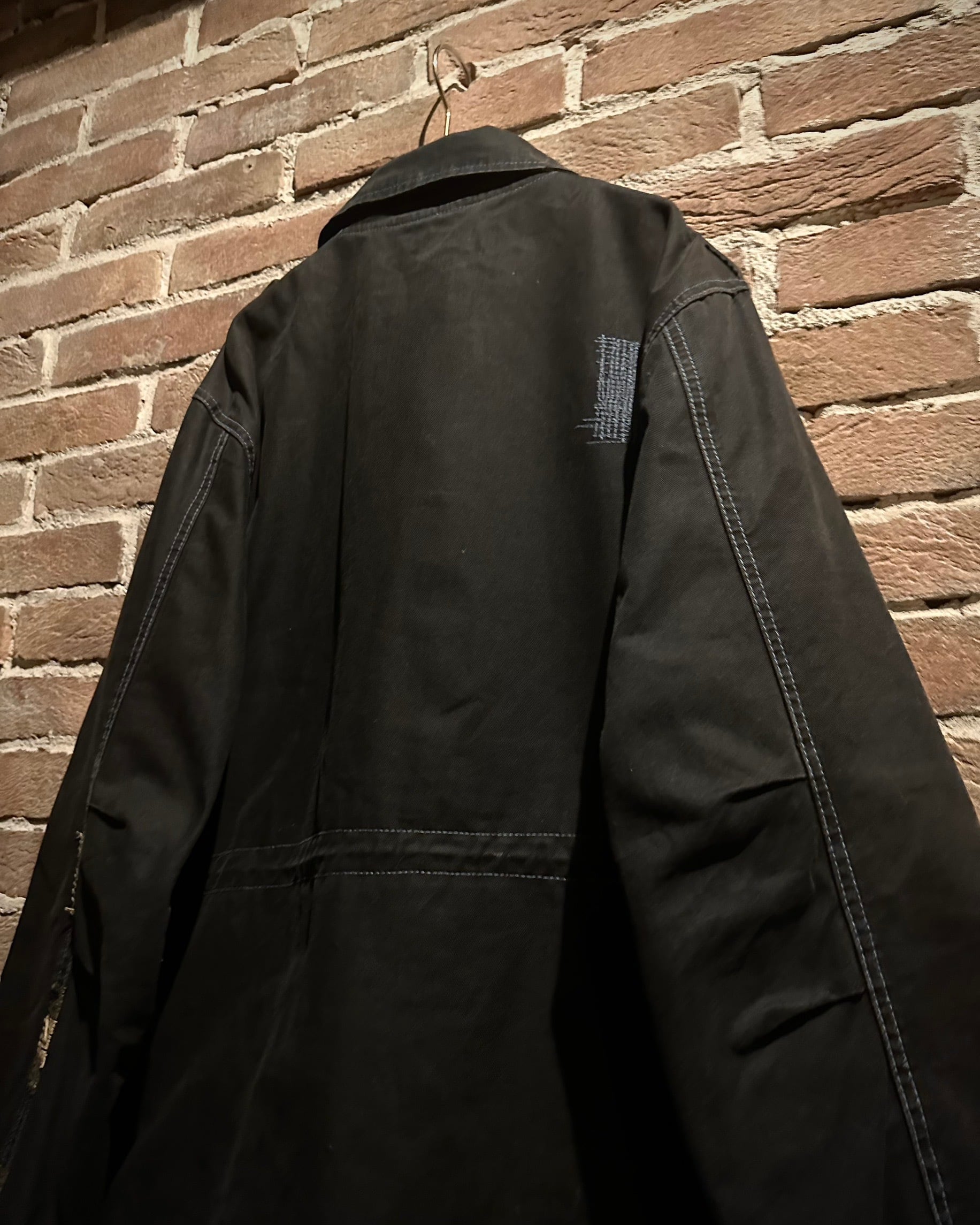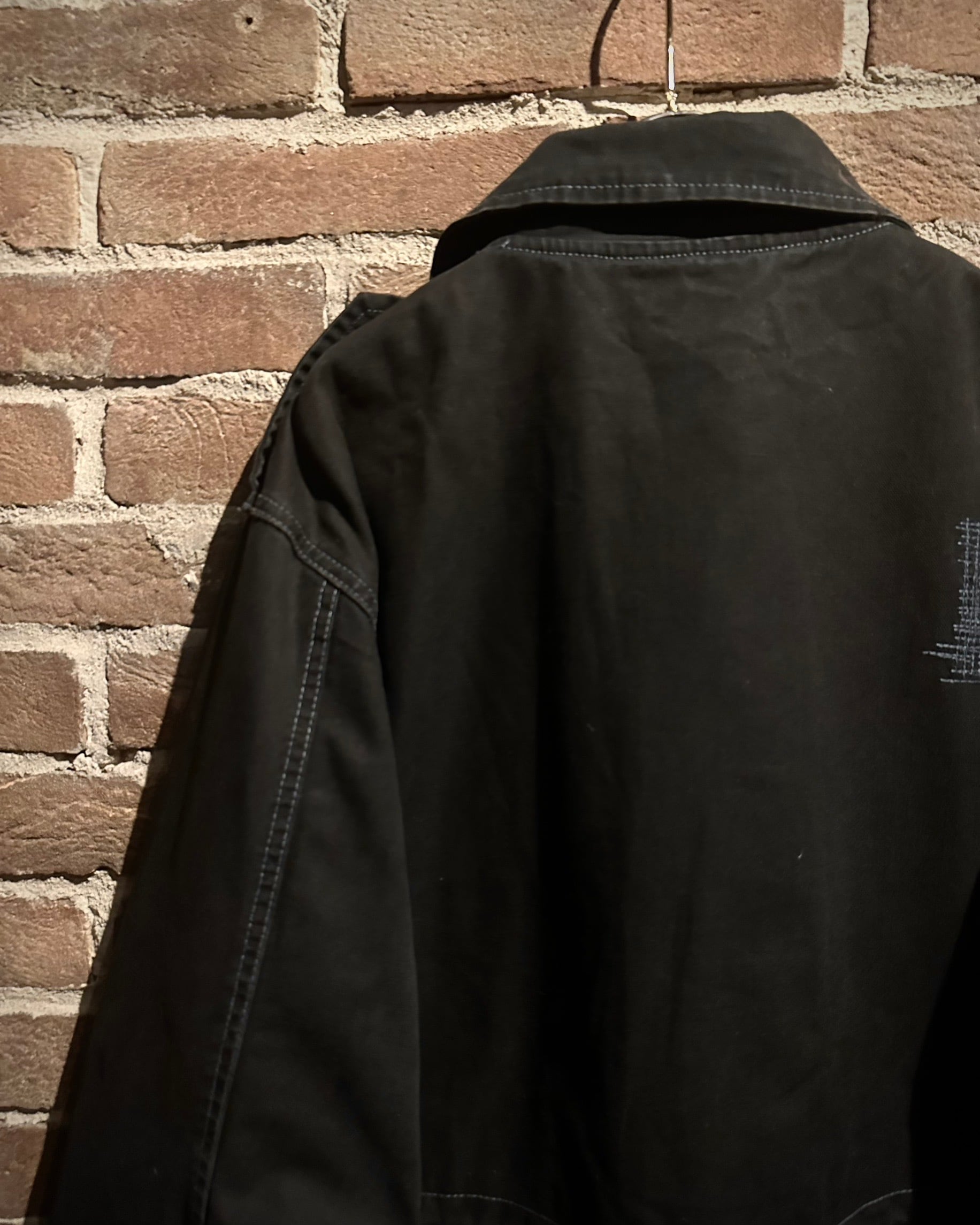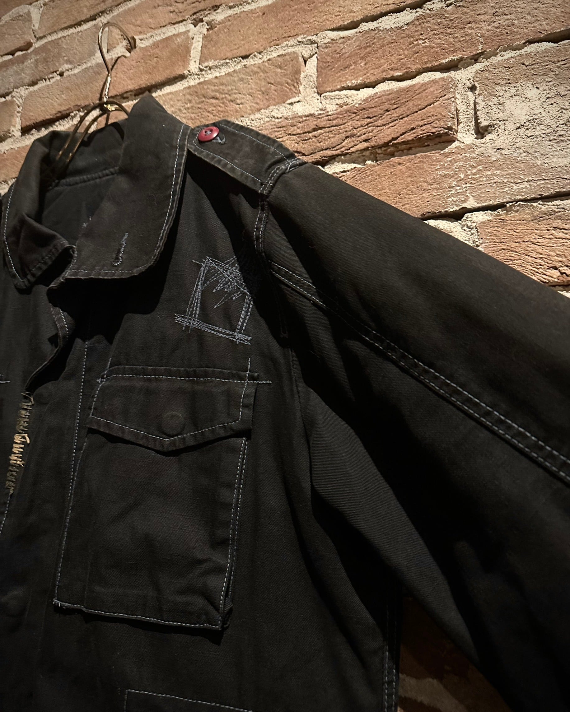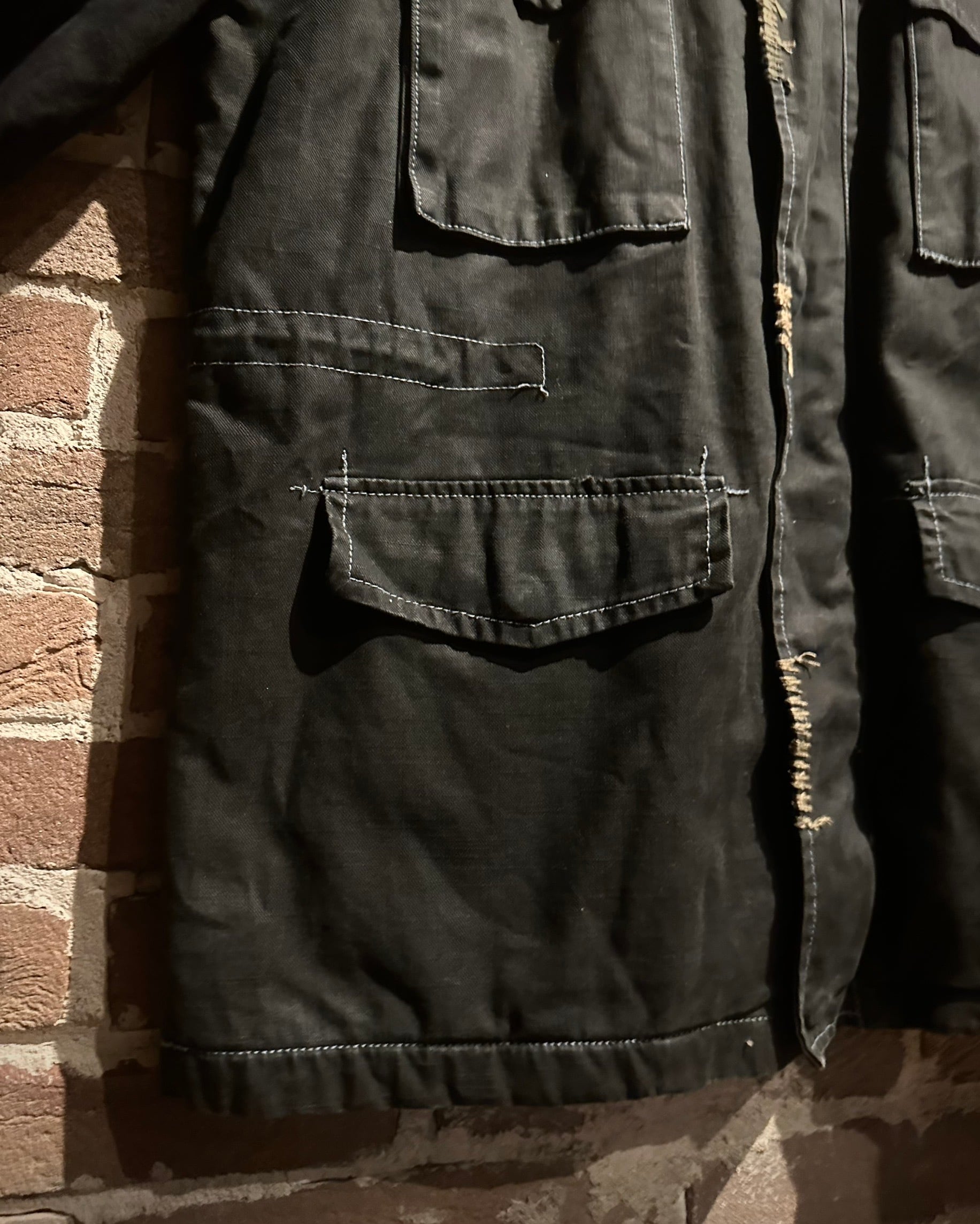フロントに配されたフラップポケットやスタンドカラーになる襟、エポレットなど、M-65由来のディテールをしっかり踏襲。加えて、随所に見られる粗めのステッチが退廃的なムードを生み、モードな一着へと昇華されています。