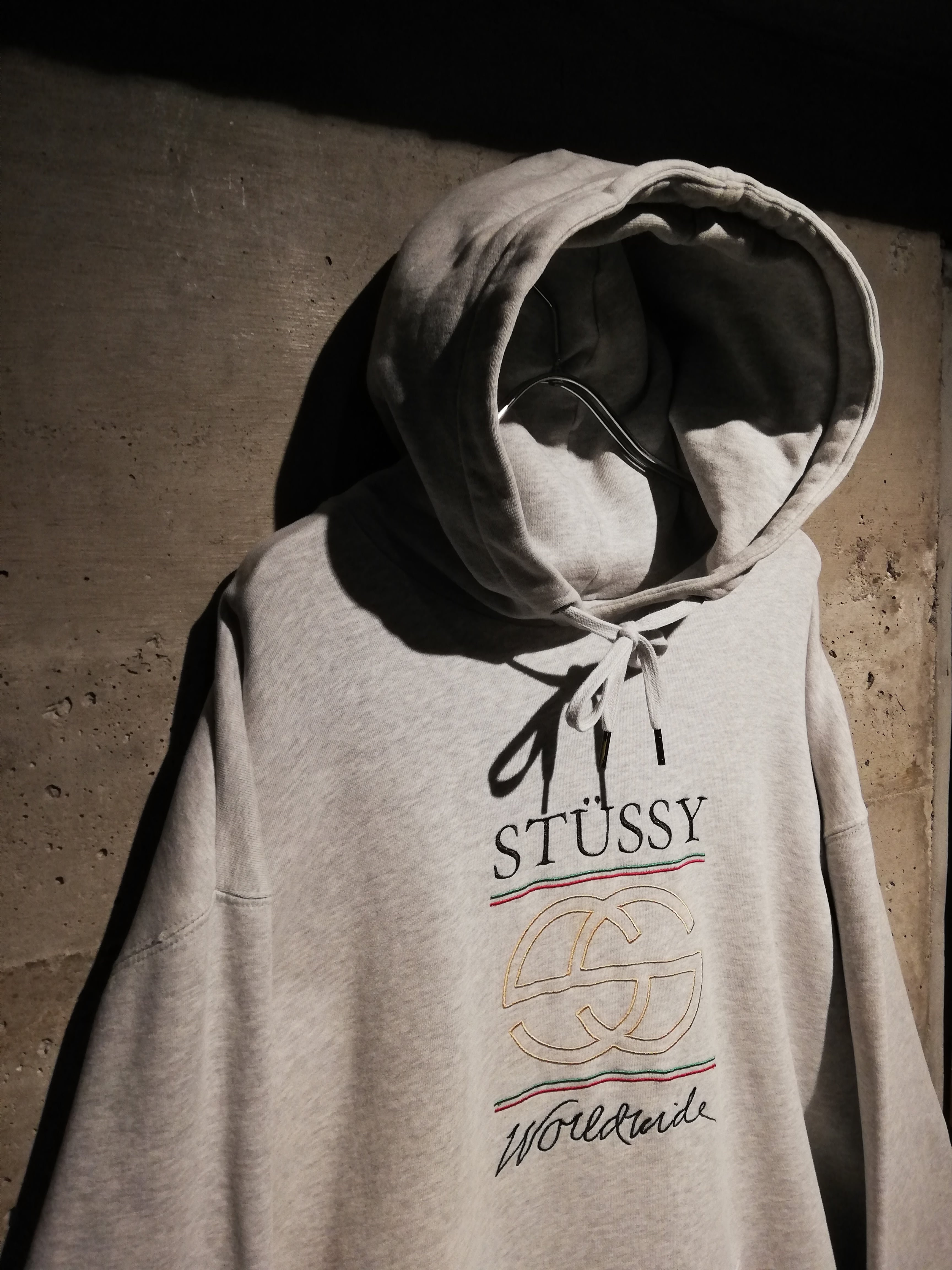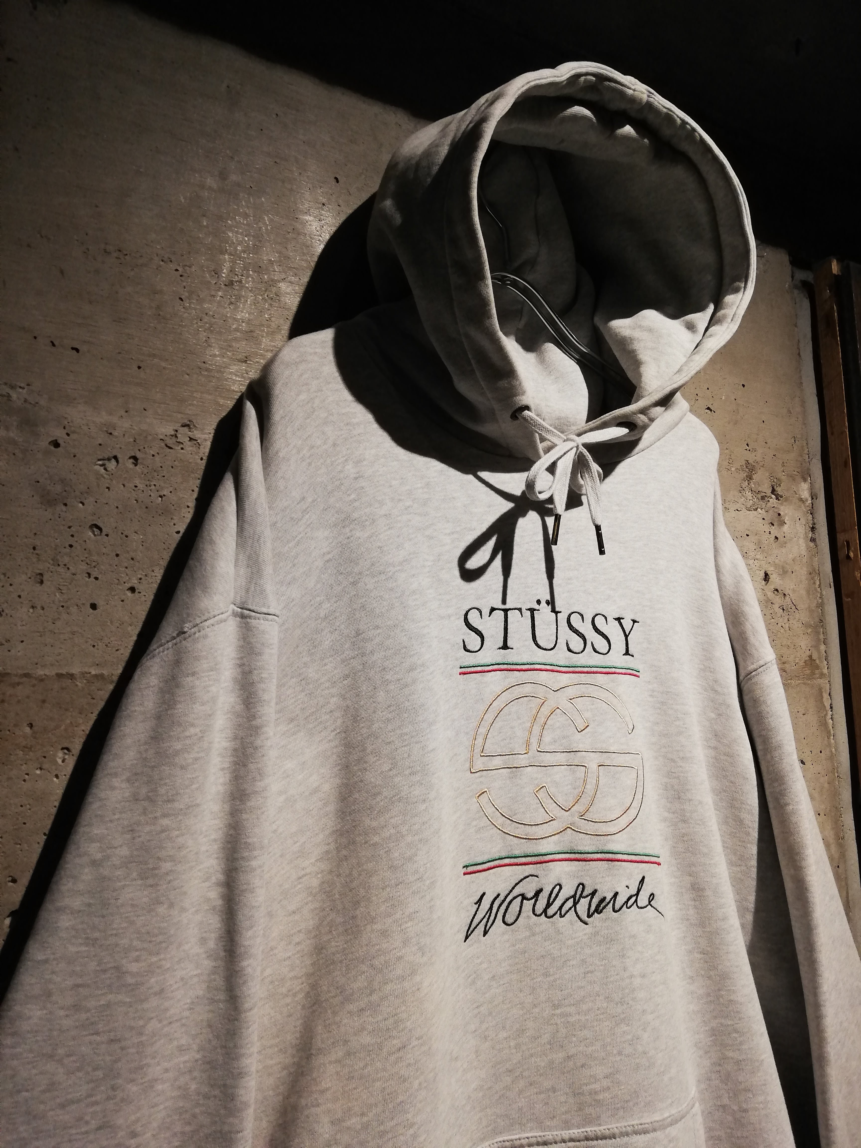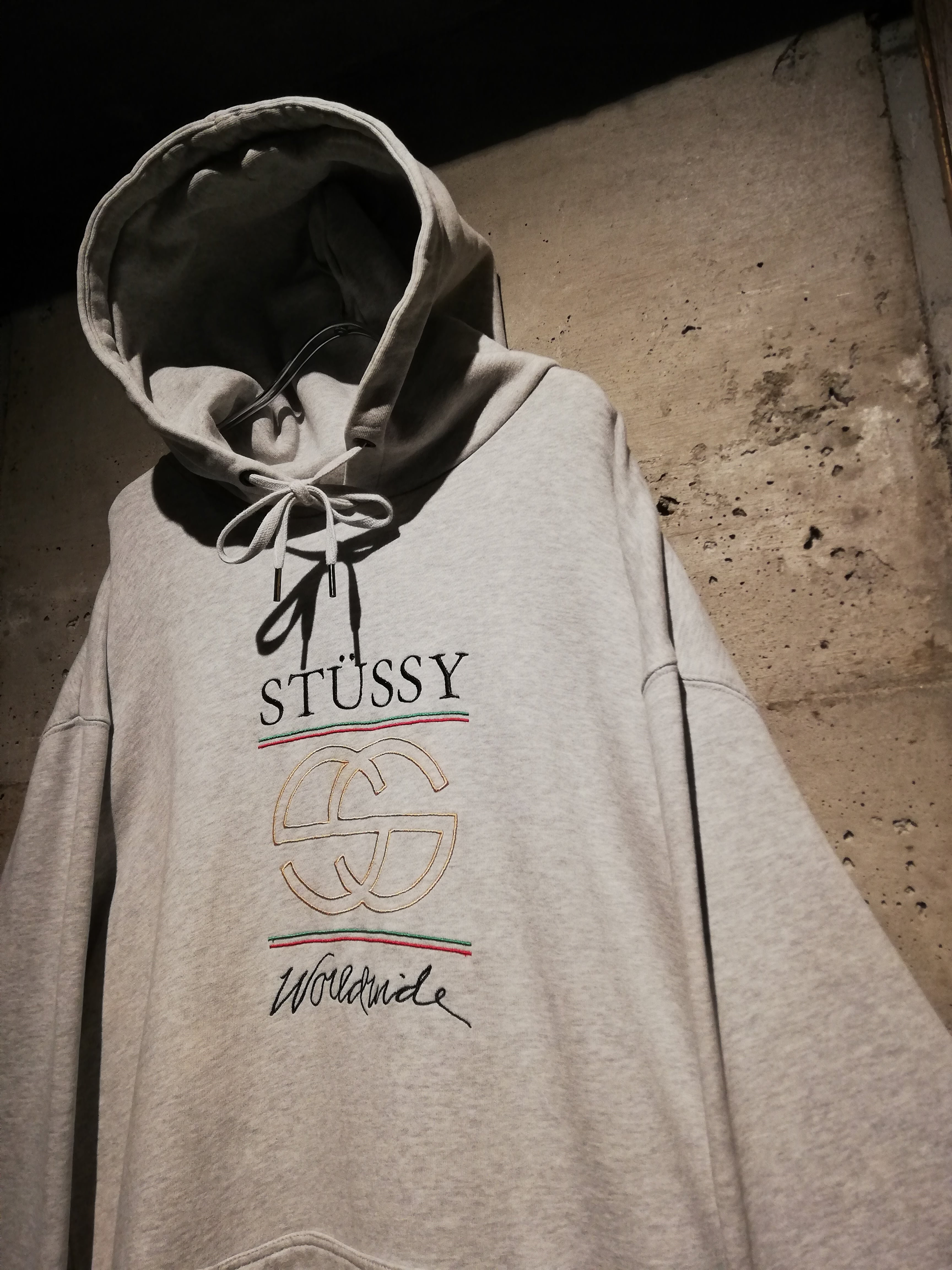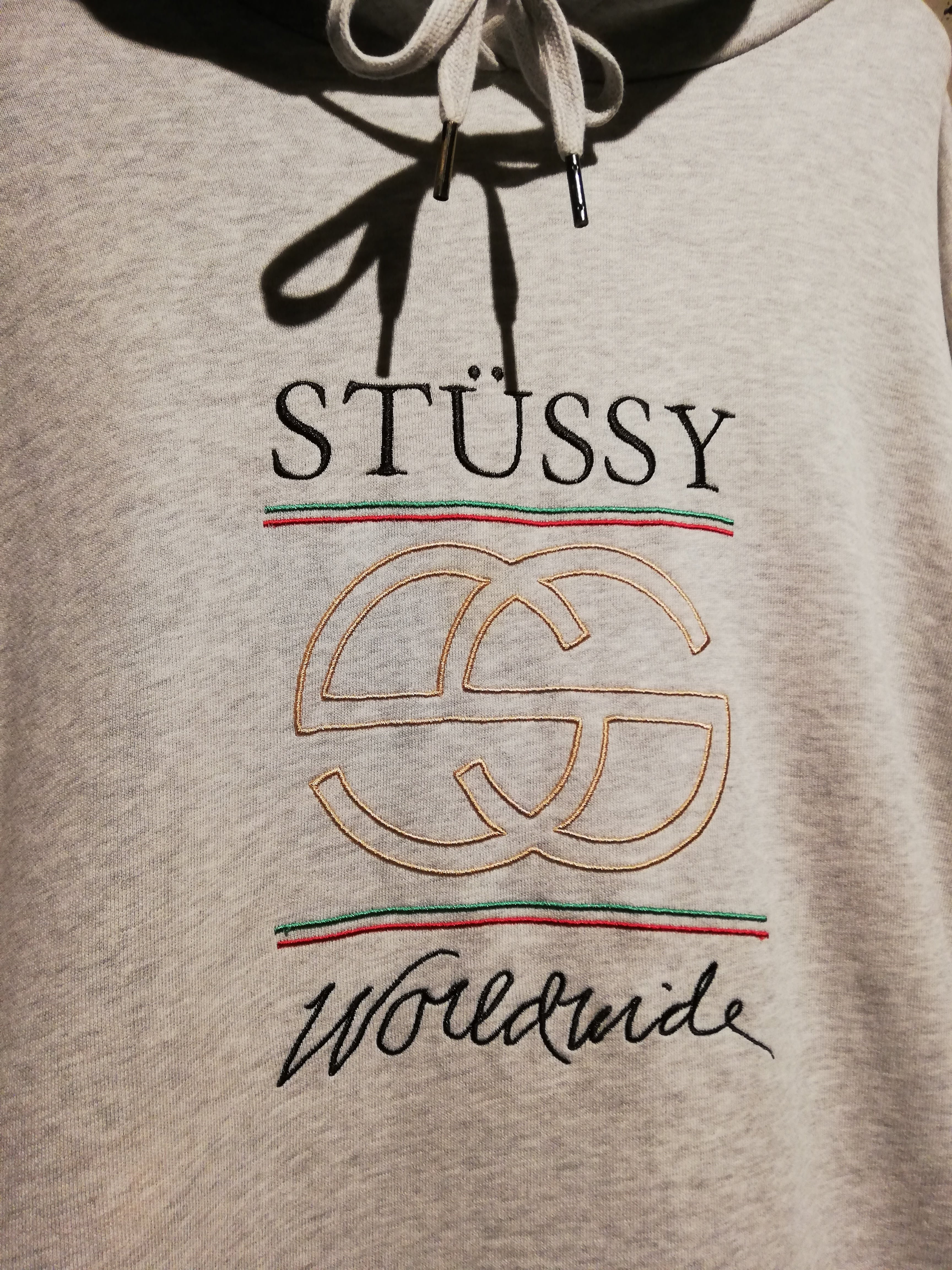 グレーボディをベースに、フロントにはStussyロゴと“worldwide”の刺繍、そして誰もが一度は目にしたことのあるラグジュアリーメゾンを想起させるダブルCモチーフ、シェリーライン的な刺繍を配置。