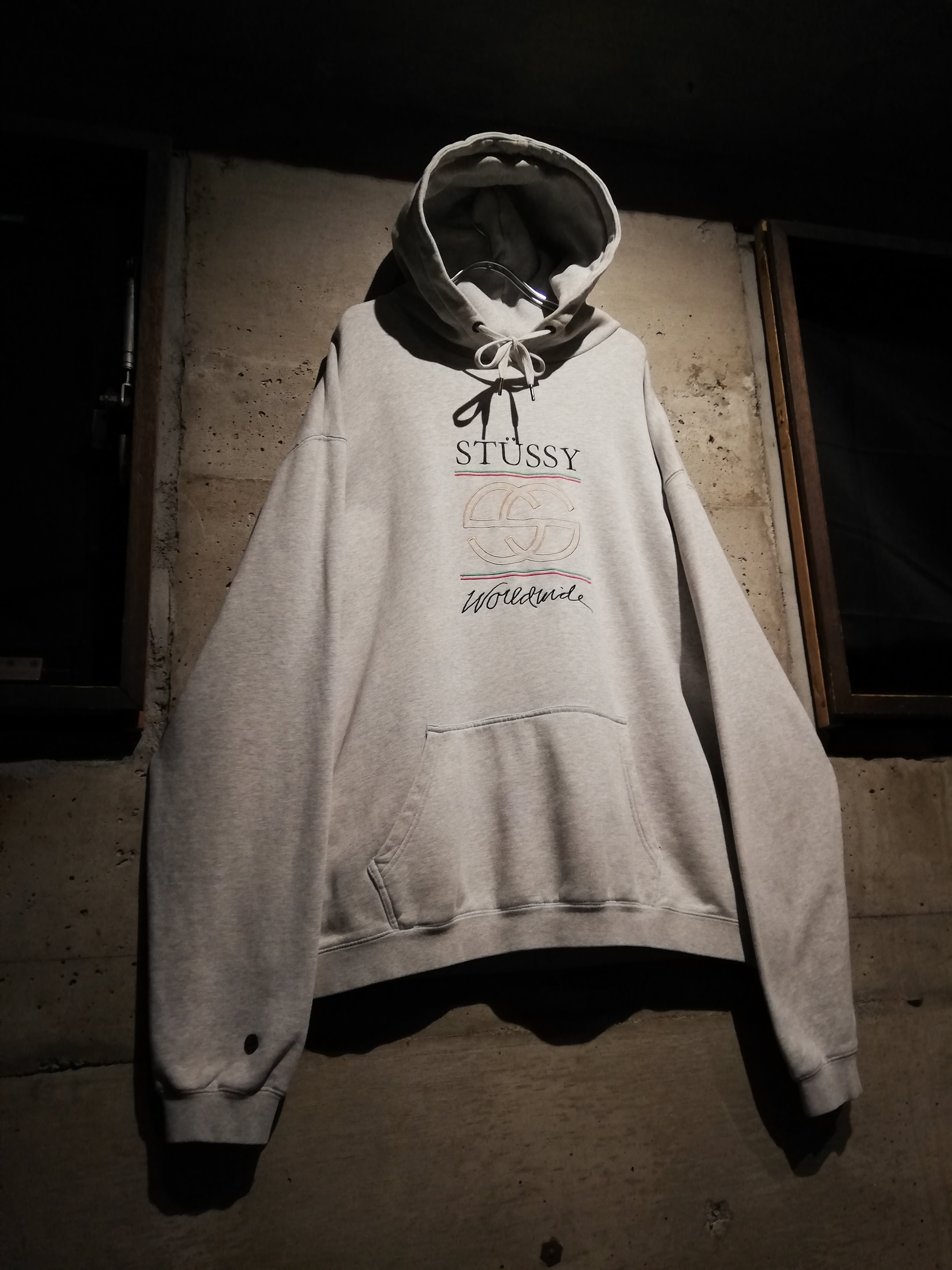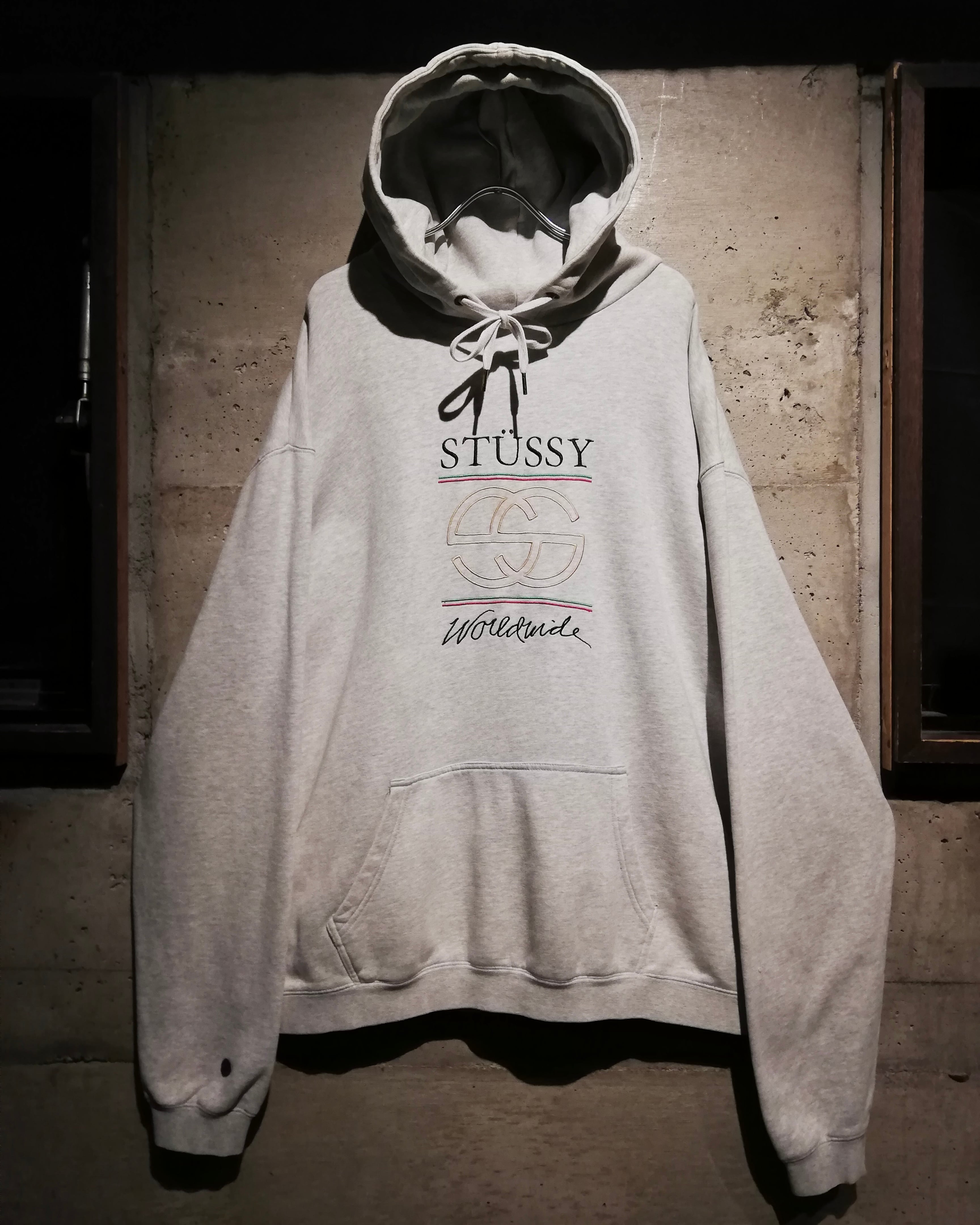 当時のStussyらしいウィットとバランス感覚が色濃く表れています。袖口にはさりげなくワンポイントのロゴパッチを配し、細部まで抜かりありません。