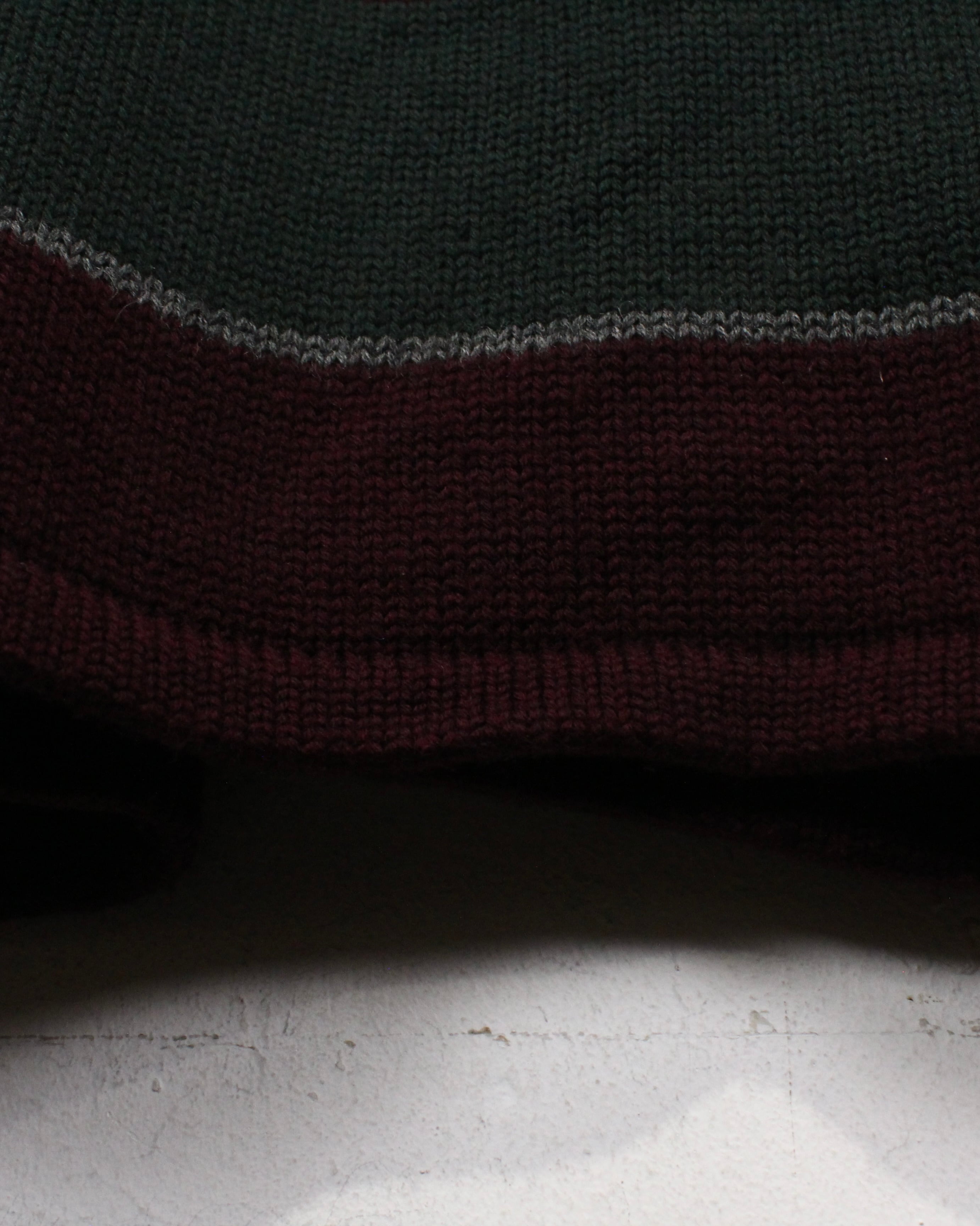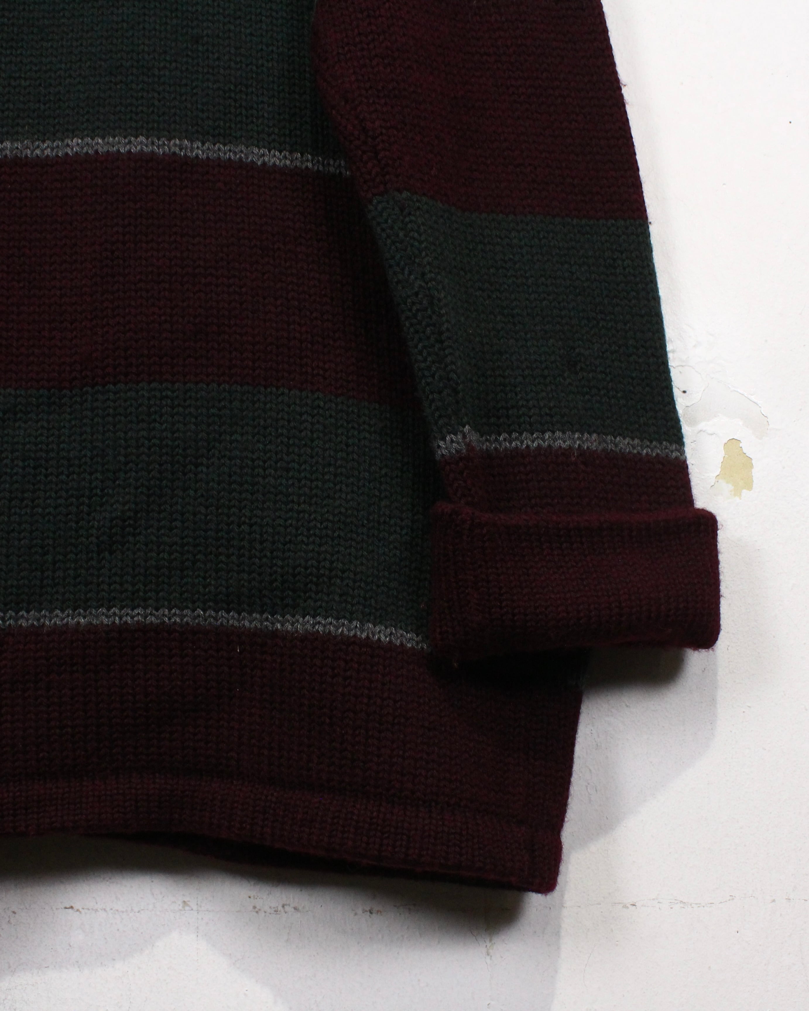 ボディはウール100%のニット素材。ルーズなサイジングでざっくりとした編み地でありながら程よい肉感があり、アウター、インナーどちらでもしっかりと活躍してくれます。
