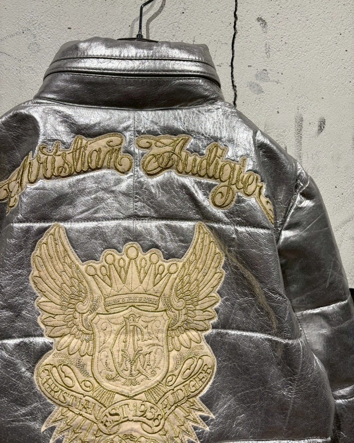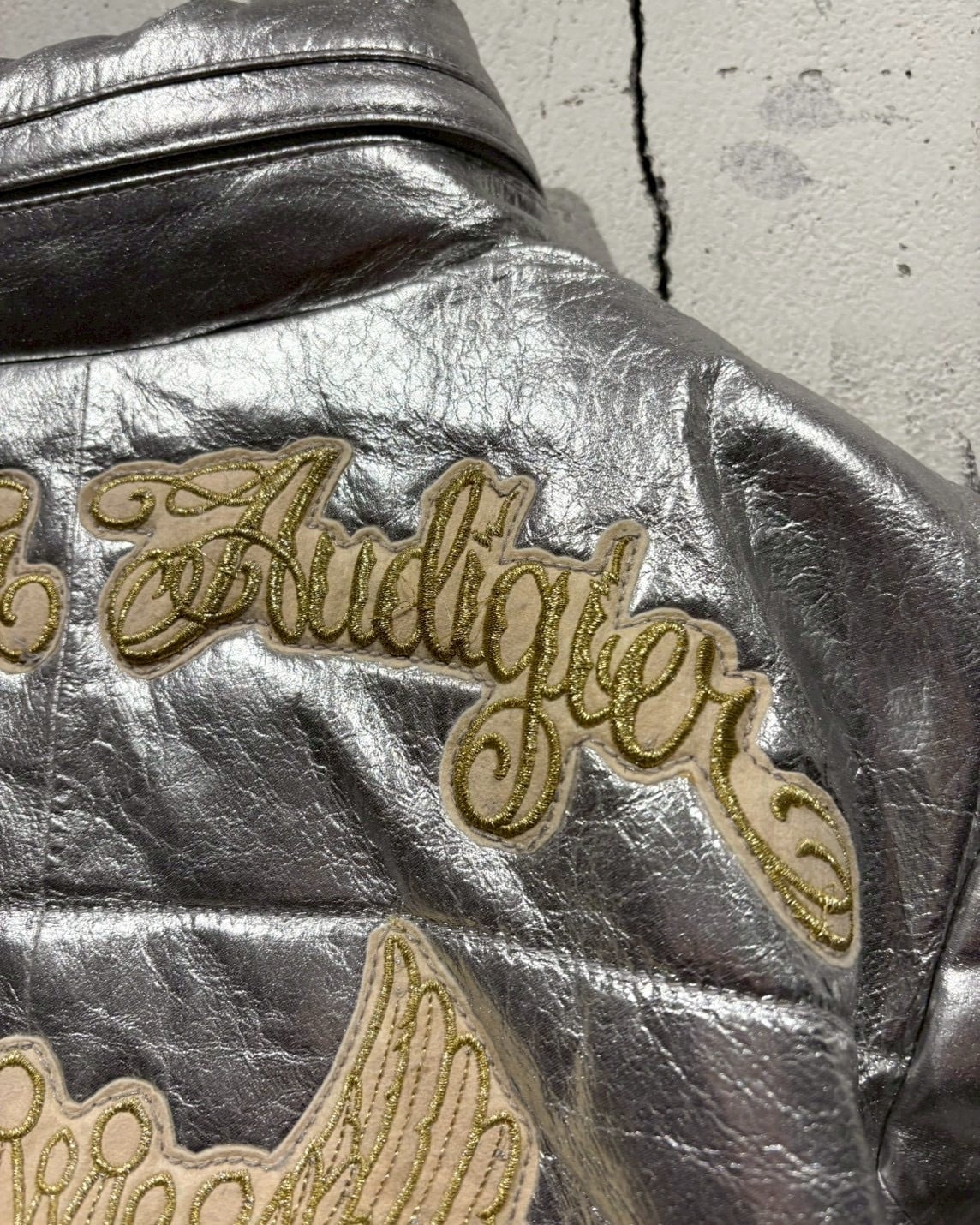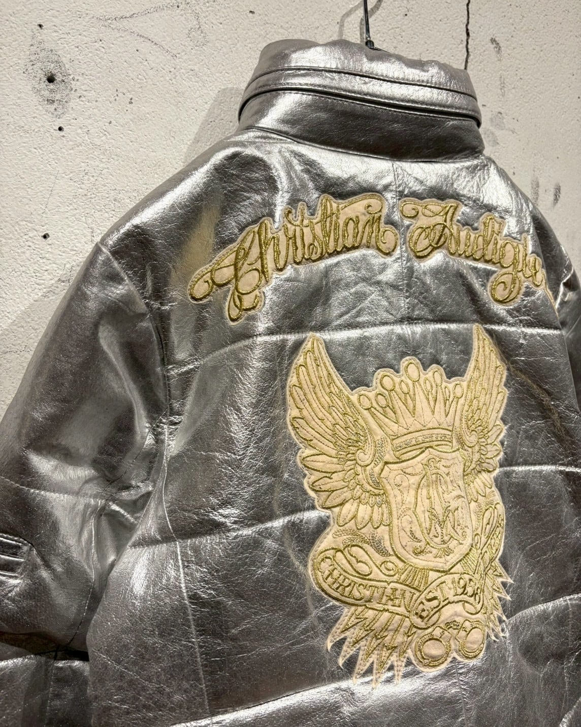 2000年代初頭、タトゥーカルチャーとファッションを強く結びつけたデザイナー、“クリスチャン・オードジェー”のシグネチャーブランドとして展開された“Christian Audigier”のレザーパデットジャケット。
