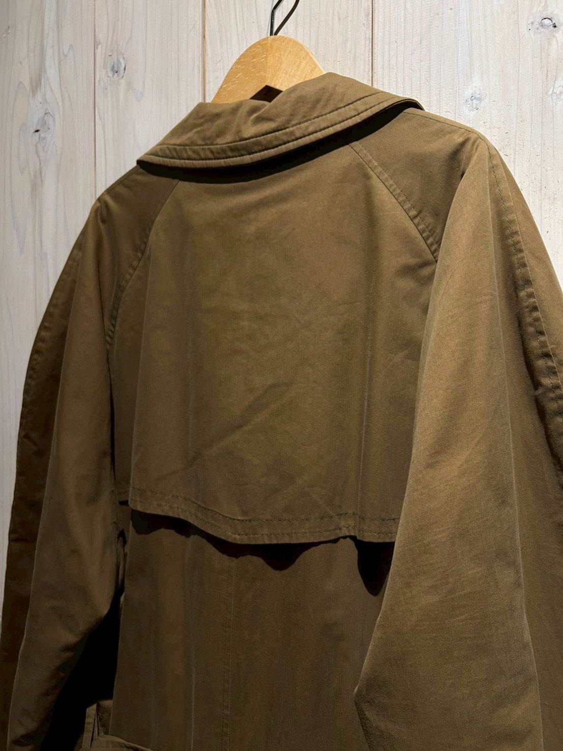 表地にはコットンをベースとしたしなやかなファブリックを採用。ハリを残しつつも硬さのない質感で、トレンチ特有の無骨さを抑え、都会的で上品なムードに仕上がっています。