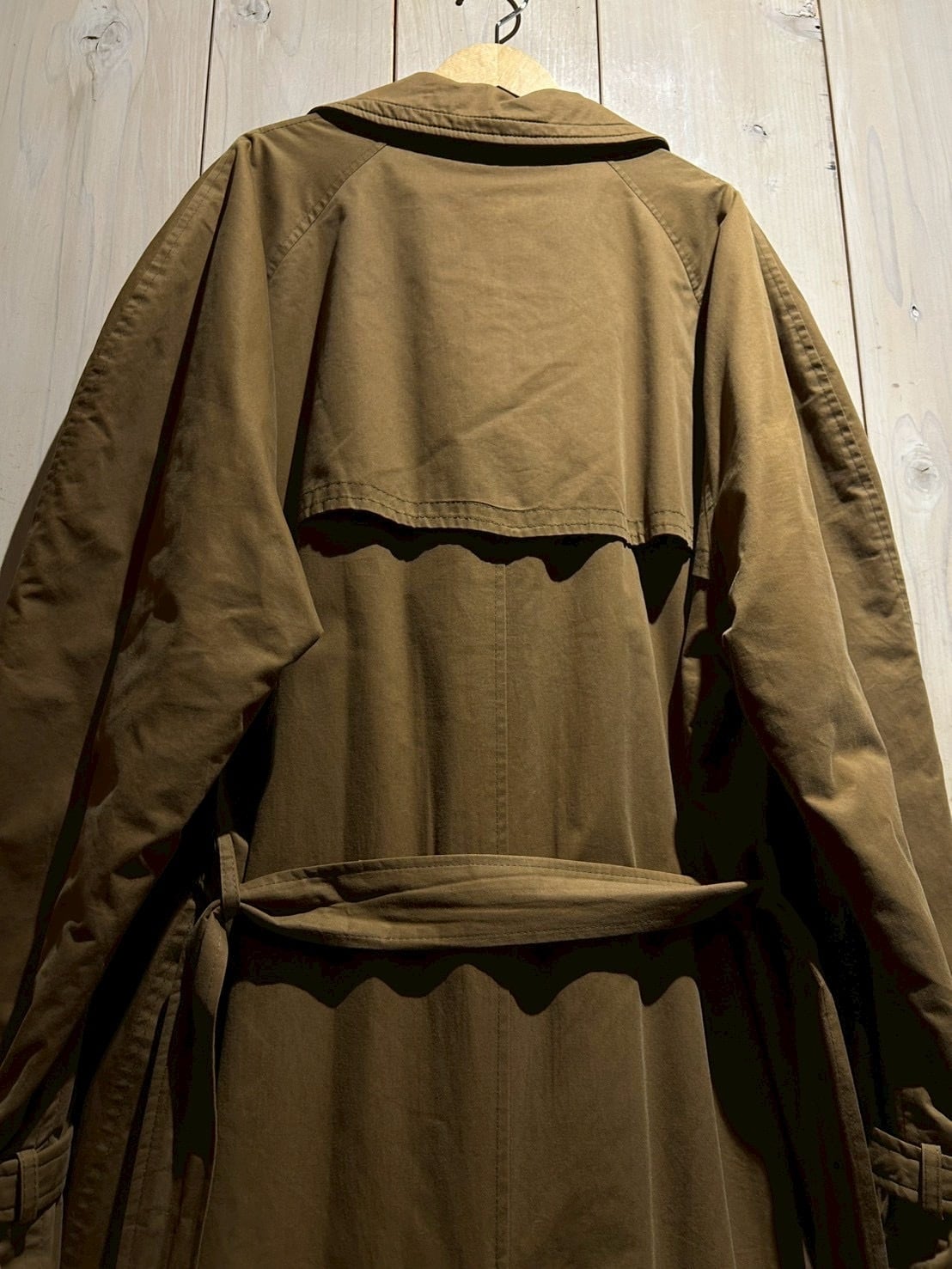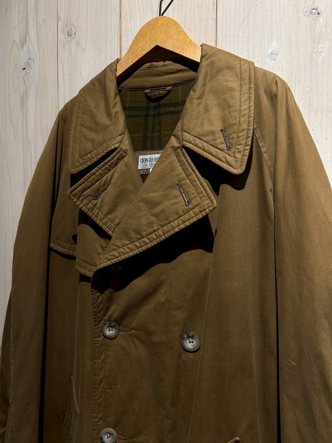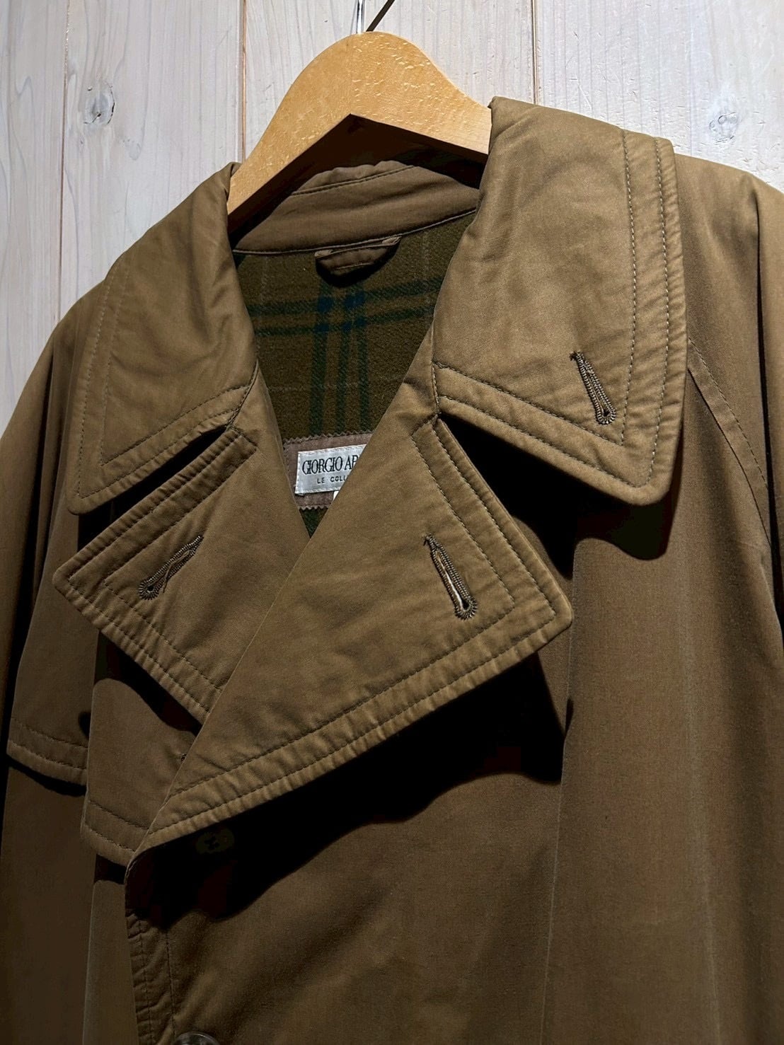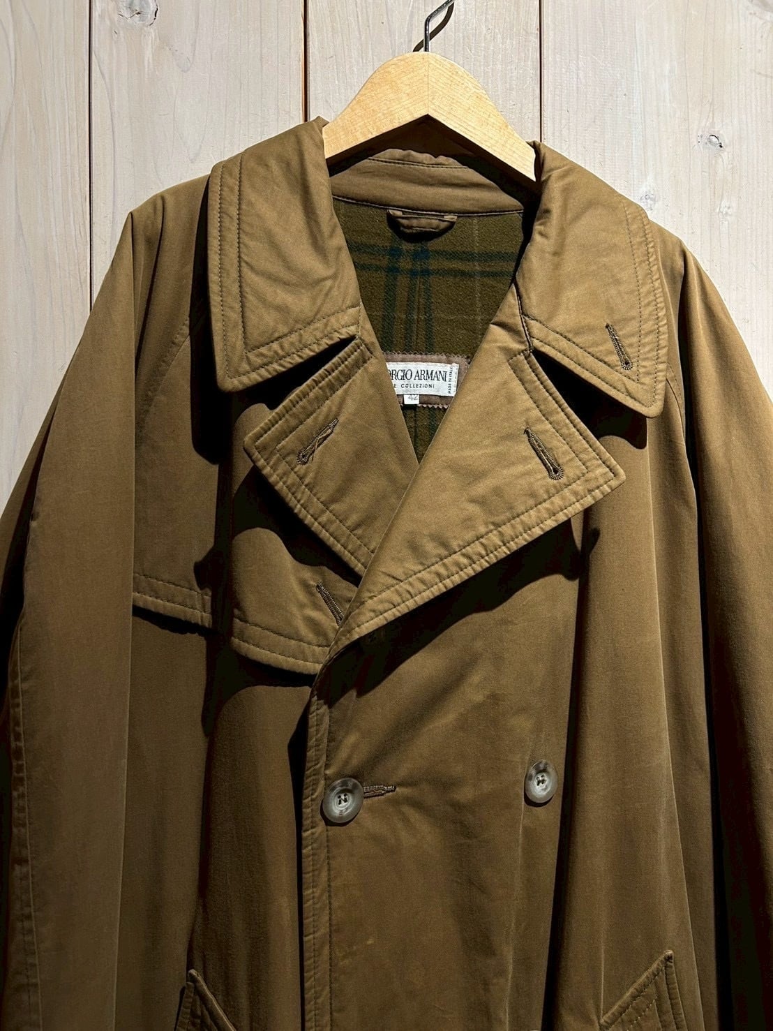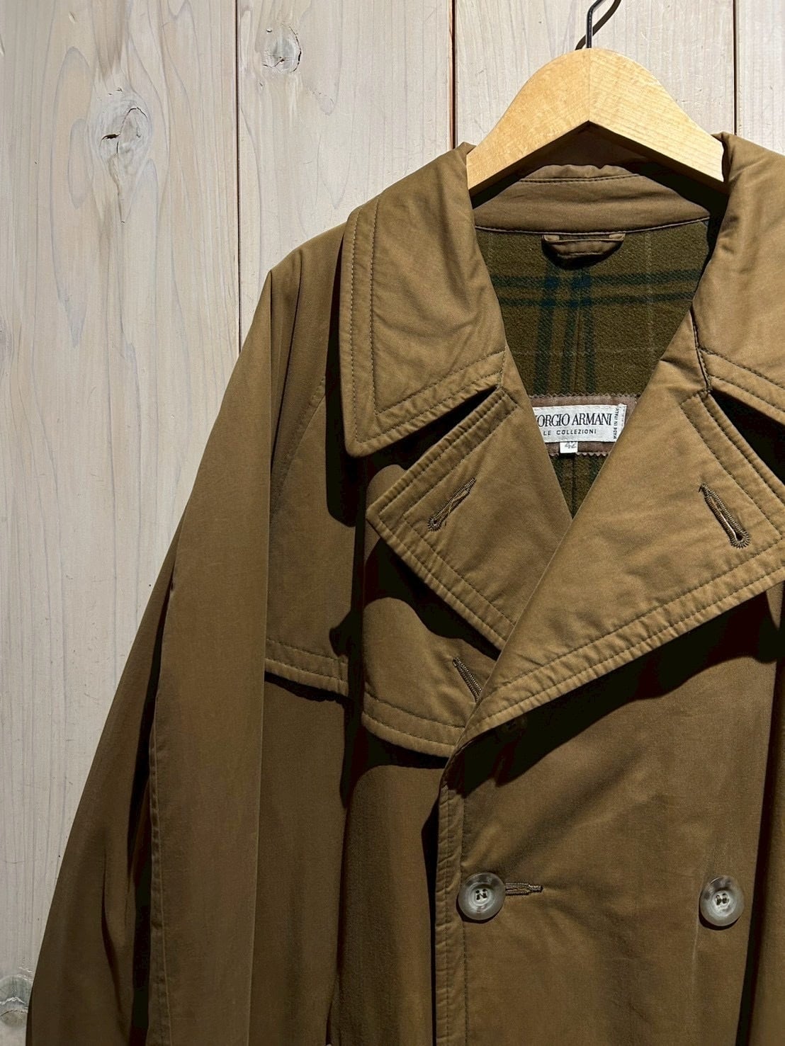 アルマーニらしいミニマルな美意識が貫かれた、クラシックかつ洗練されたトレンチコート。