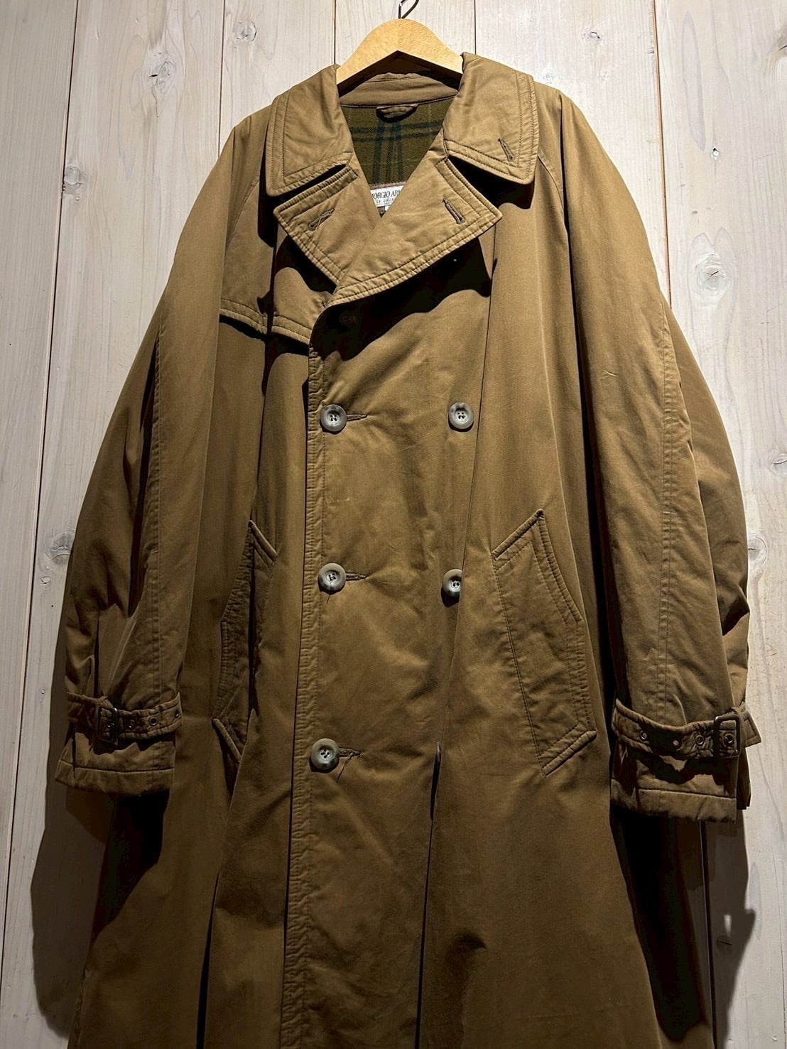 ダブルブレスト仕様、ガンフラップなど王道を踏襲。バックスタイルにはストームシールドとセンターベントを備え、クラシックなディテール美もしっかりと感じられます。内側にはチェック柄のライニングが入り、さりげないアクセントに。