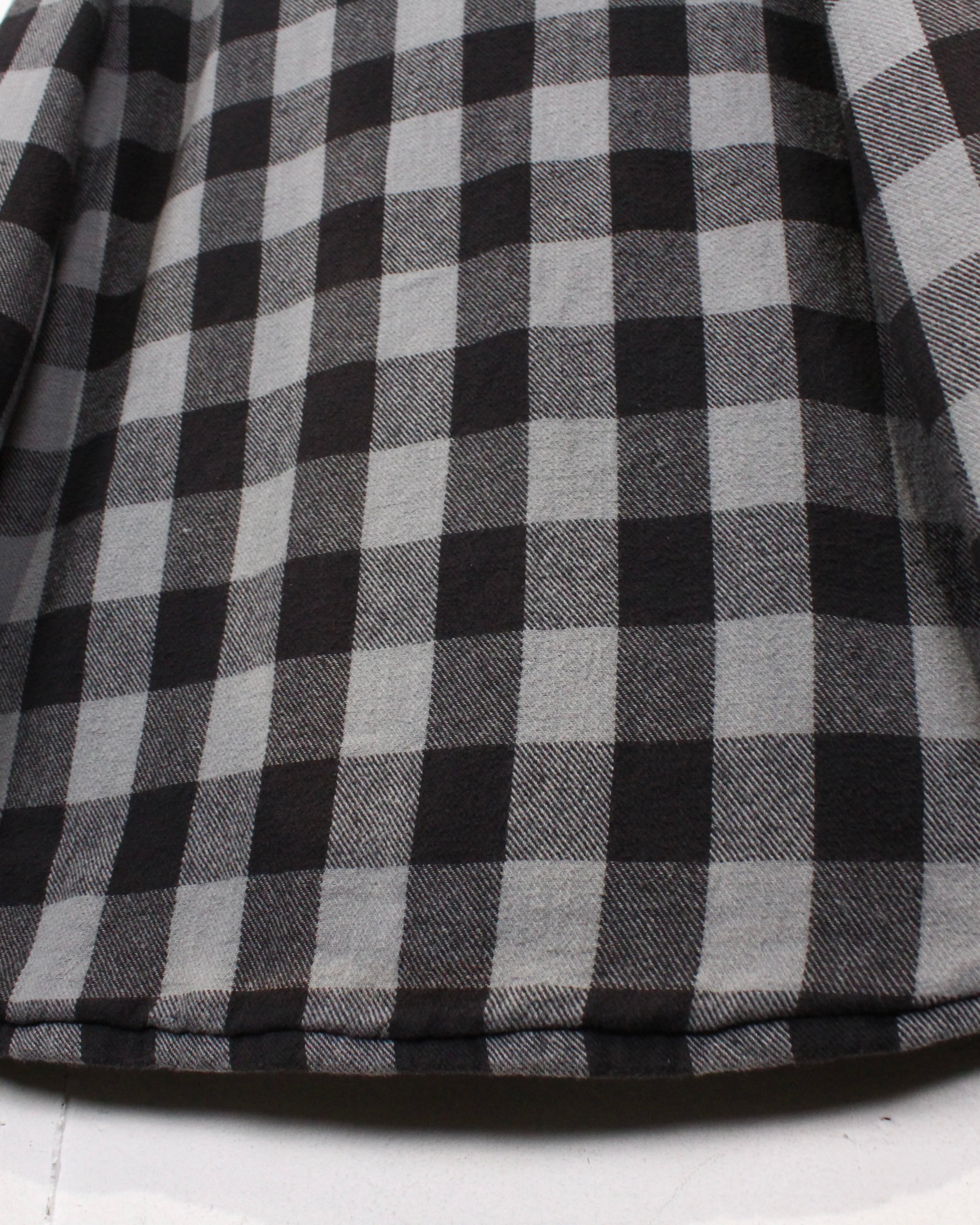 ブラック×グレーのブロックチェックはしっかりと存在感があり、90’s〜00’sのストリートカルチャーを感じさせます。