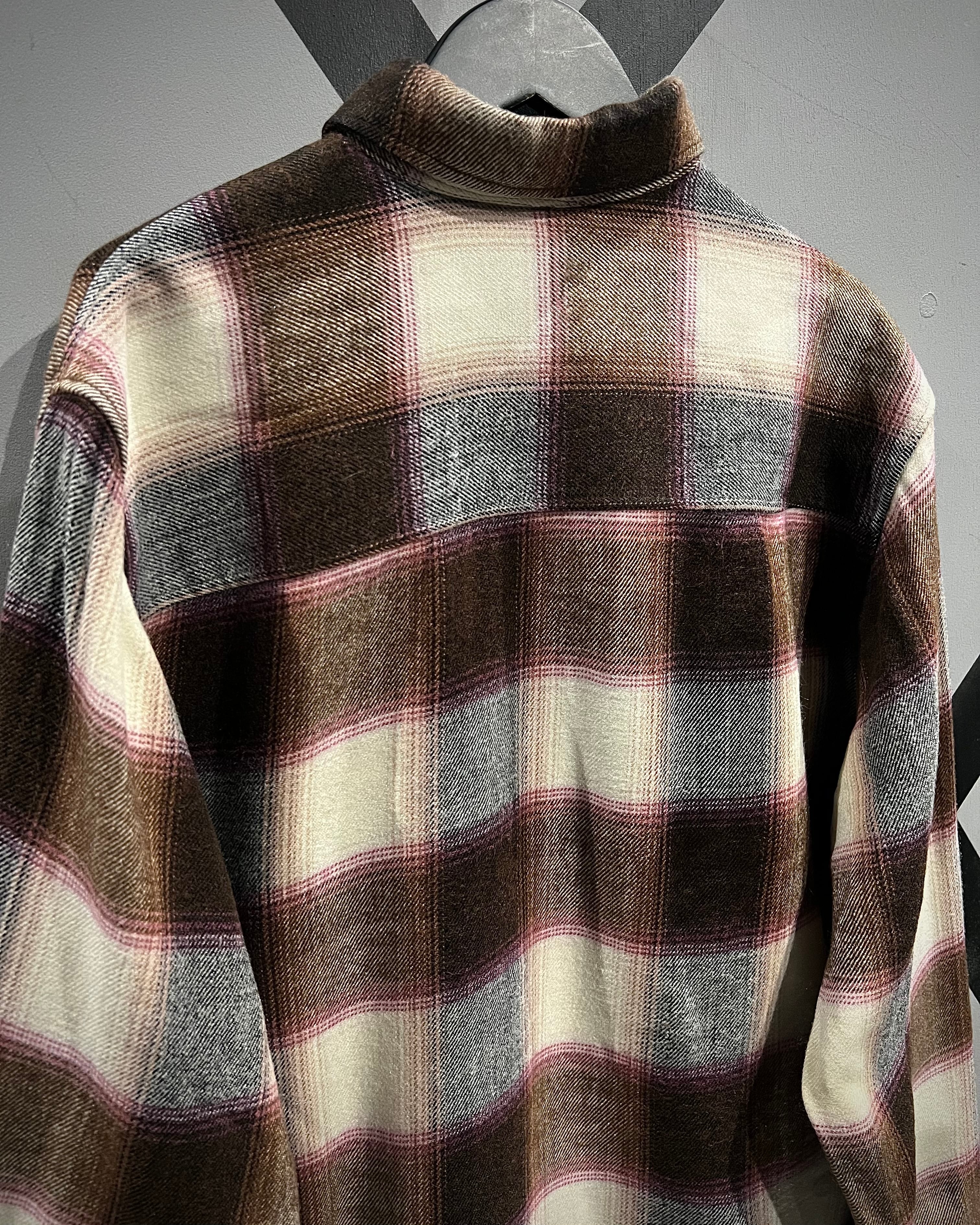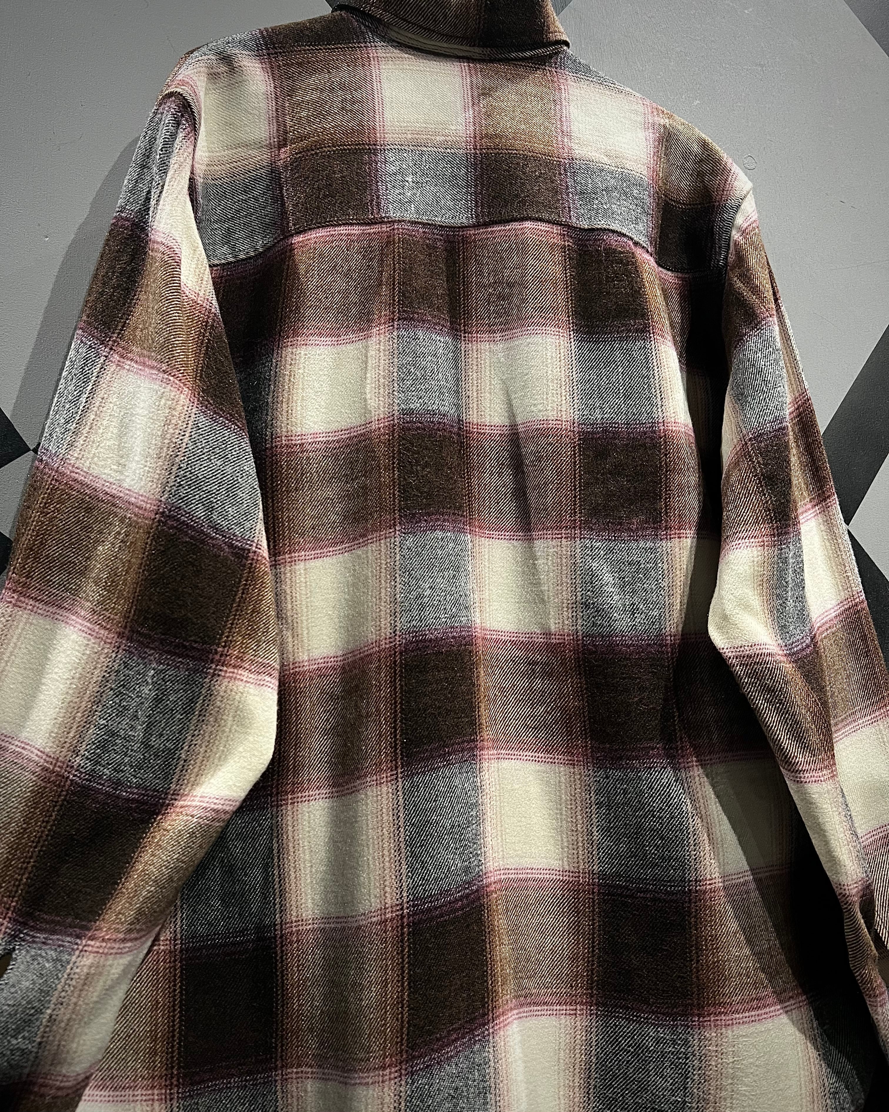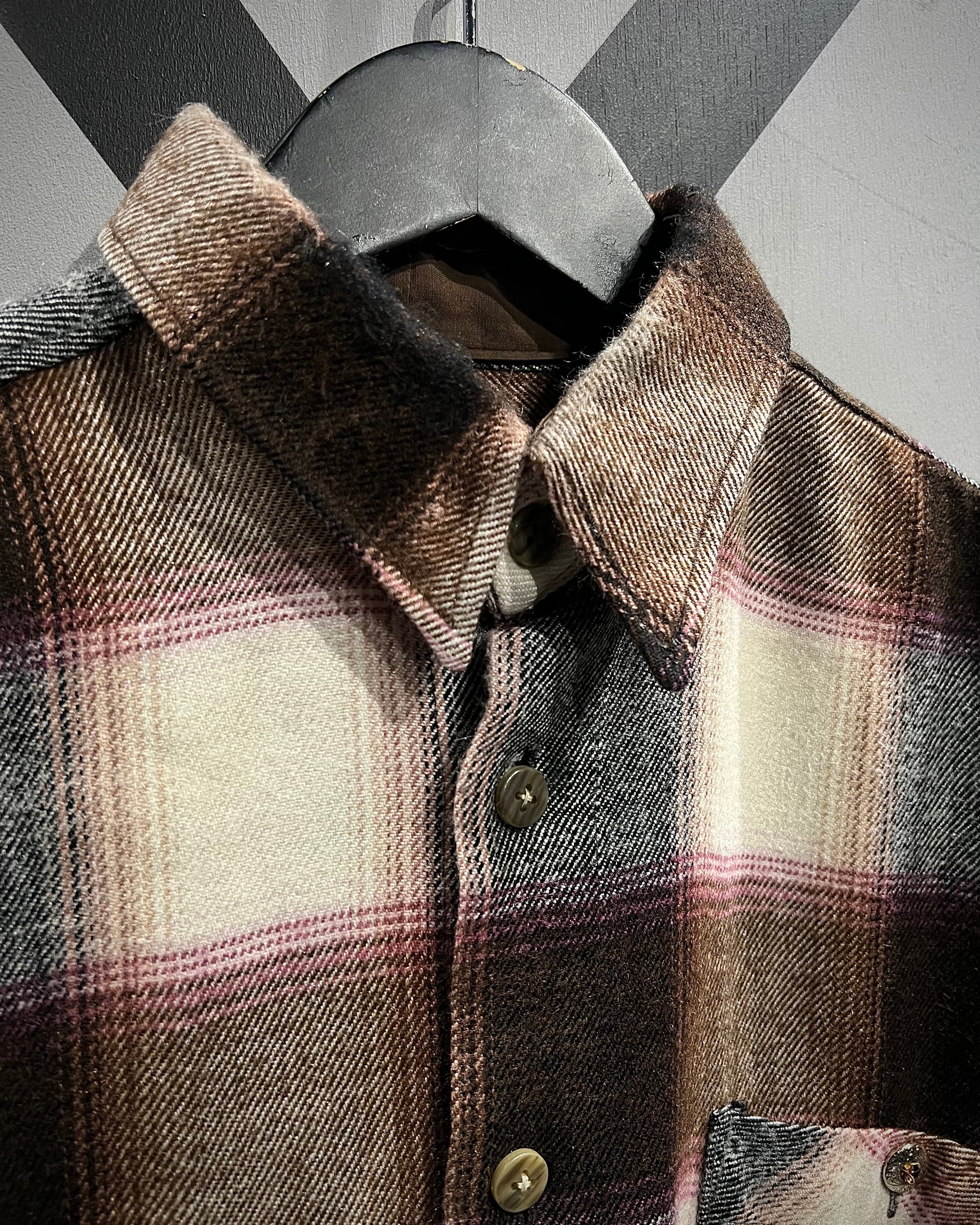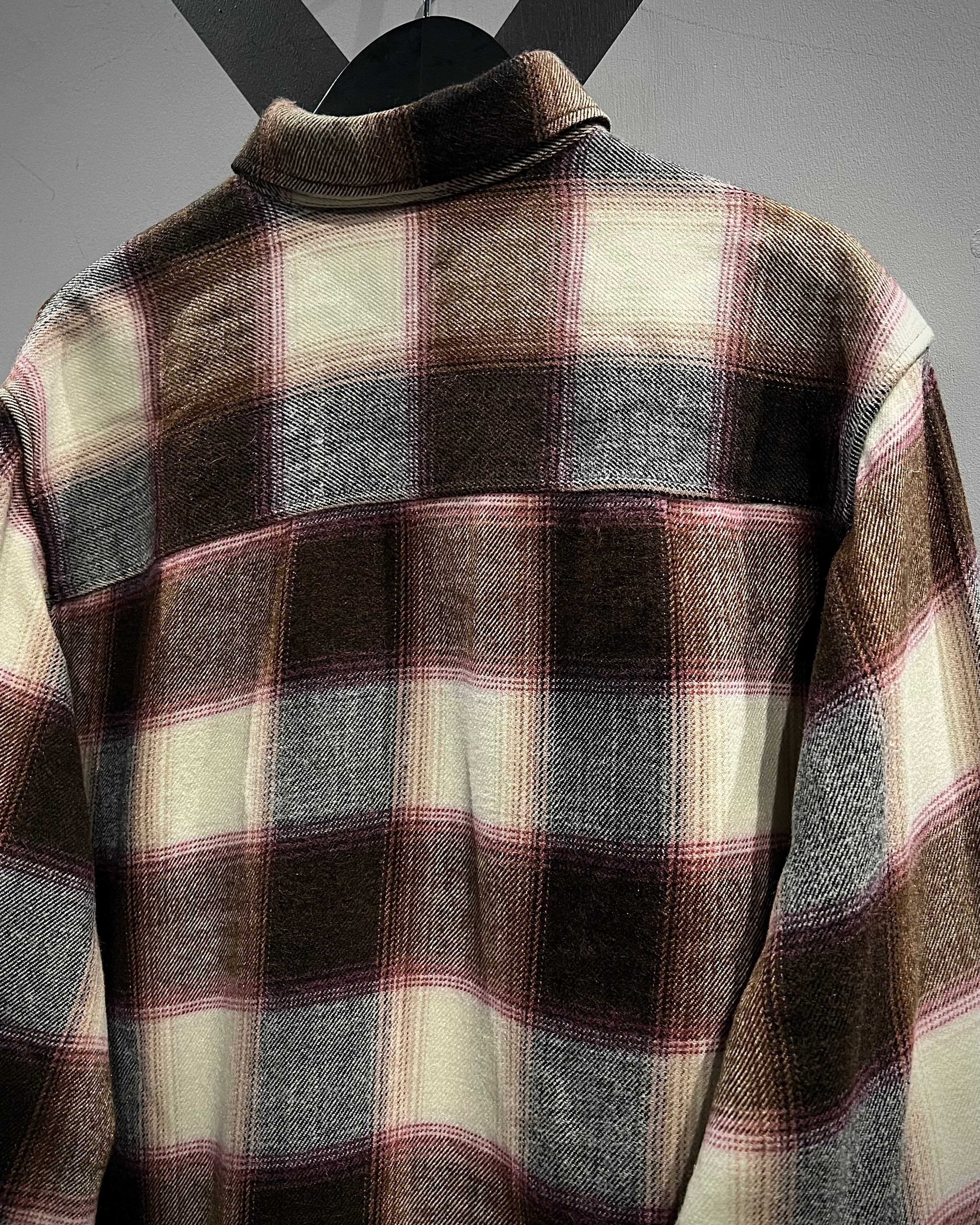 落ち着いたブラウンを基調に、生成り、ピンクを交えたチェック配色が、ワーク由来の無骨さと柔らかさをバランス良く両立しています。