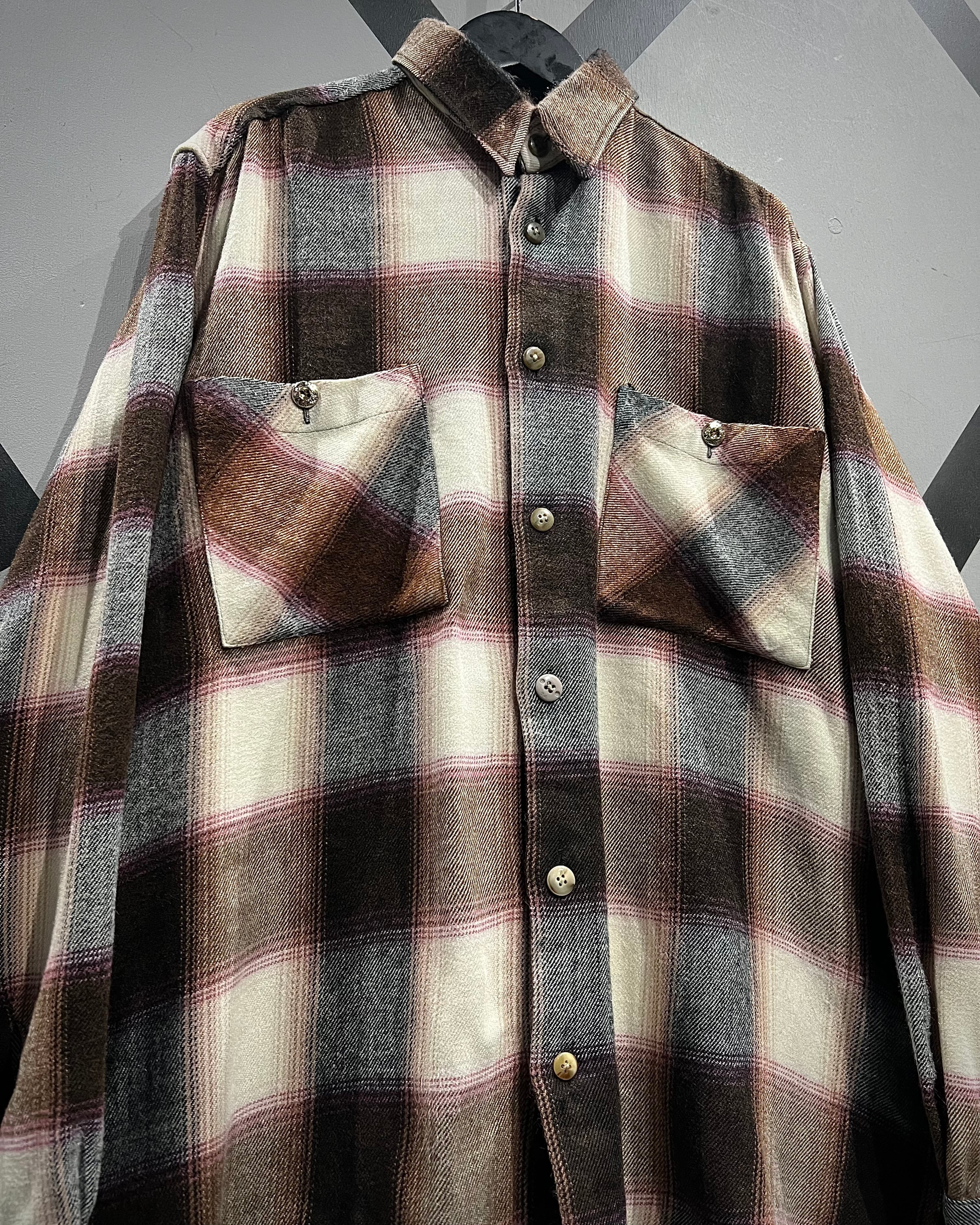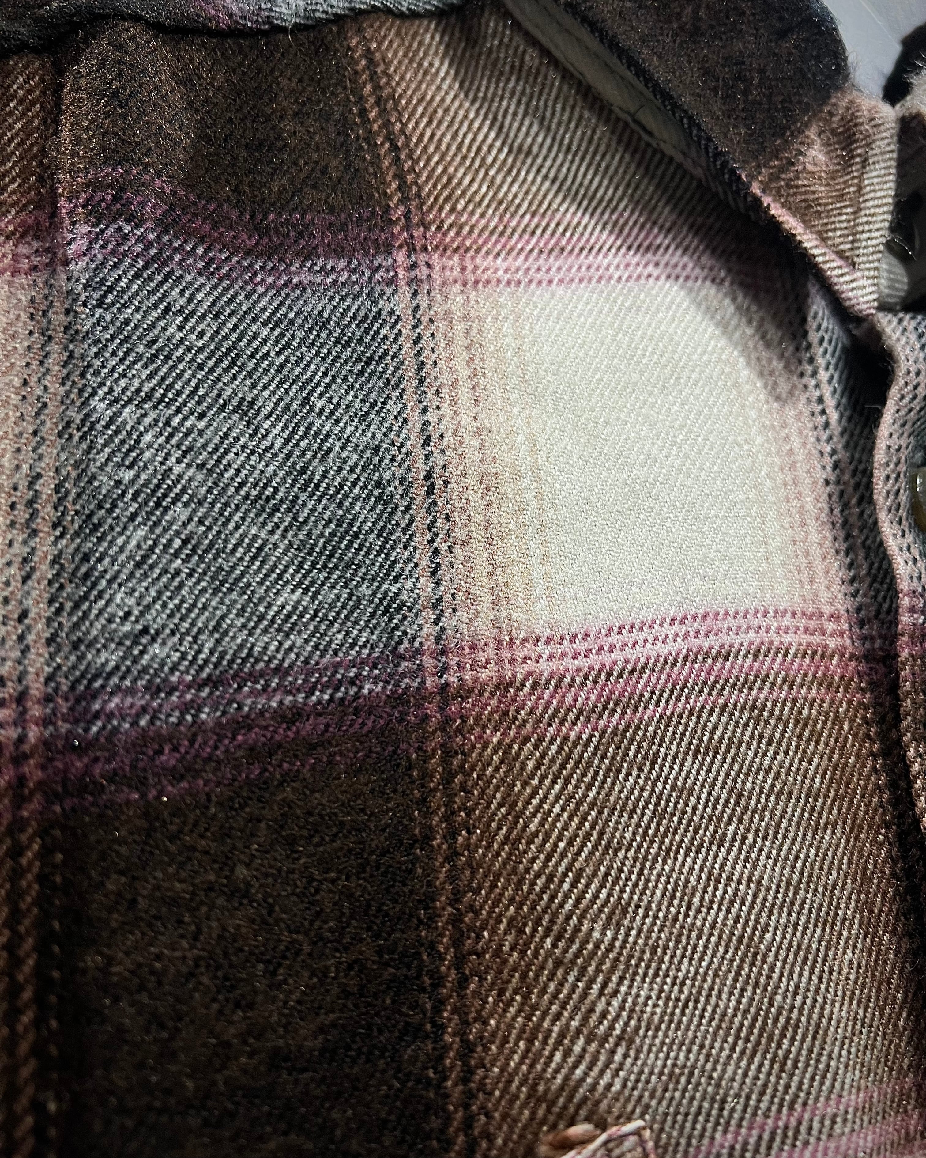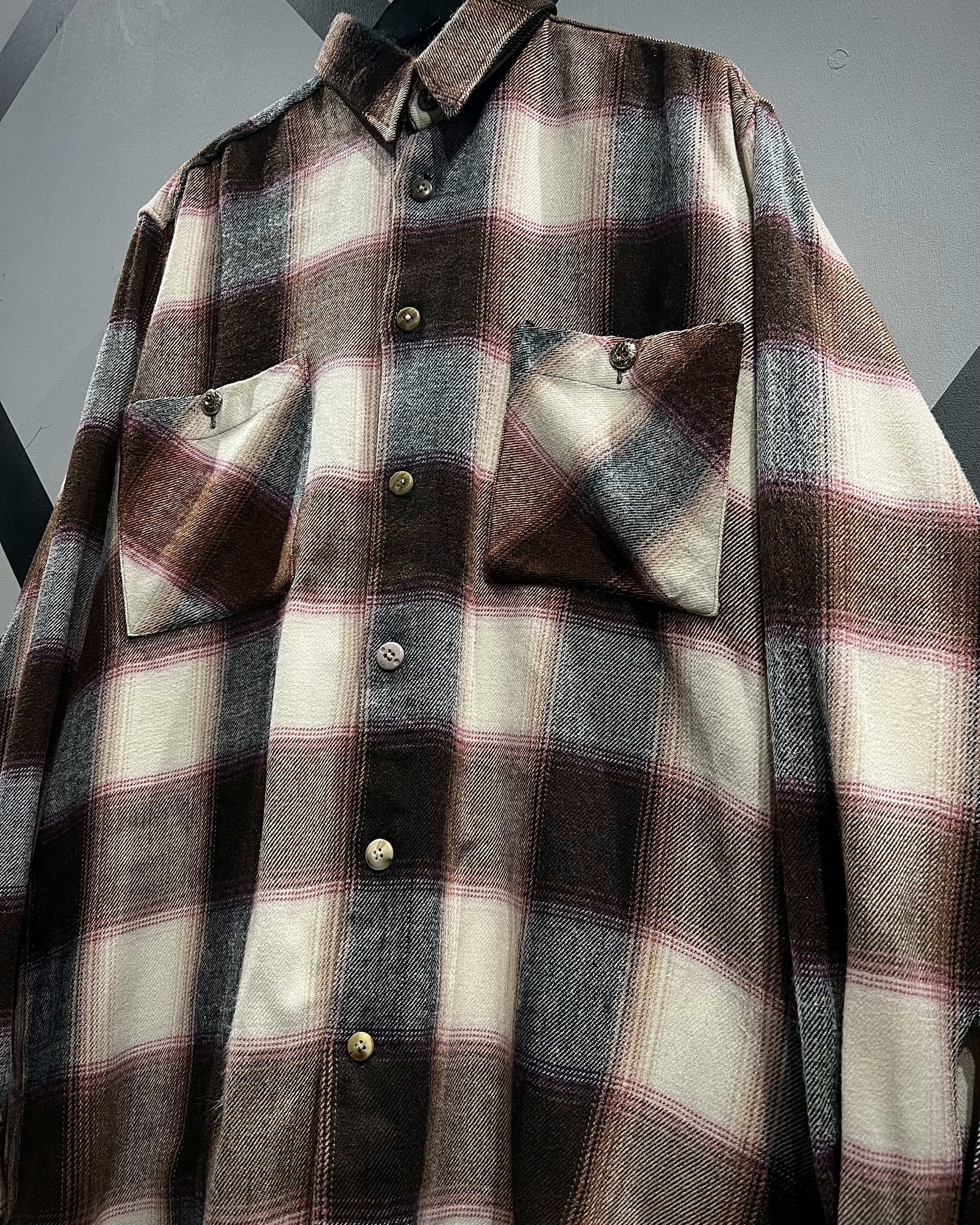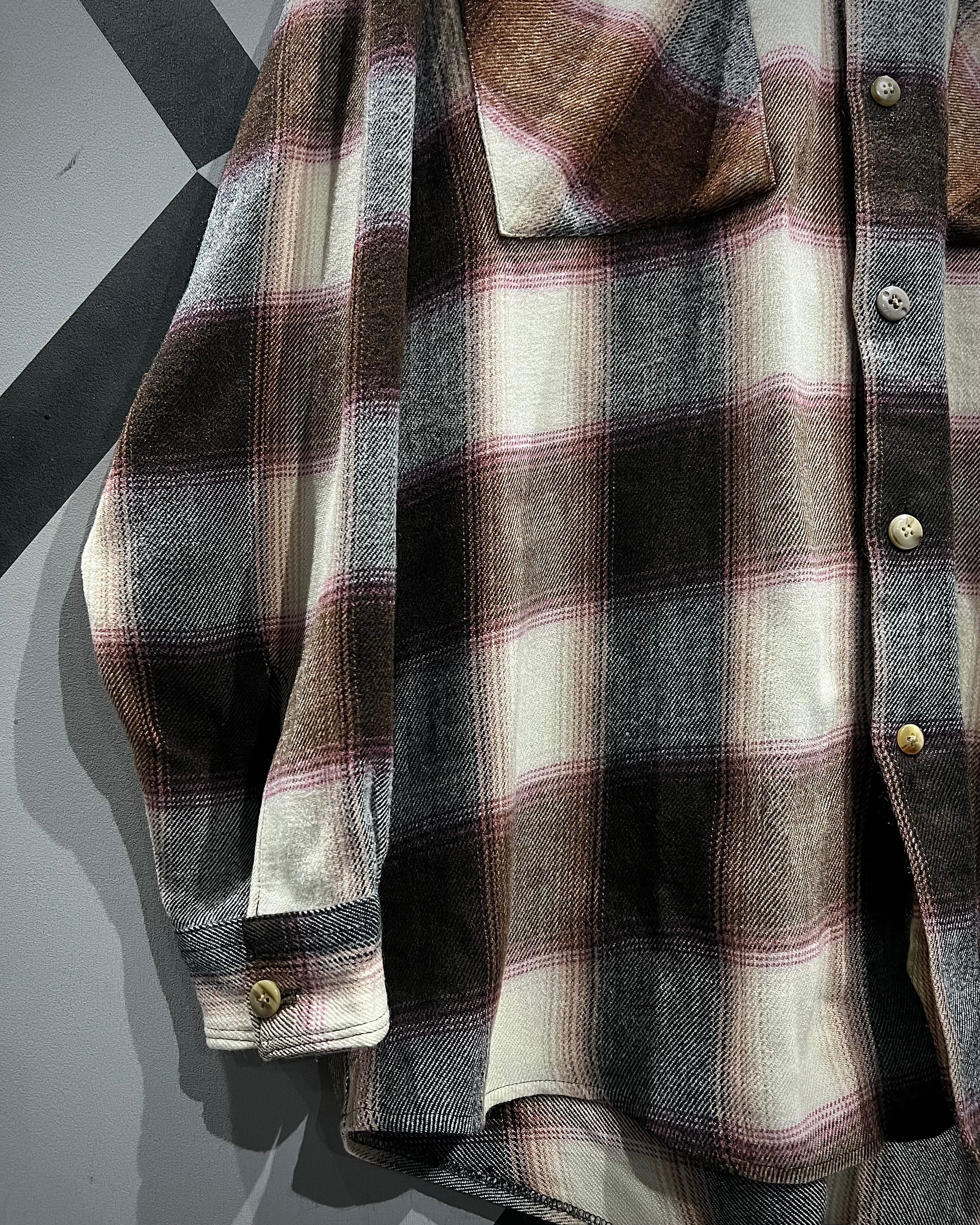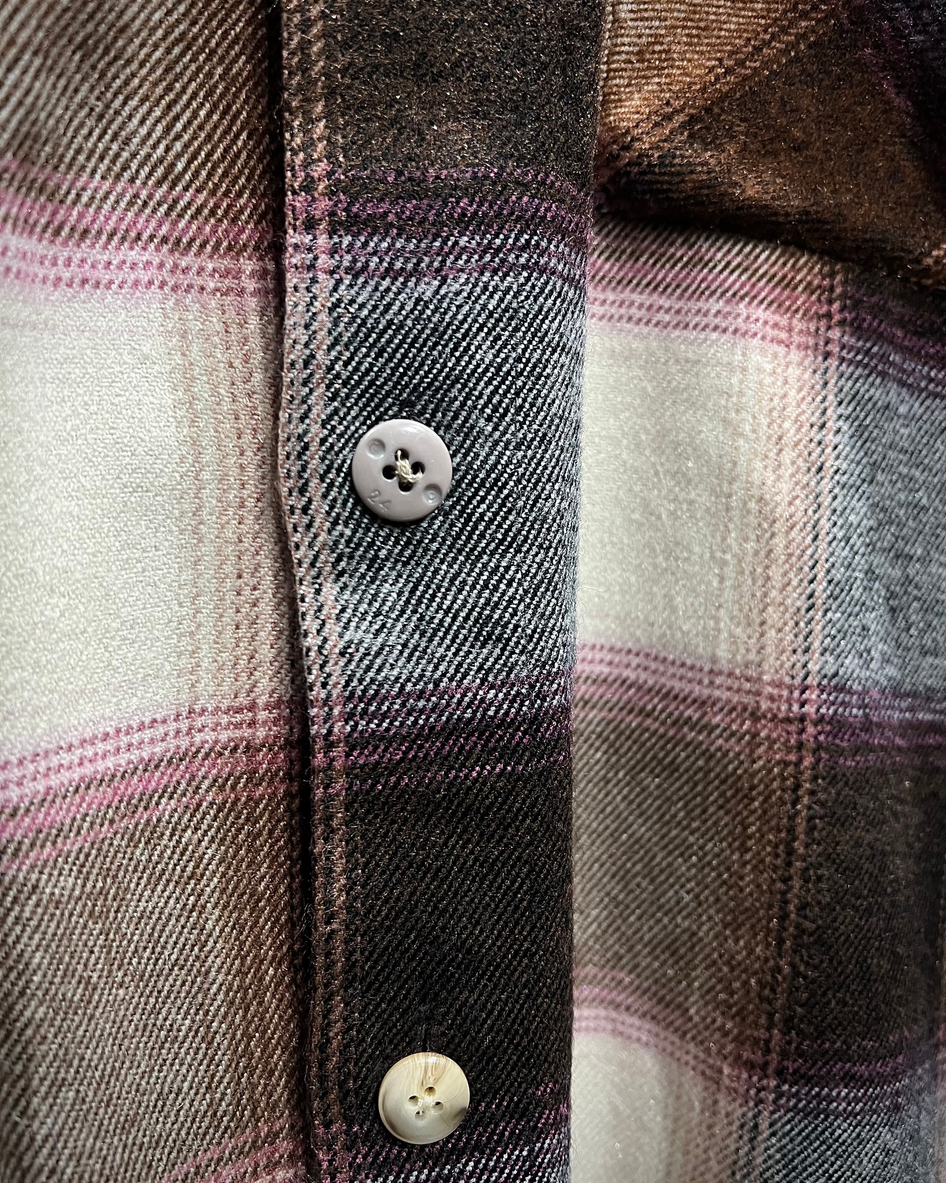 落ち着いたブラウンを基調に、生成り、ピンクを交えたチェック配色が、ワーク由来の無骨さと柔らかさをバランス良く両立しています。