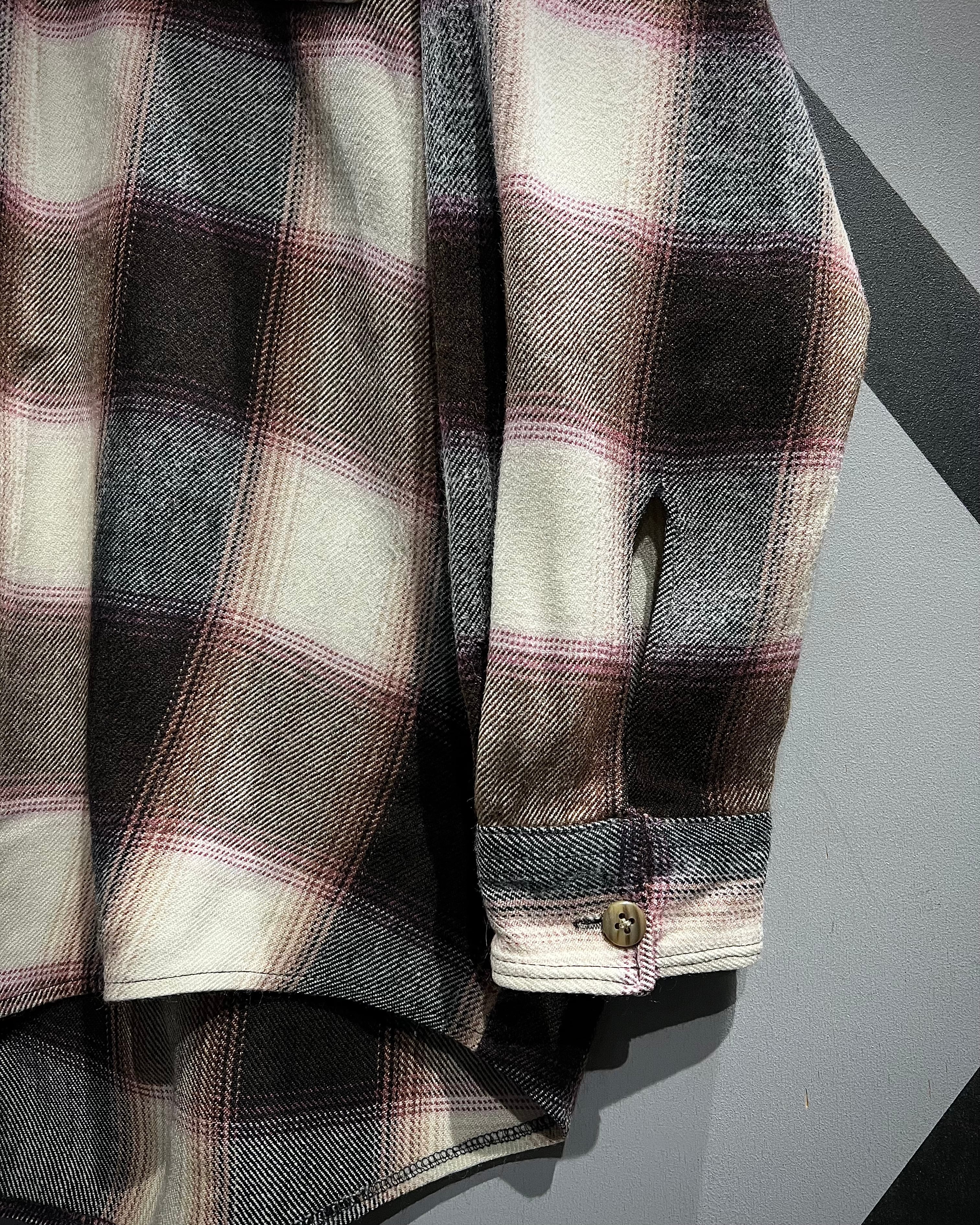 生地はしっかりとした厚みがあり、着込むことでさらに風合いが増していくタイプ。フランネル特有の温かみのあるタッチで、シャツとしてはもちろん、軽い羽織としても活躍してくれるかと。