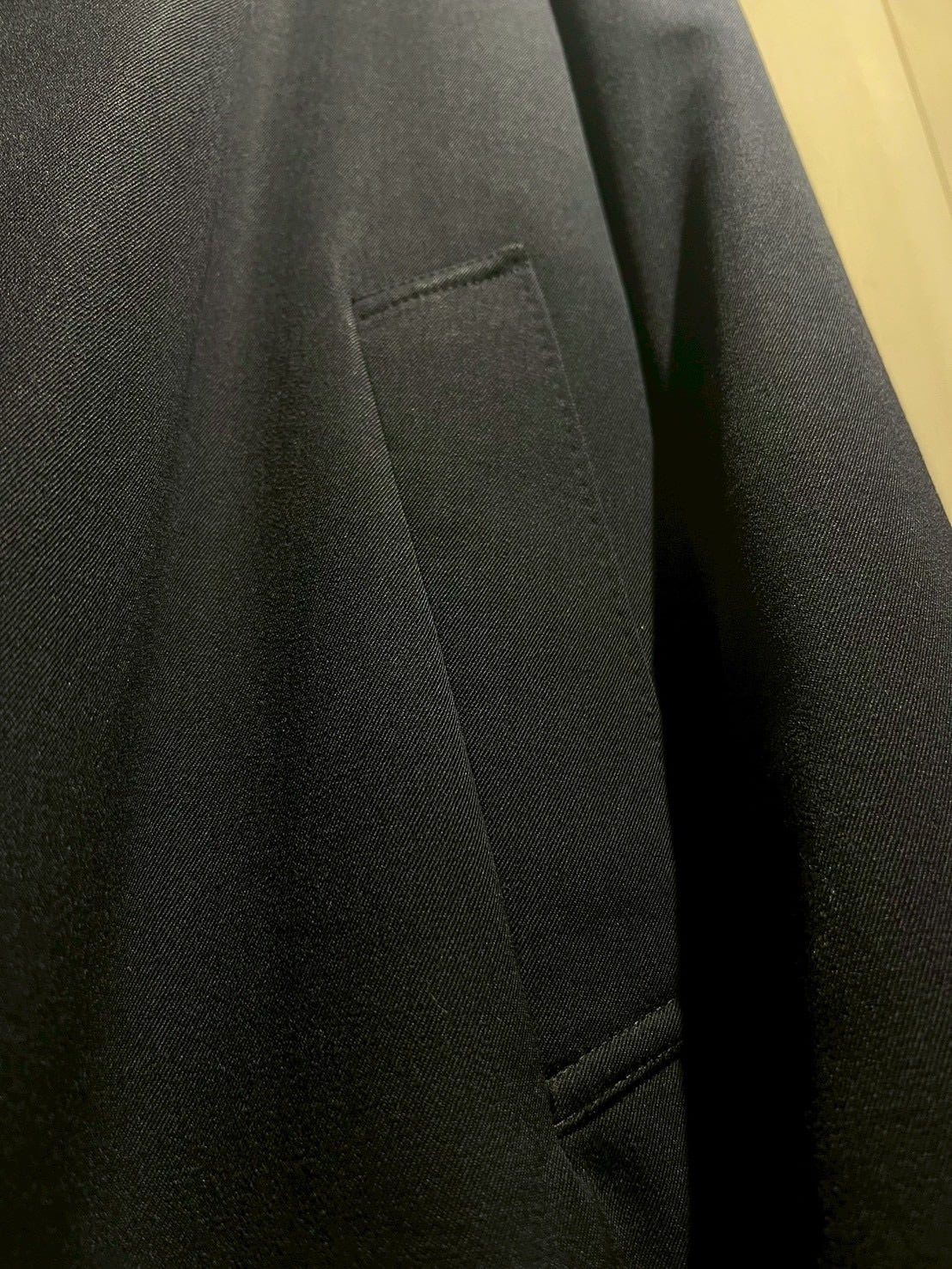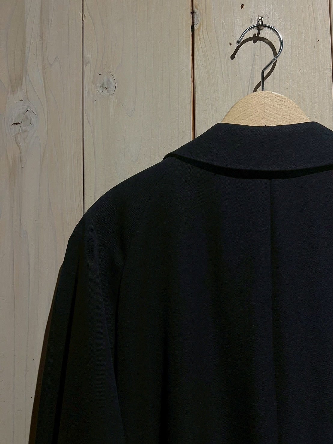 ボディにはウールを主体とした上質な素材を使用。しっかりとした肉感がありながらも重たさはなく、滑らかなタッチと落ち着いたネイビートーンが非常に上品な表情を演出します。