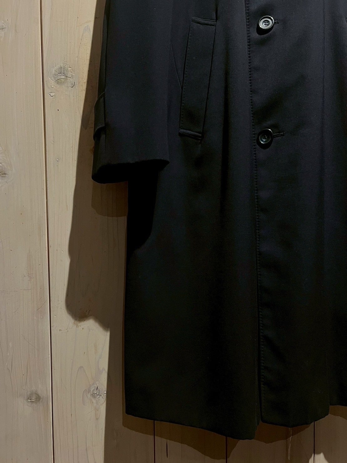 ディテールはシンプルながら抜かりなく、ボタンダウンのフロント、程よく丸みを帯びた襟、袖口のストラップ仕様など、トラディショナルなコートの美学が随所に反映されていますね。