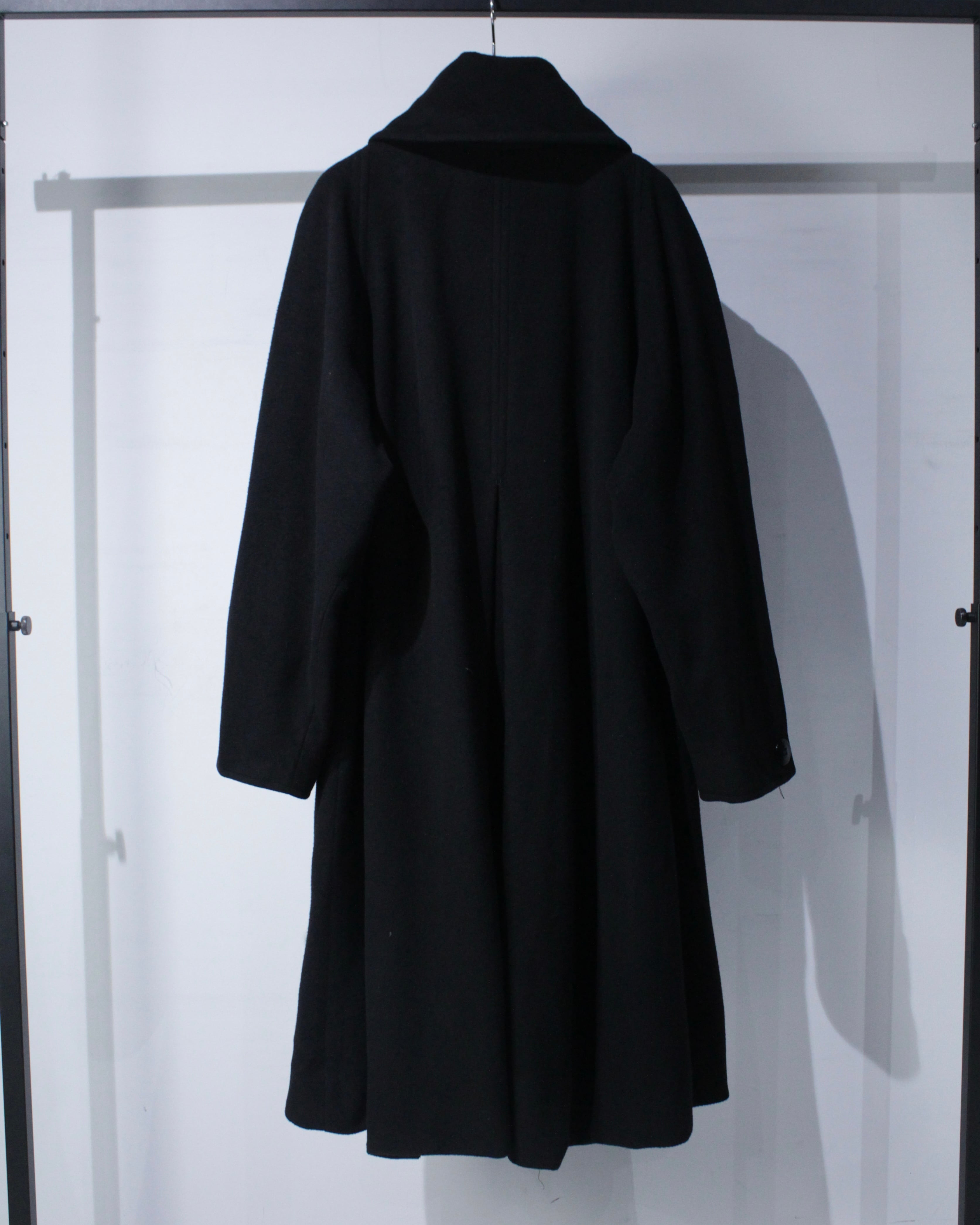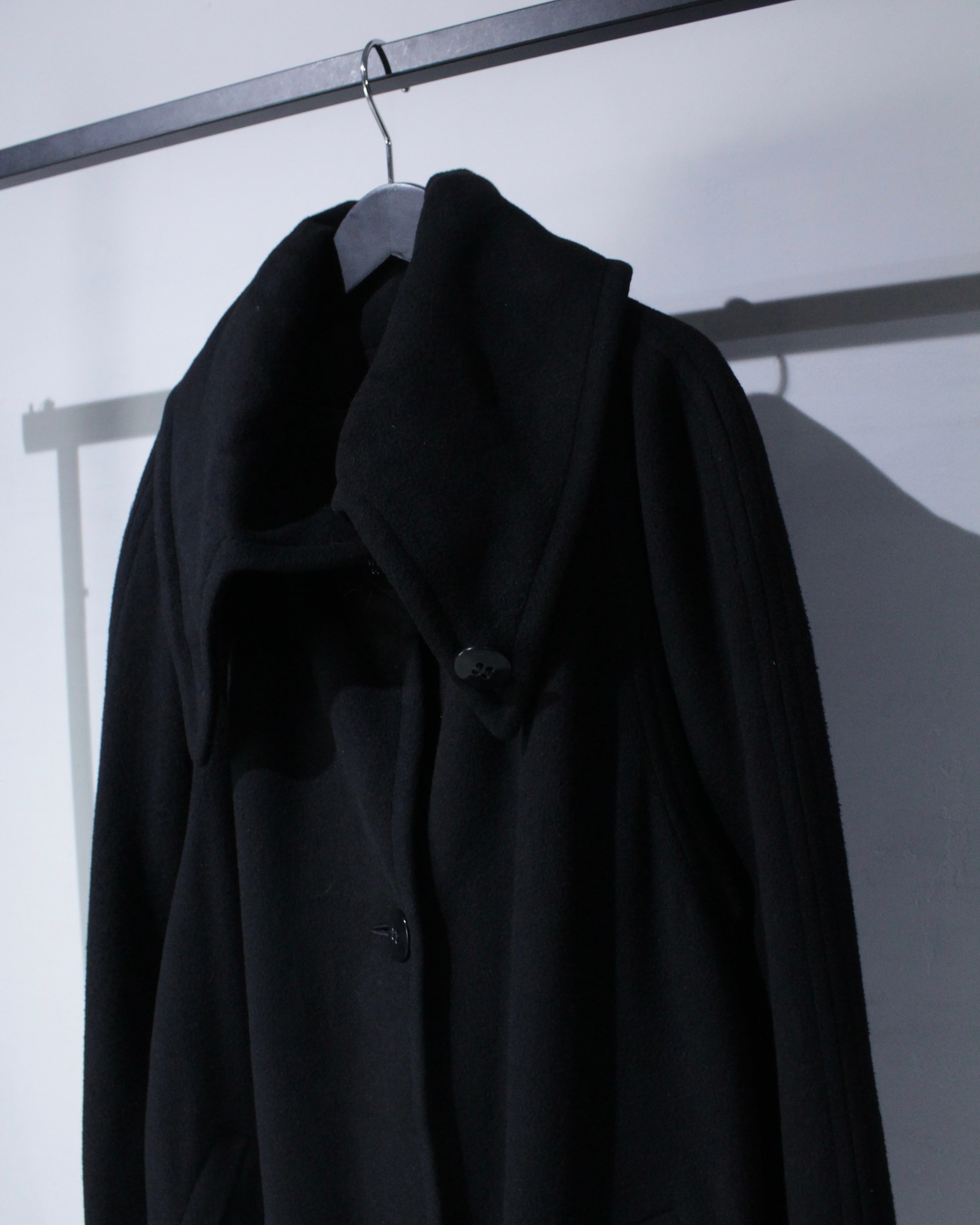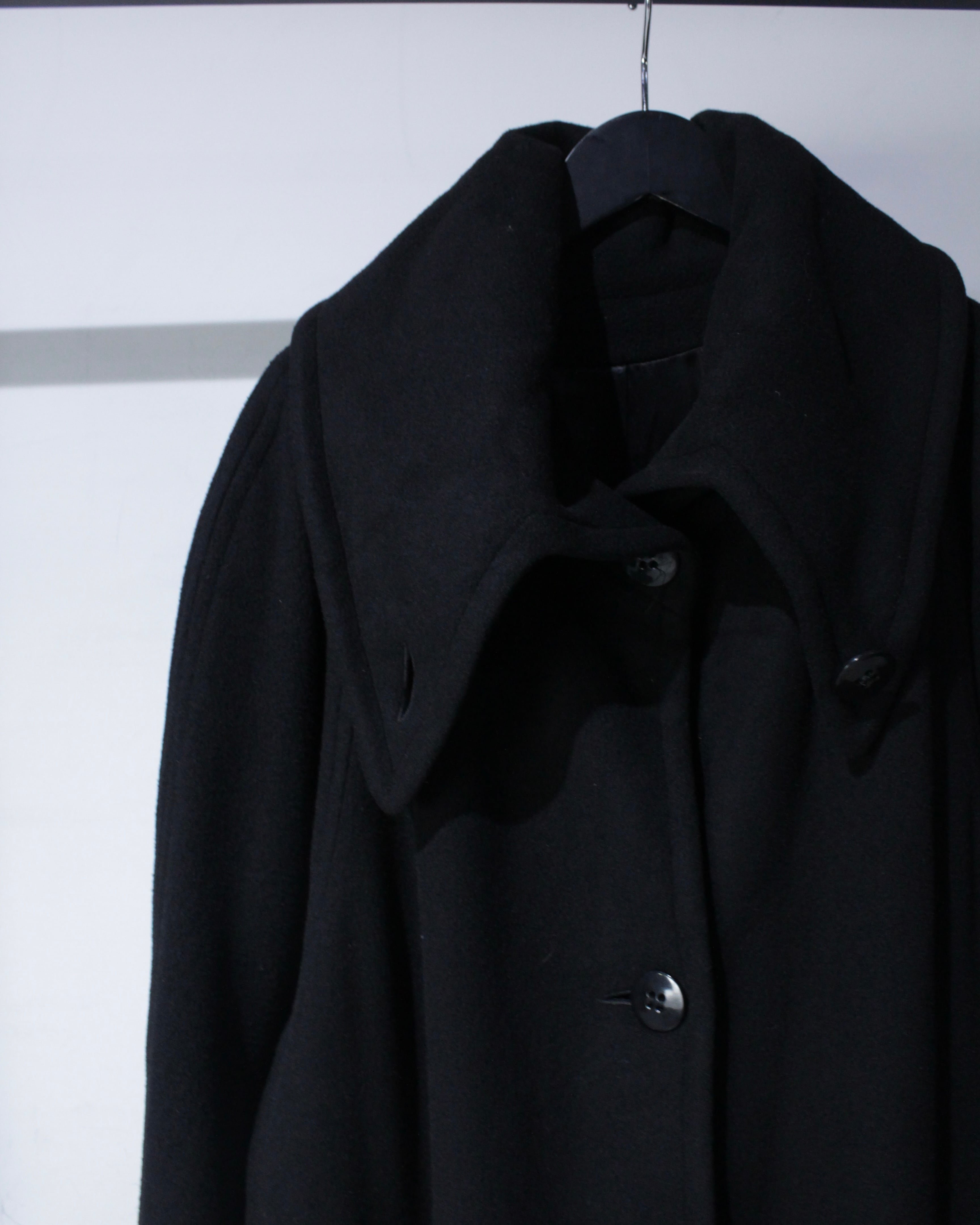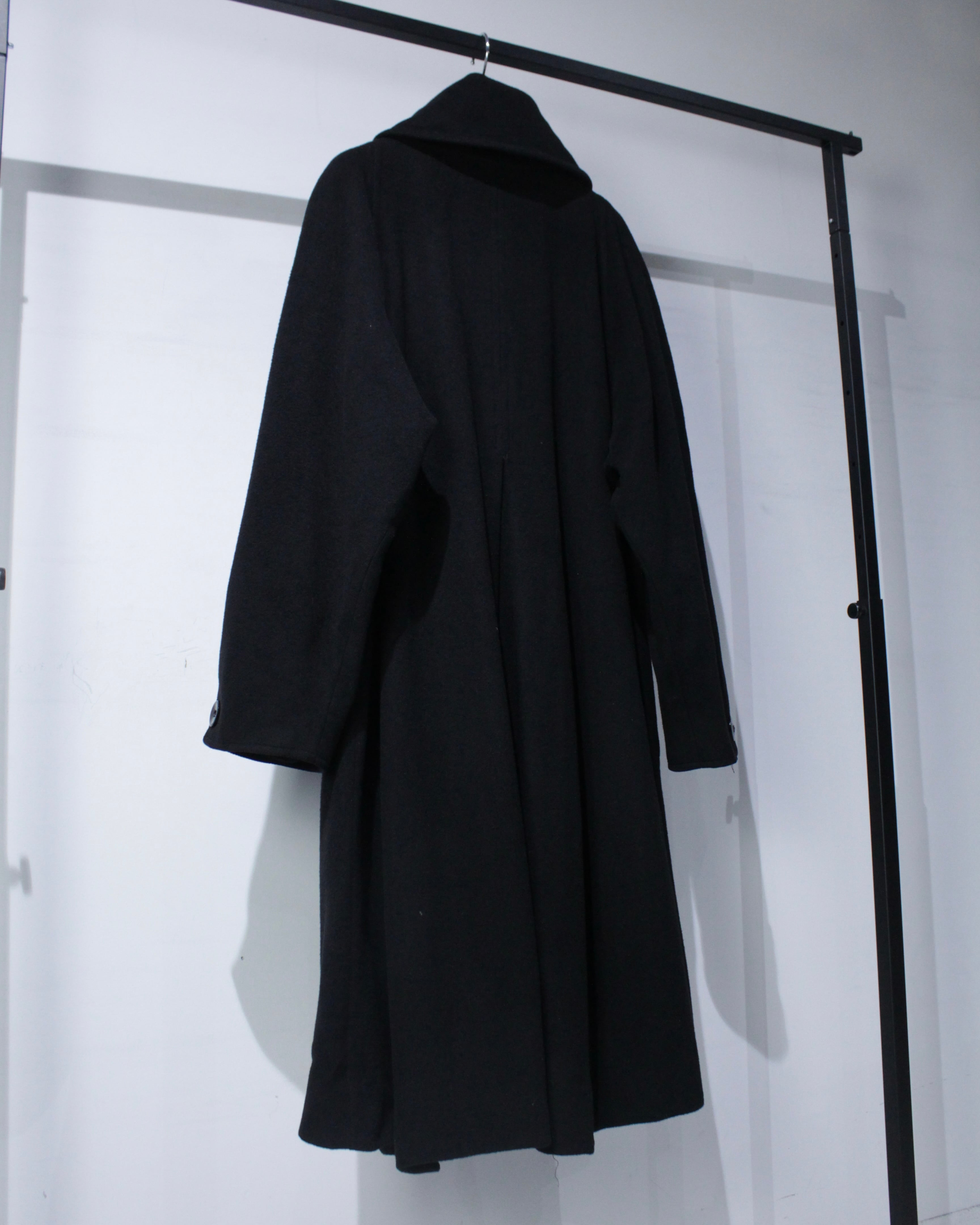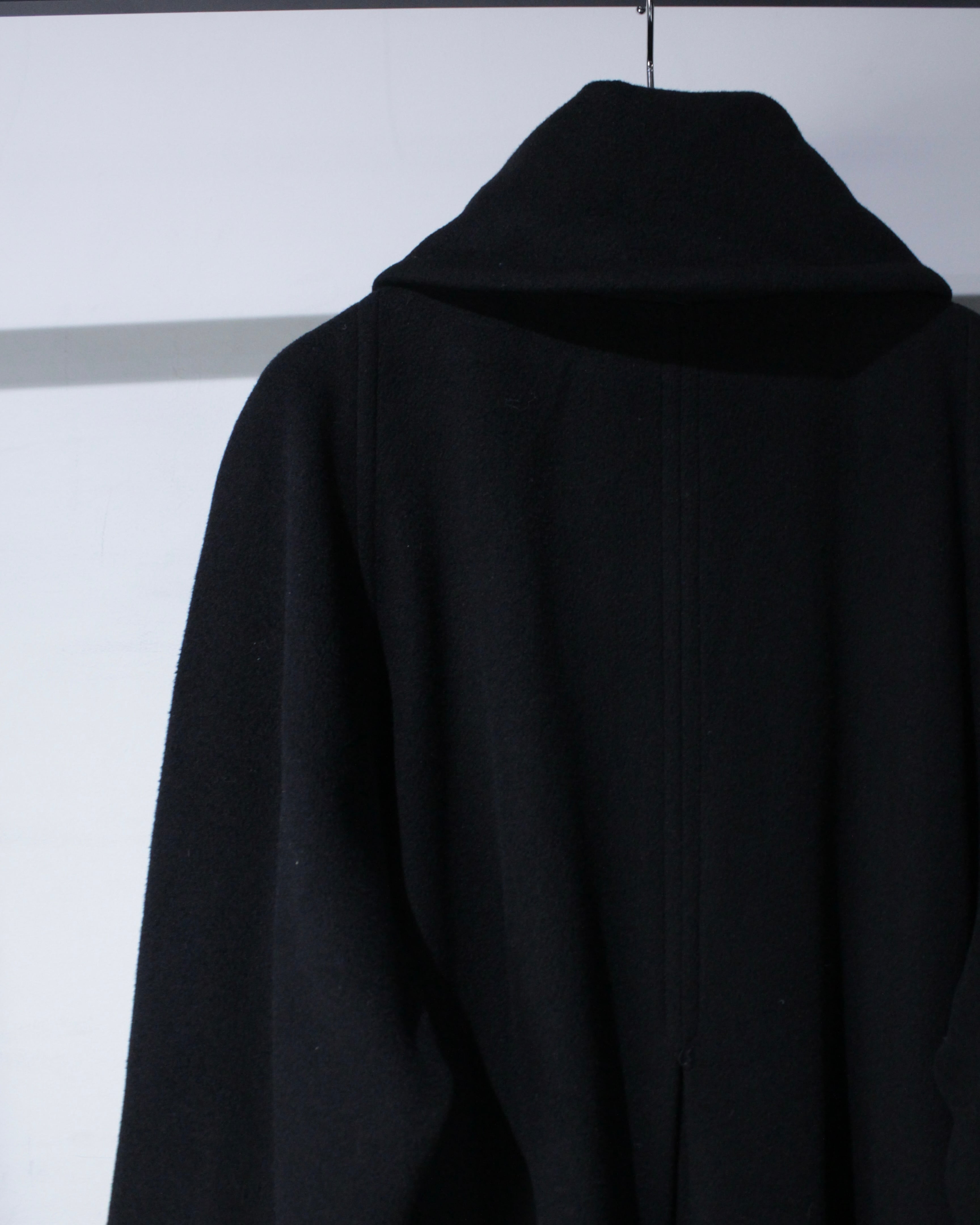 上質な素材感とエッジの効いたデザインが際立つ、当店らしいロングコート。