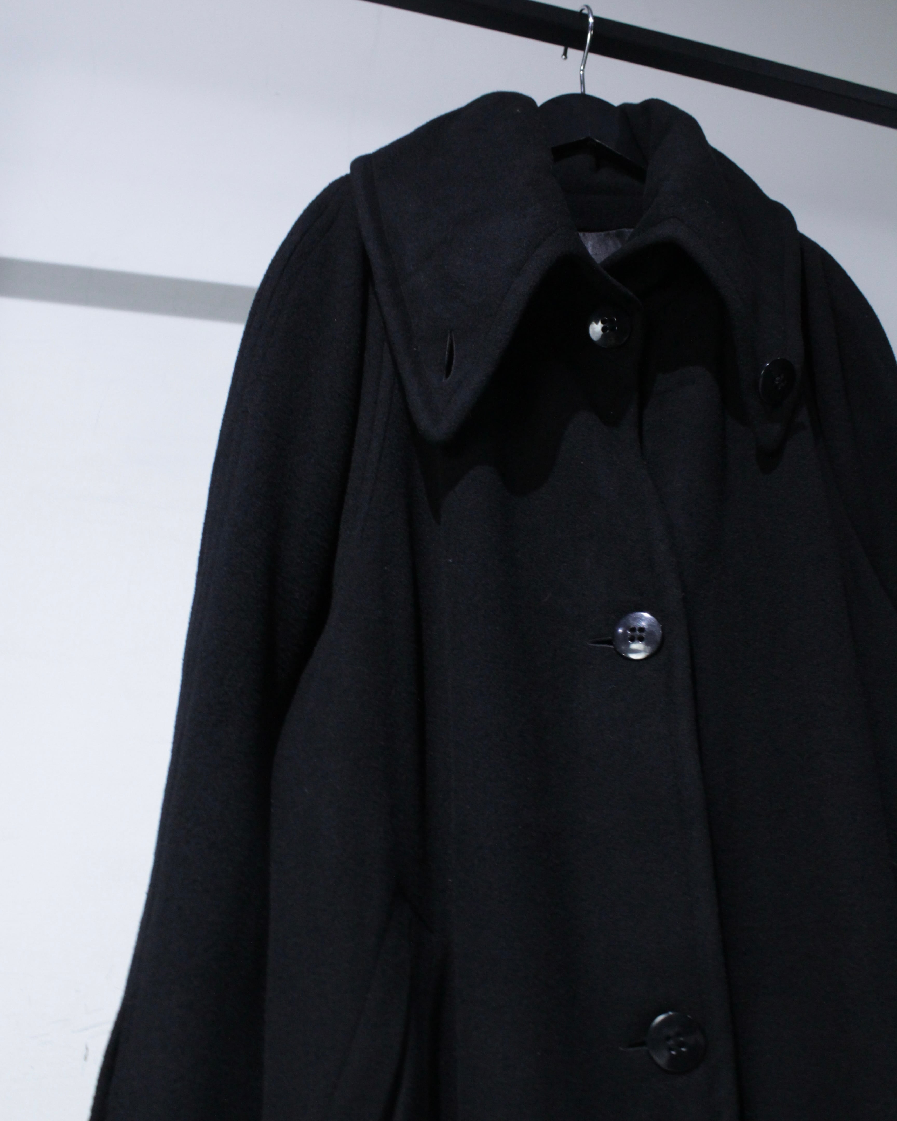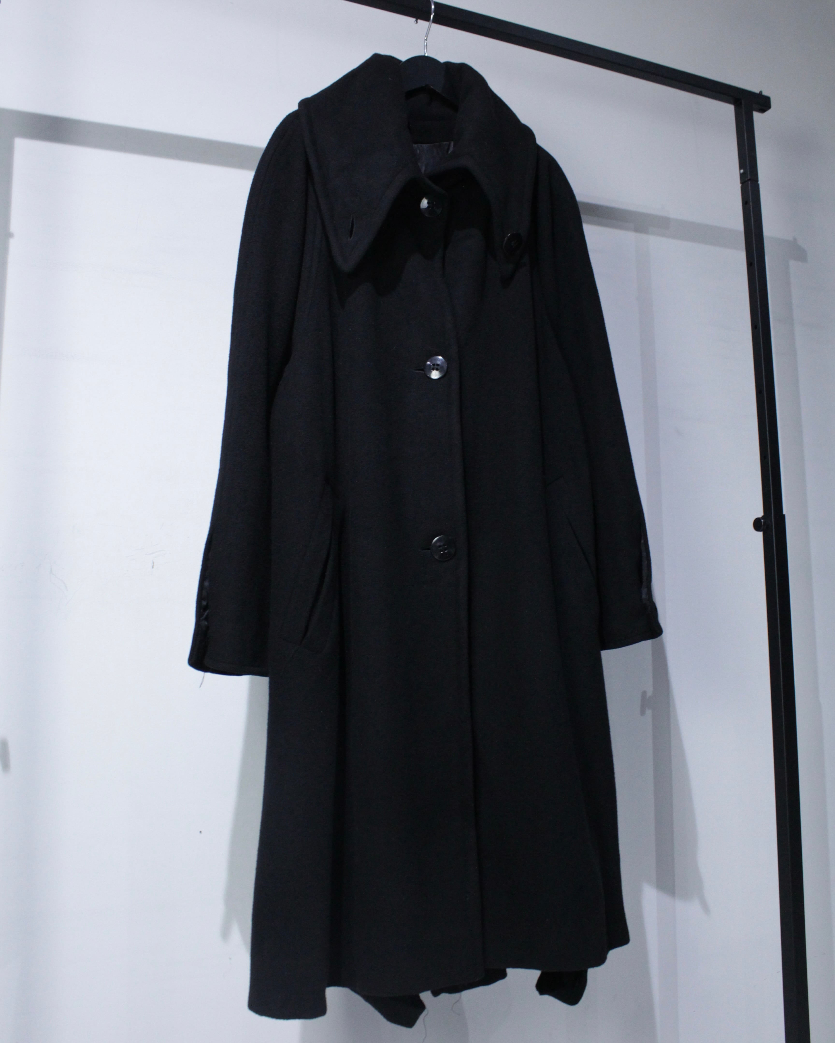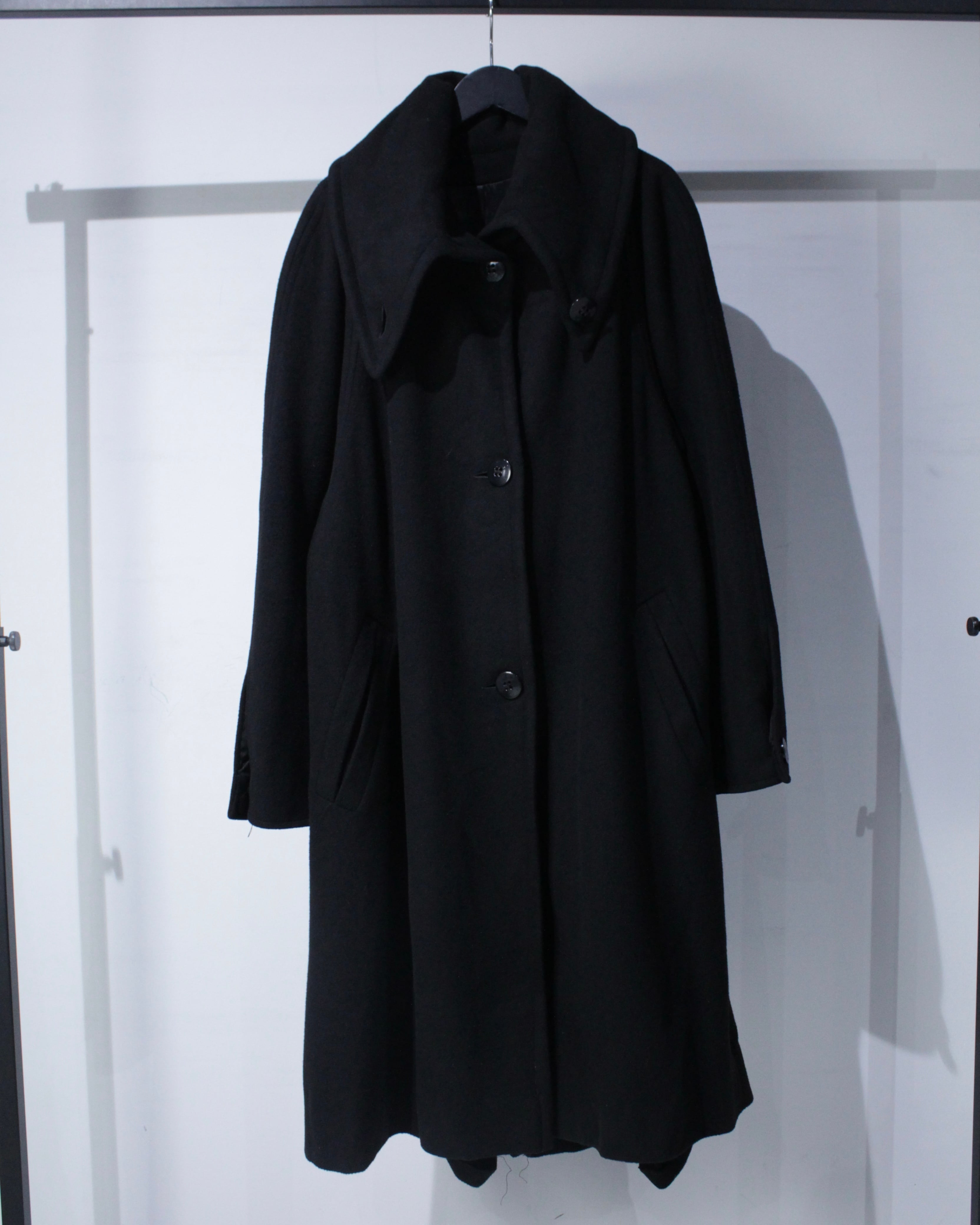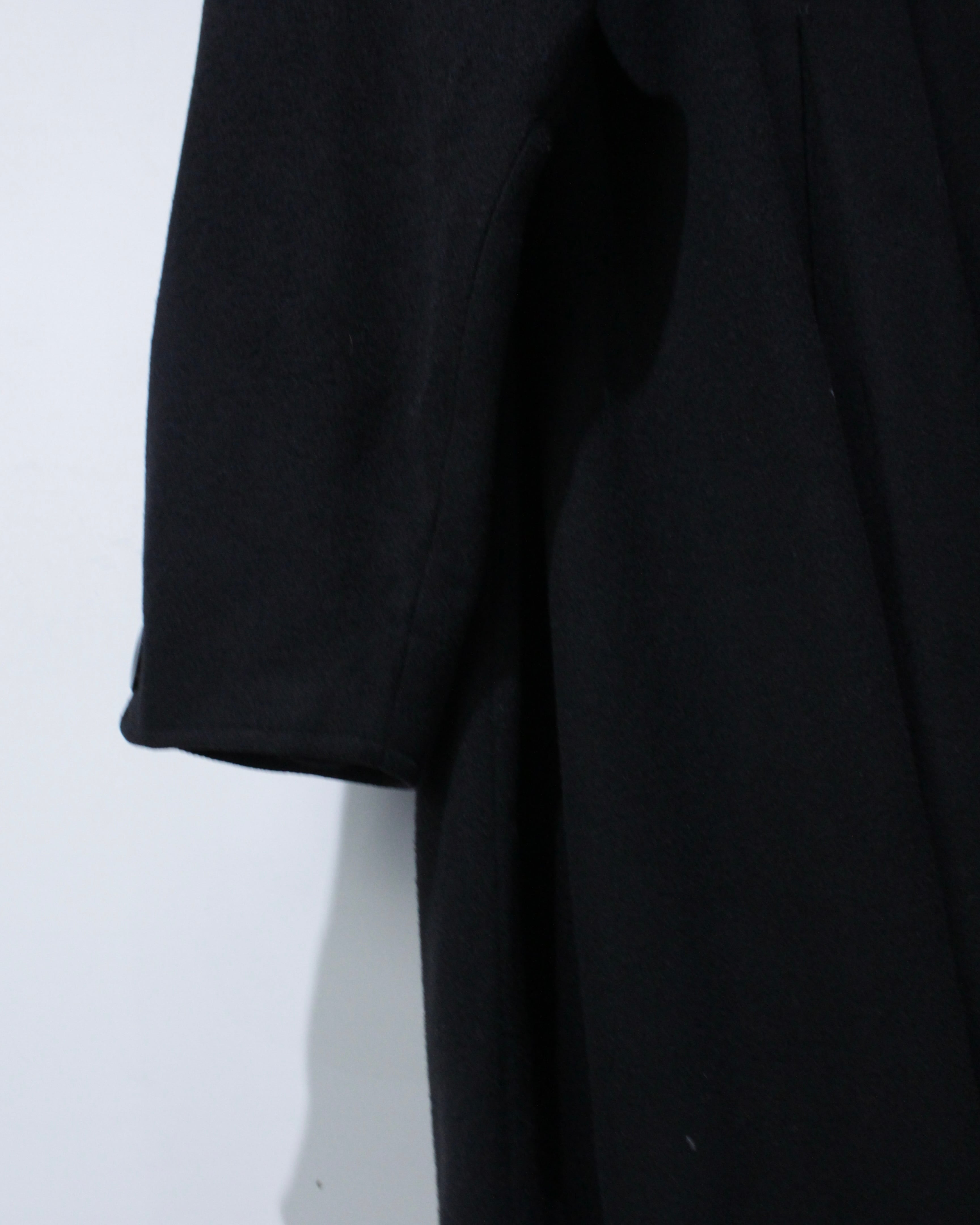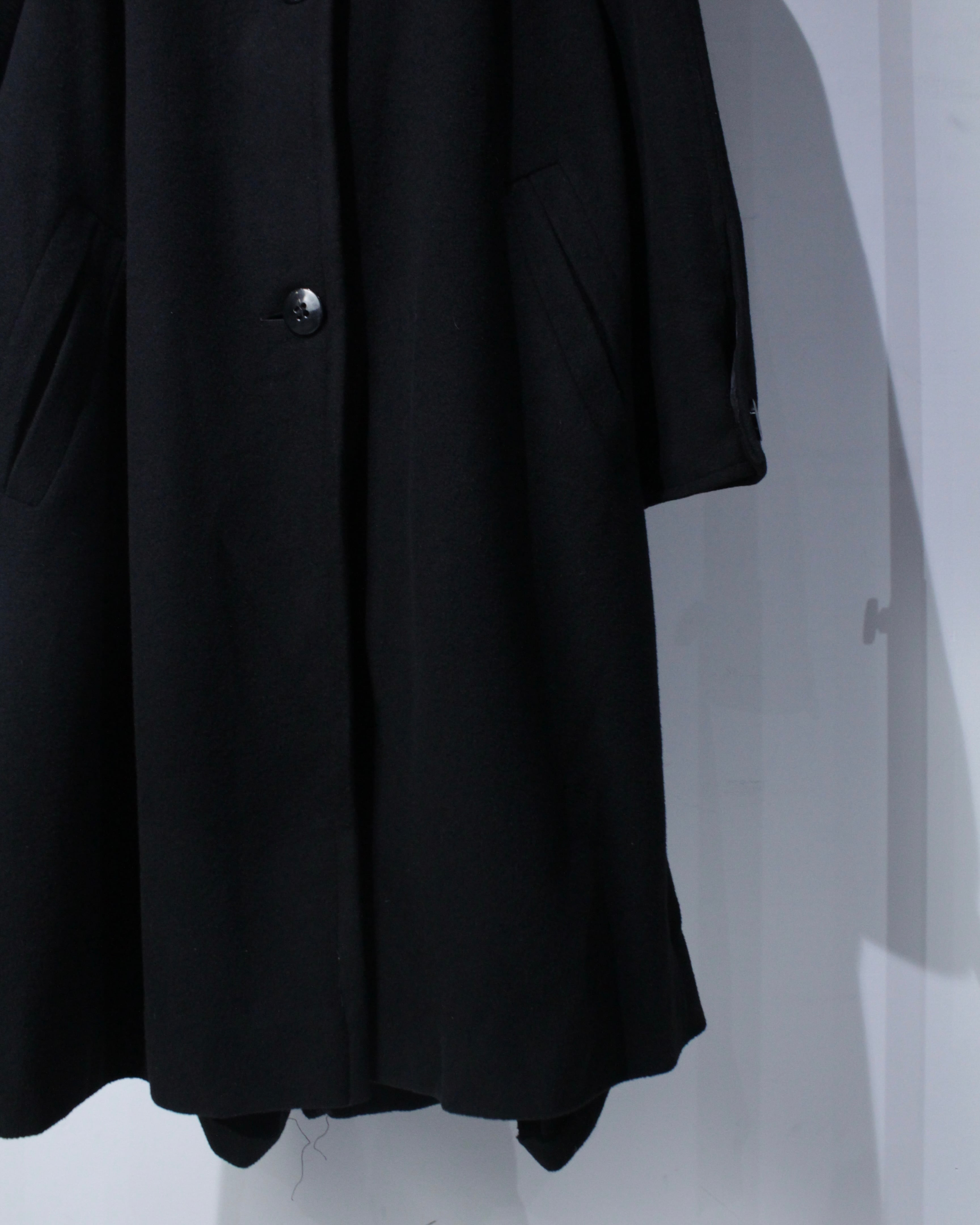 上質な素材感とエッジの効いたデザインが際立つ、当店らしいロングコート。