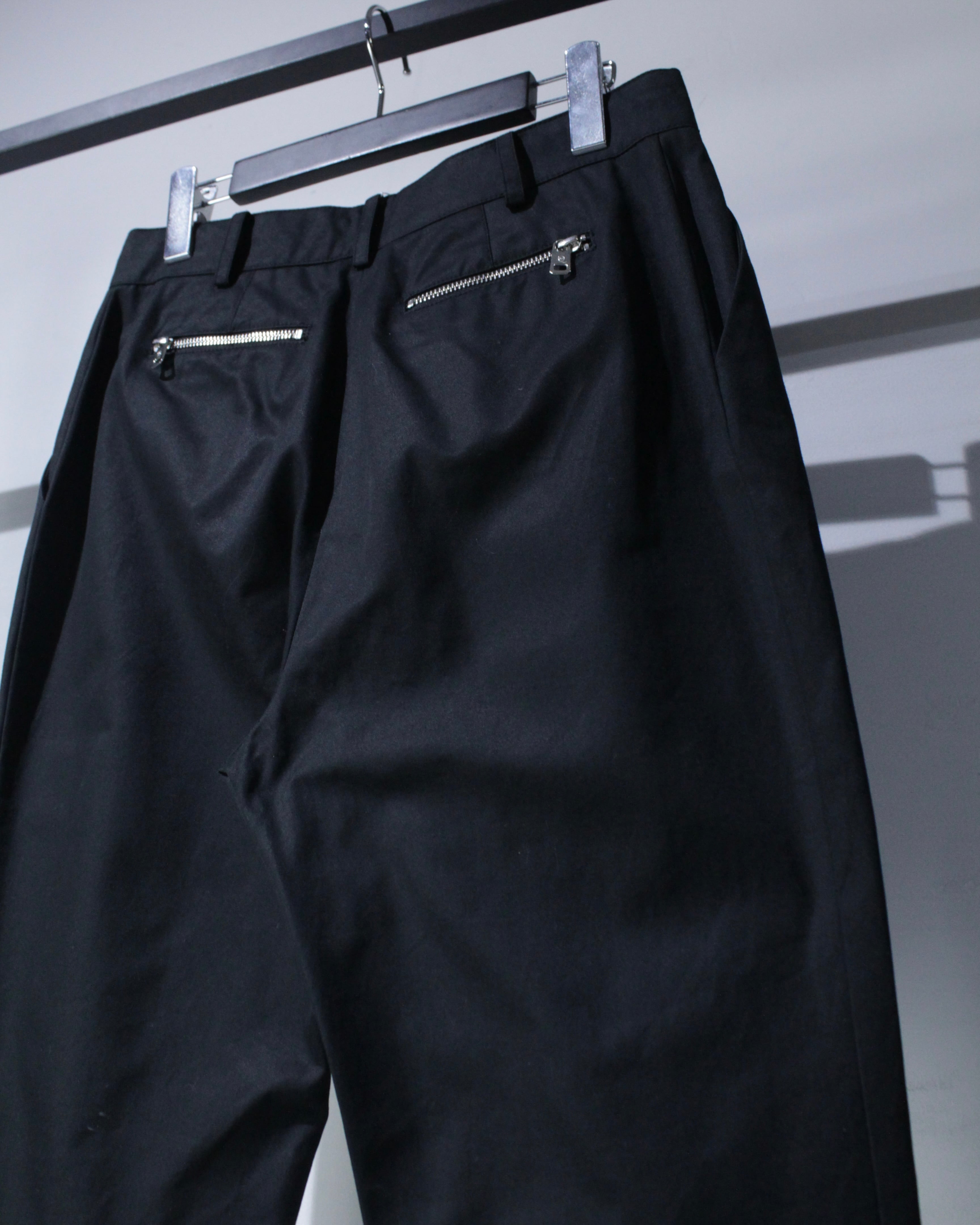裾のジップは開閉によってシルエット調整が可能。ブーツに被せてモードに、開けてフレア気味に、とスタイリングの幅も広い仕様です。 ◎